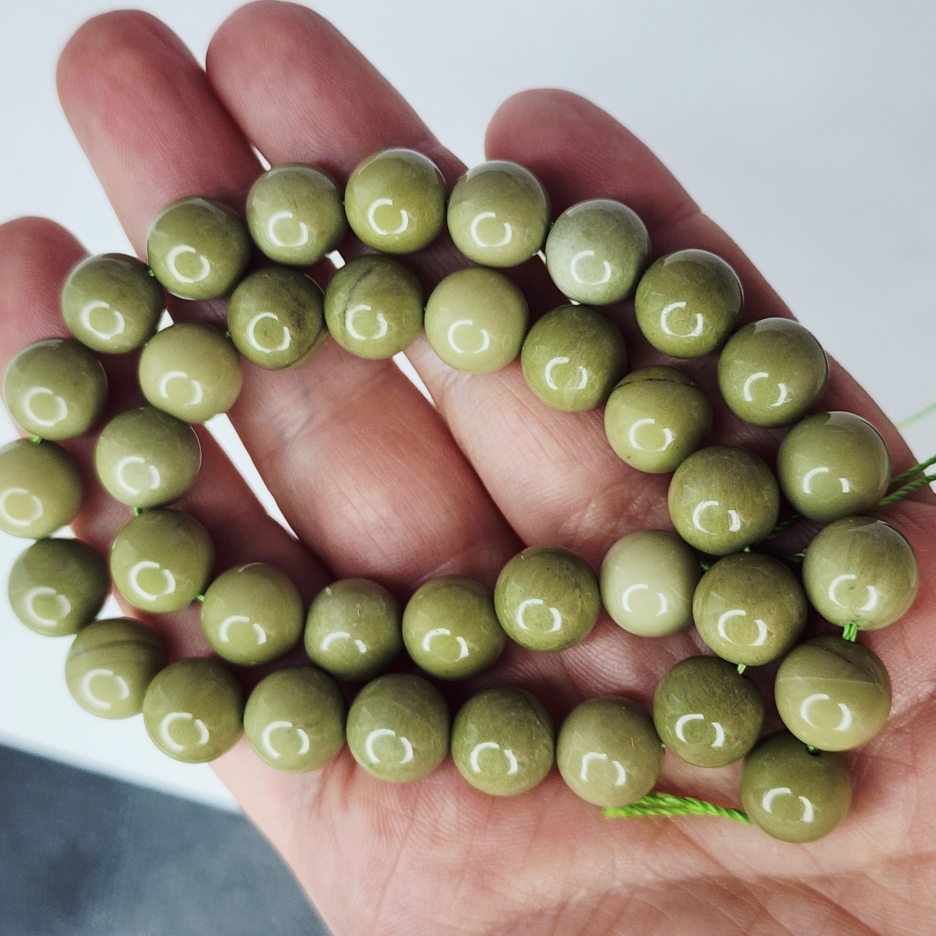 Агат Алашань, красивый оттенок часто сравнивают с плодами авакадо или зелёным горошком) Красивый акцентный природный камень. В среднем размер шара 8.3 - 8.5мм