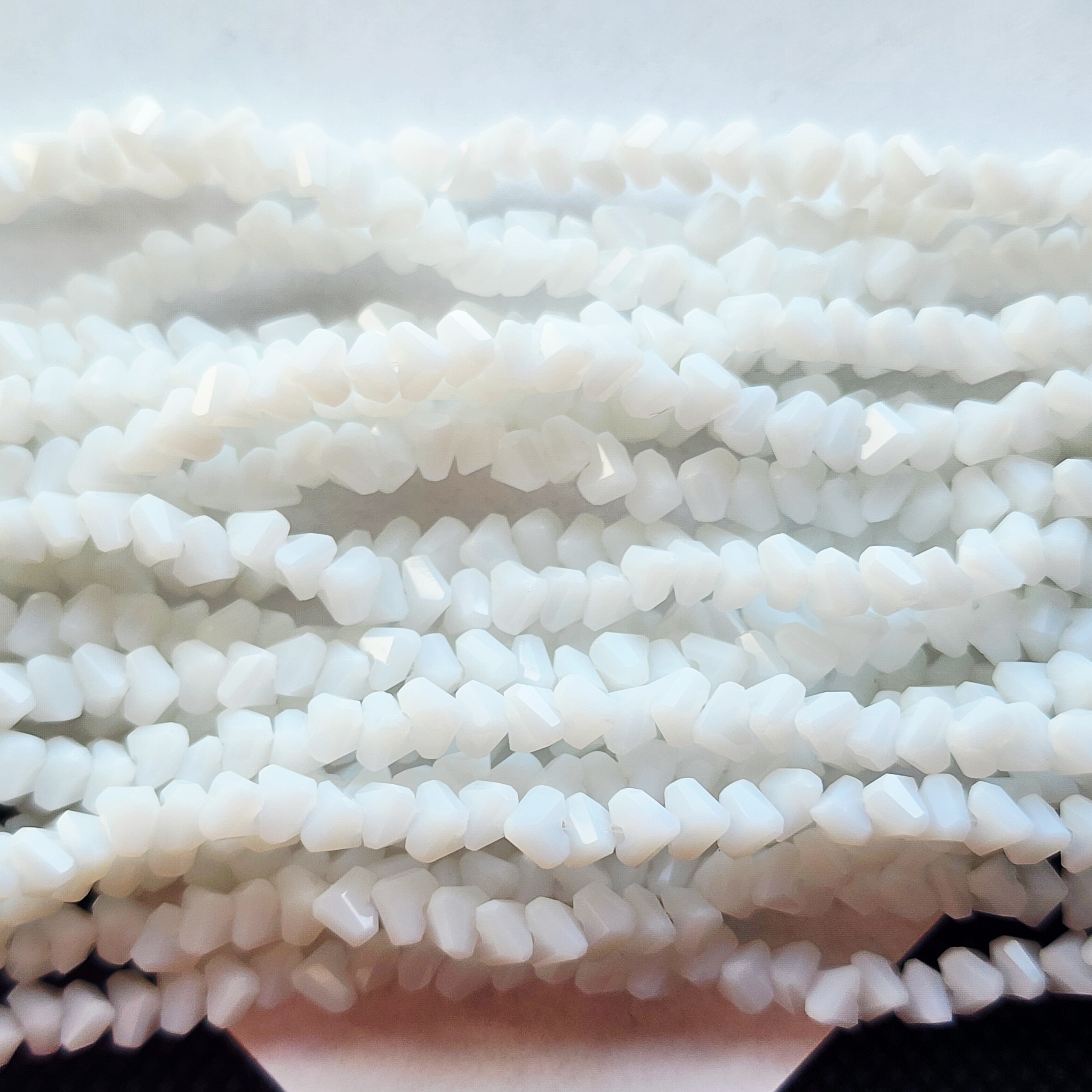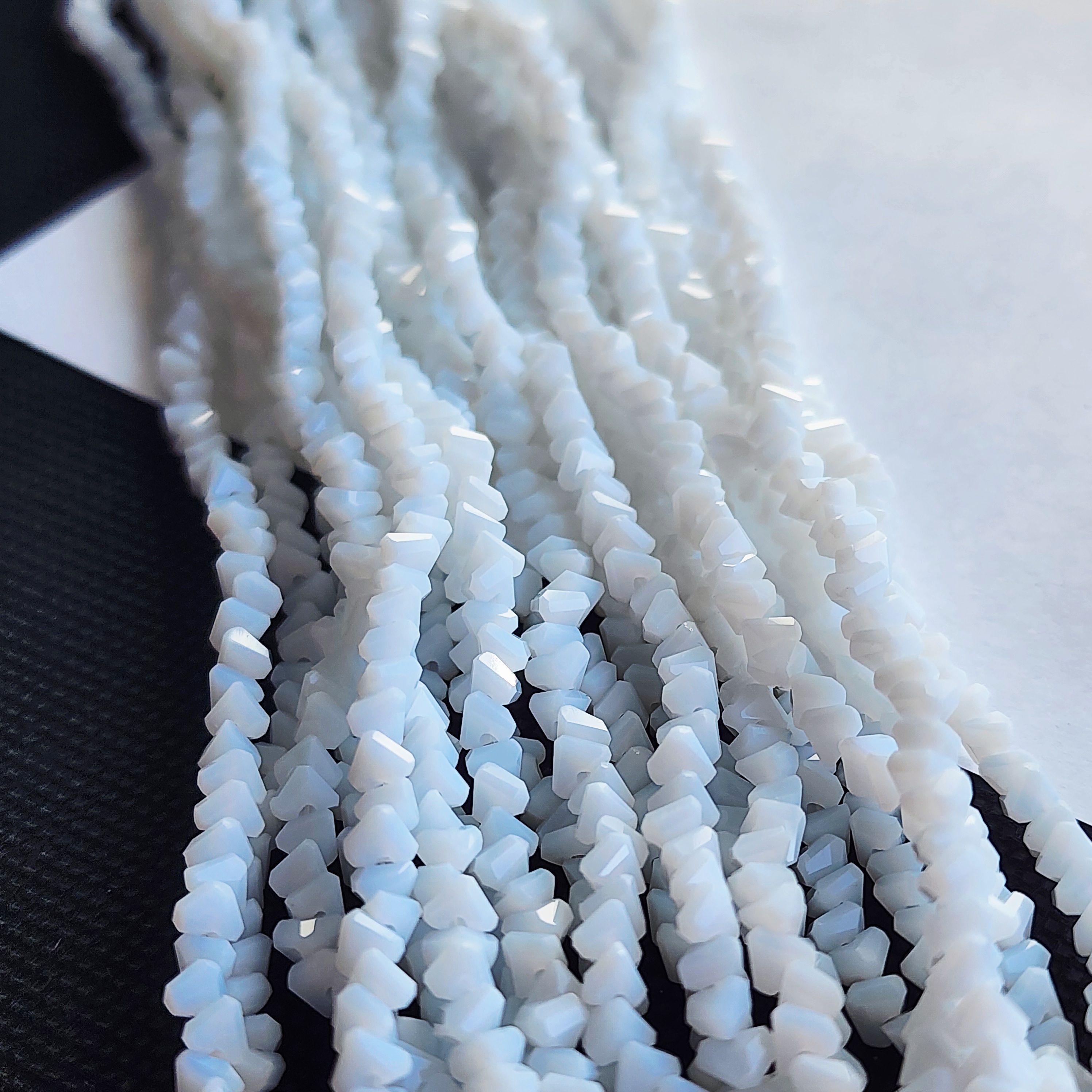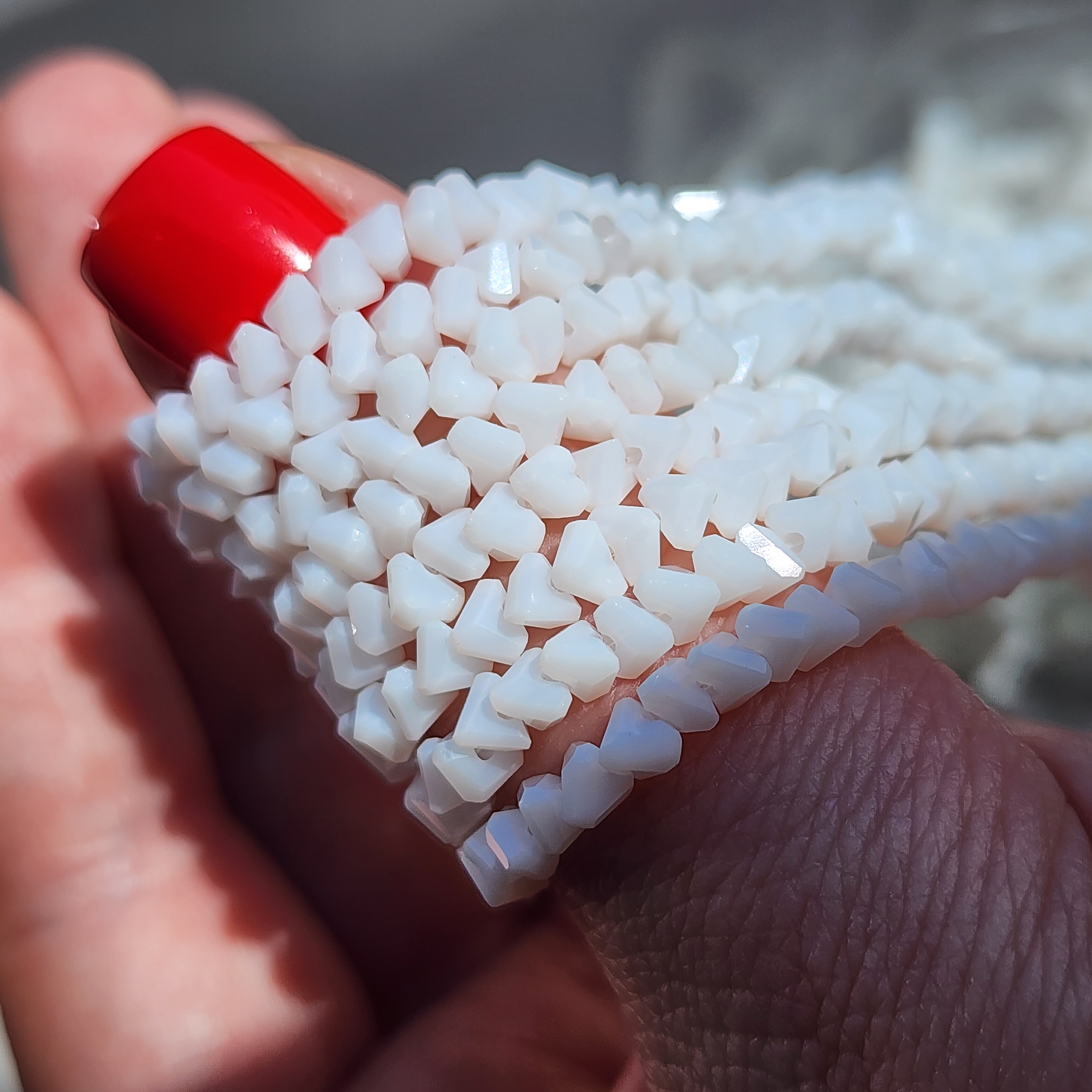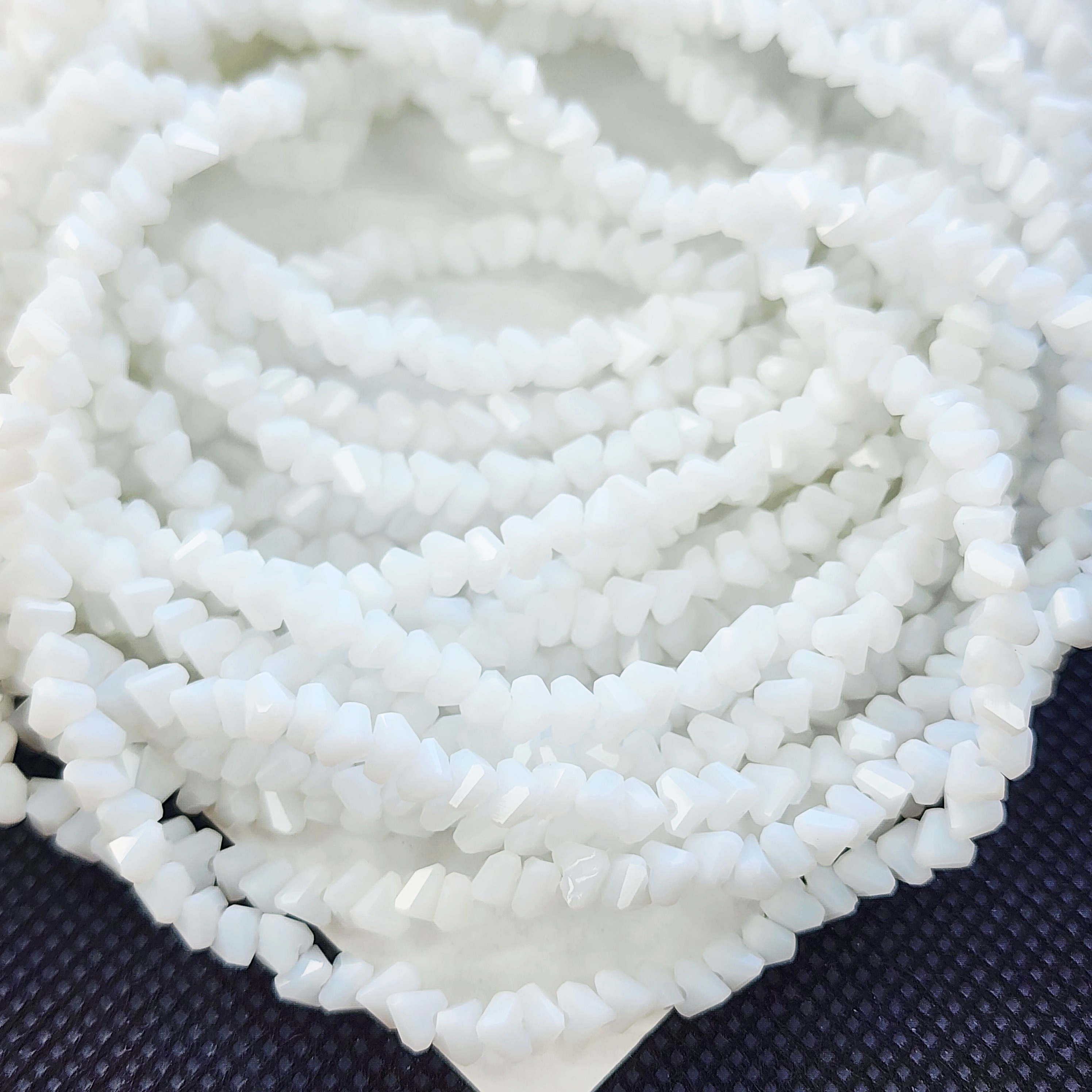 Хрустальные треугольники (алмазное стекло), цвет чисто белый, непрозрачный, длина нити 35см, размер треугольника 4мм