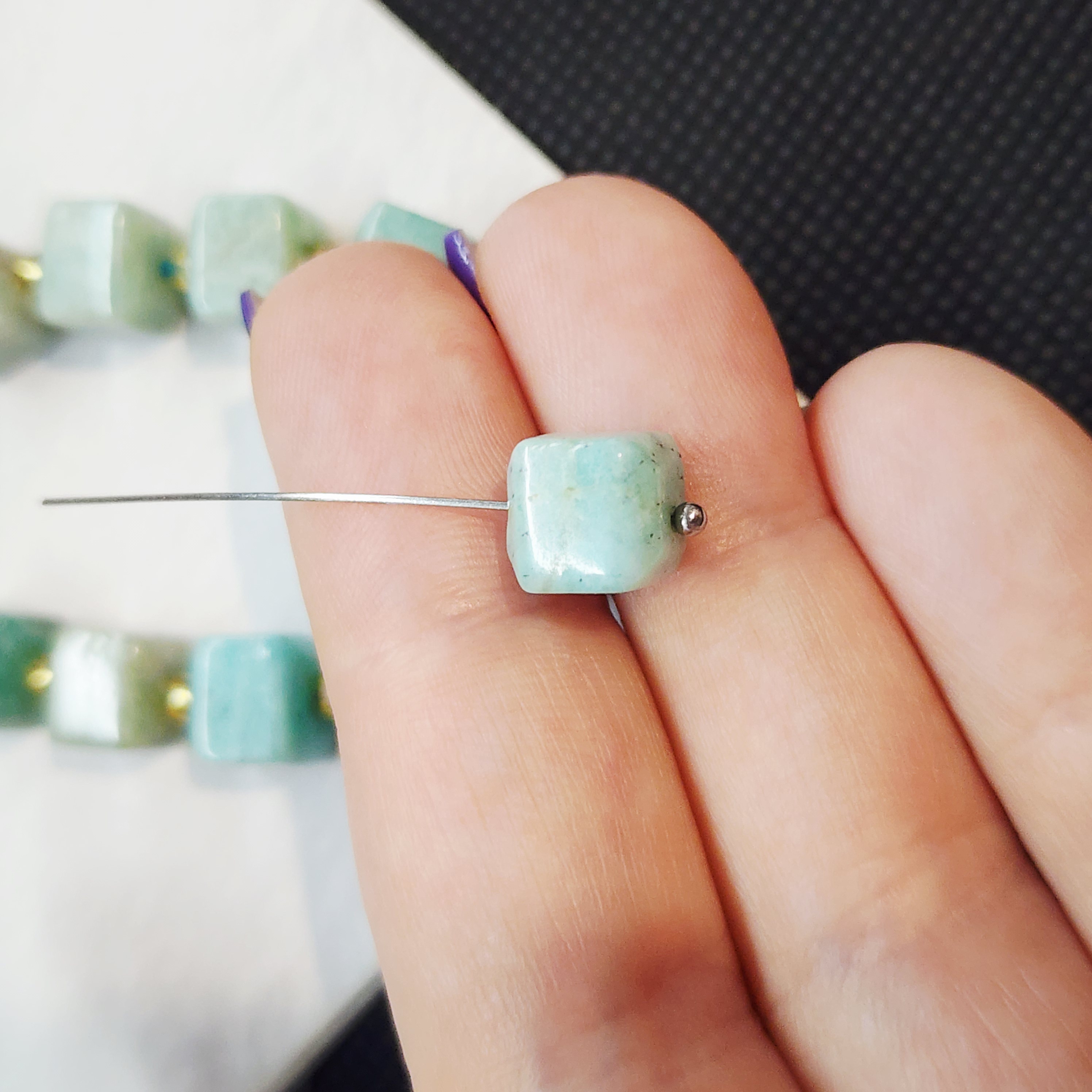 Бусины кубики чудесно смотрятся как в серьгах, так и колье и прекрасно дополняют асимметрии