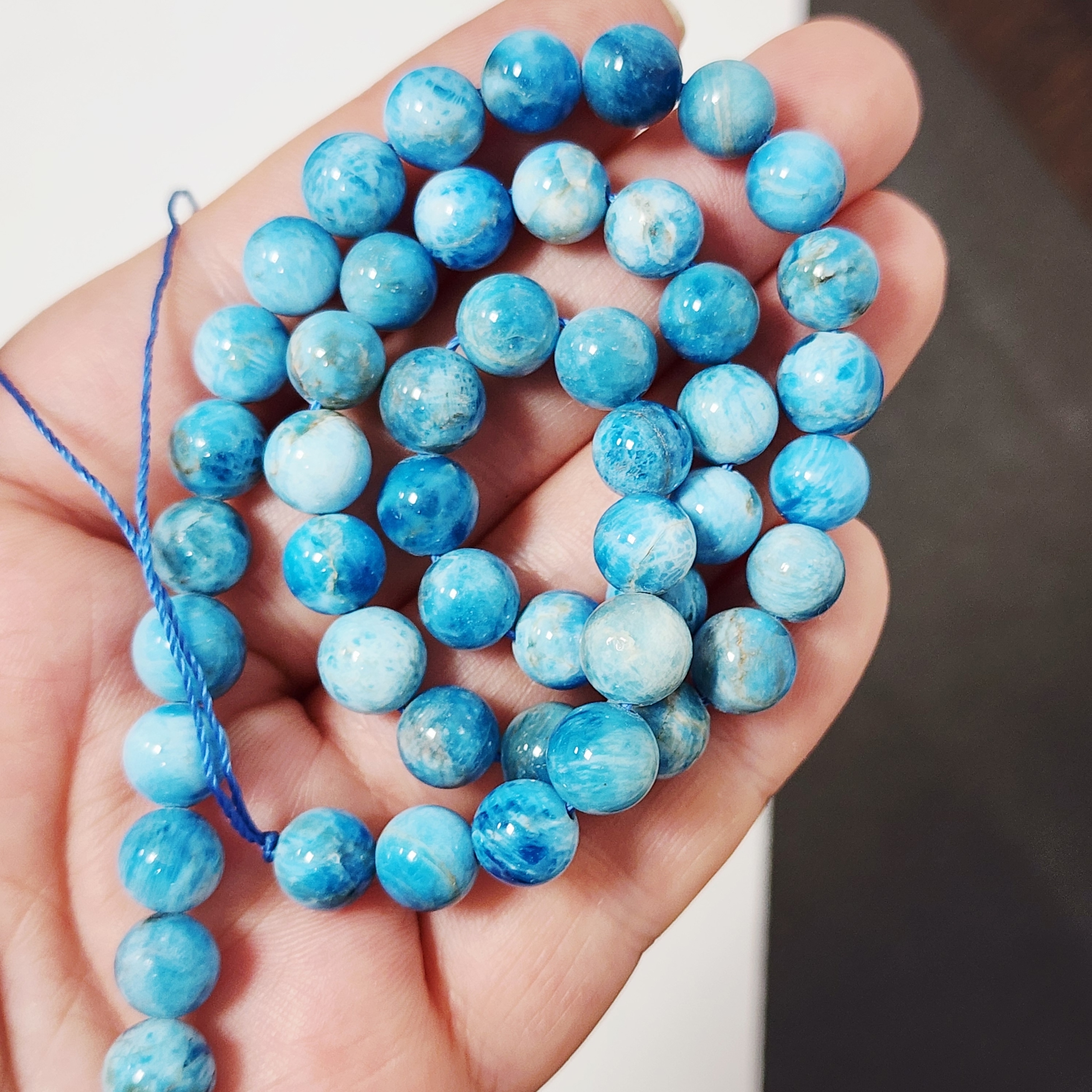 Апатит природный, красивый цвет, бусина шар, средний размер 8мм