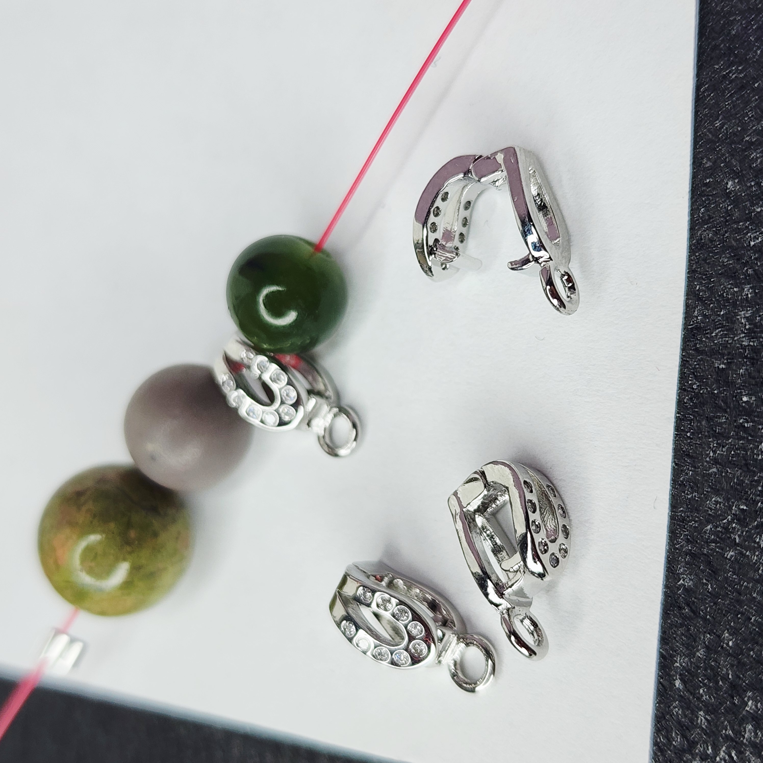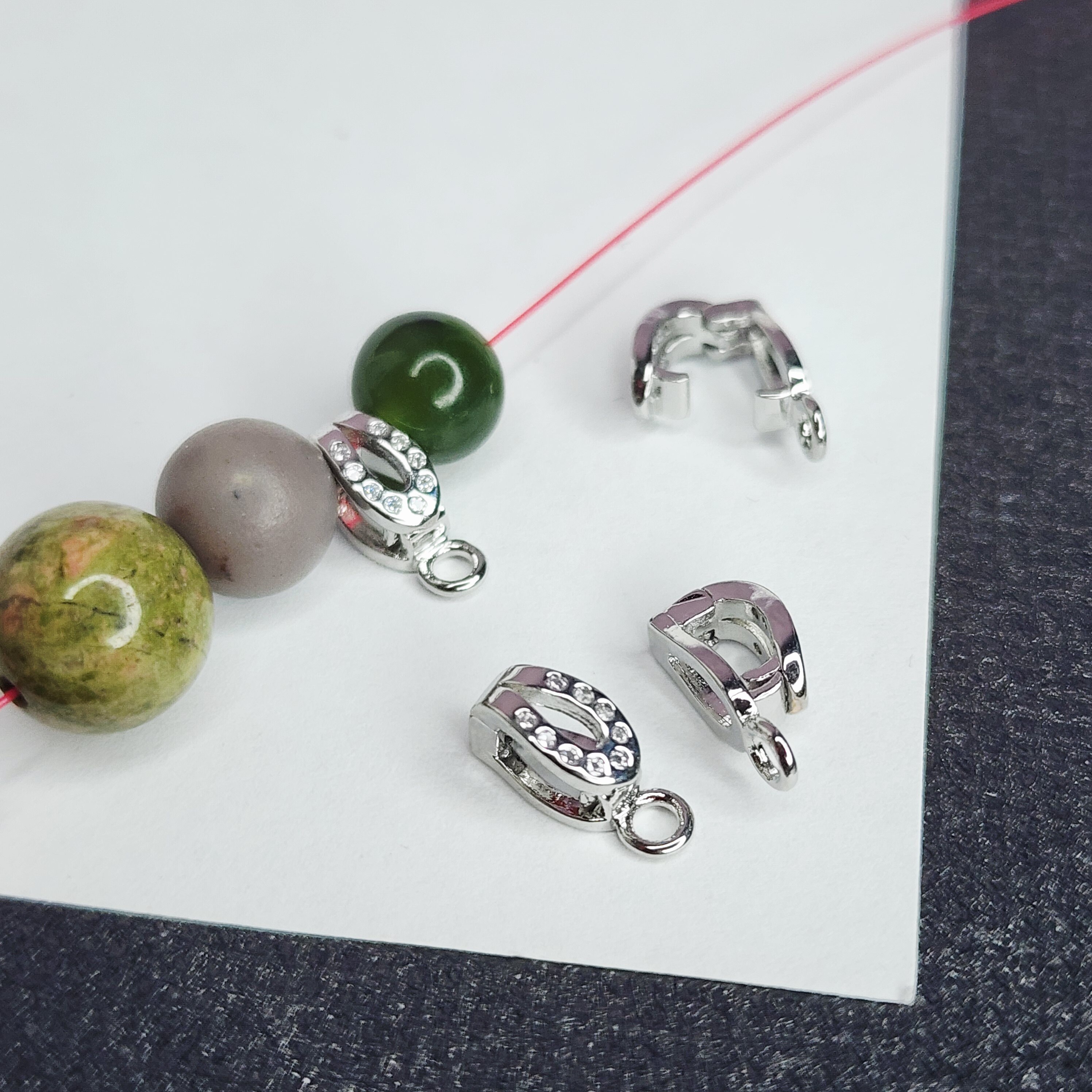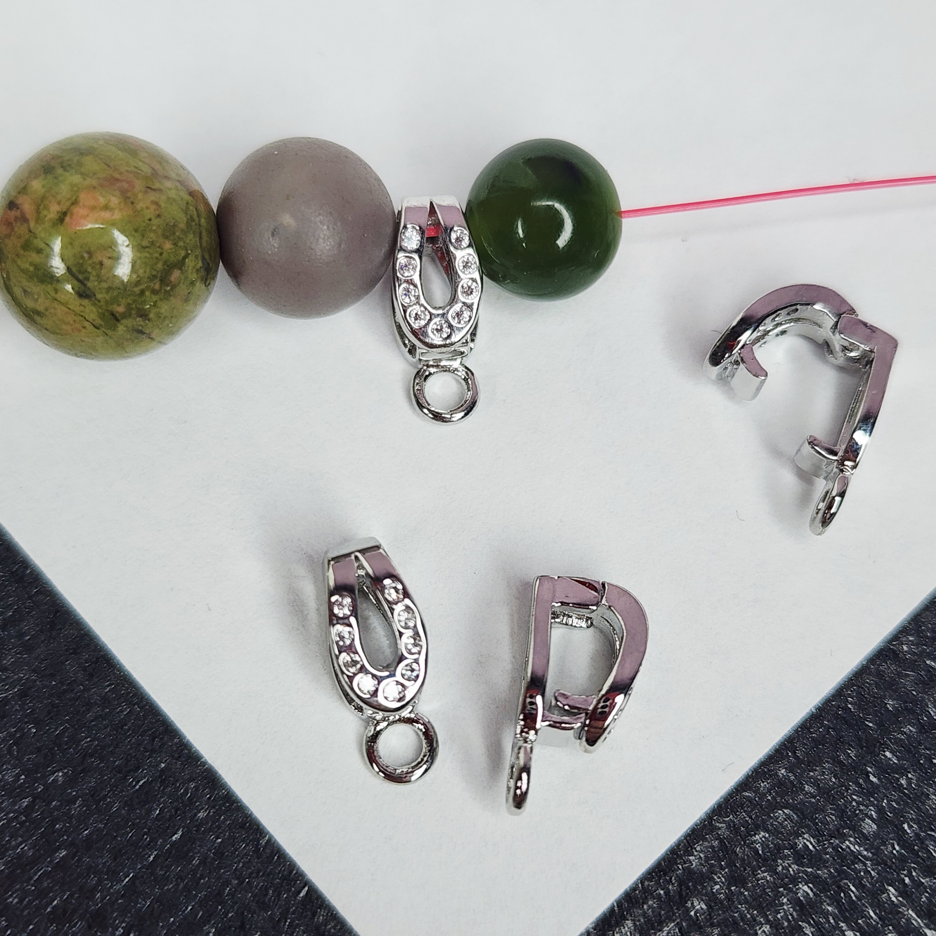 Бейл зажимной, фианит, для подвесок, родий, р-р 11мм, люкс фурнитура, штучно