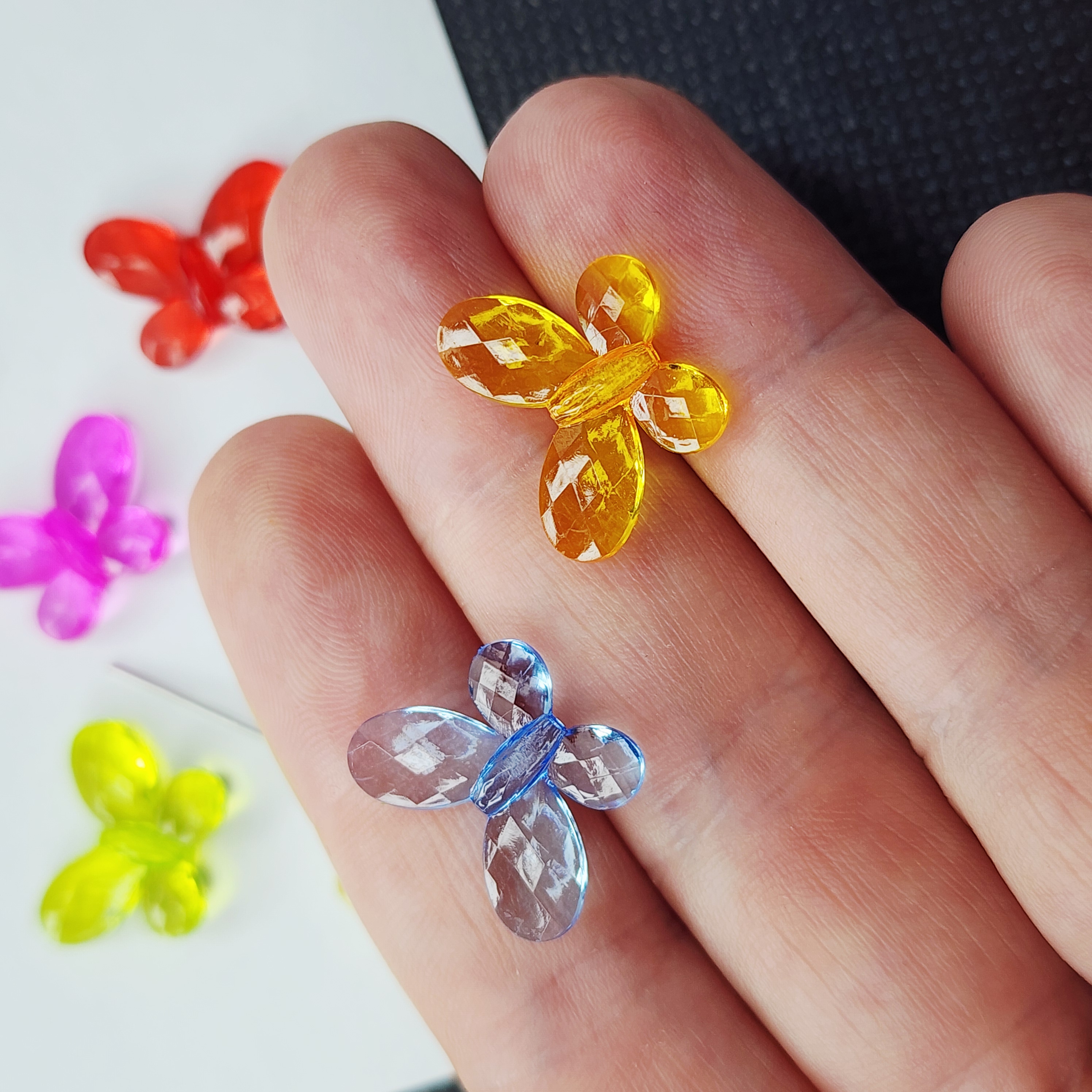 Бусины бабочки из разноцветного акрила, размер 17×13мм, отверстие 2мм. Отлично подойдут для детских украшений, творческих проэктов и мастер классов