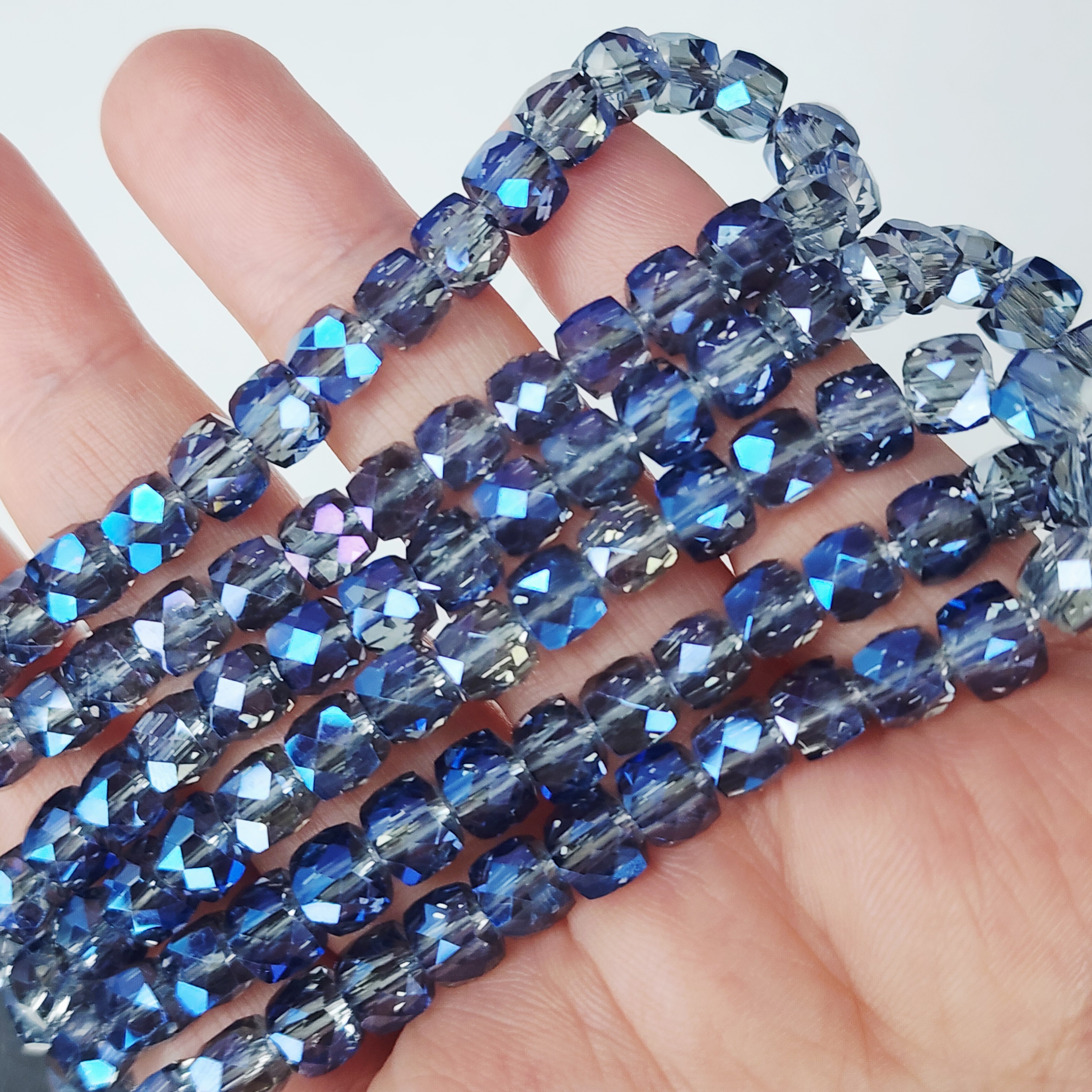 Хрустальный блестящий куб в ювелирной огранке, размер 6мм, оттенок красивый синий bermuda blue