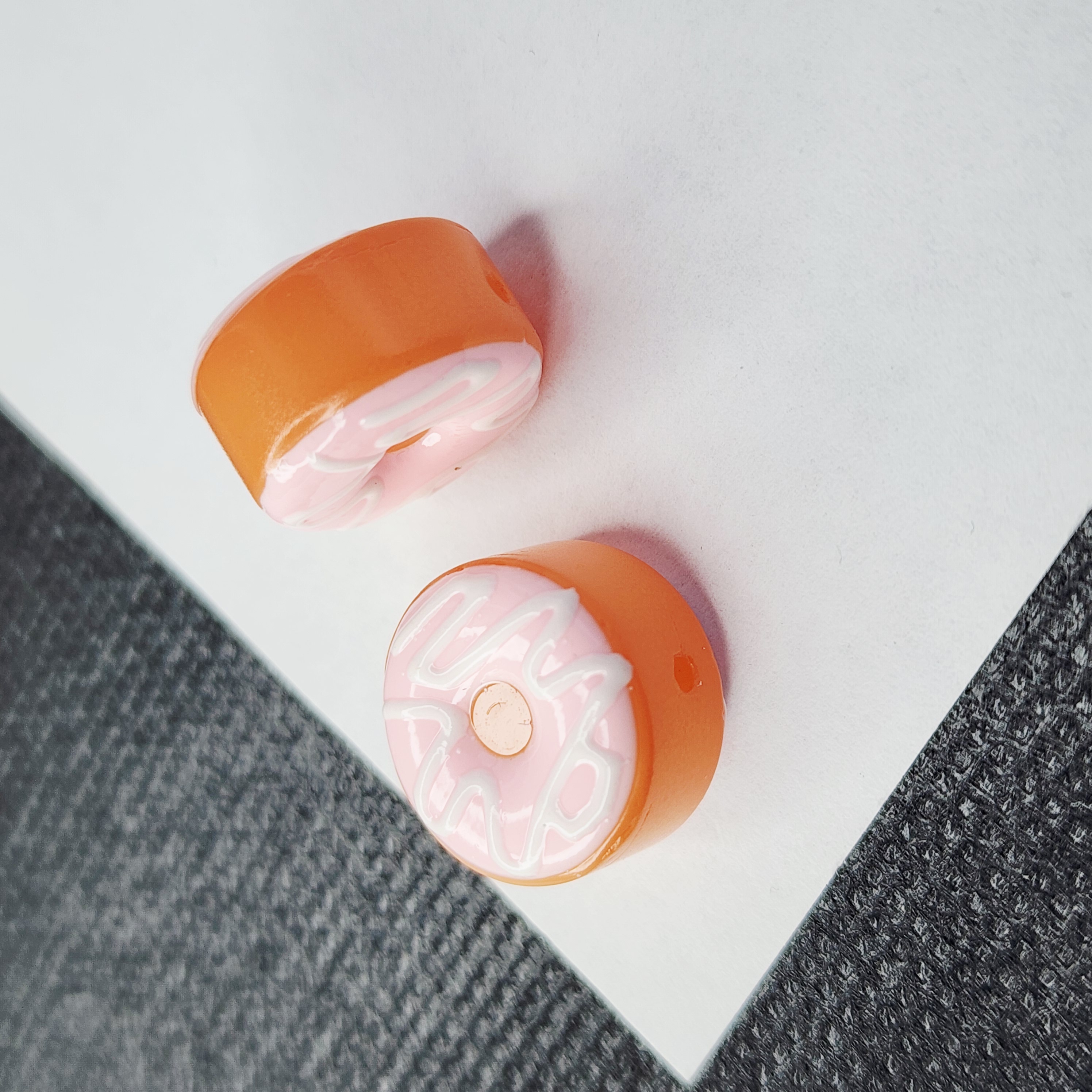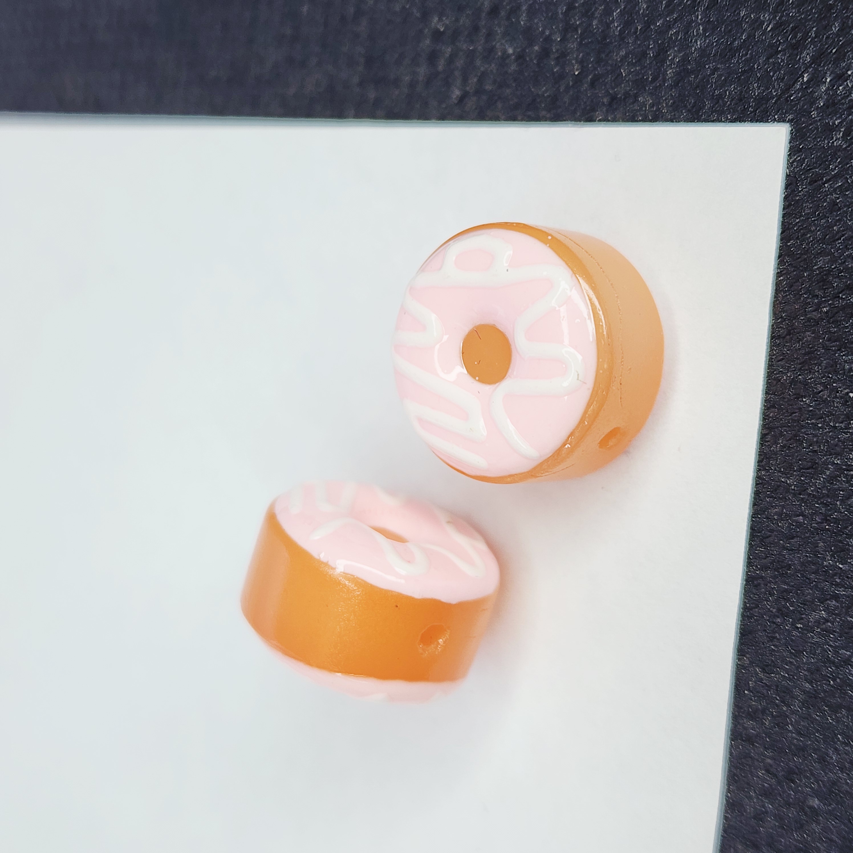 Бусина лэмпворк, стеклянная бусинка в виде пончика с глазурью, размер примерно 15.5 ×7-8.5мм, бусинки могут немного отличаться по толщине, т.к это ручная работа.