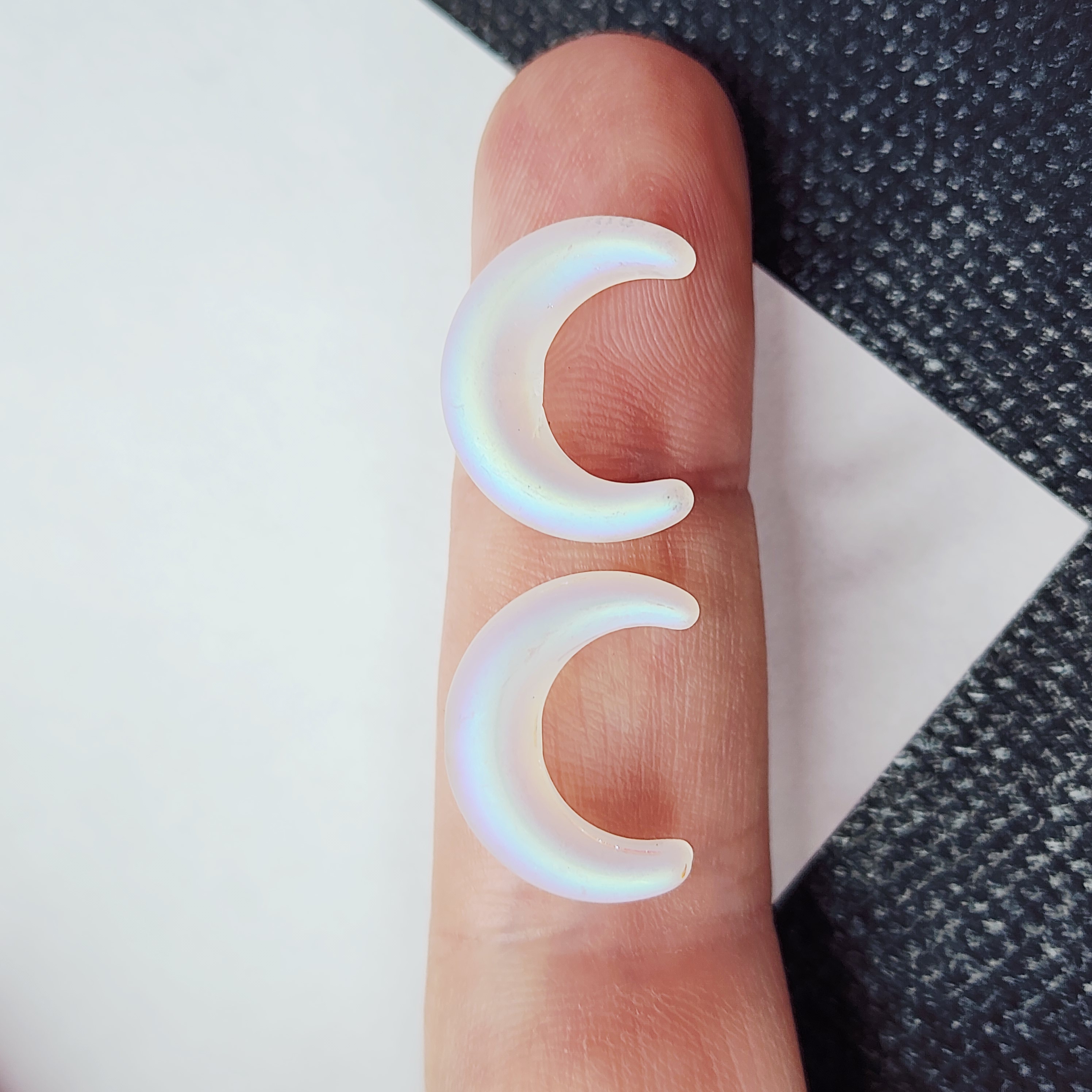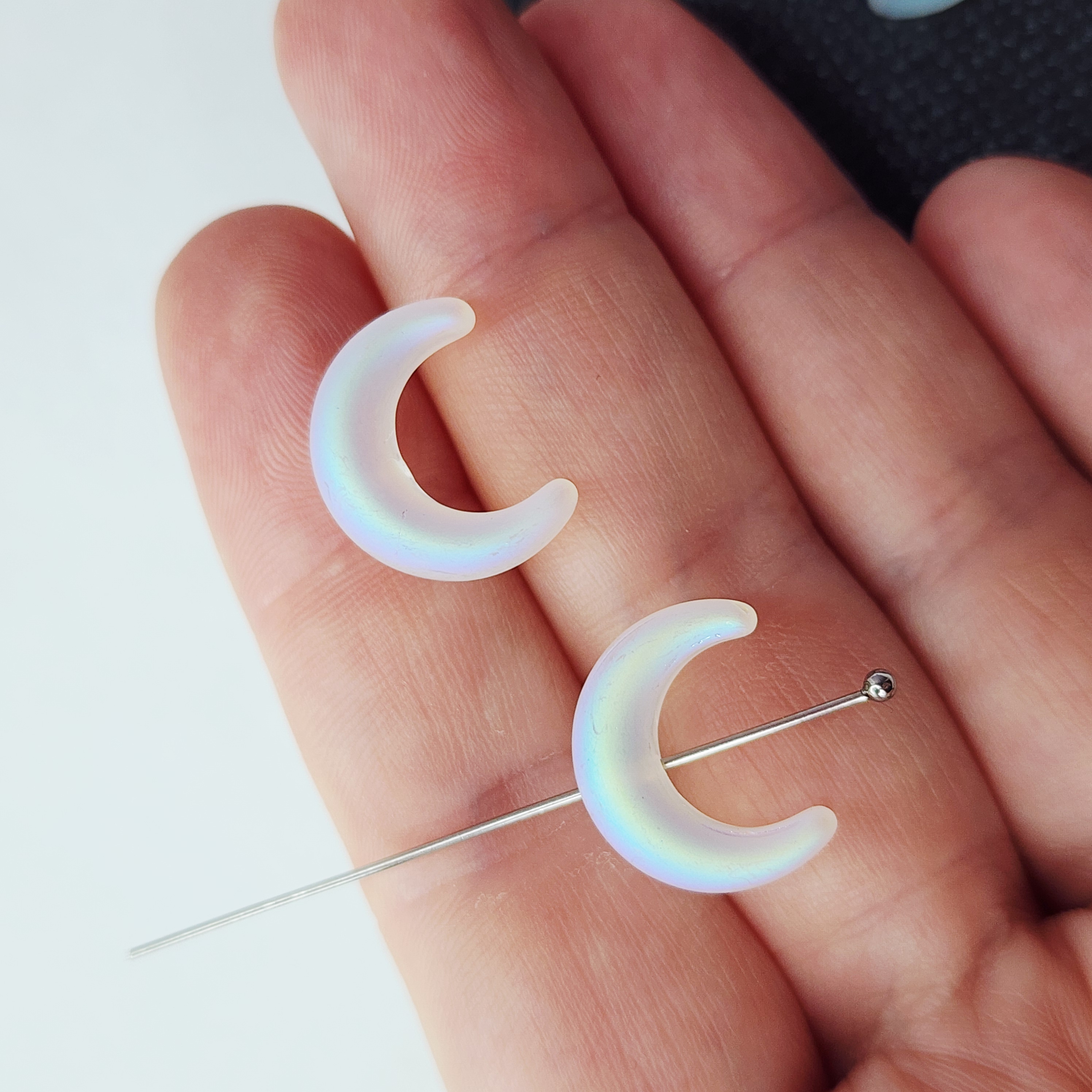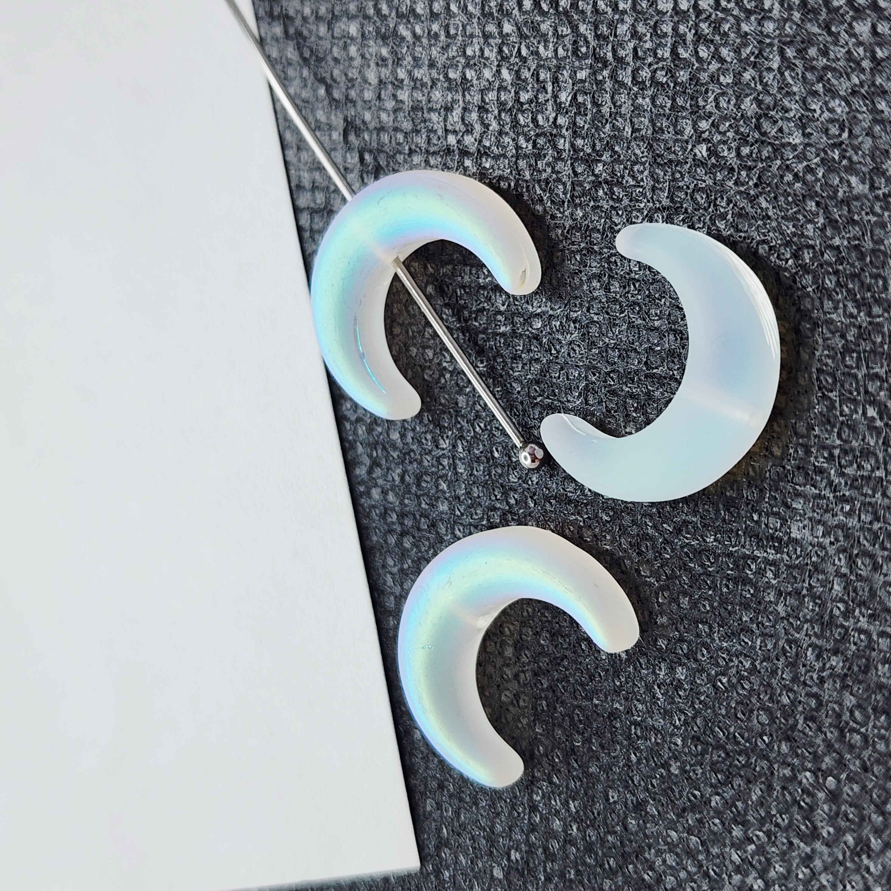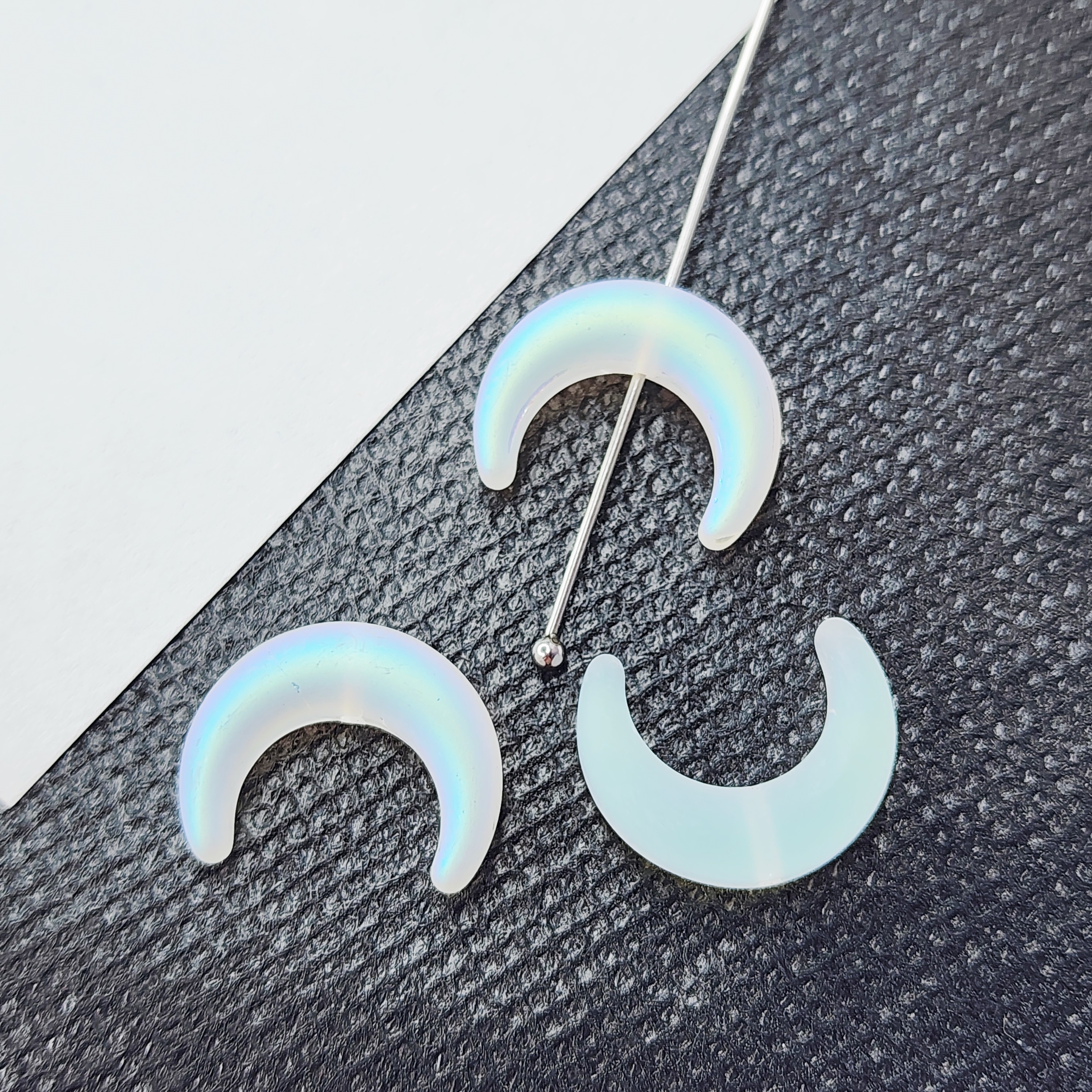 Бусина лунница, лэмпворк, белая с эффектом АВ, размер 16×13мм. Идеальна для творческих проектов и создания украшений