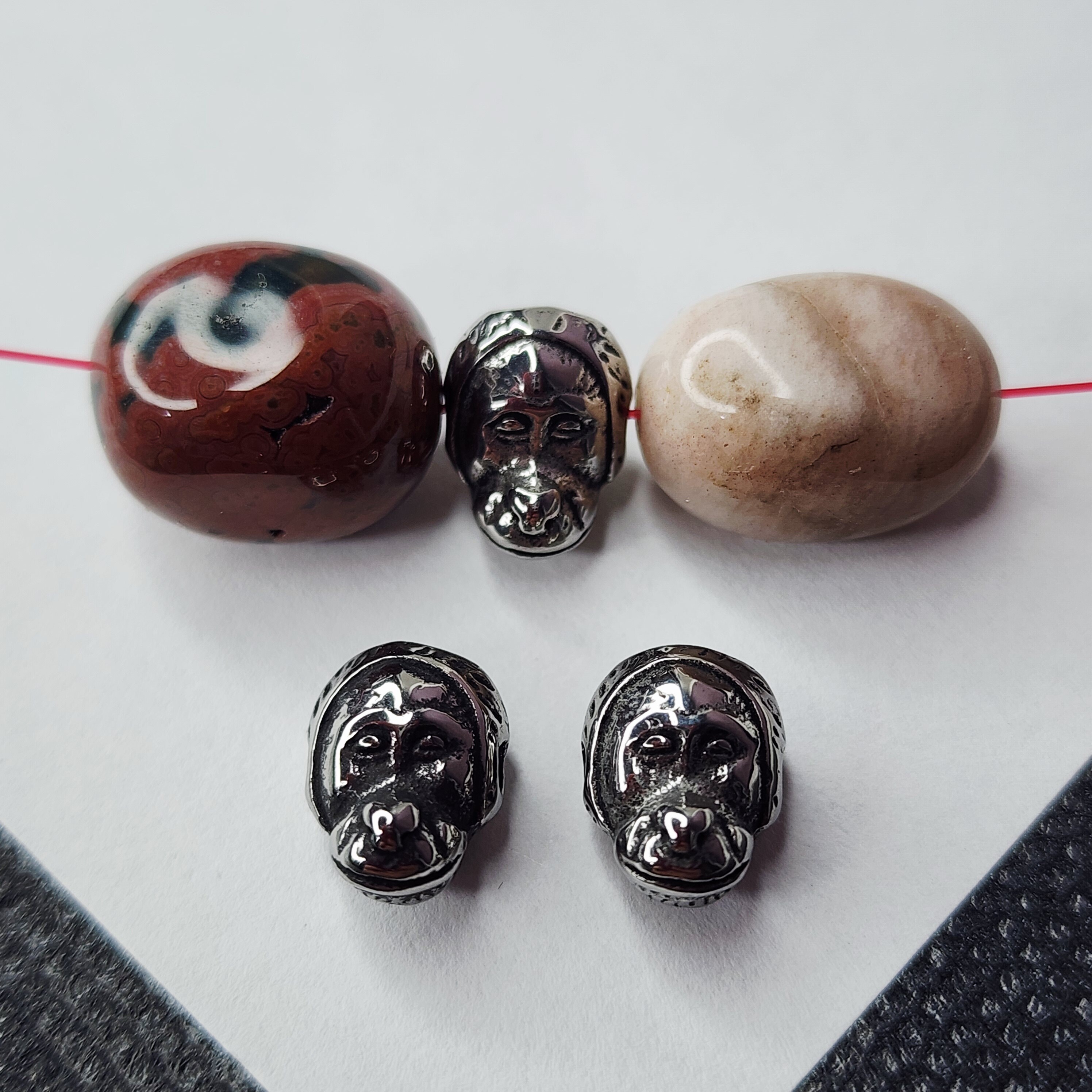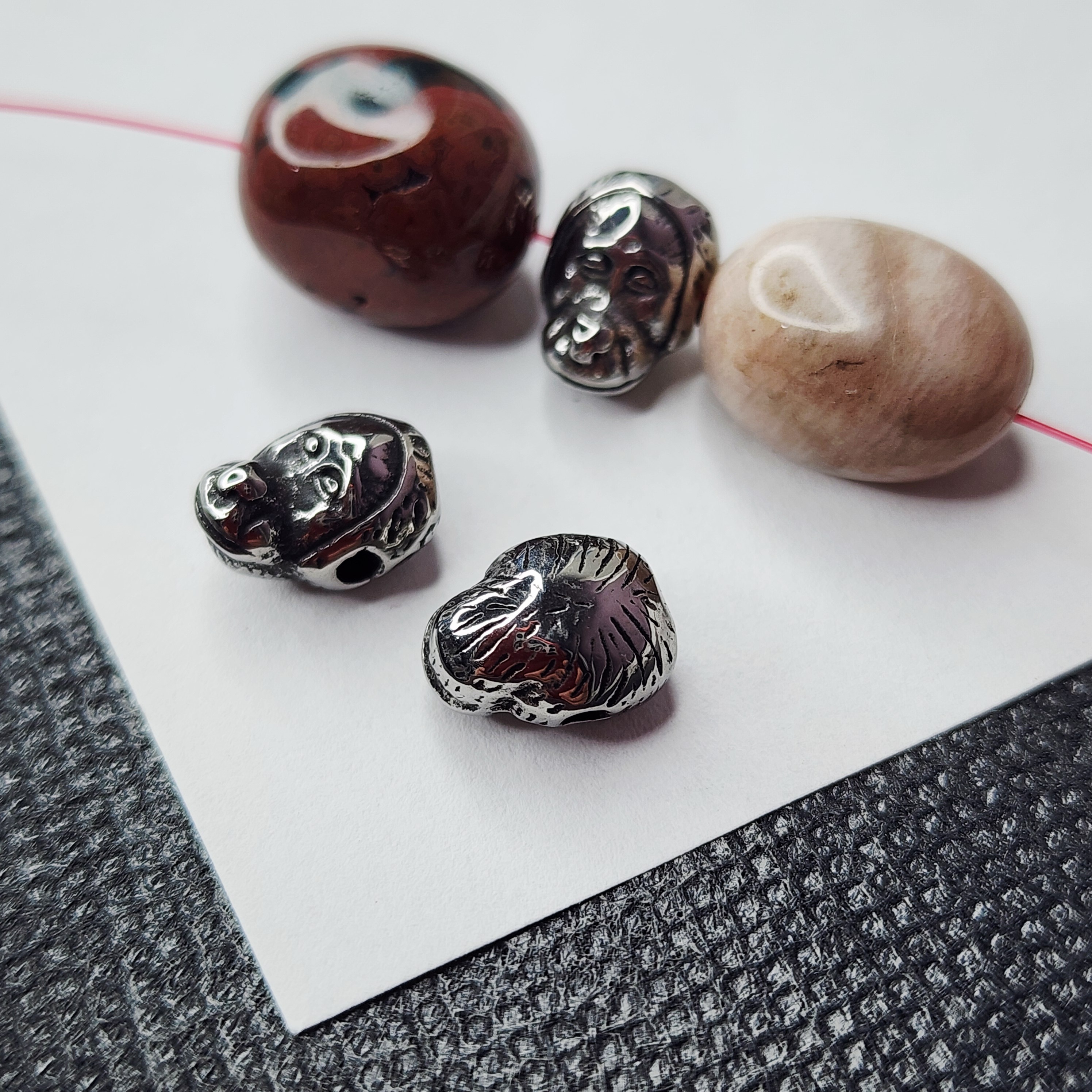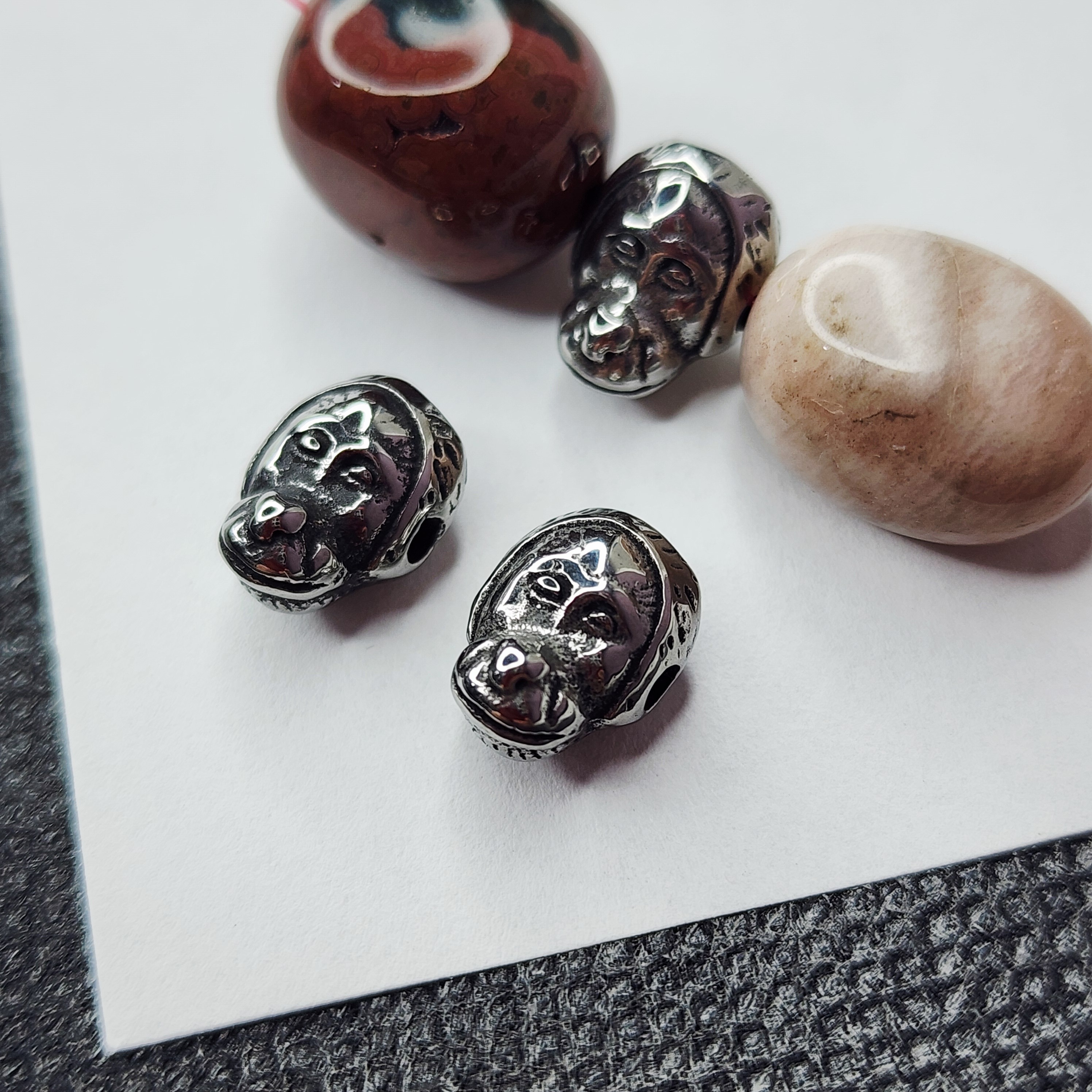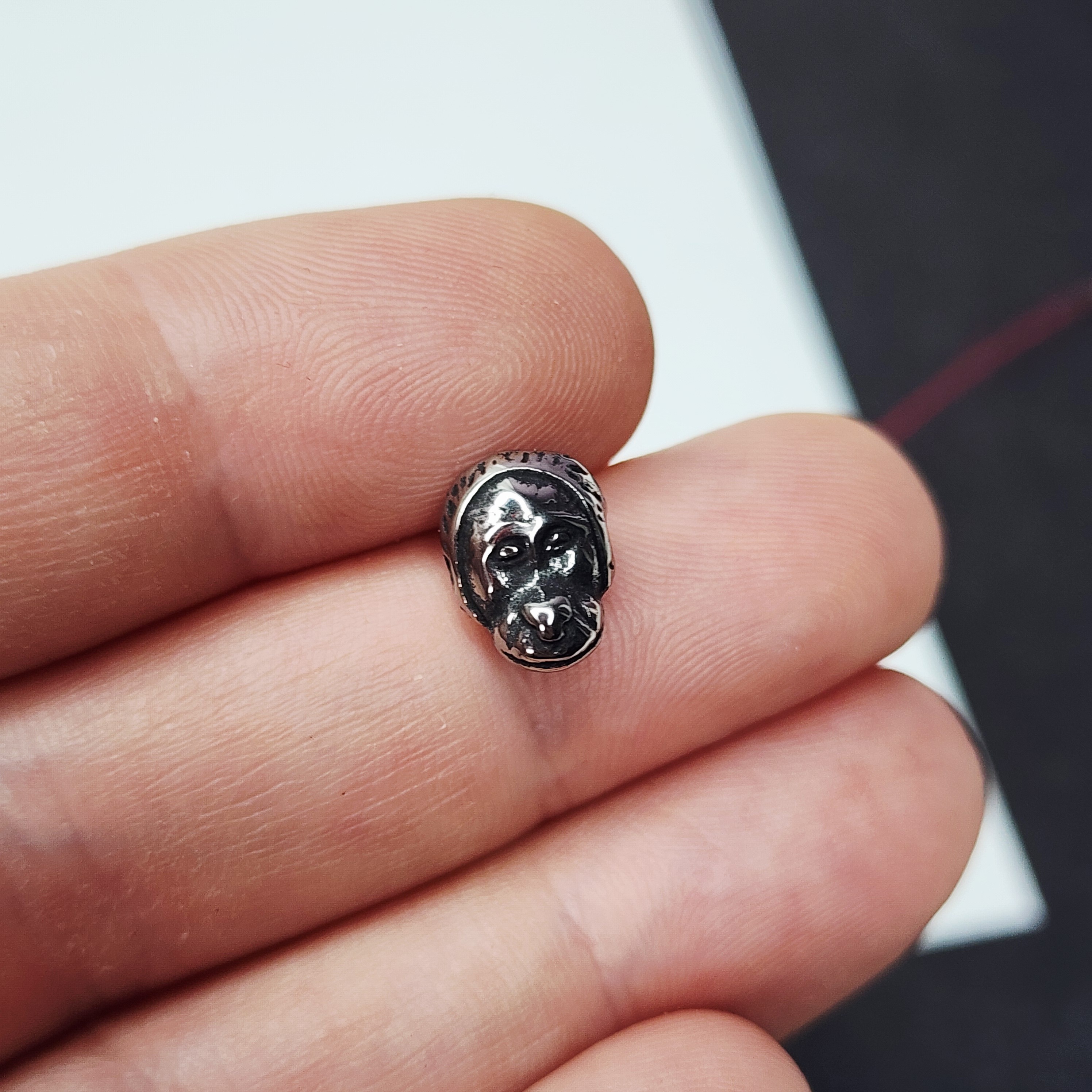 Бусина стальная, в виде головы обезьянки, отличная детализация, размер 10.5×8×8мм, отверстие 1.8мм.