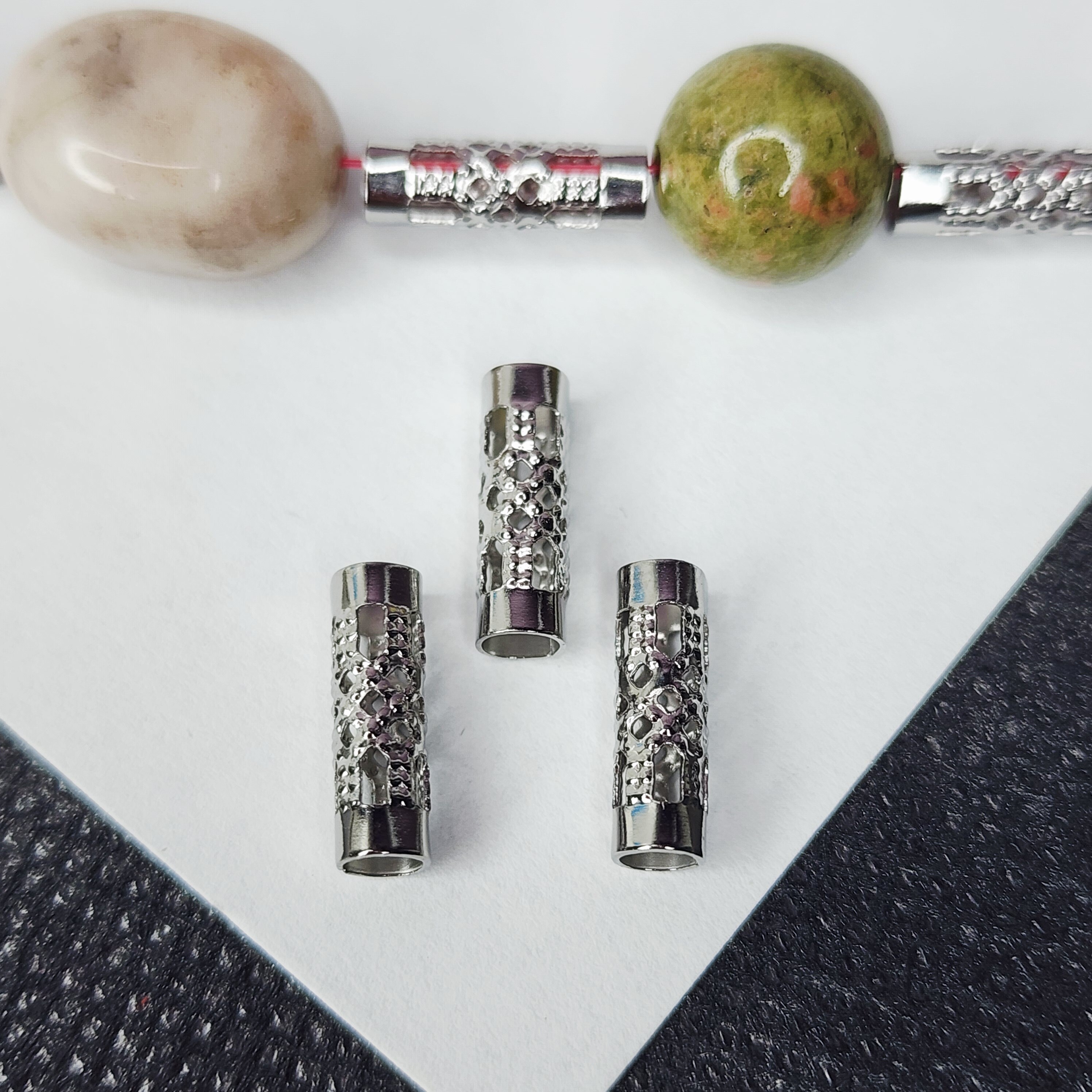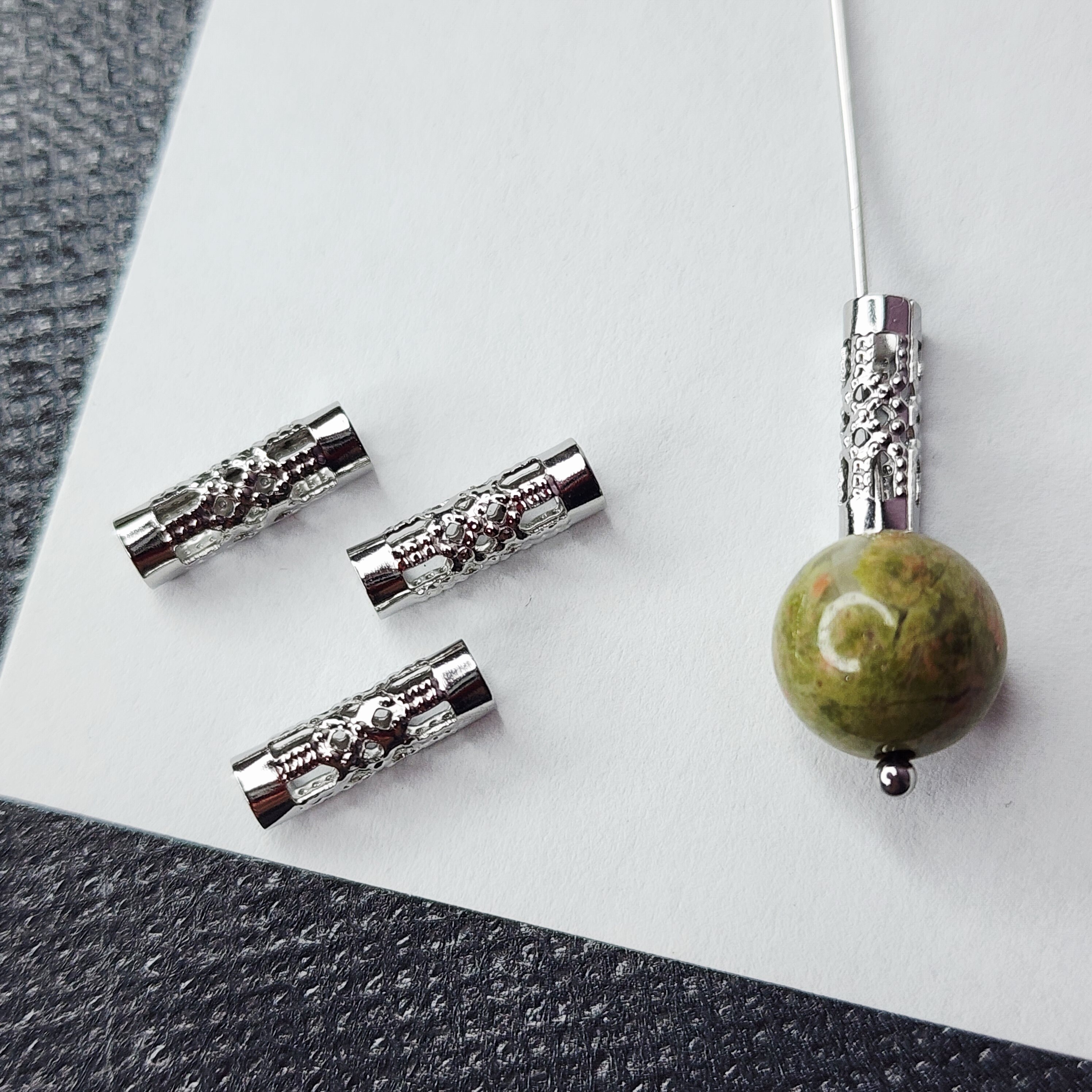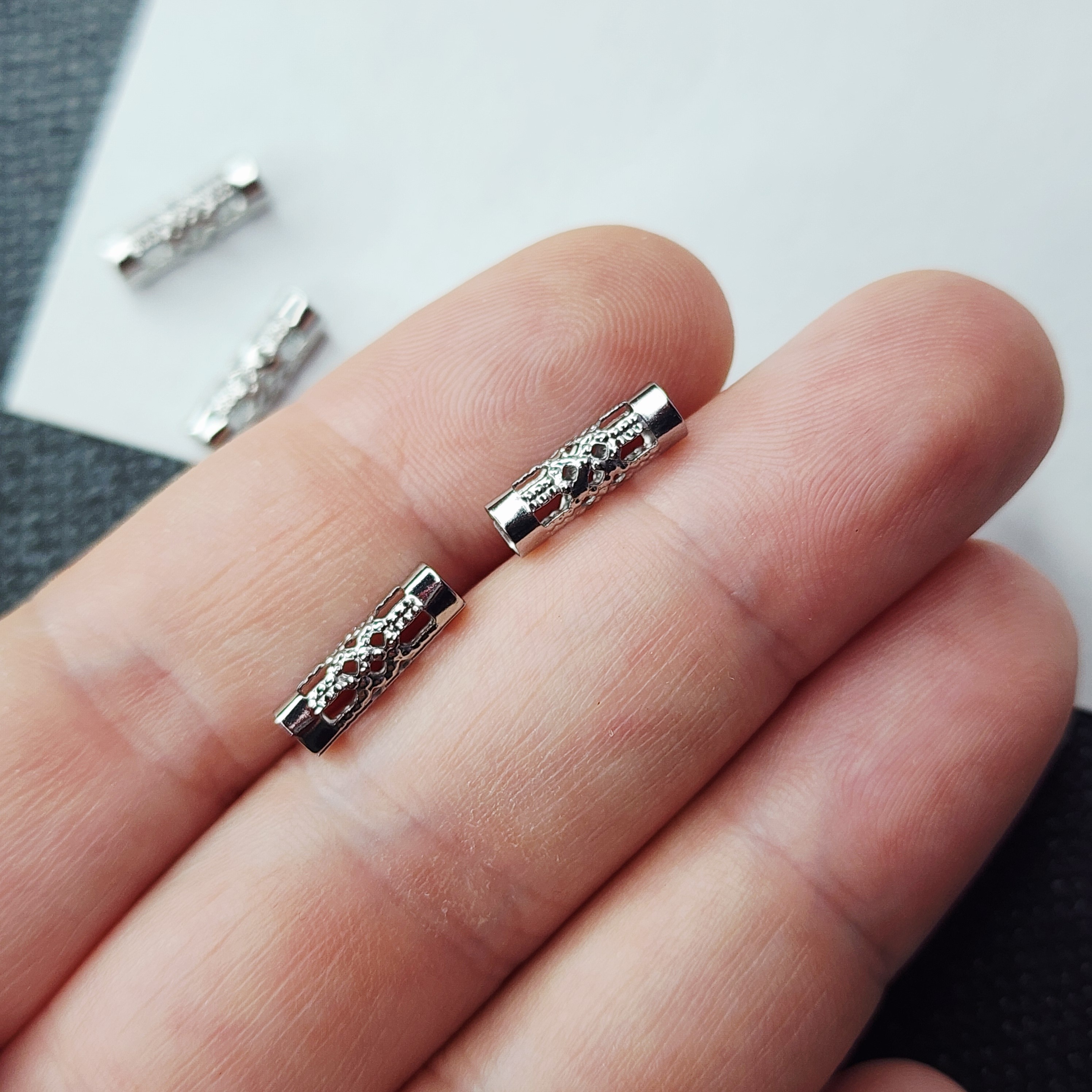 Бусина трубочка, стальная, ажурная, легкая, очень красивая, размер 12×4мм, отверстие 3мм