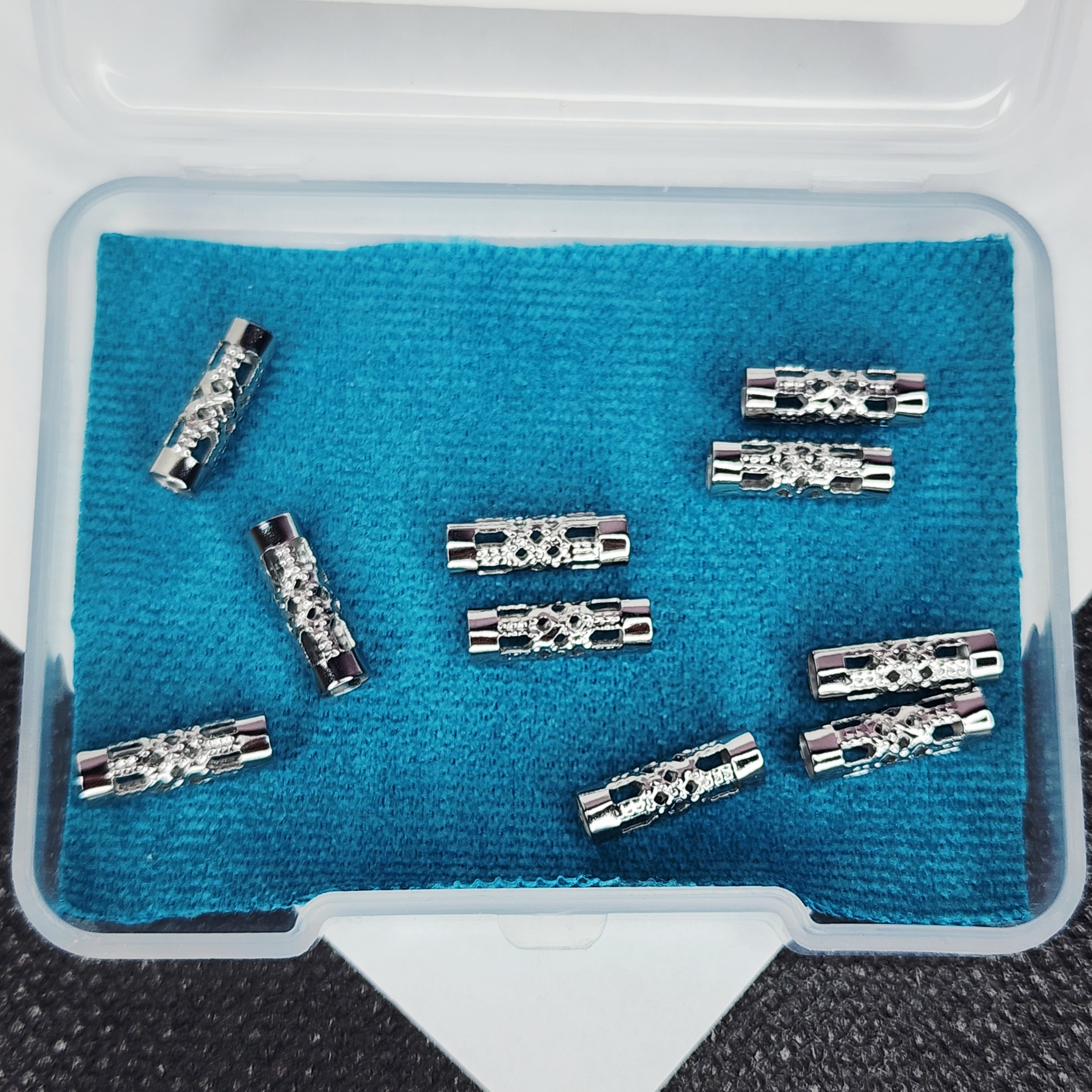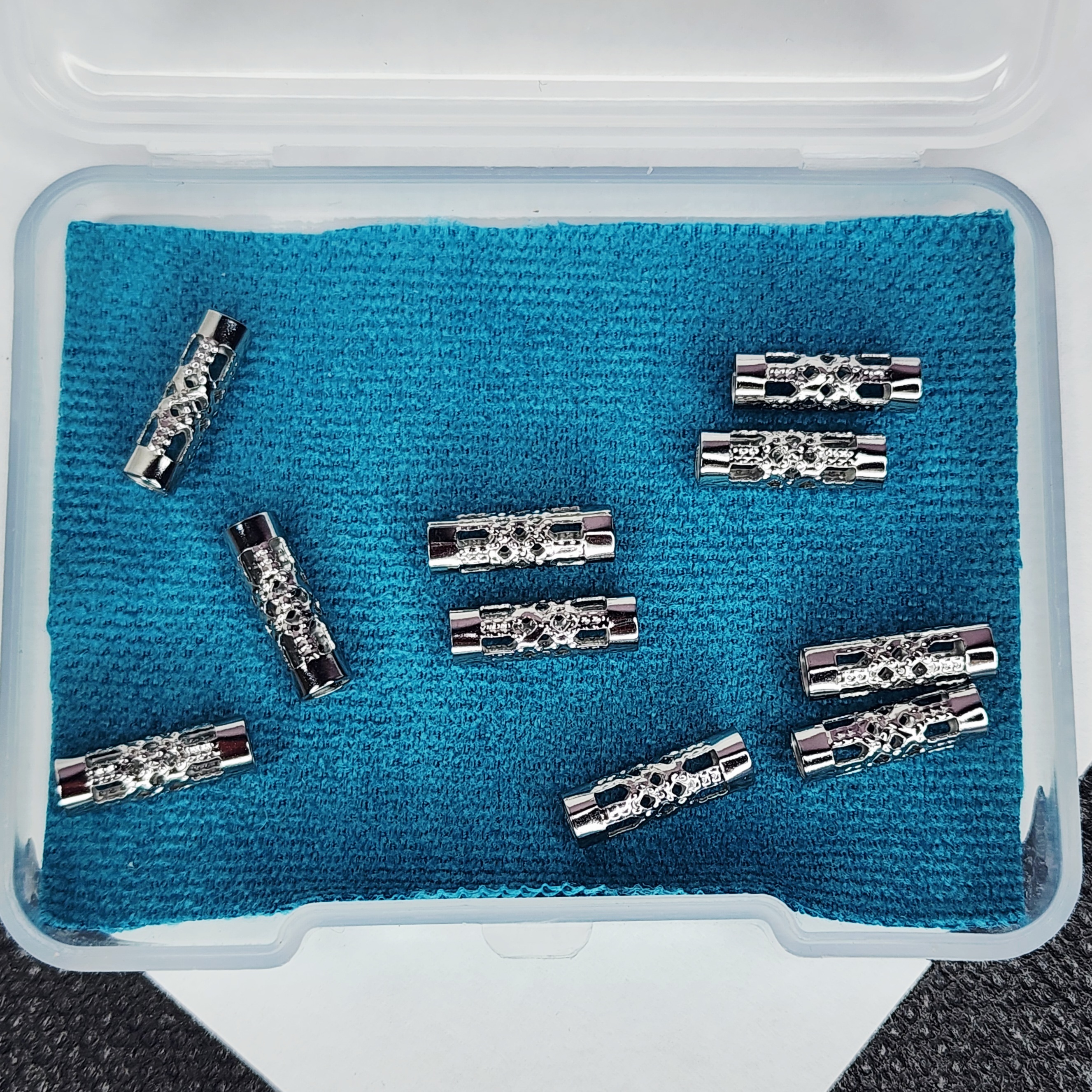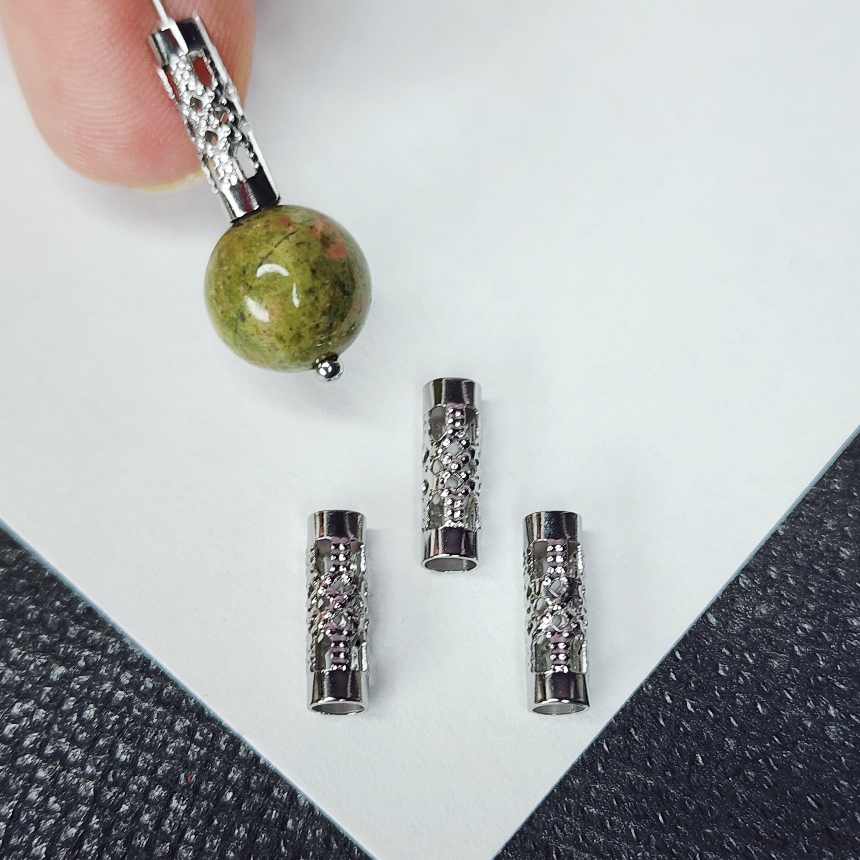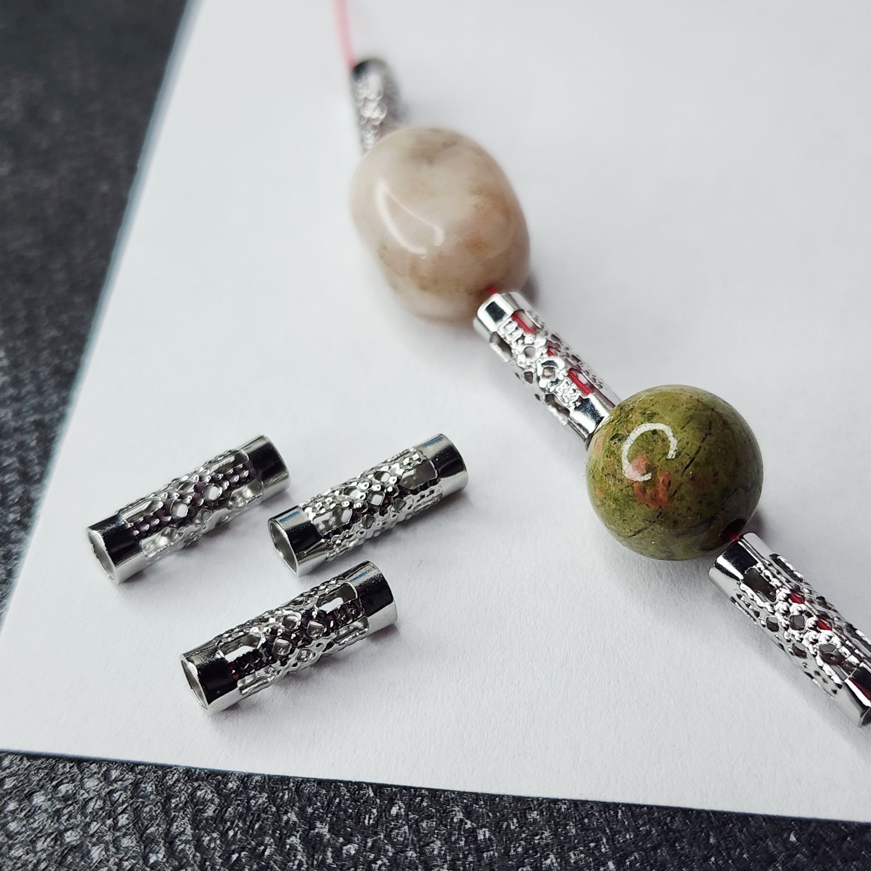 Бусина трубочка, стальная, ажурная, легкая, очень красивая, размер 12×4мм, отверстие 3мм
