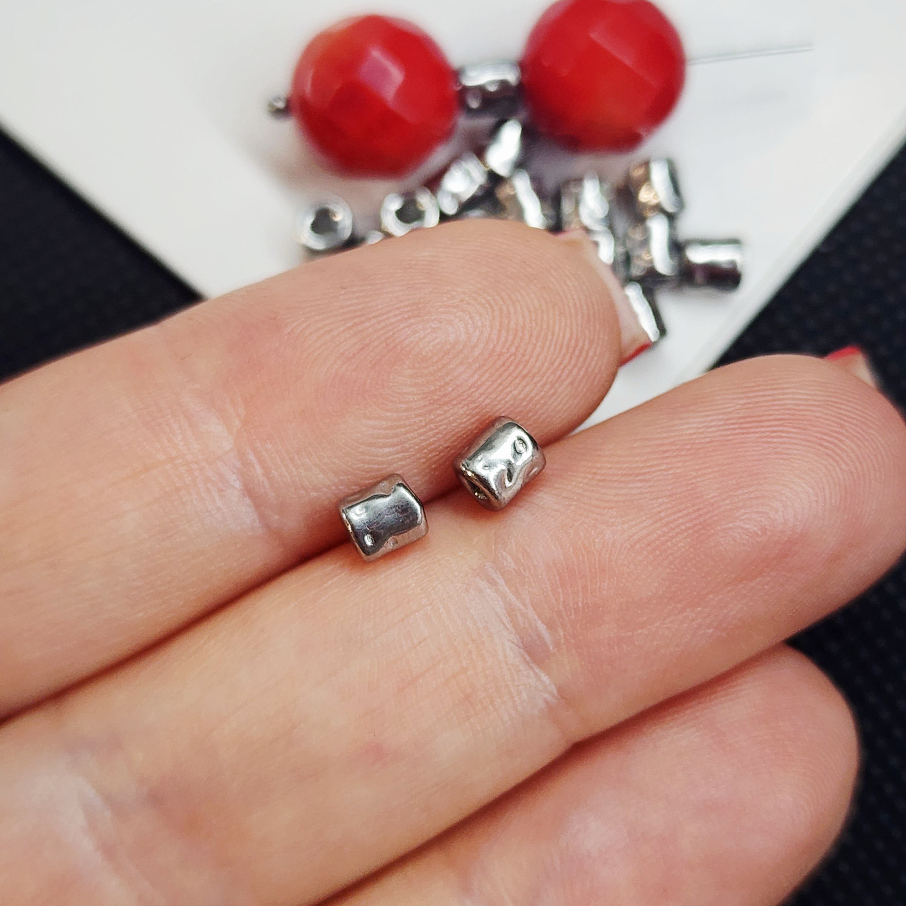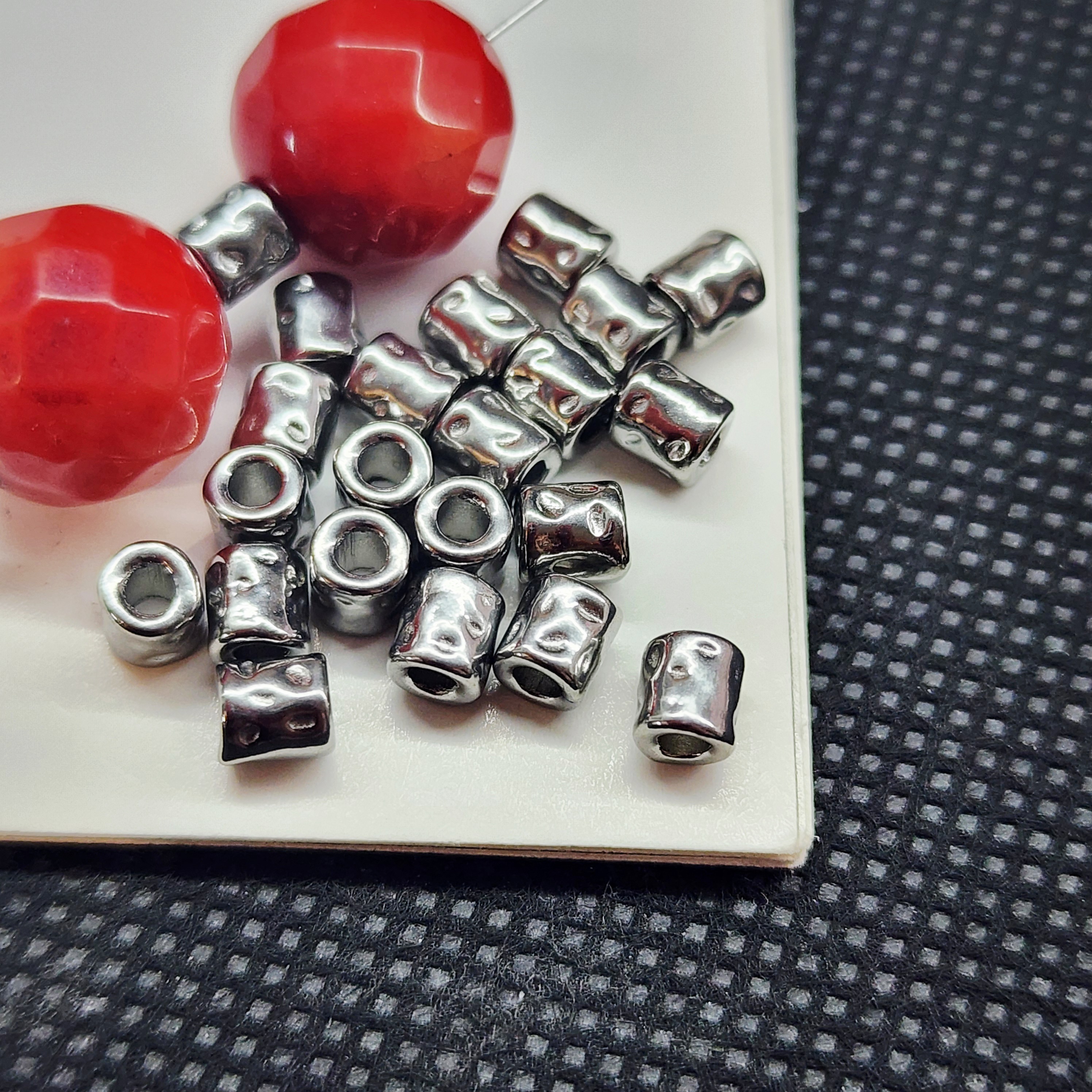 Стильные бусинки тубы, "мятые", форма трубочки, размер 4×4мм, отверстие 1.6мм