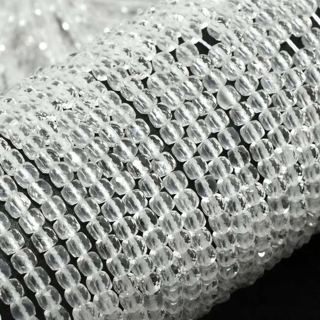 Бусины натурального горного хрусталя (природный кварц), кубик, ювелирная грань, средний размер 4.2 - 4.3мм