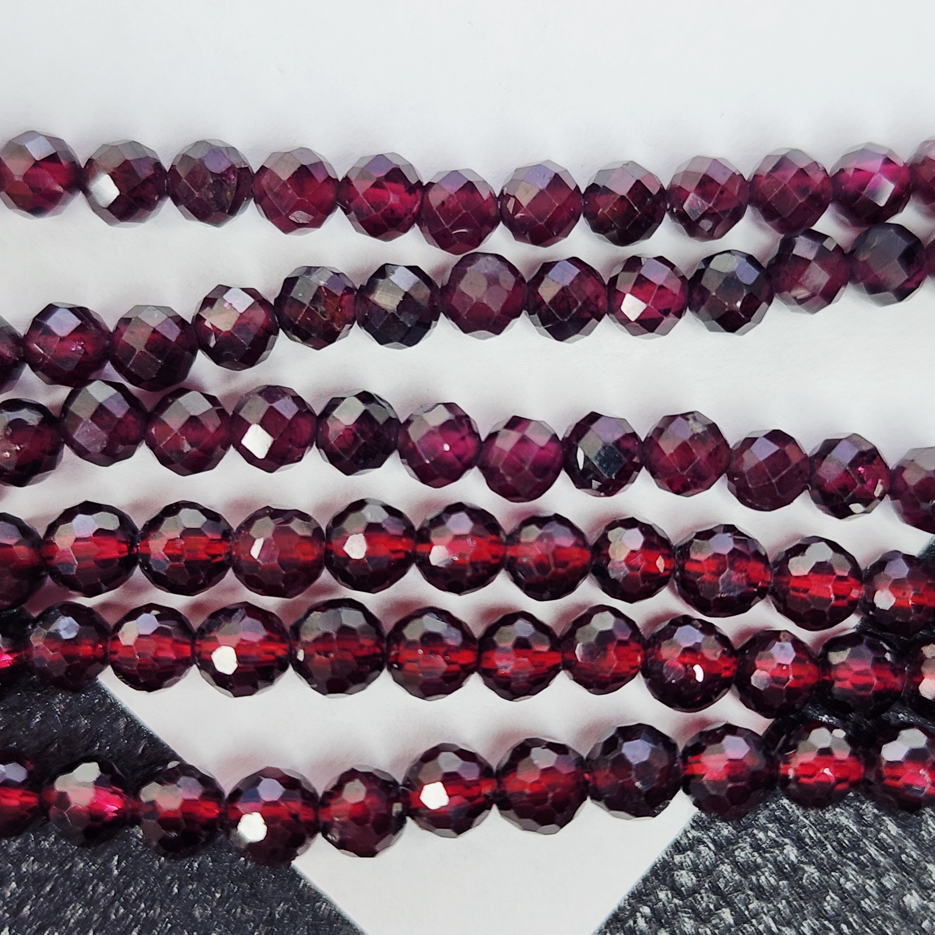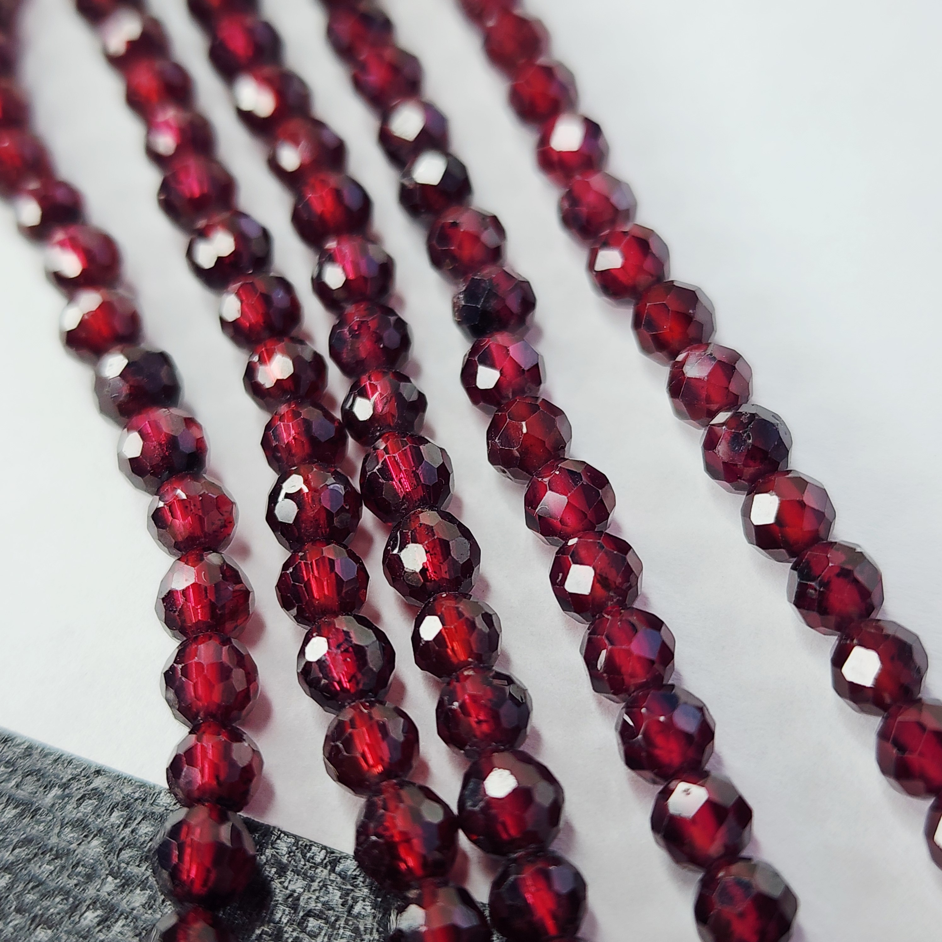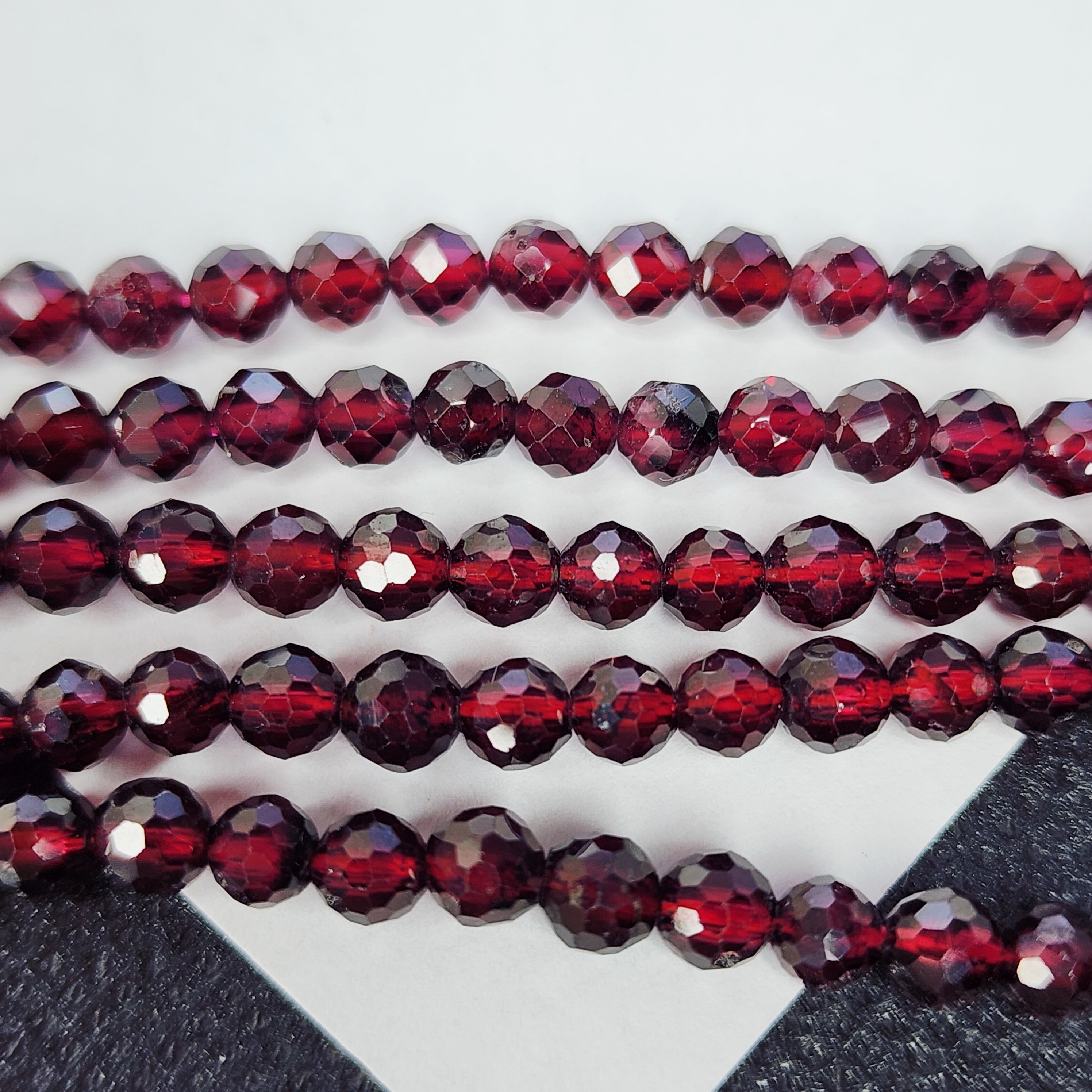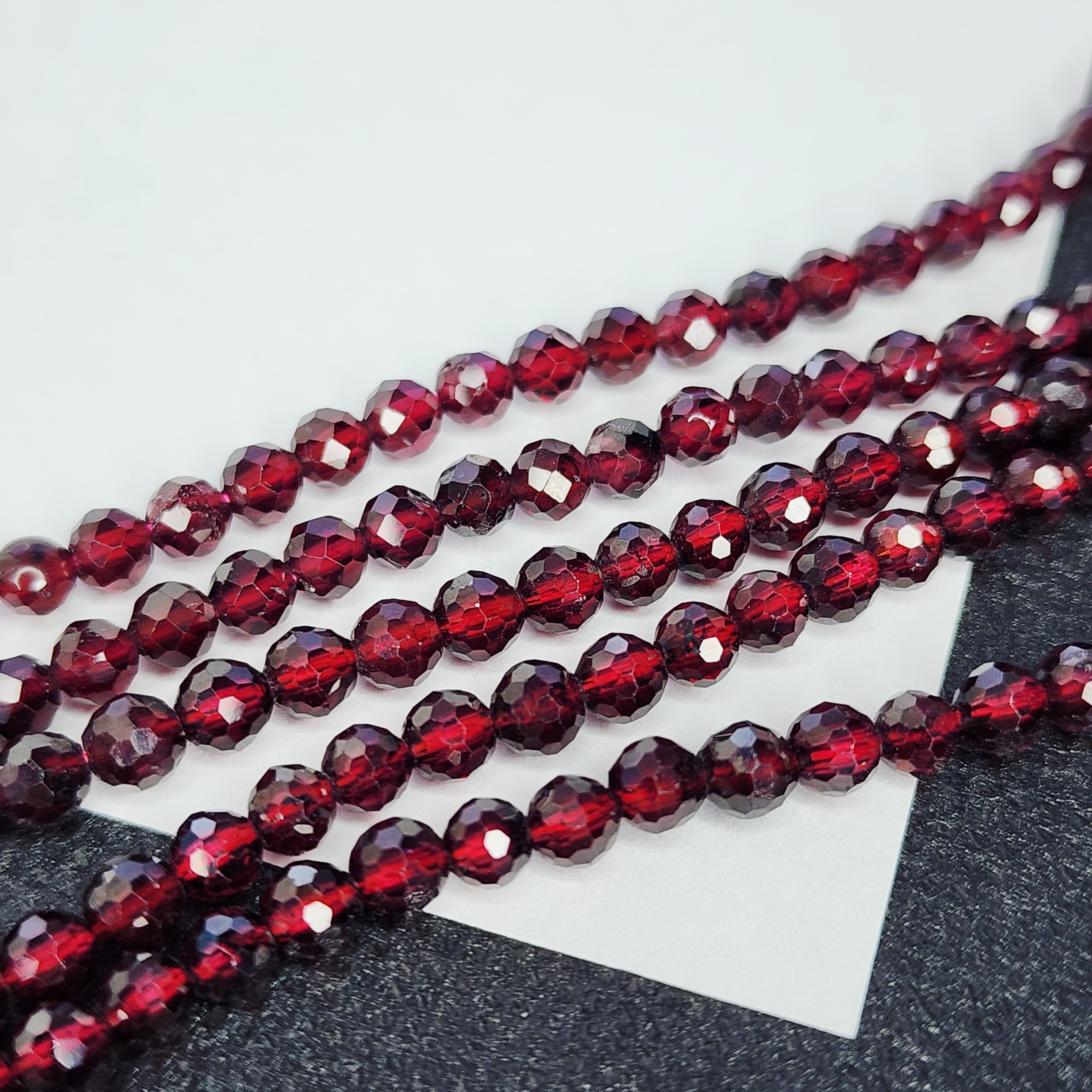 Натуральный гранат альмандин, яркого насыщенного оттенка, преимущественно вишнёво красного, форма шар в ювелирной огранке, средний размер 3.9 - 4.2мм