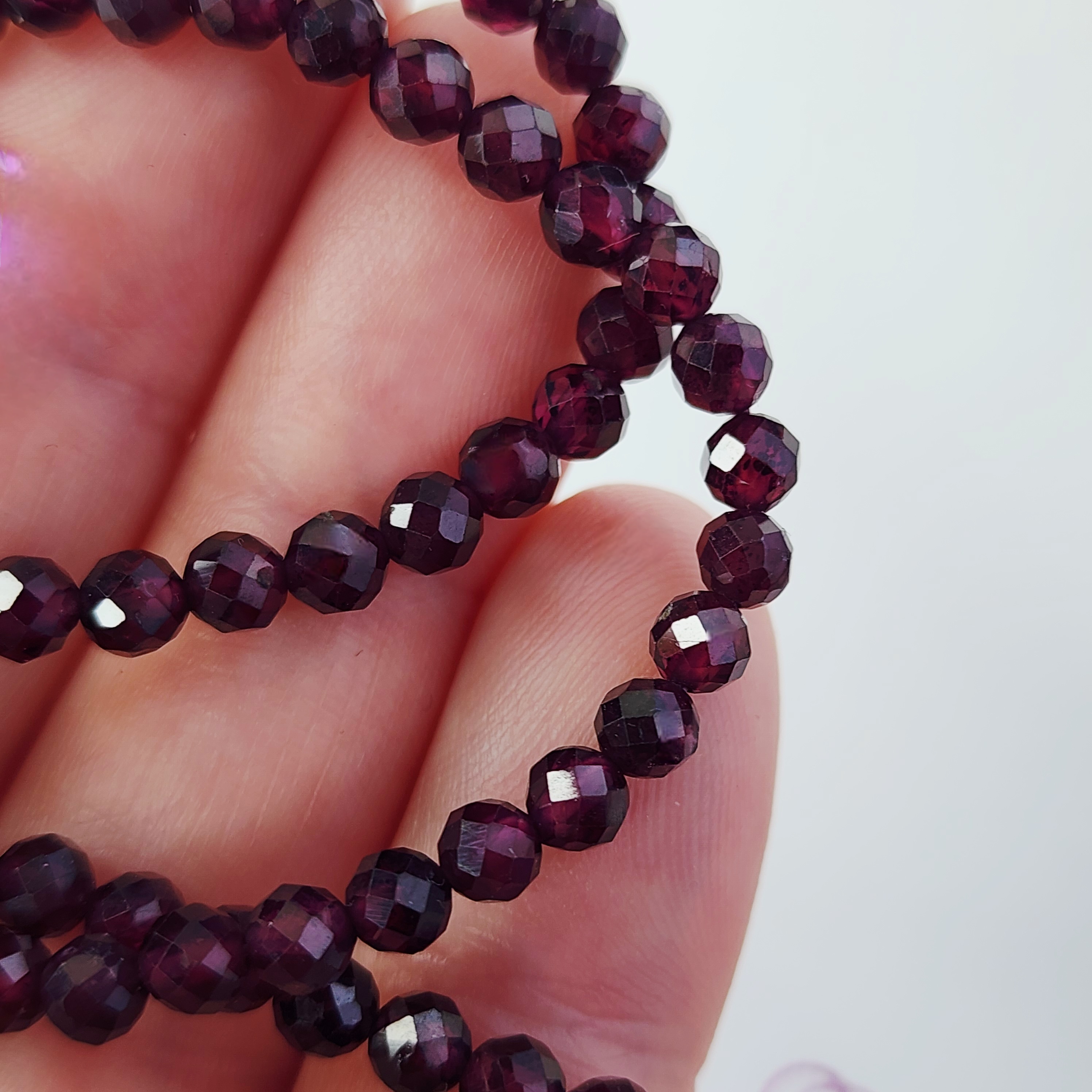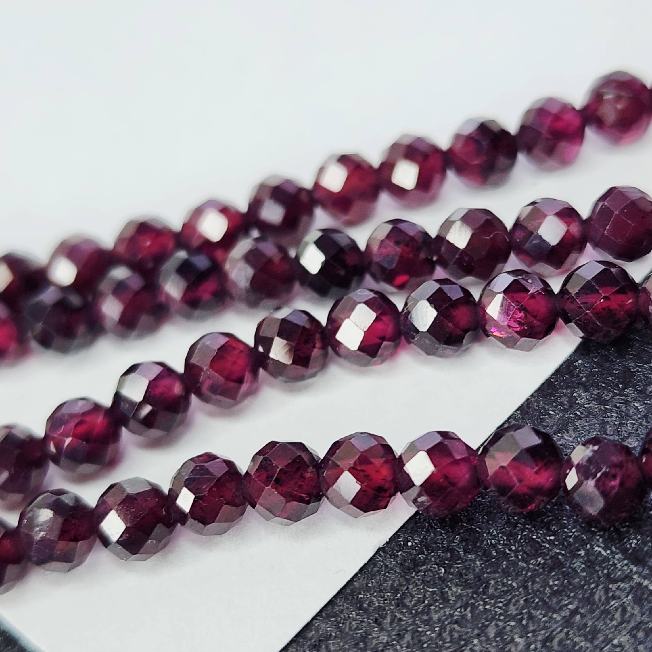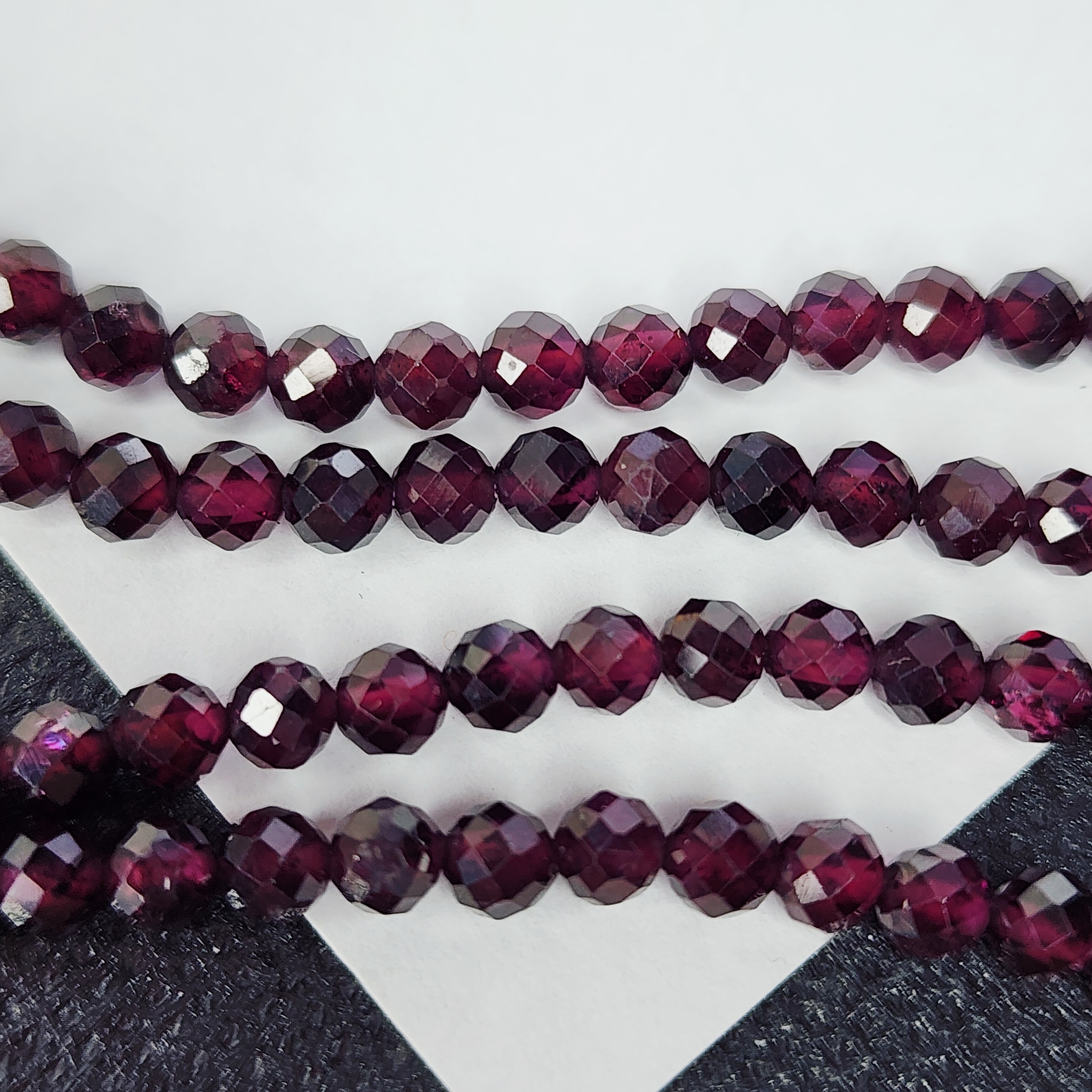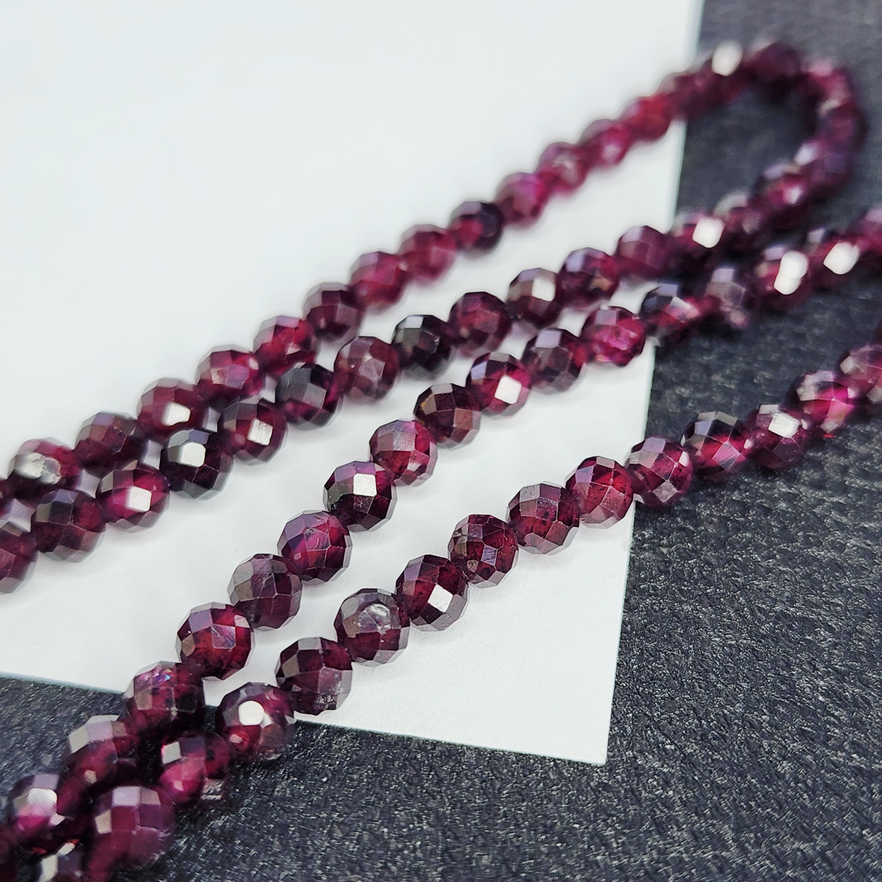 Натуральный гранат альмандин, яркого насыщенного оттенка, преимущественно винного родолитового оттенка, форма шар в ювелирной огранке, средний размер 3.9 - 4.2мм