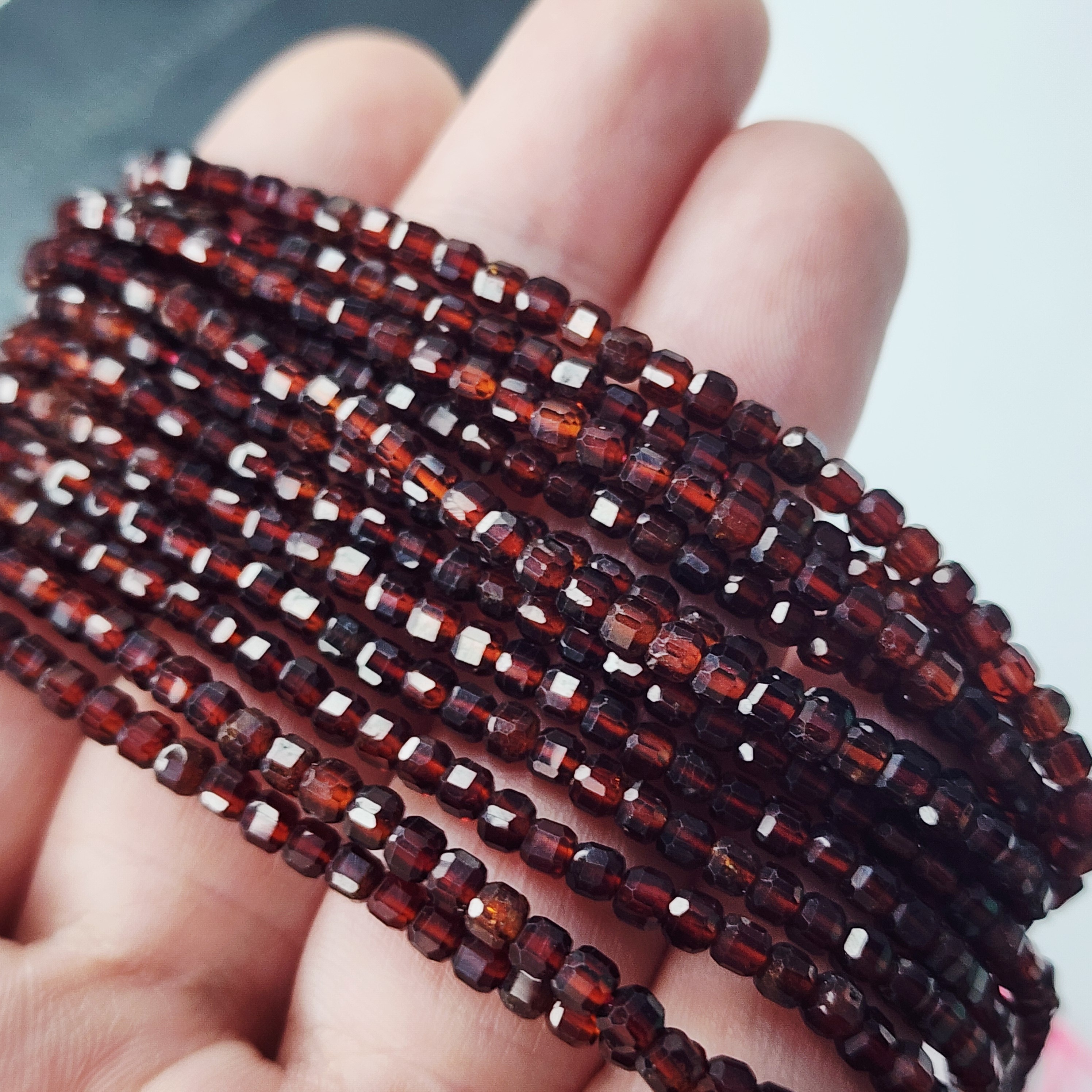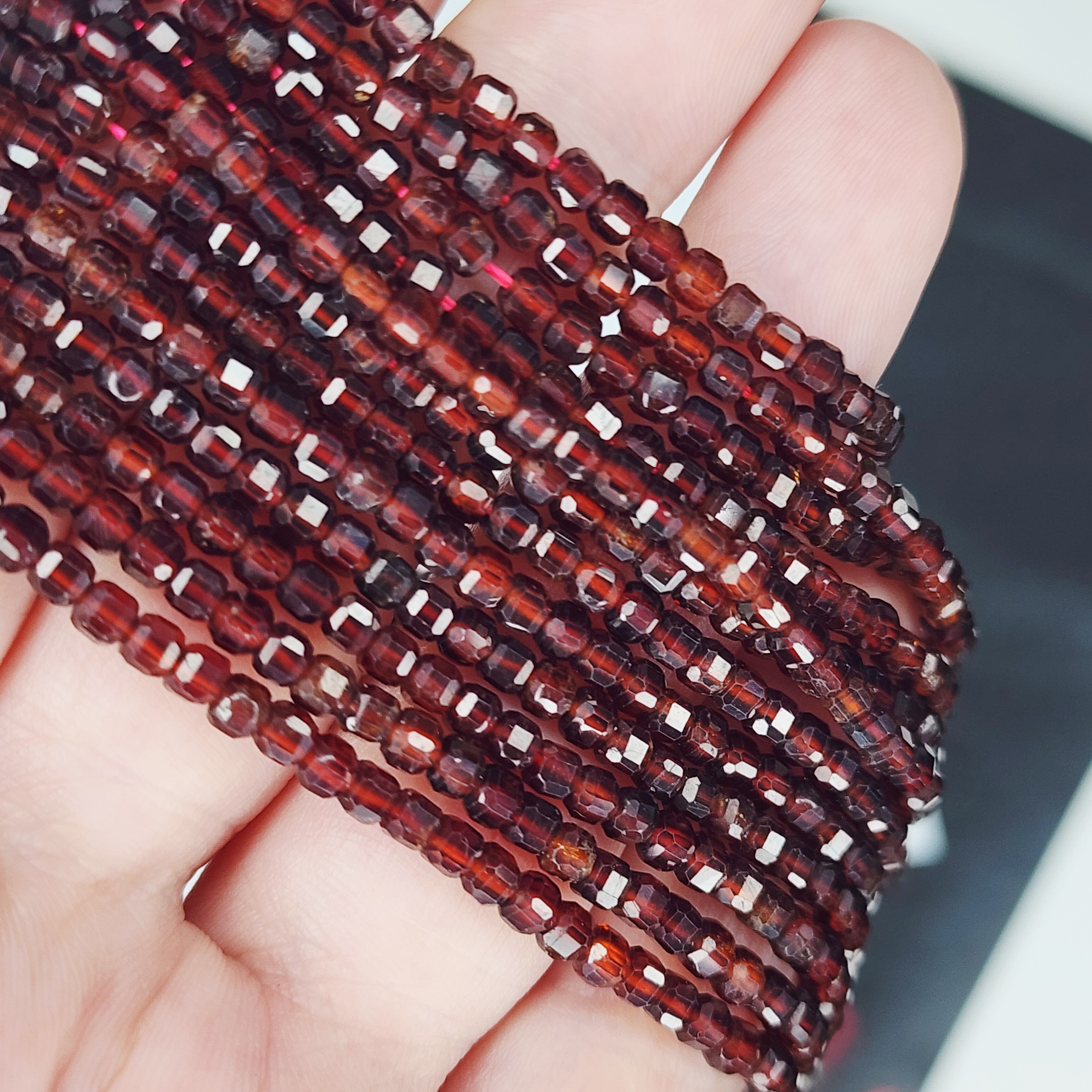 Натуральный гранат Пироп, яркого насыщенного оттенка, в огранке, форма кубик, средний размер 3-3.3мм