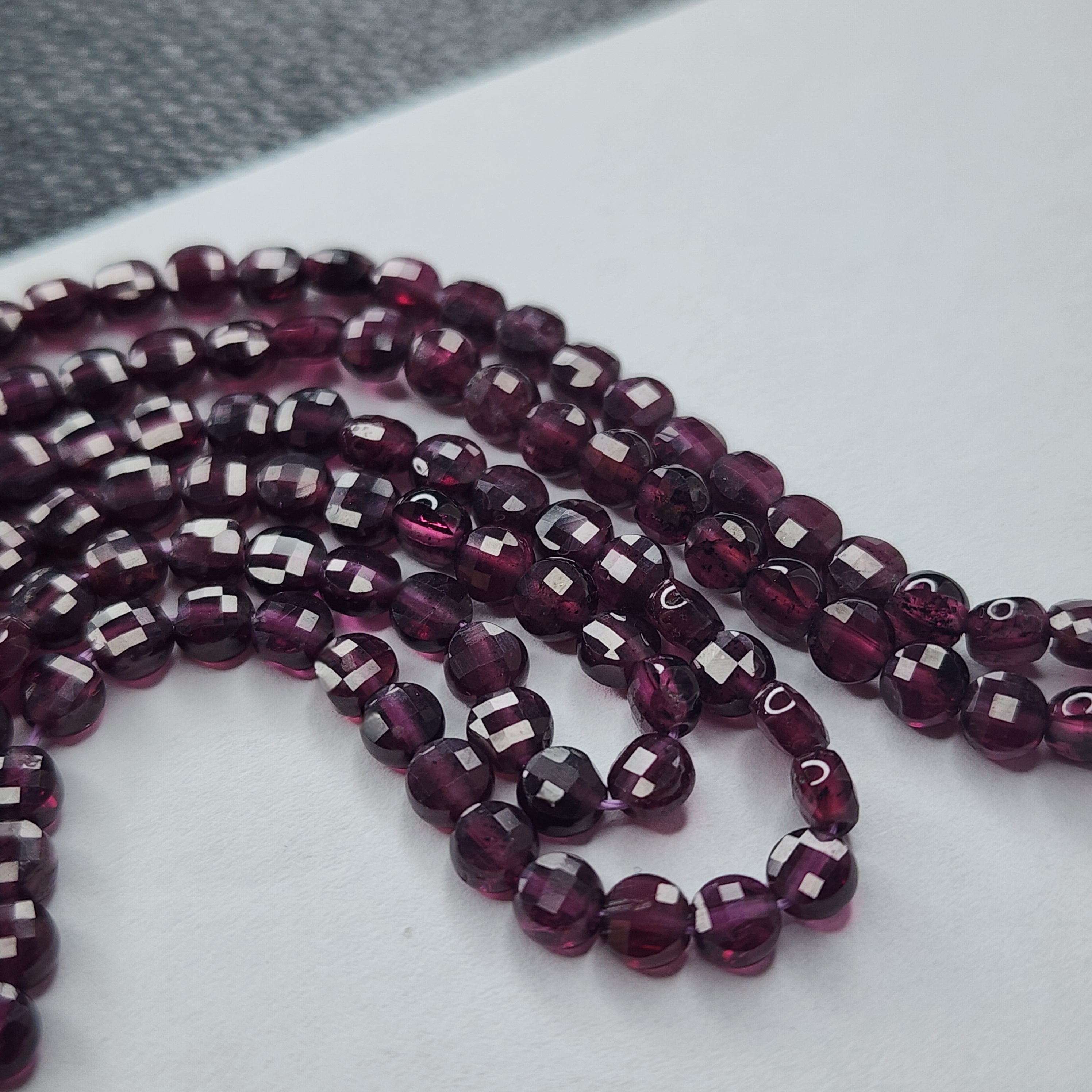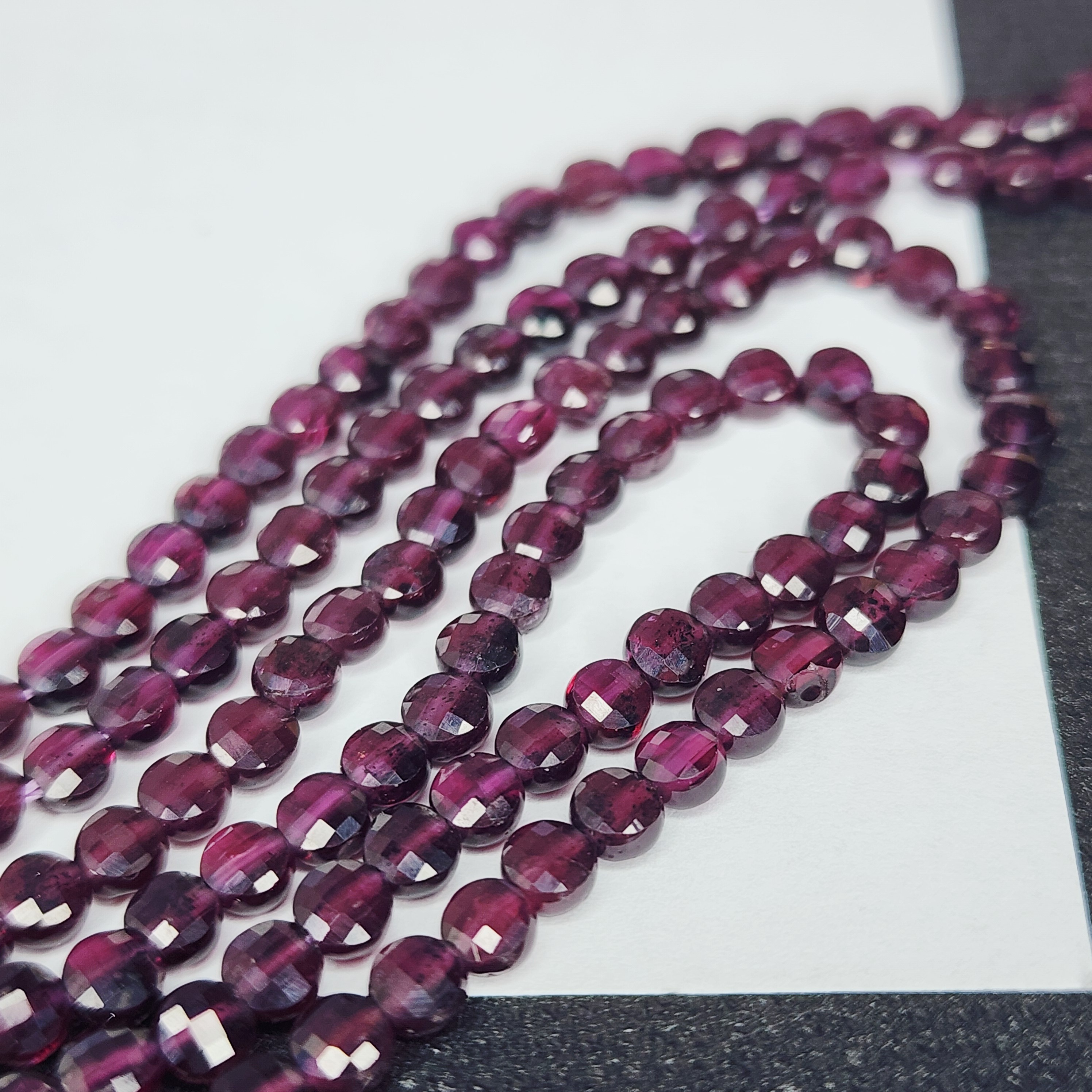 Натуральный гранат родолит, форма плоской таблетки в ювелирной огранке, очень красиво сверкает, средний размер 3.9×2.6мм