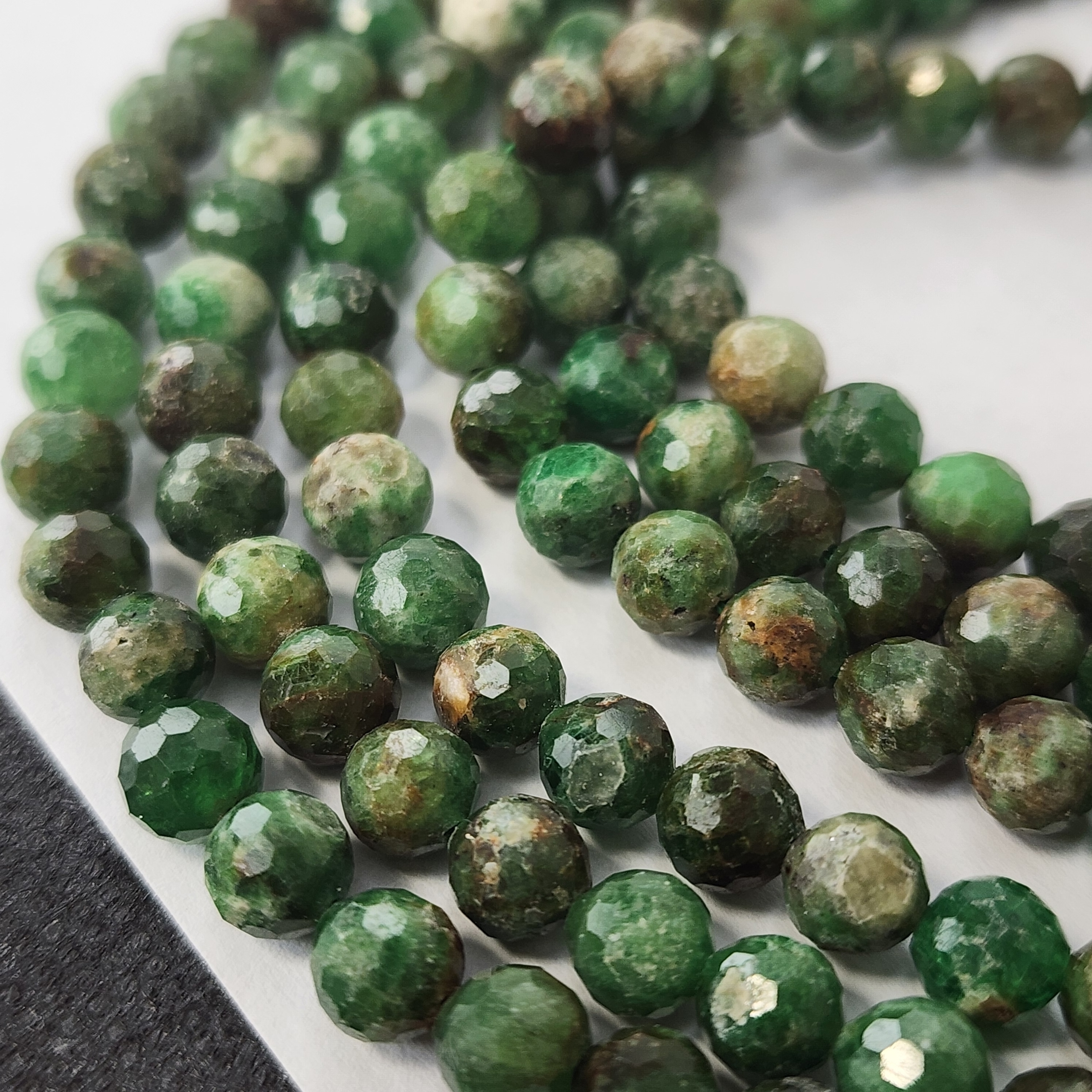 Цаворит — редкий и ценный вид граната зелёного оттенка, который часто сравнивают с изумрудом из-за схожести цвета, средний размер 6.3 - 6.5мм, шар с огранкой.