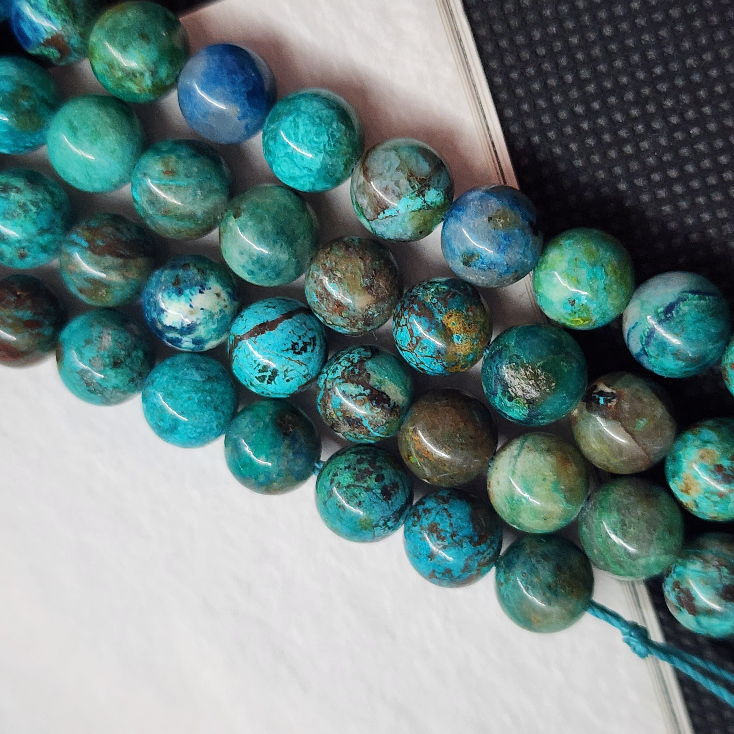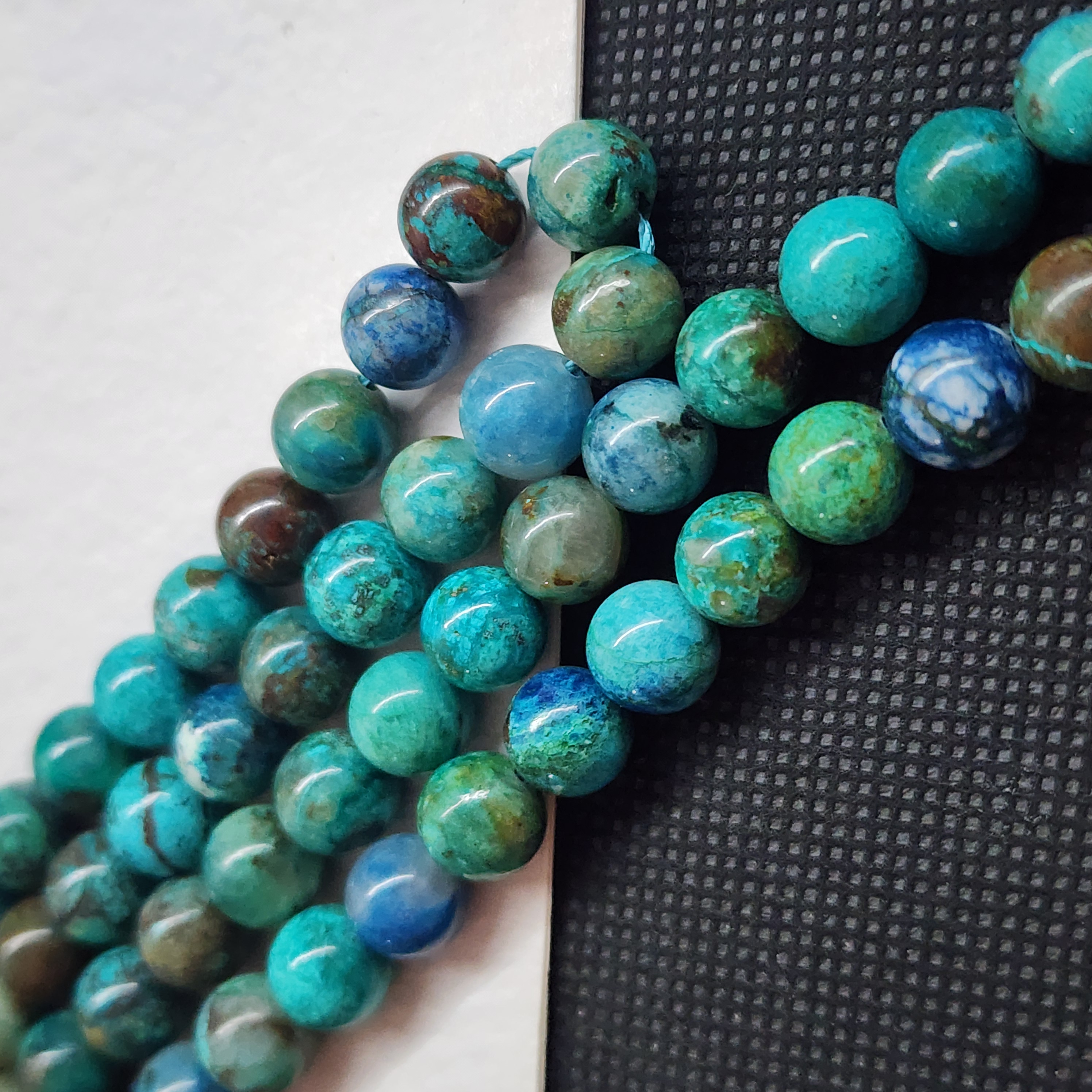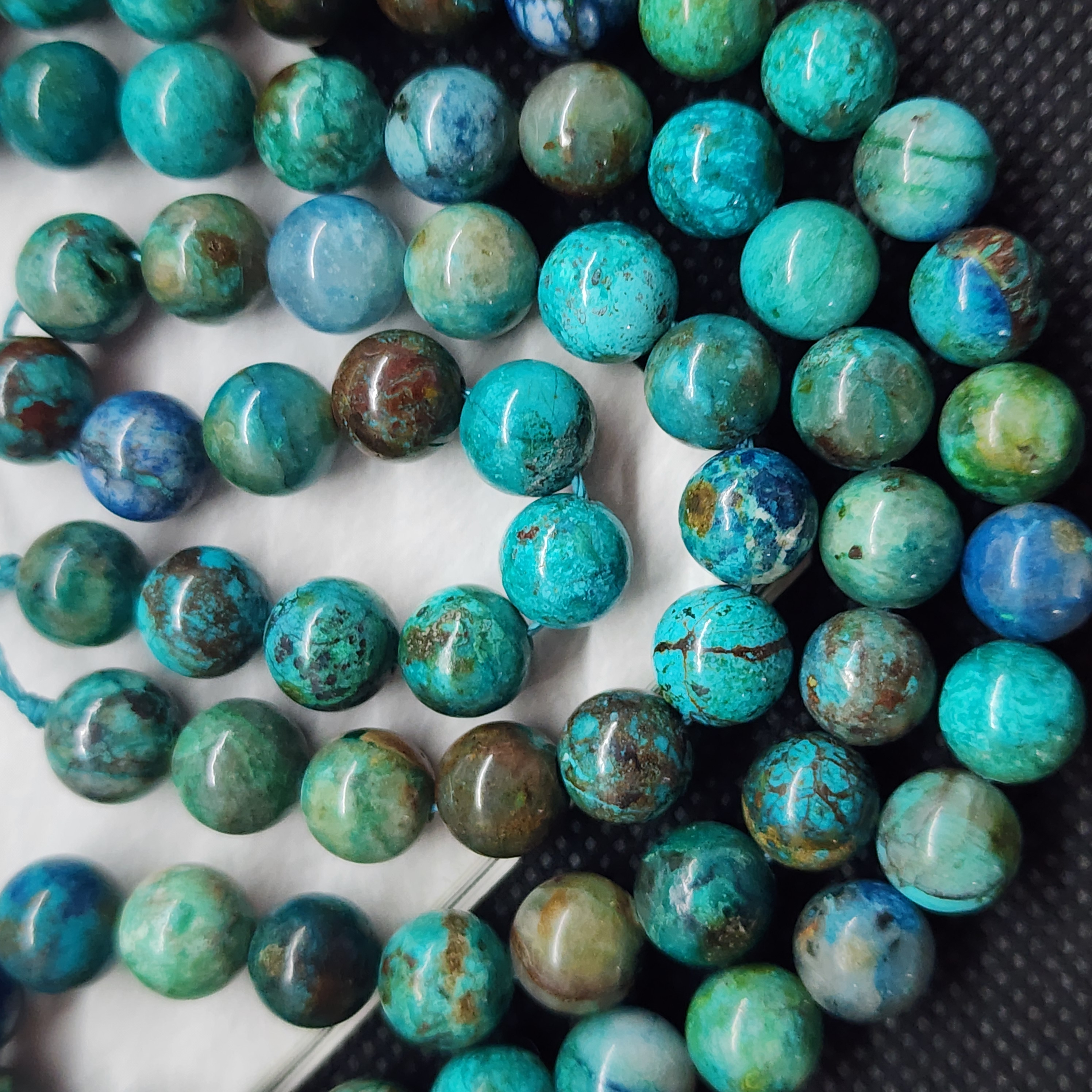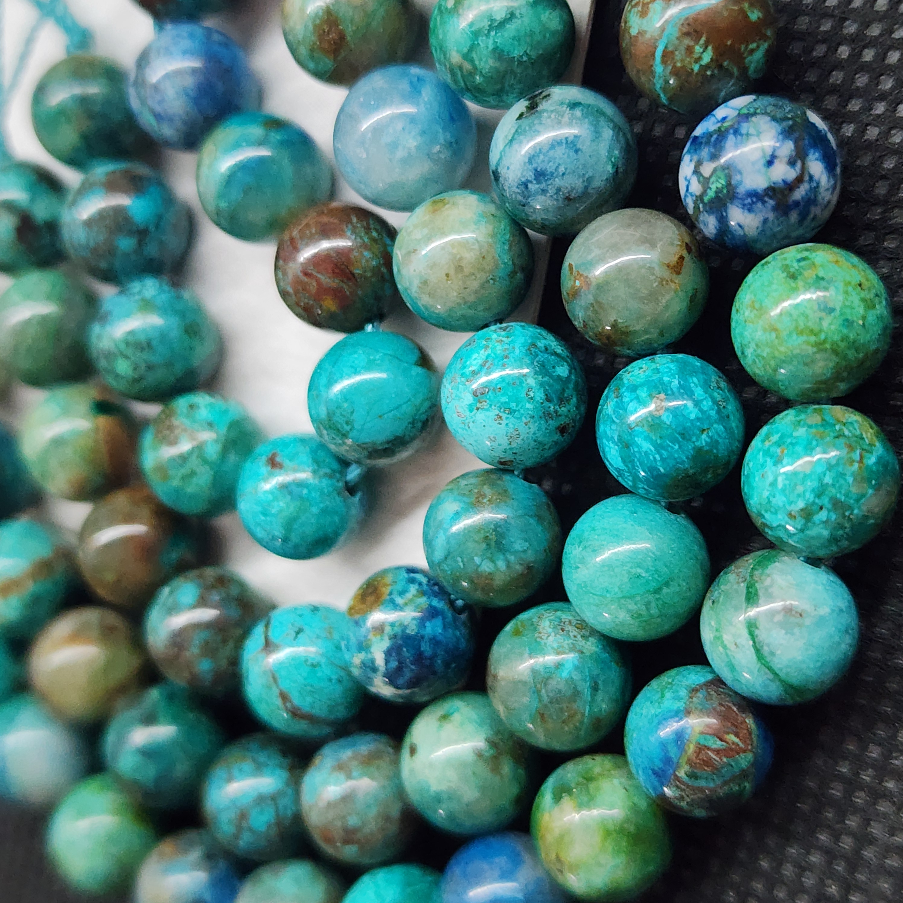 Бусины с природной хризоколлой (Перу), яркая и очень красивая, средний размер бусины 8.5 - 8.7мм