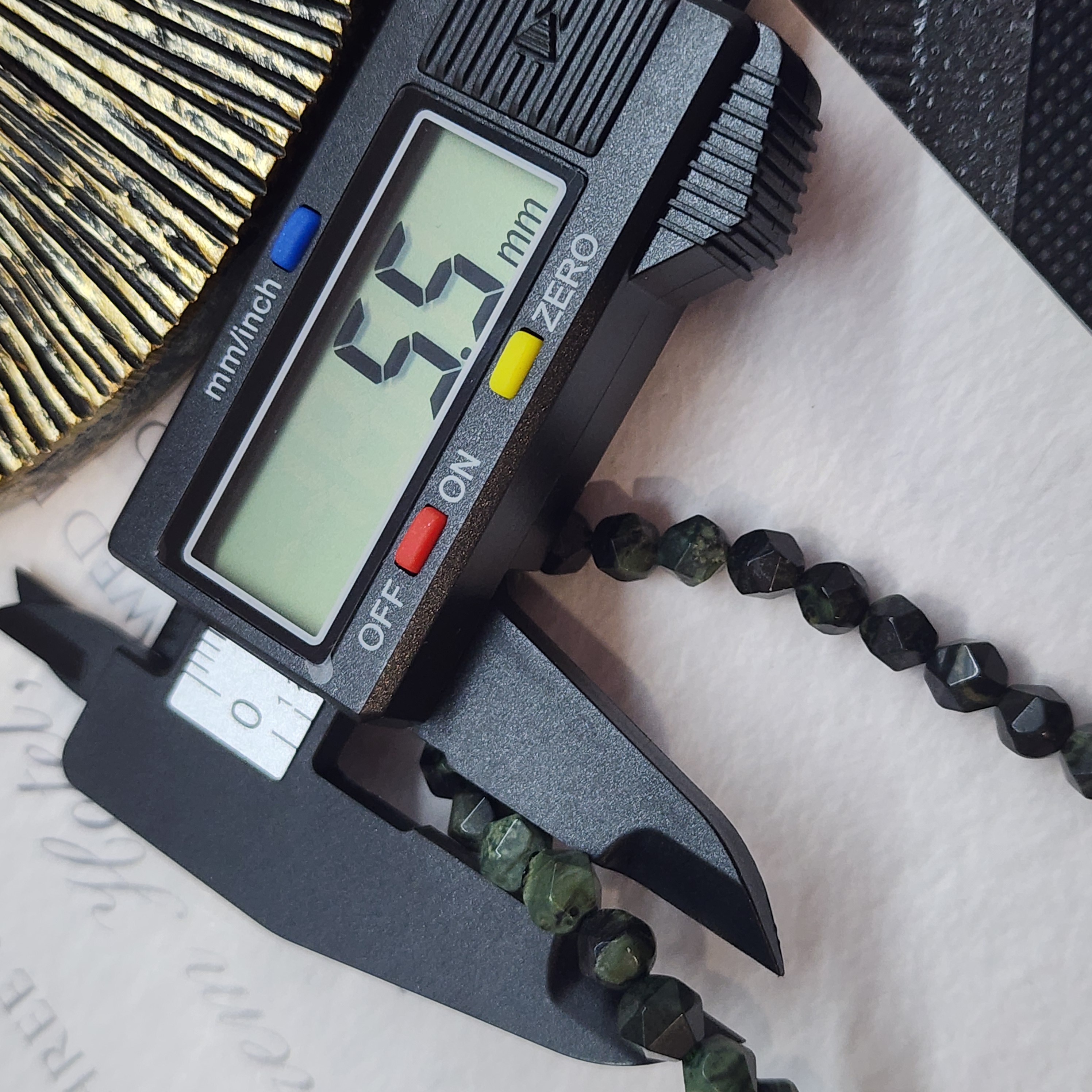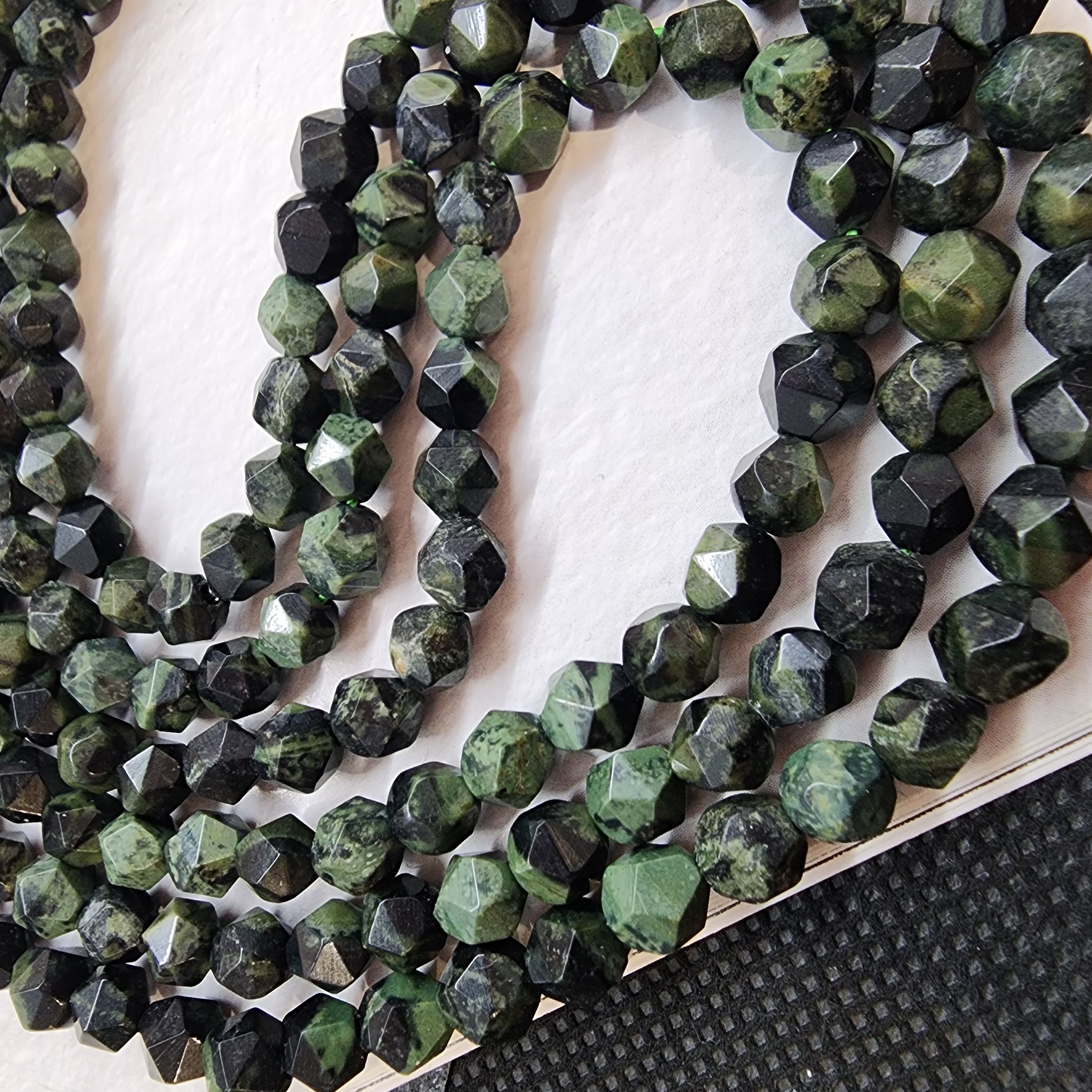 Красивые небольшие многогранники зелёно - чёрных риолитов под распространенным торговым названием "яшма камбаба" или "крокодиловая яшма", средний размер 5.2 - 5.5мм