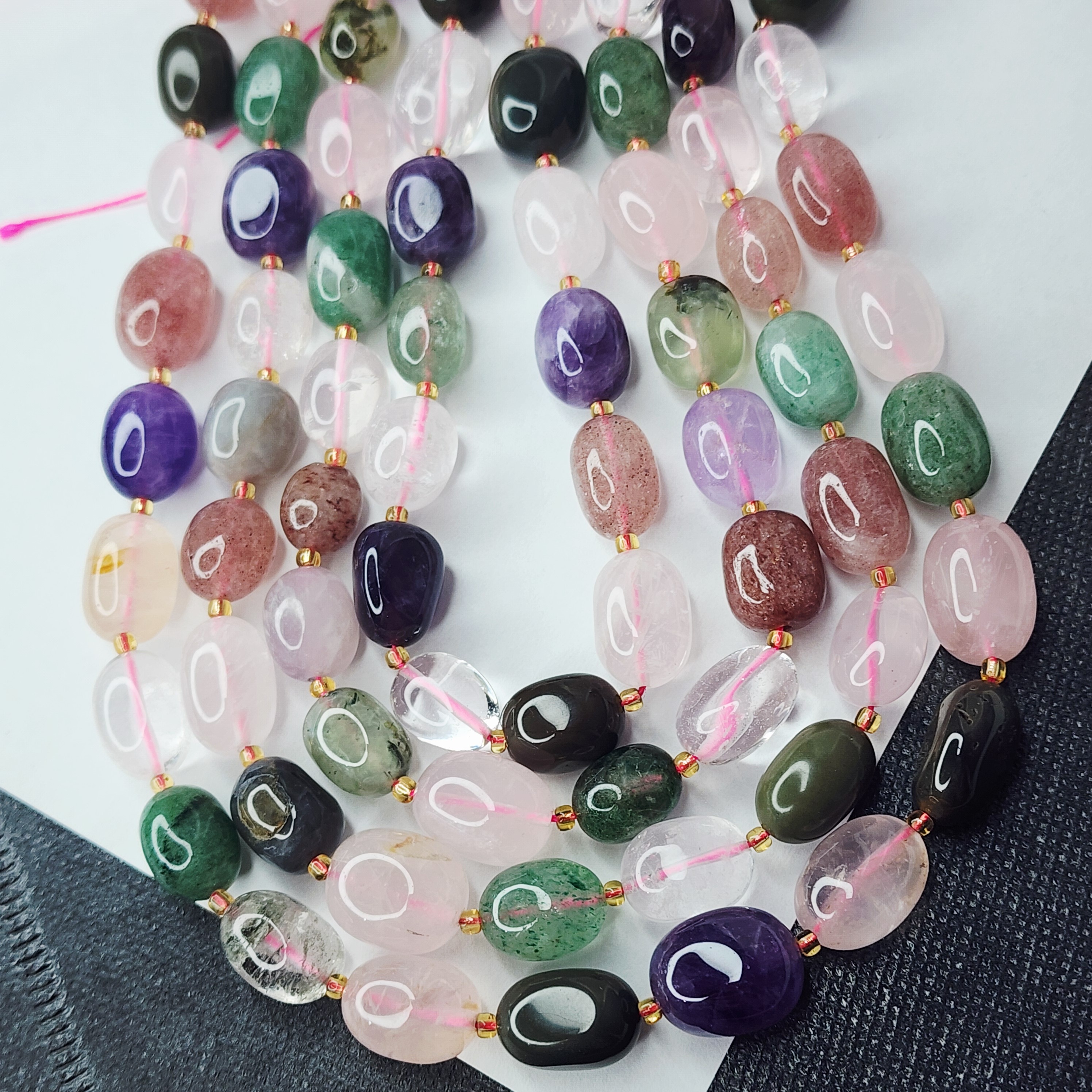 Средний размер галтовки: 12 - 15 мм × 10×12 мм - в нити в среднем 7 - 8 камушков (если покрупнее то 7, если попадаются помельче, то может быть и 8 и 9 шт)