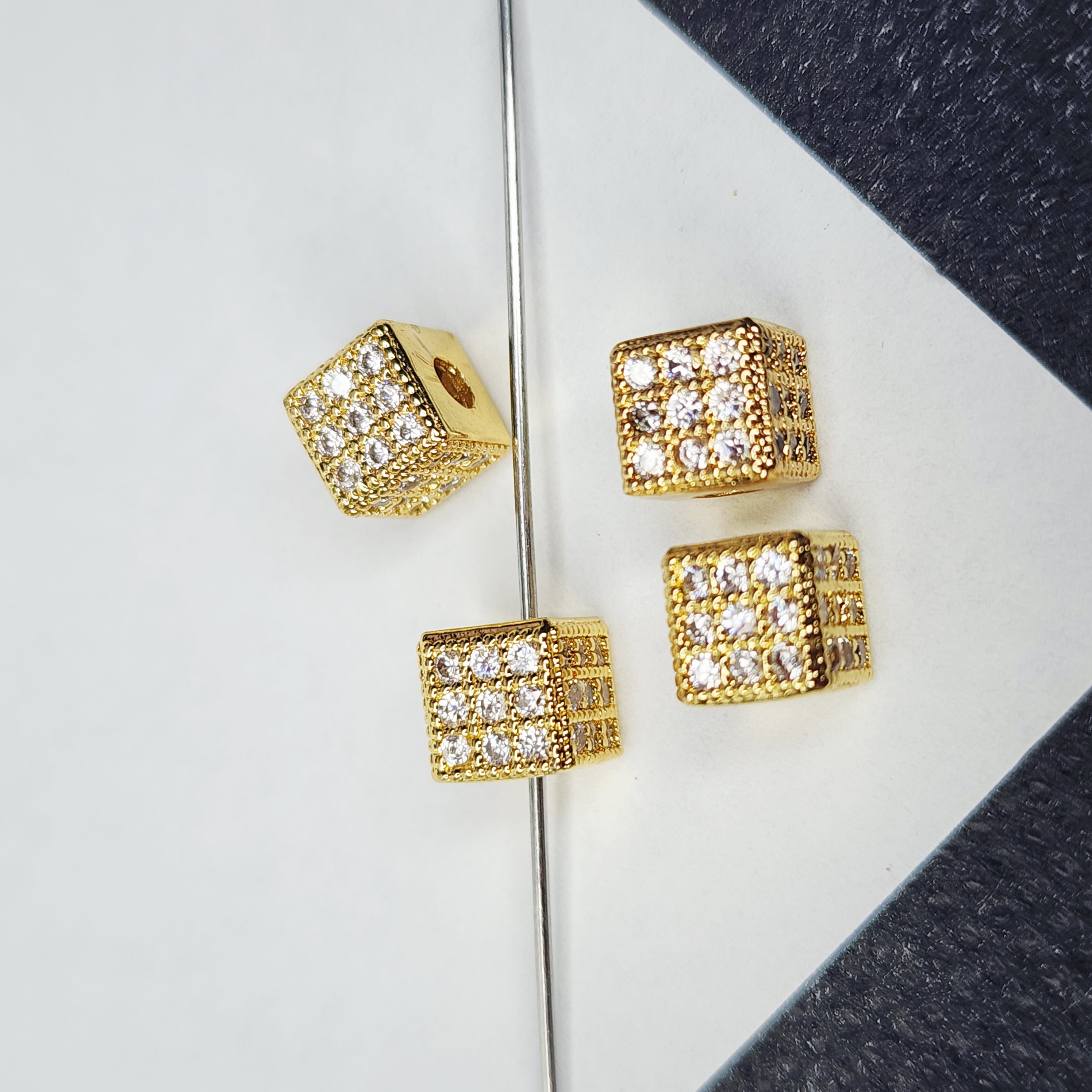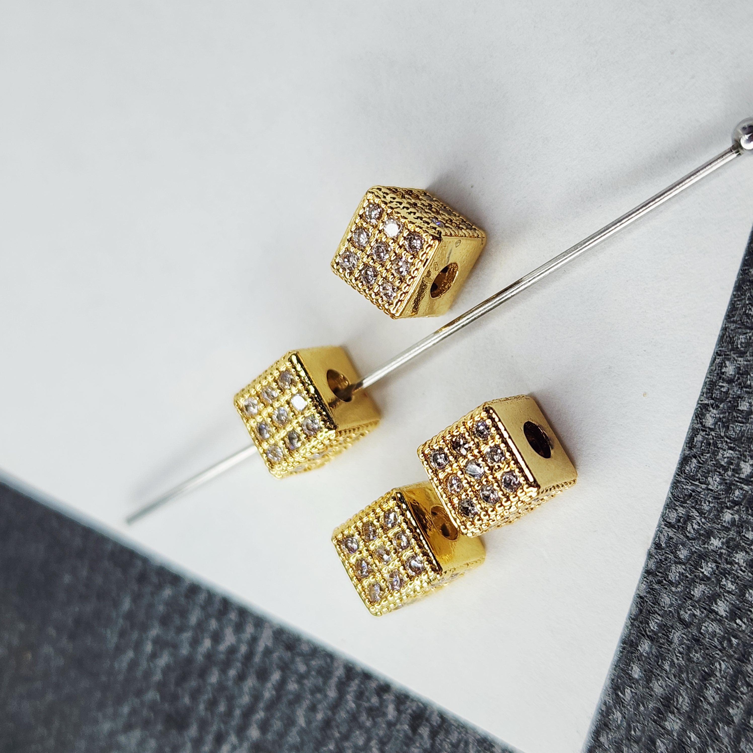 Кубик с фианитами, проставочная бусина, размер 6мм