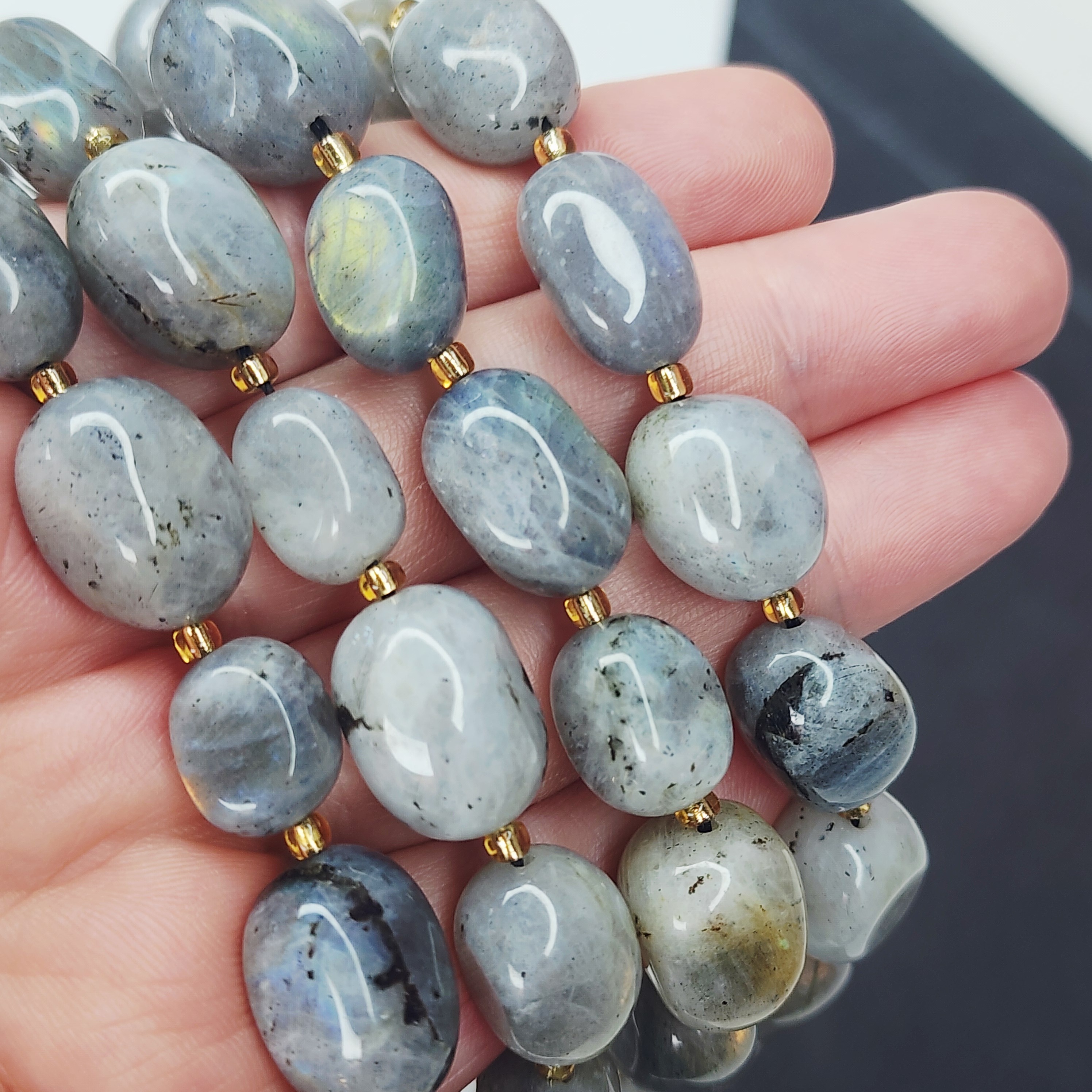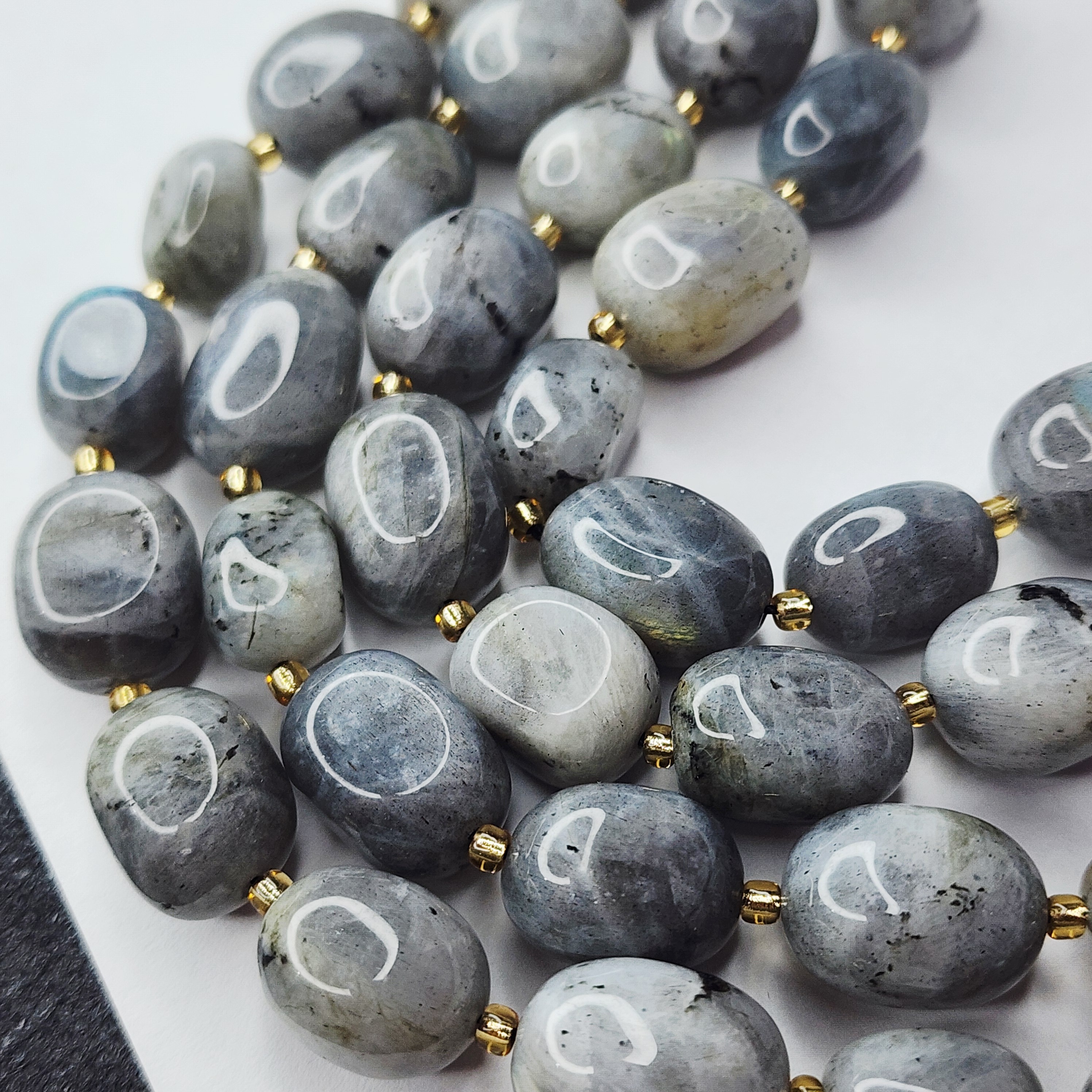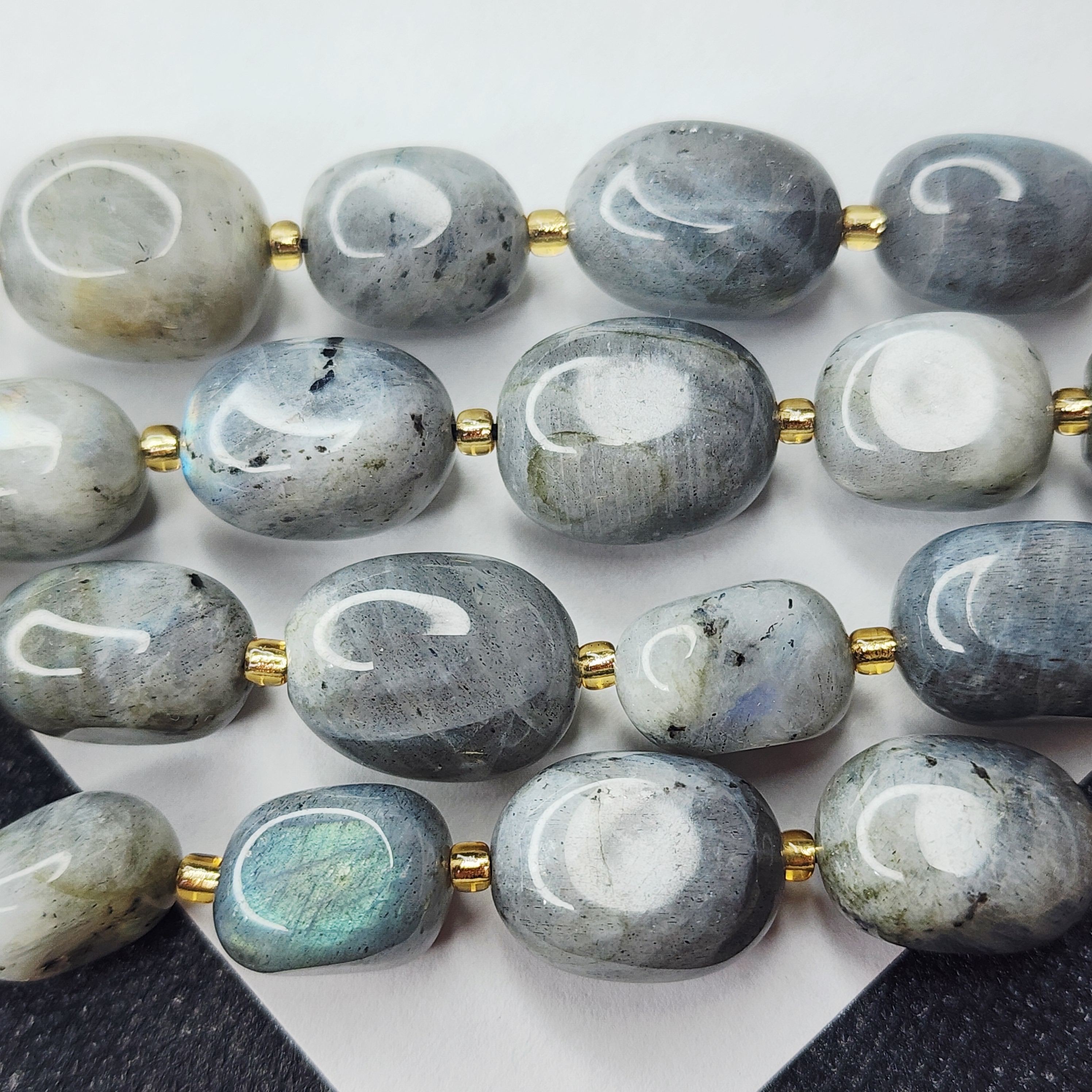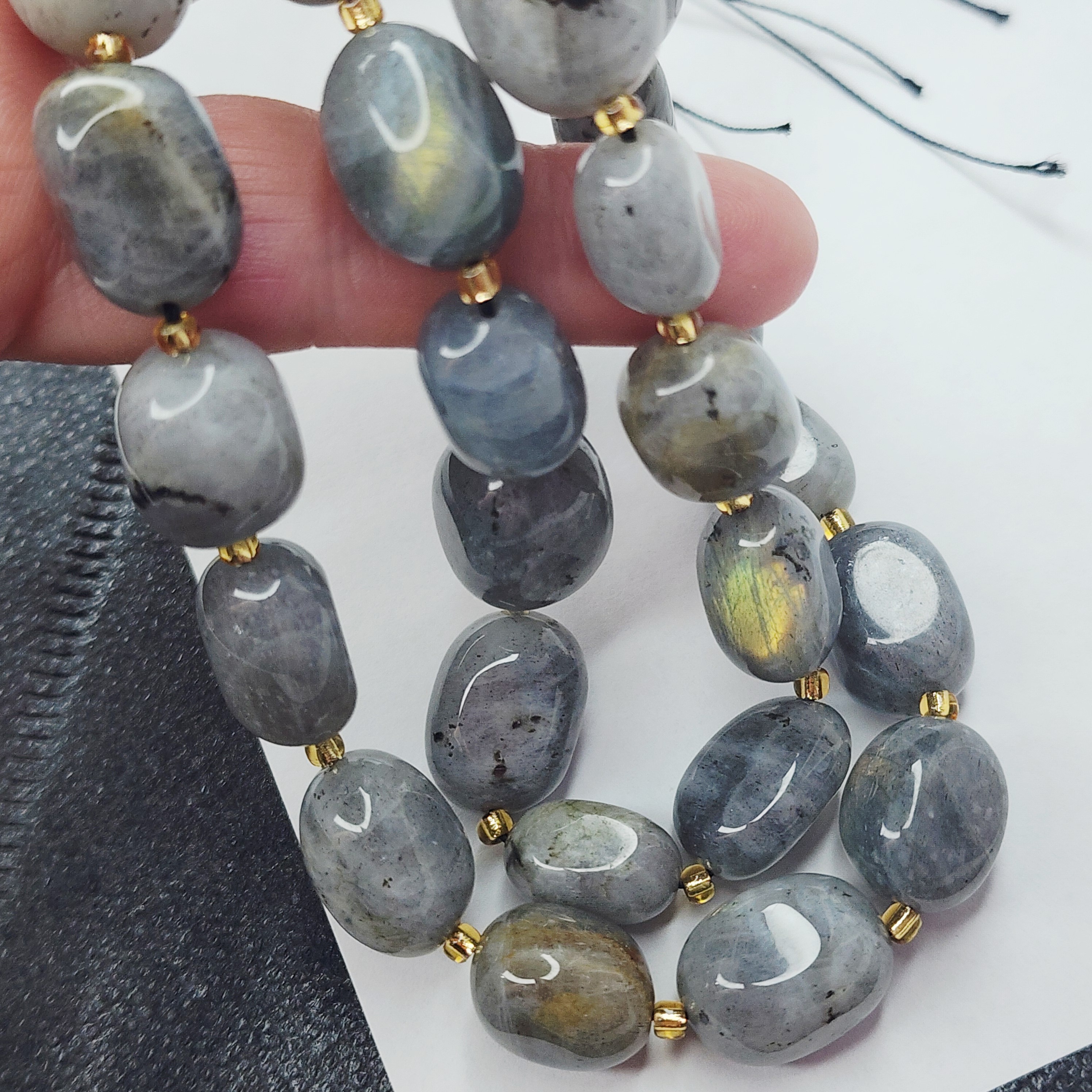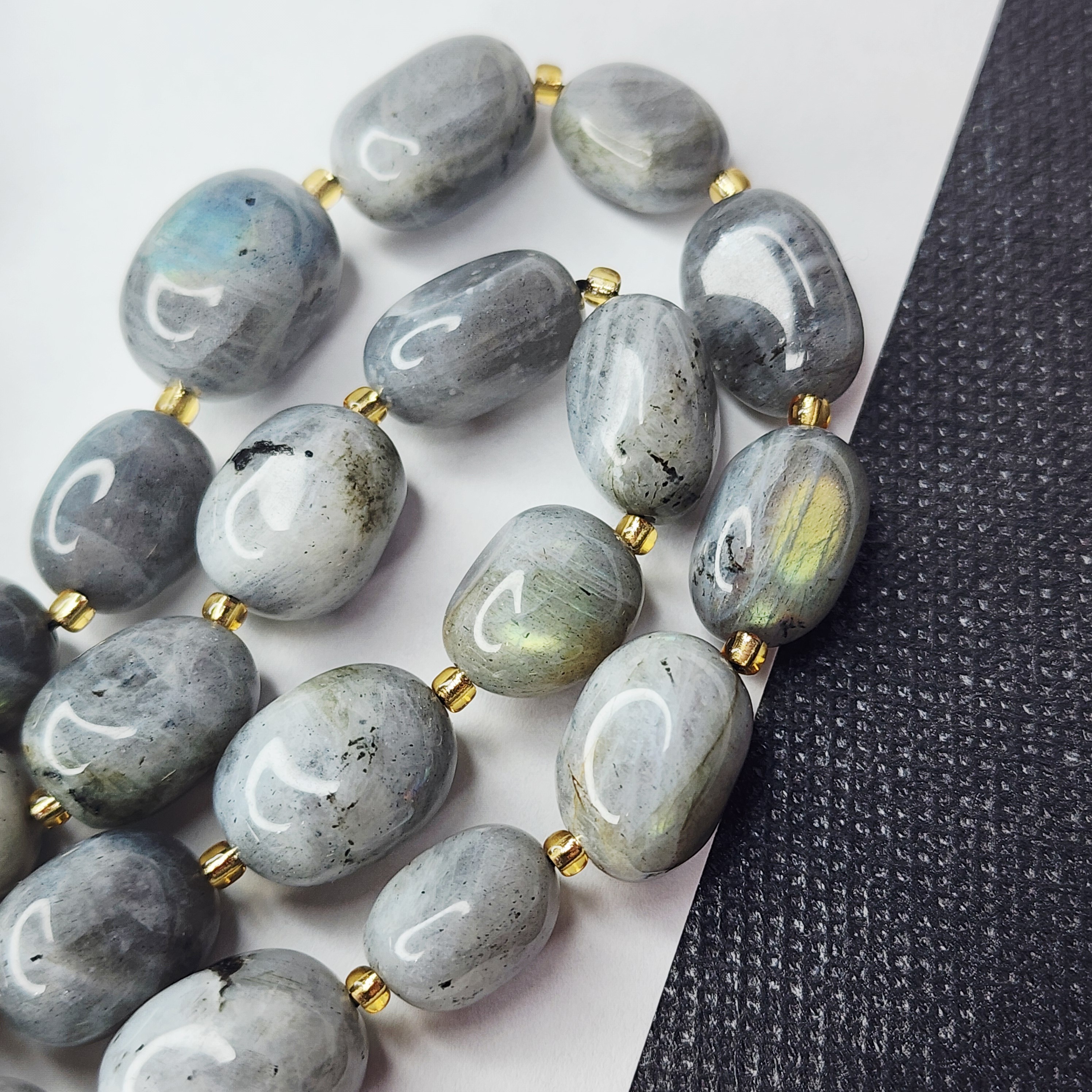 Лабрадор (лабрадорит) давно любим рукодельницами всего мира, рекомендуем его использовать для браслетов и колье, а также он чудесно будет смотреться в акцентах украшения