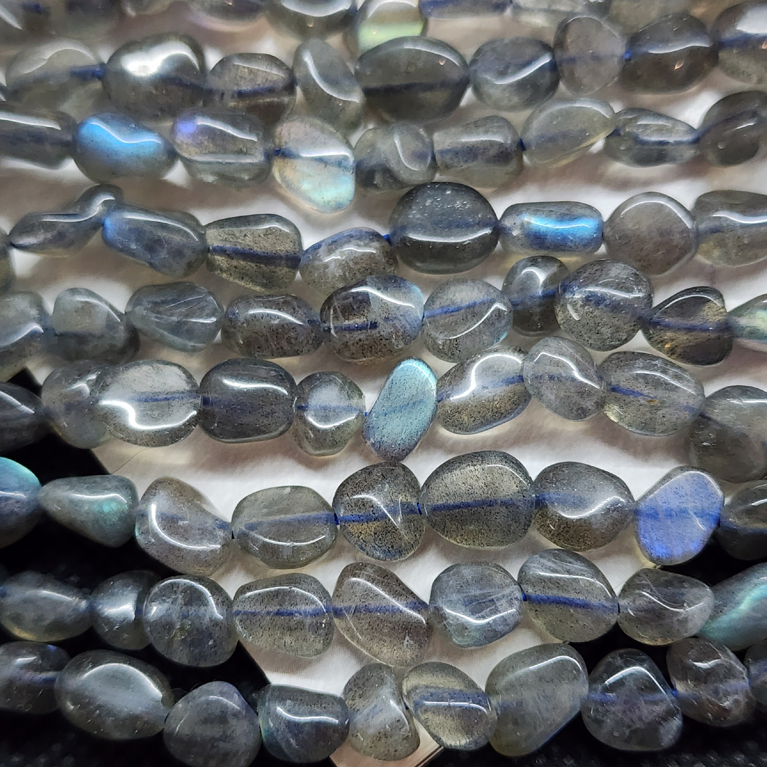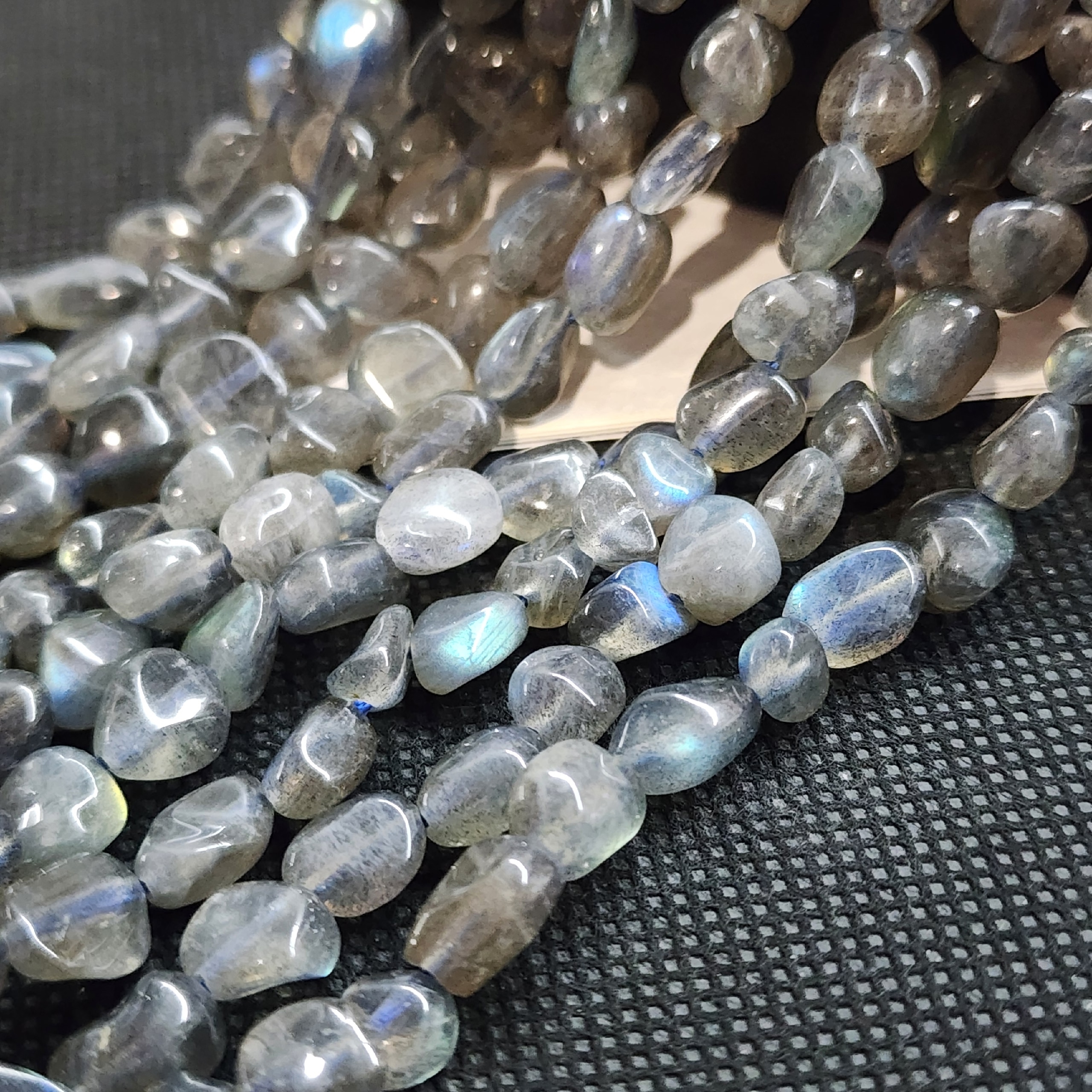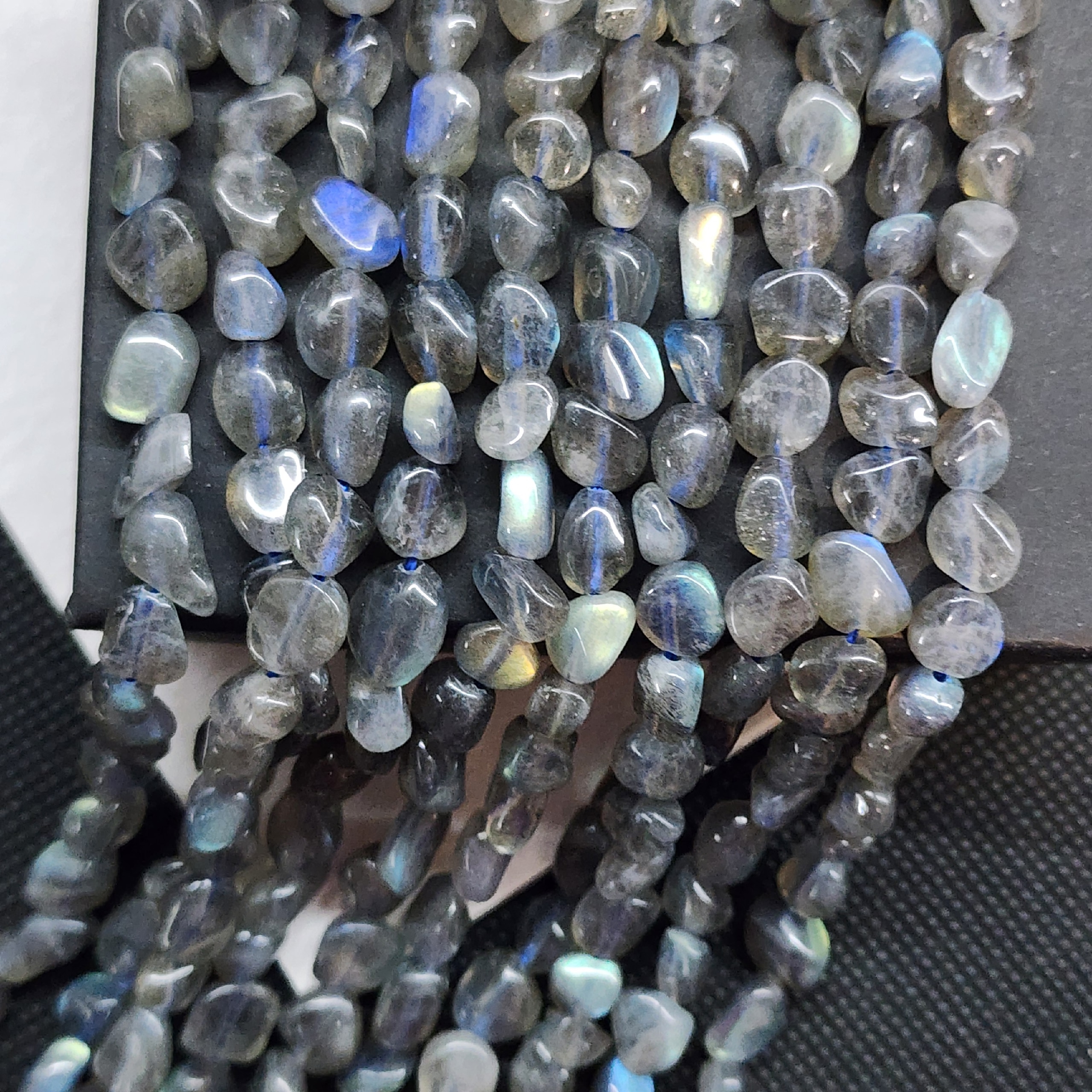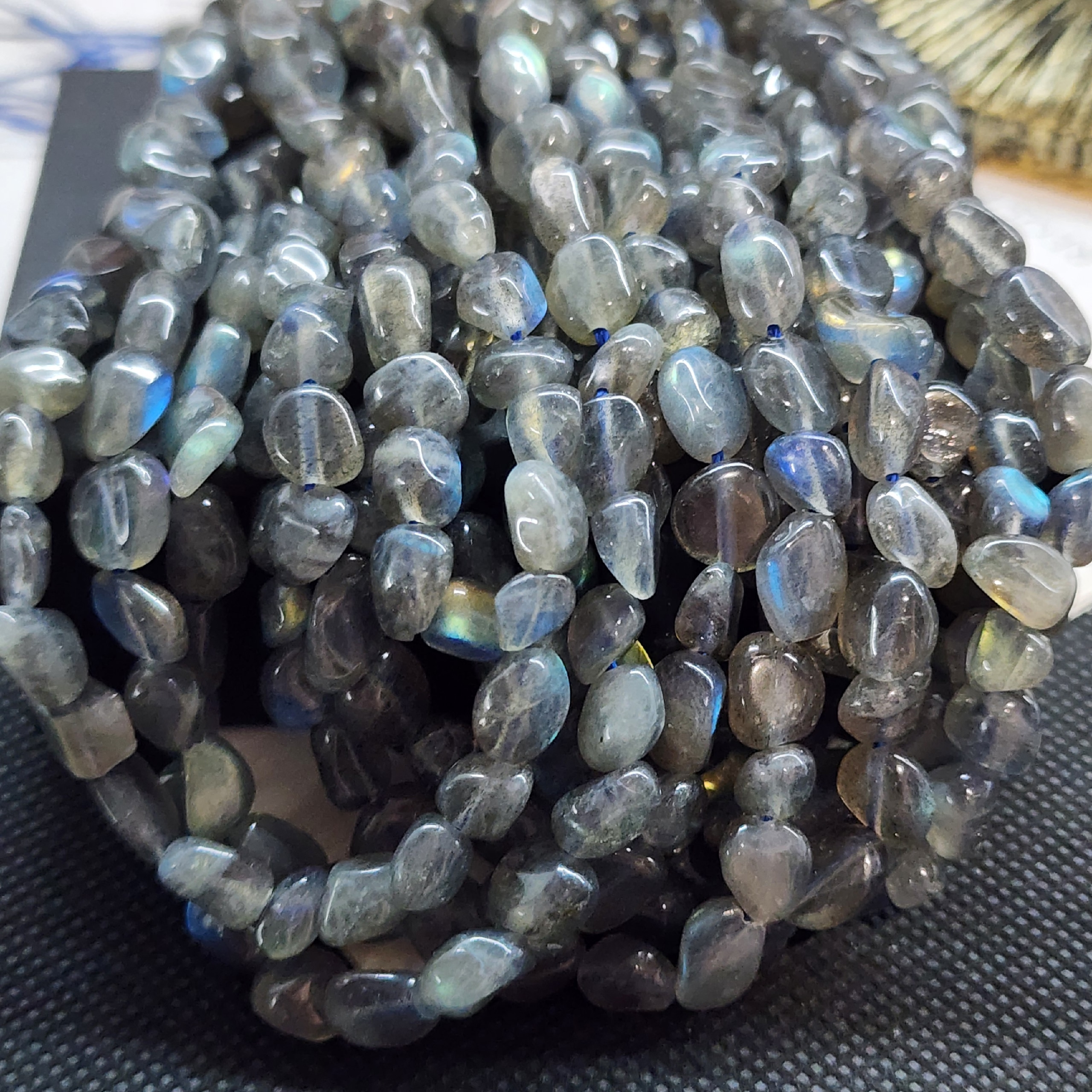 Бусины природного лабрадора с яркой иризацией, средний размер галтовки 6 - 10мм