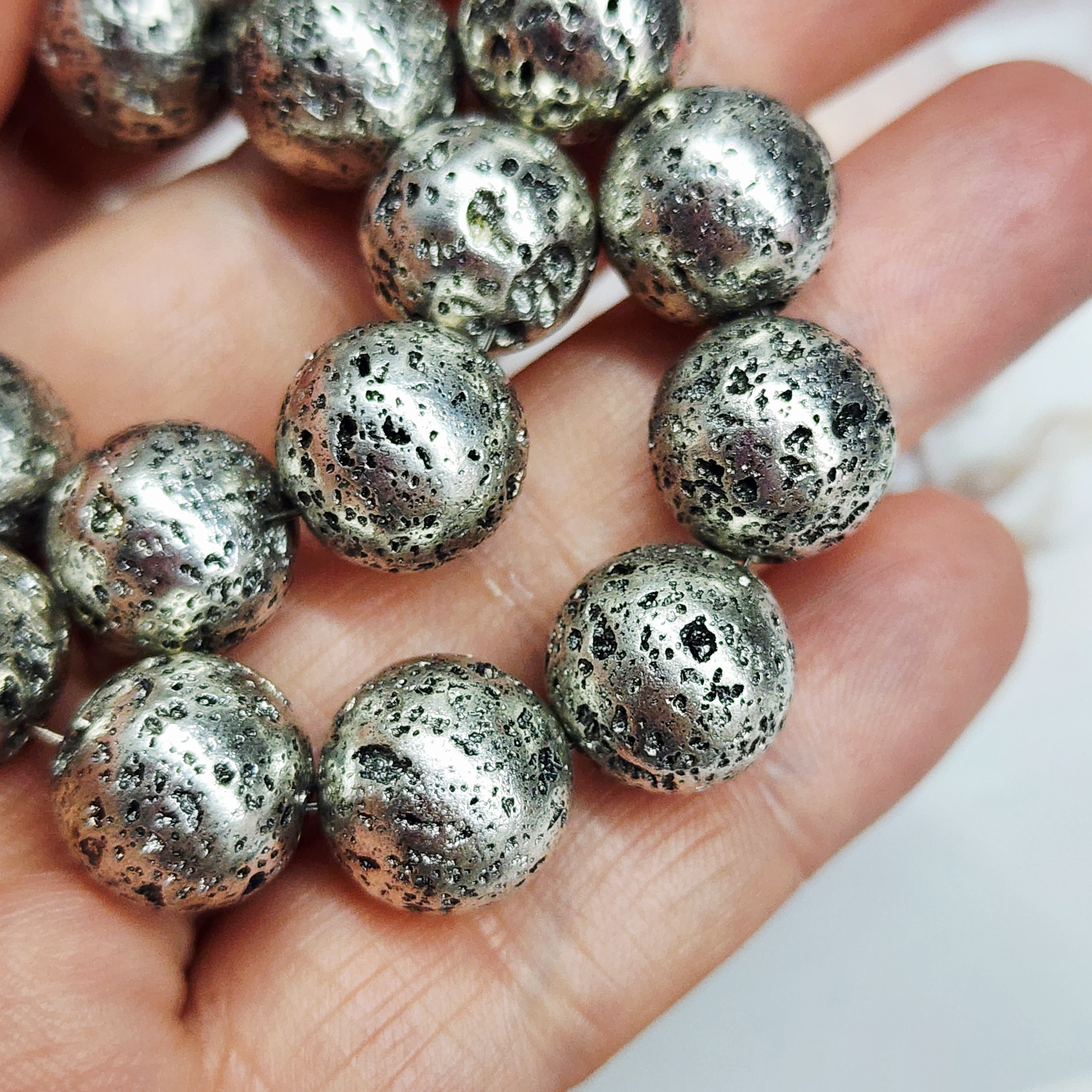 Бусины из натуральной метализированной лавы, которые так похожи на планеты или Луну с её кратерами)