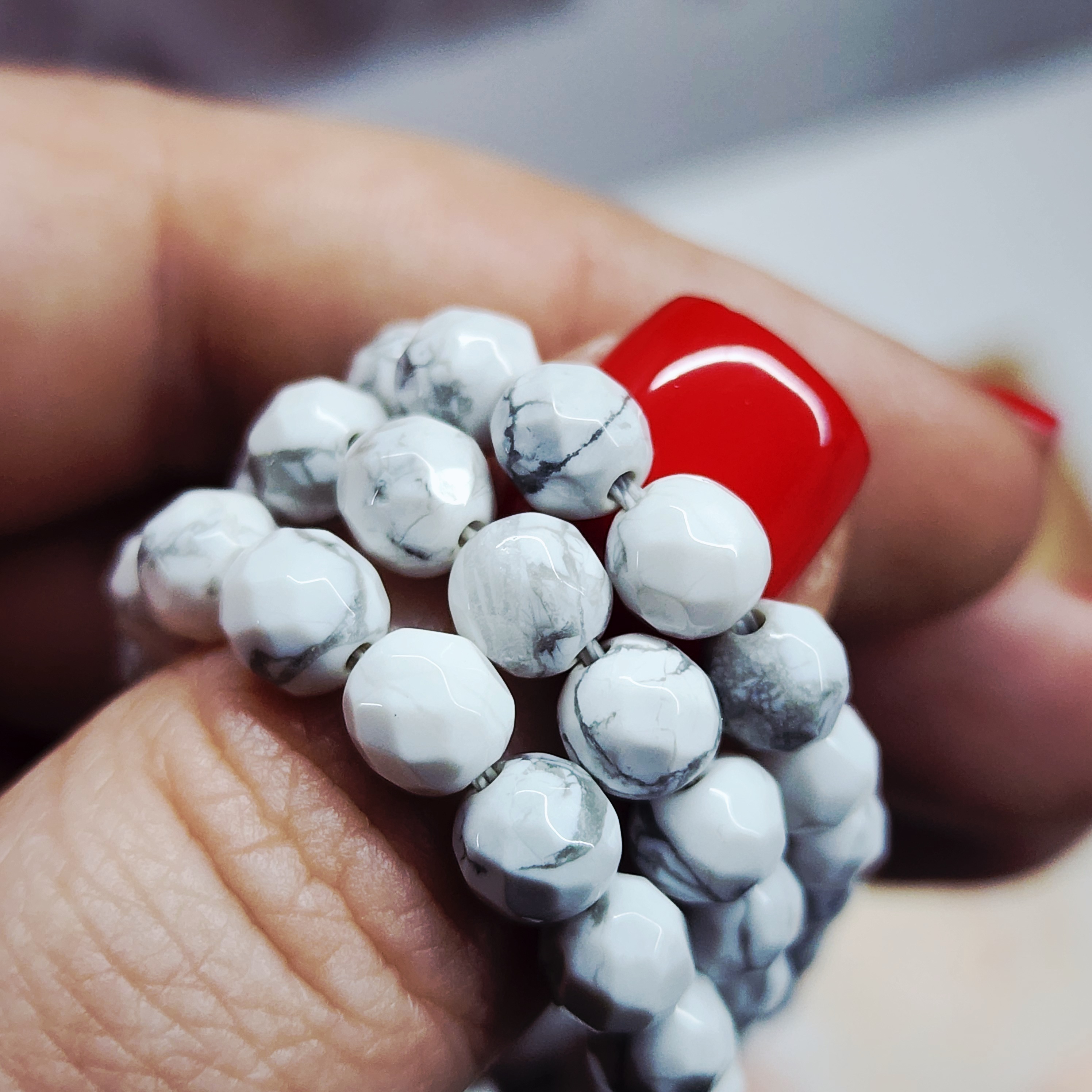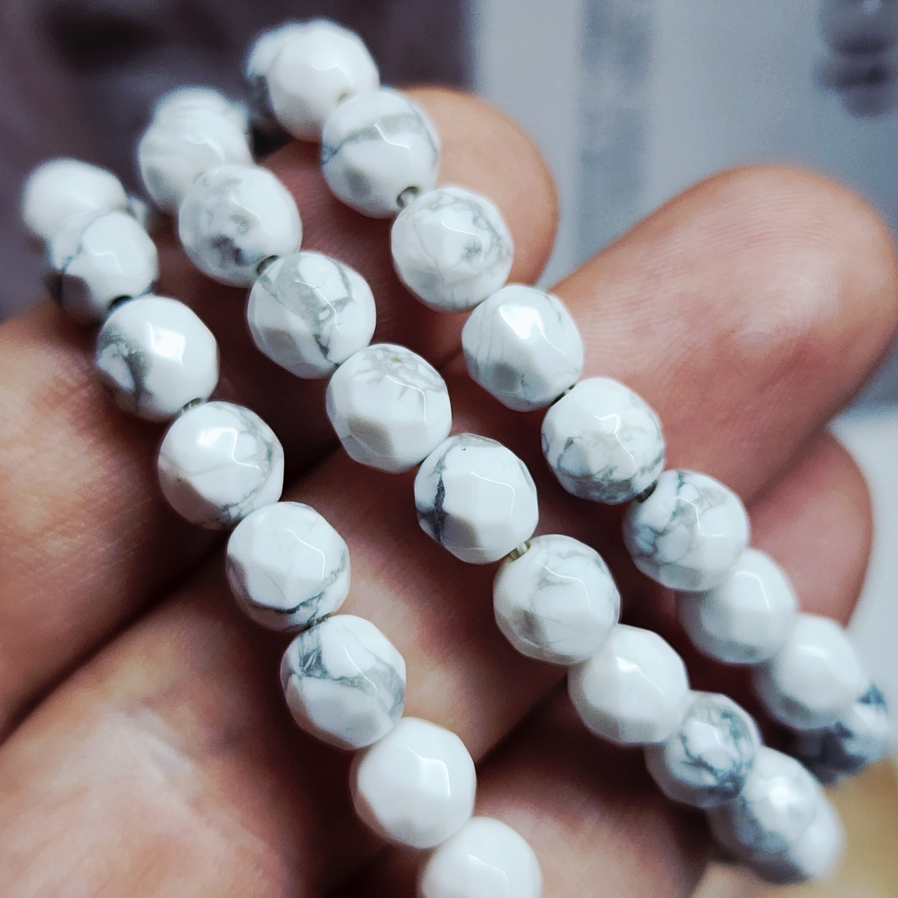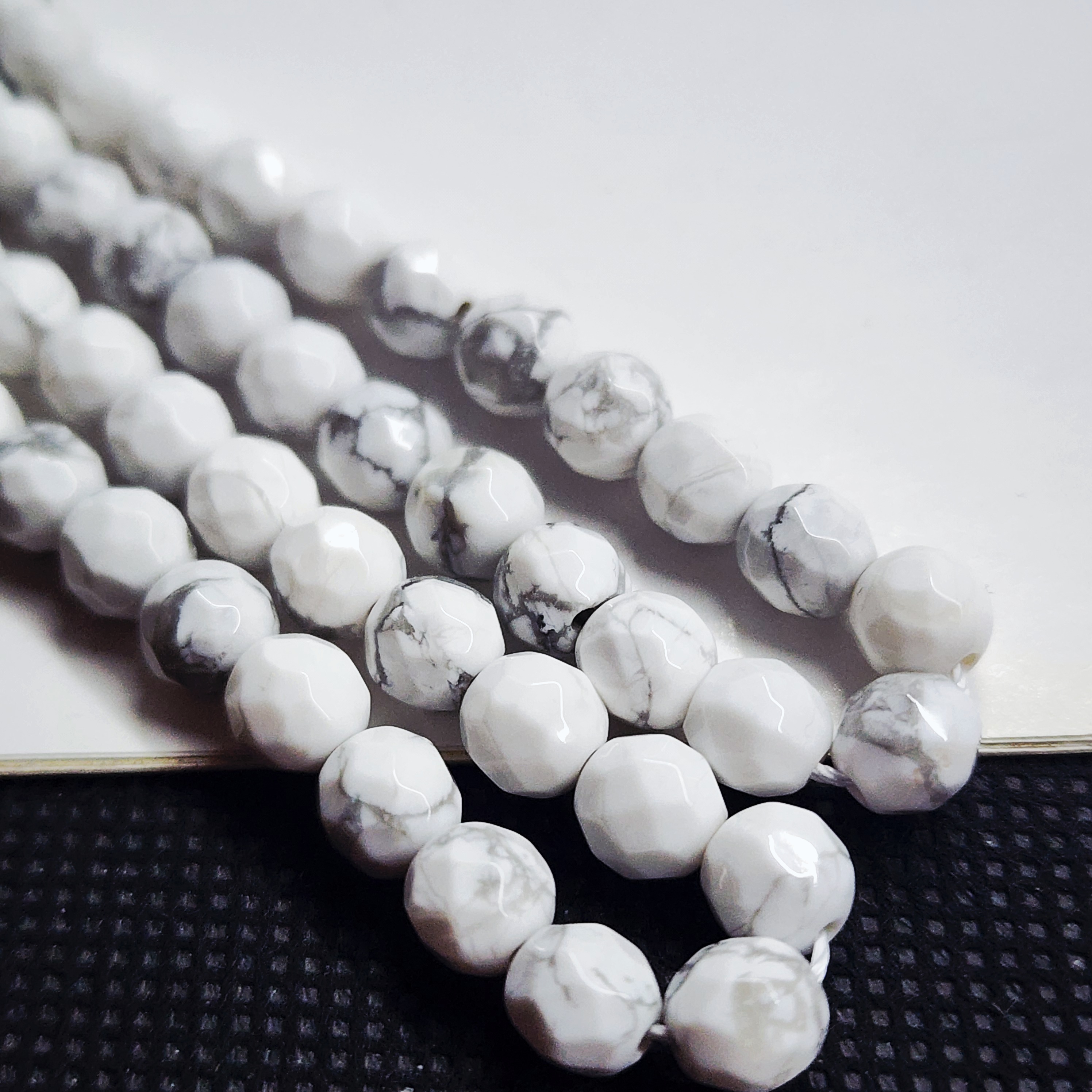 Красивые белые круглые бусины с характерными серыми прожилками, которые очень часто также выдают за говлит, бирюзу и чего хуже кахолонг, но это не то и не другое и не третье. Допустимо назвать их имитацией этих камней, но не более.