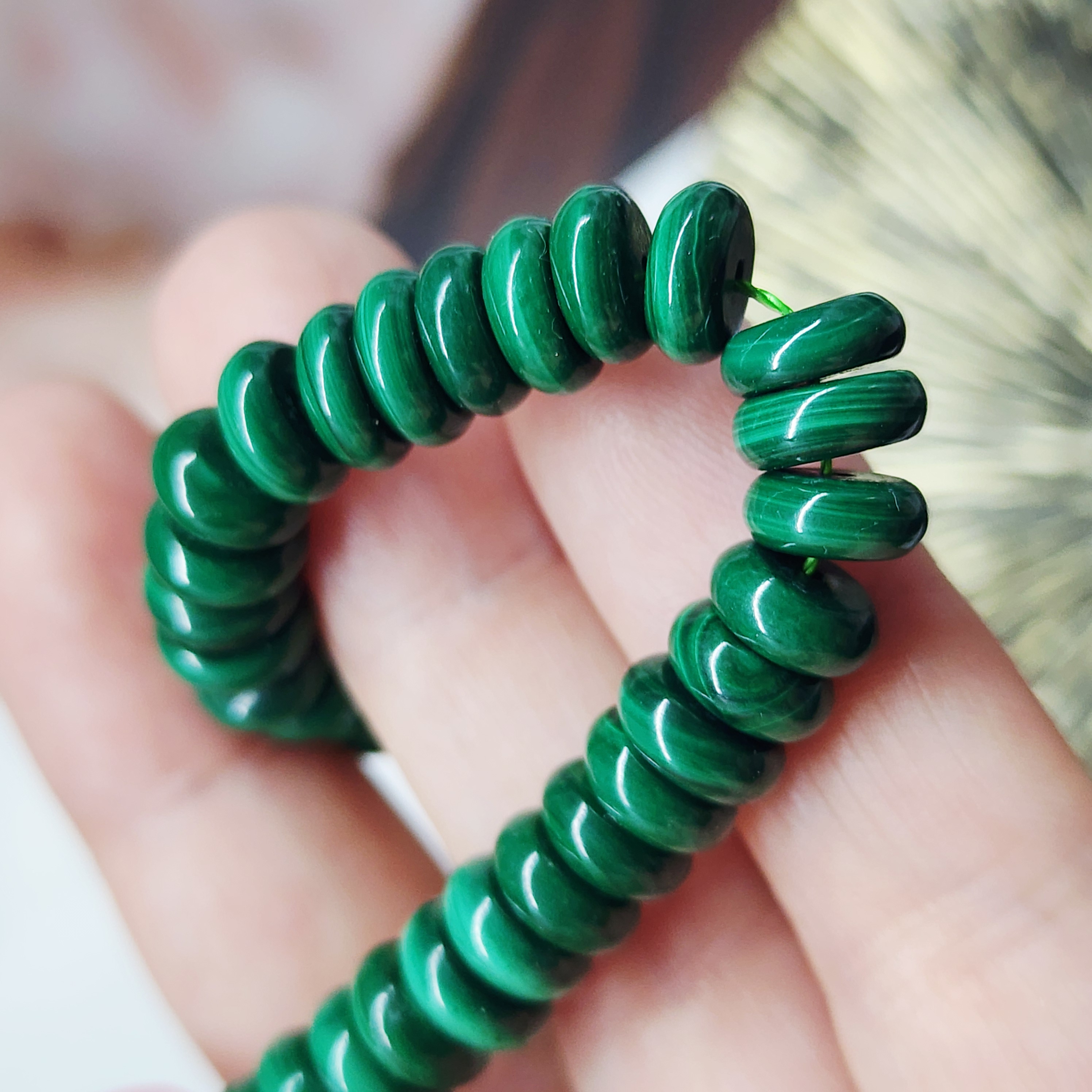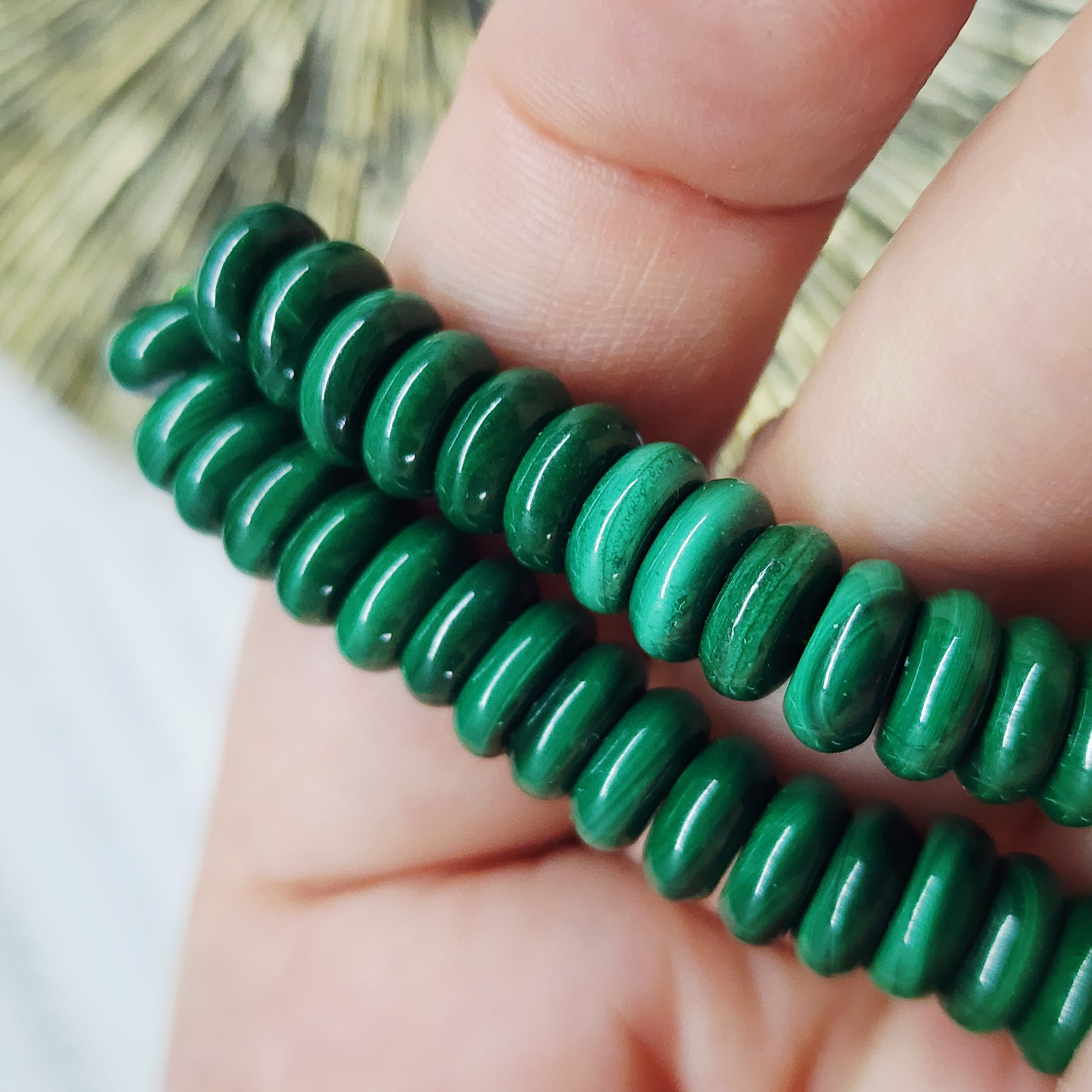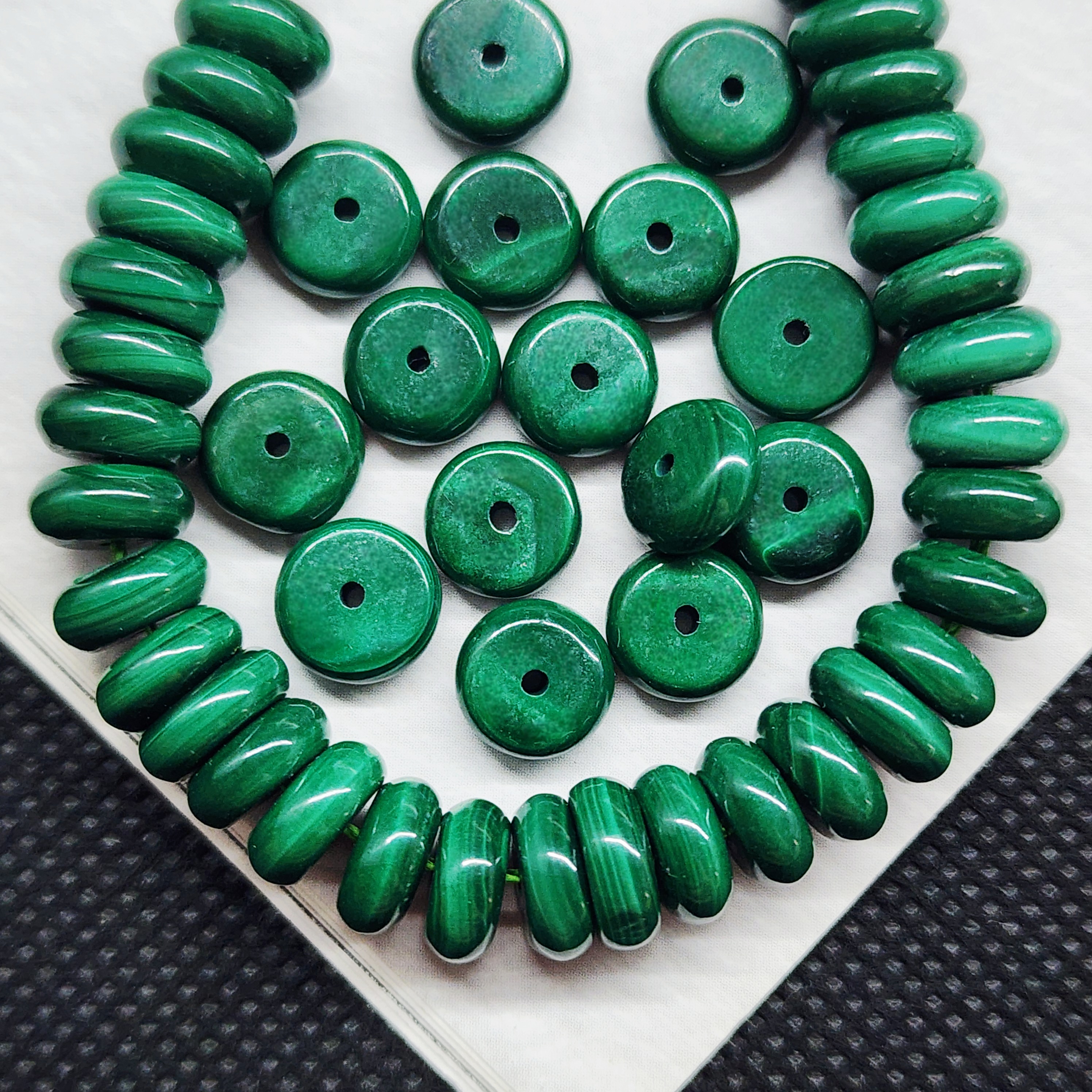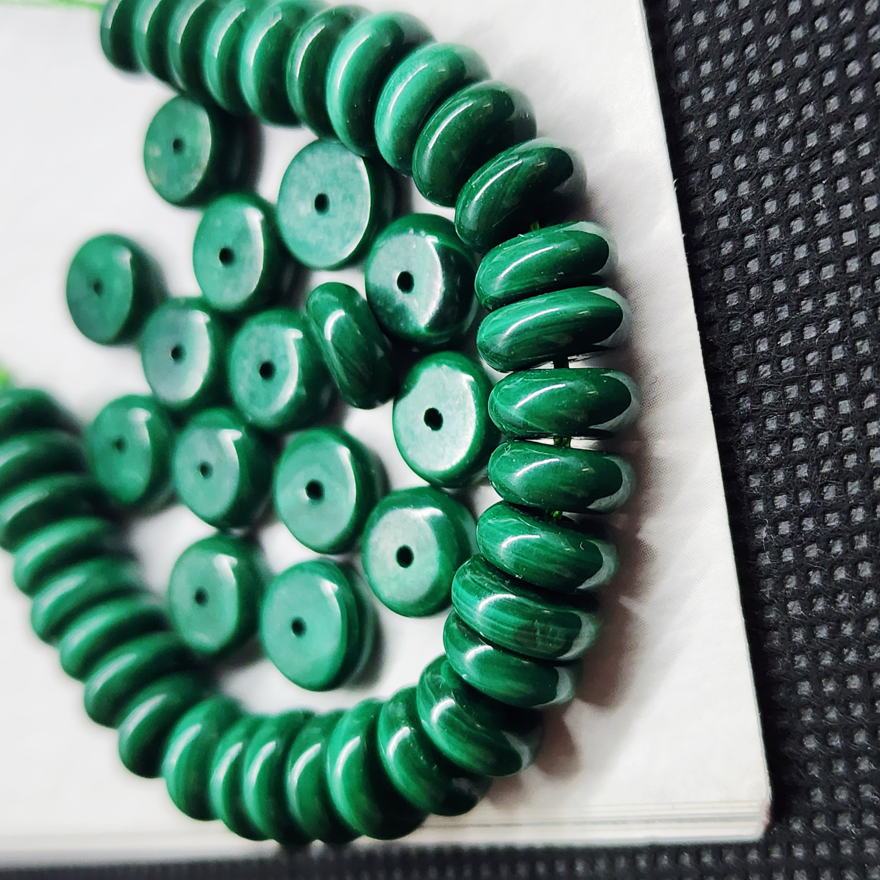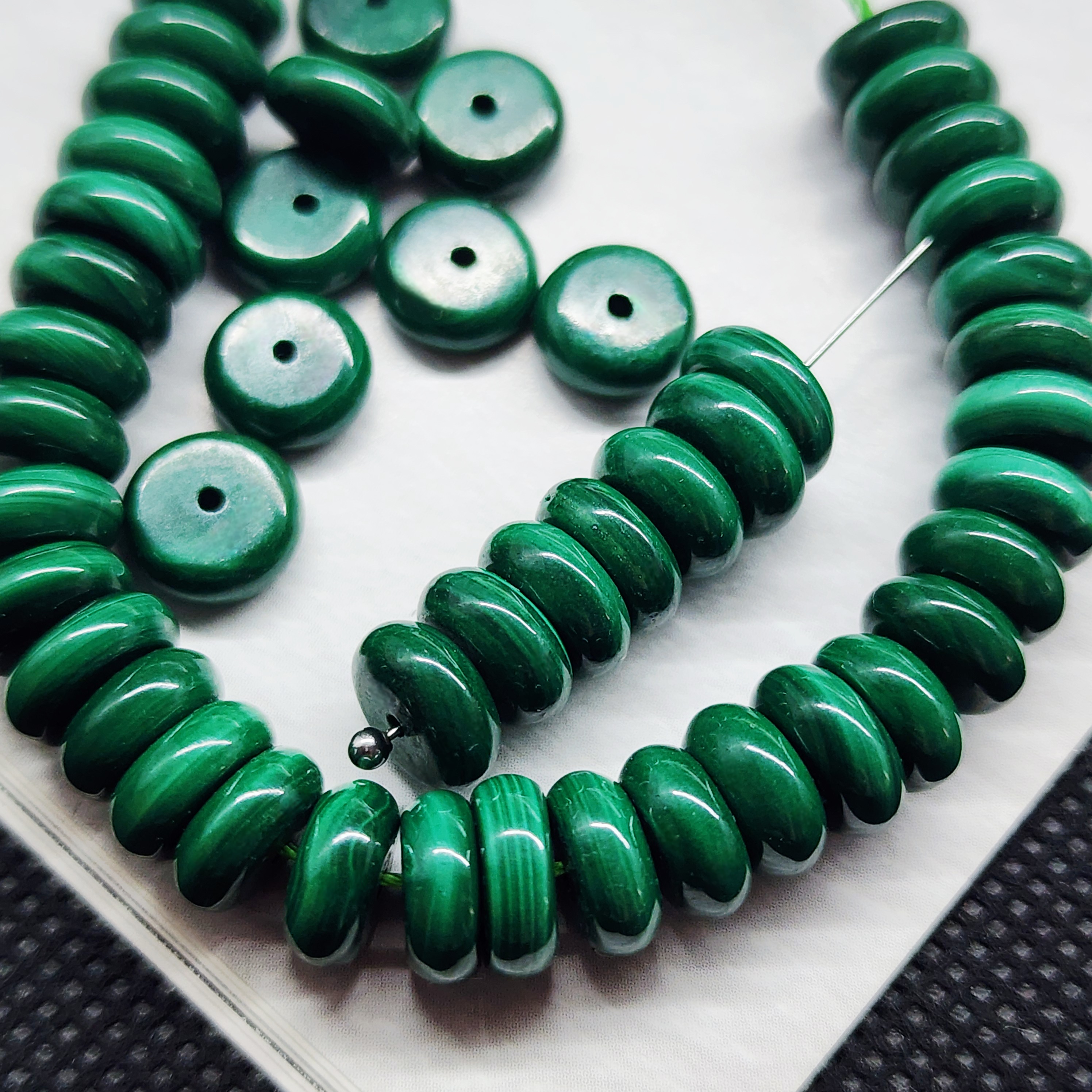 Малахит природный (Заир), бусины в форме "плашки" шайбочки, средний размер 8×4мм