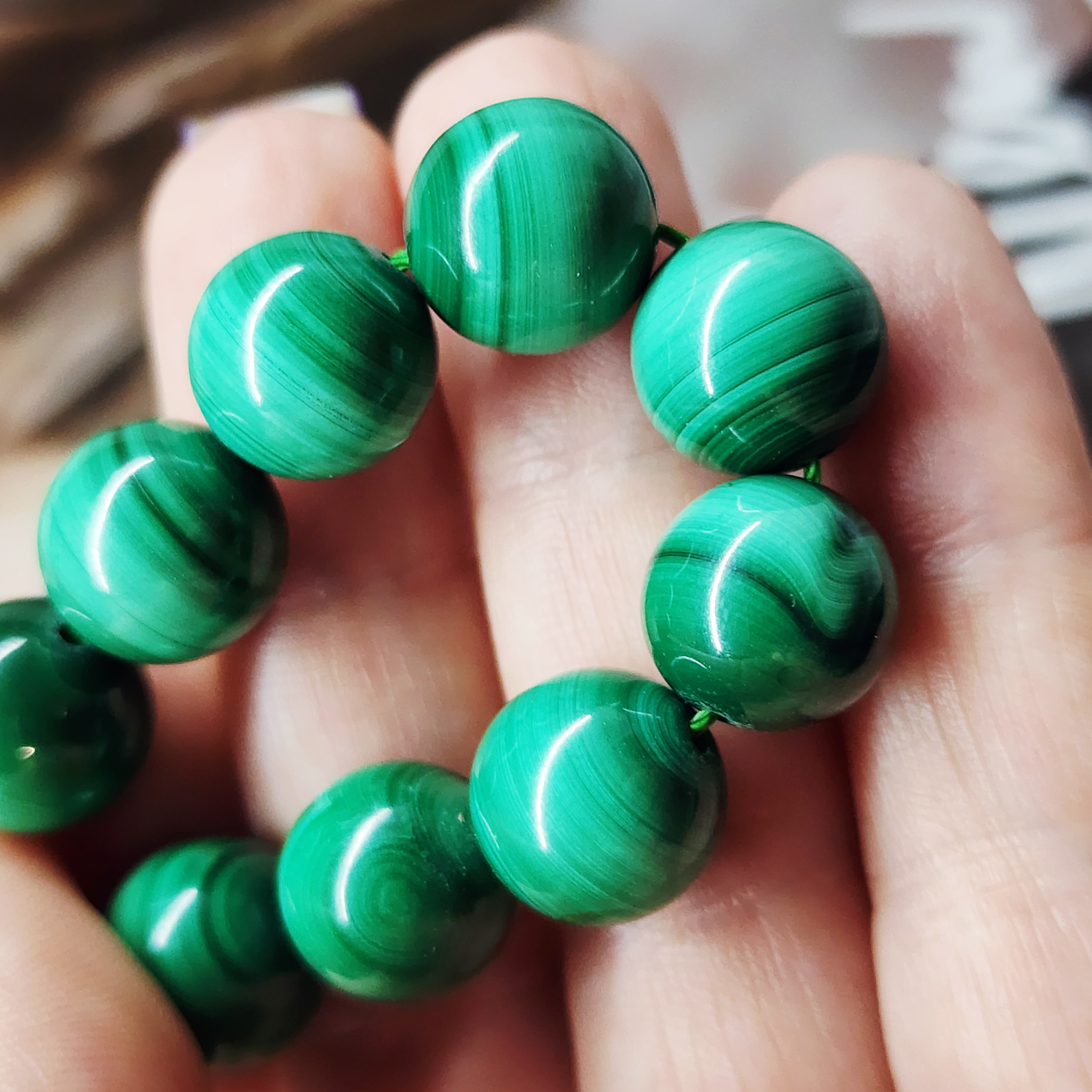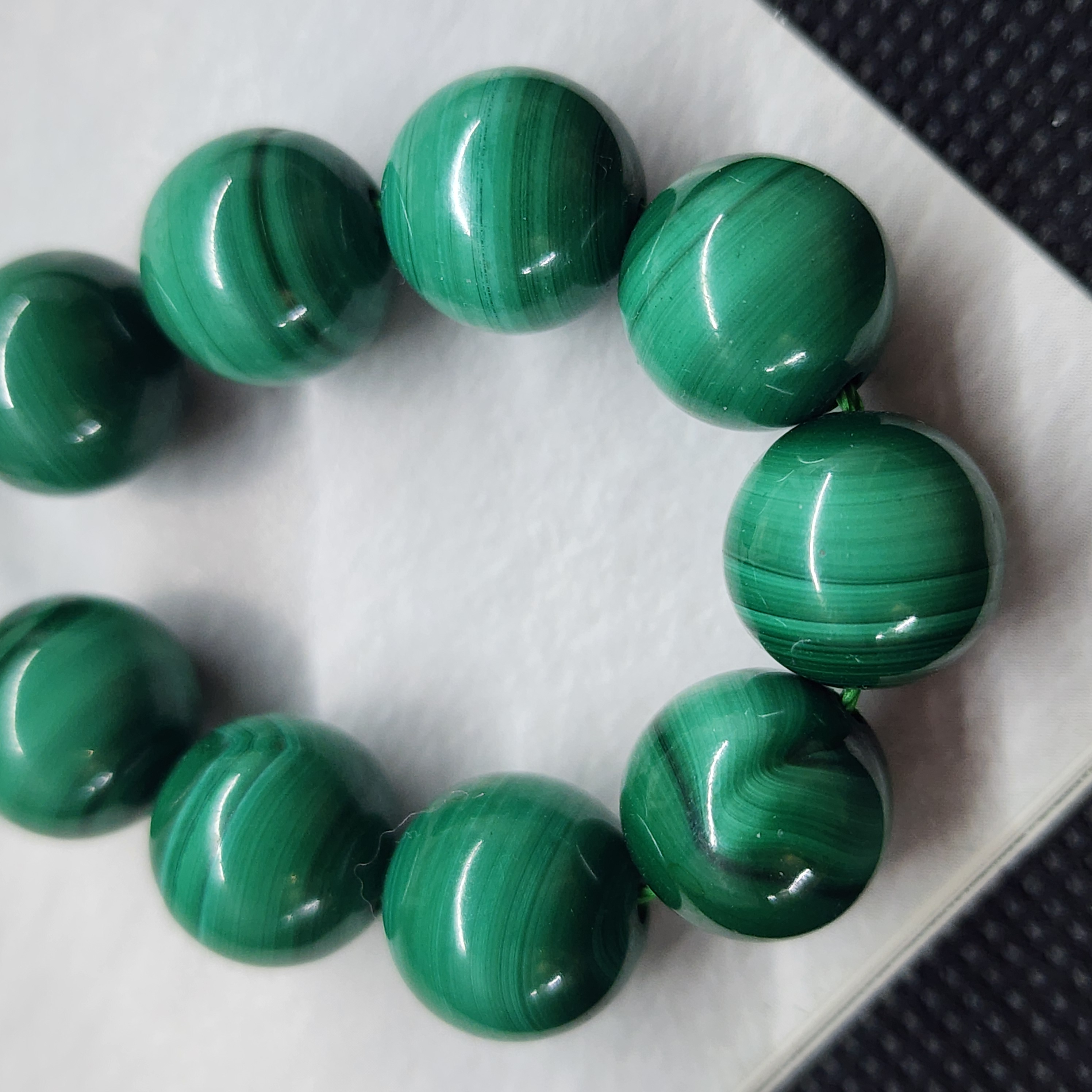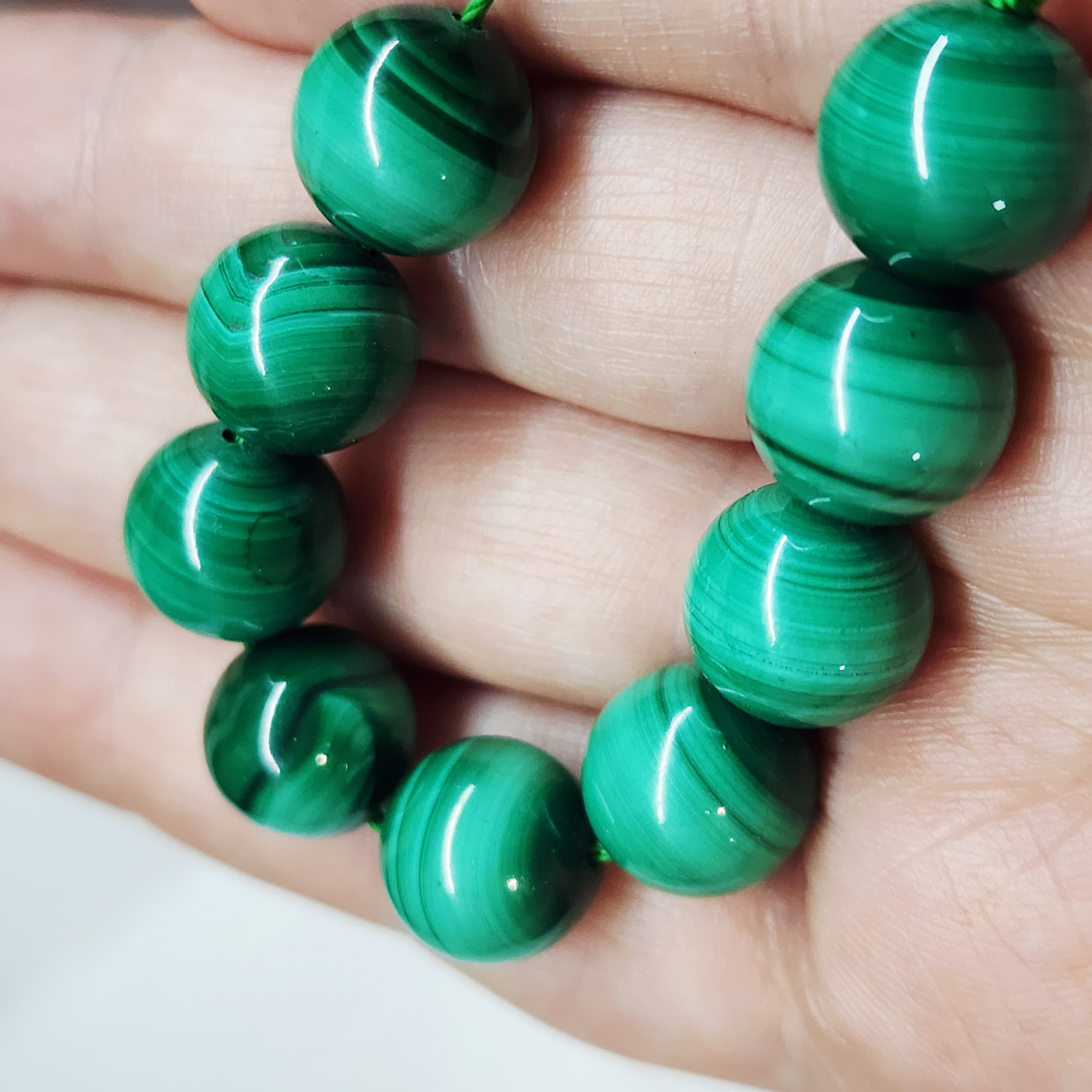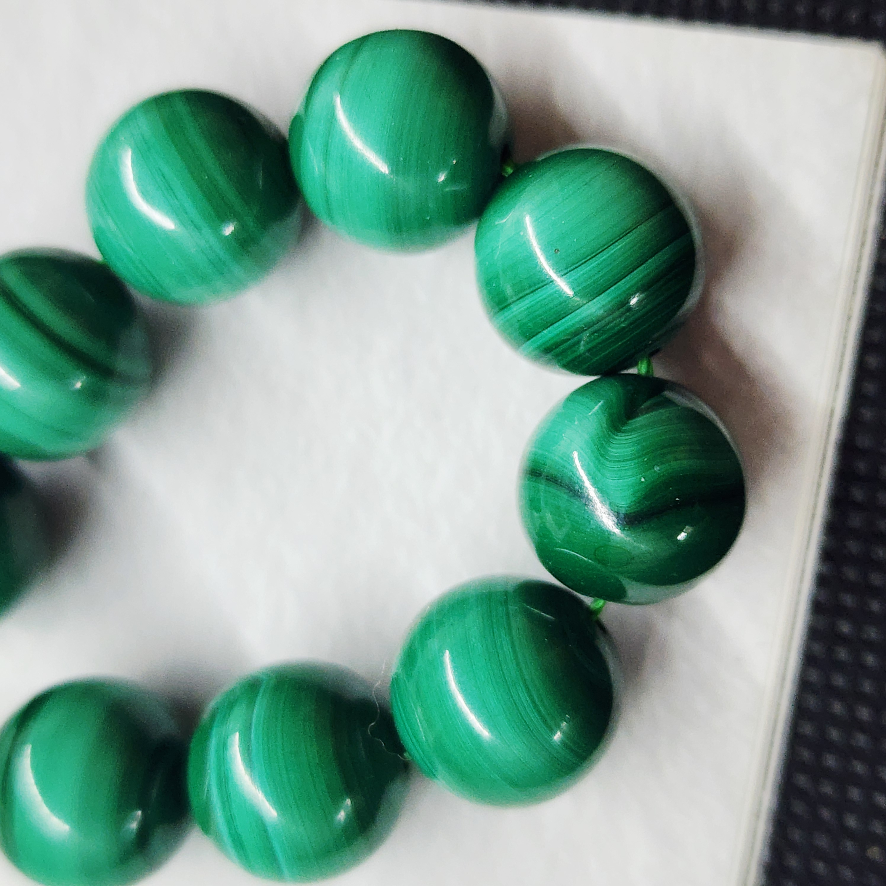 Бусины природного малахита (Заир), яркий образец по цвету, средний размер 12 -12.3мм