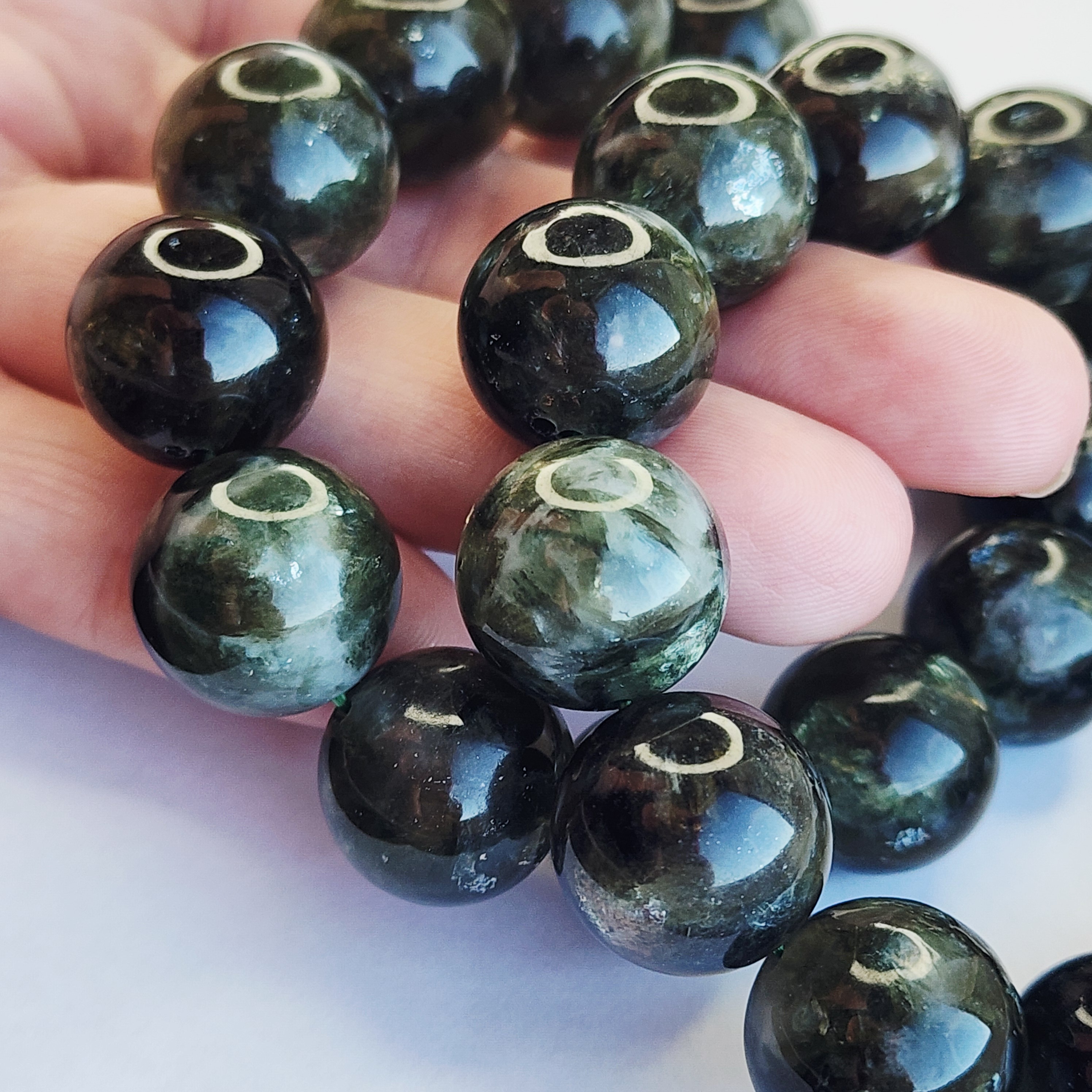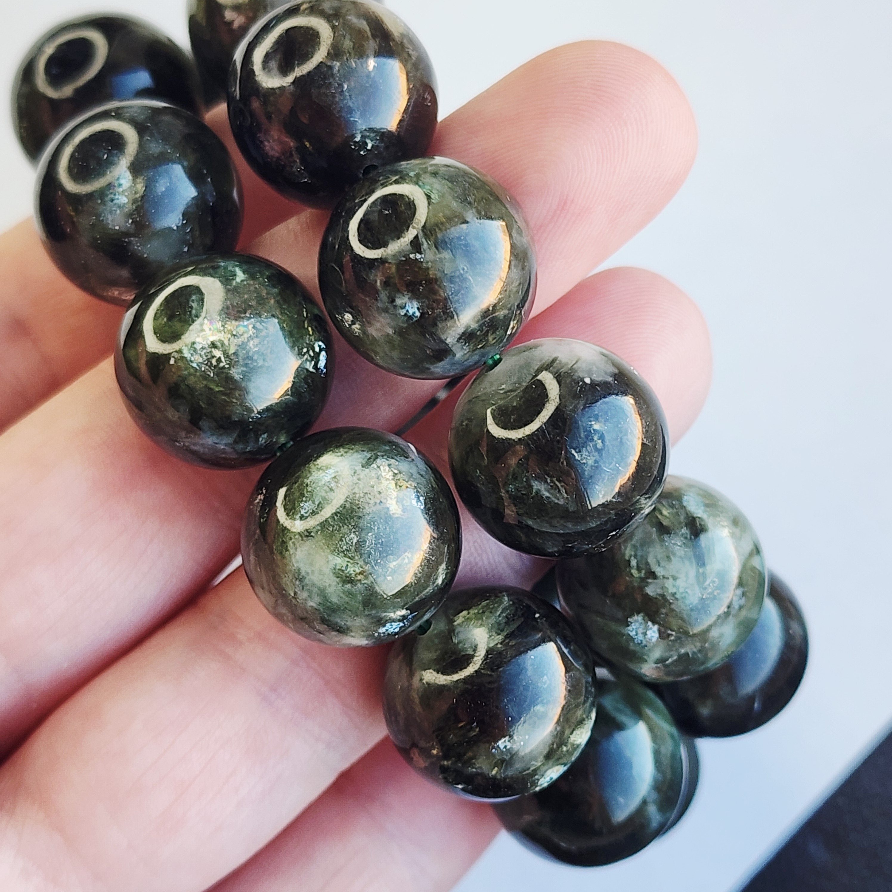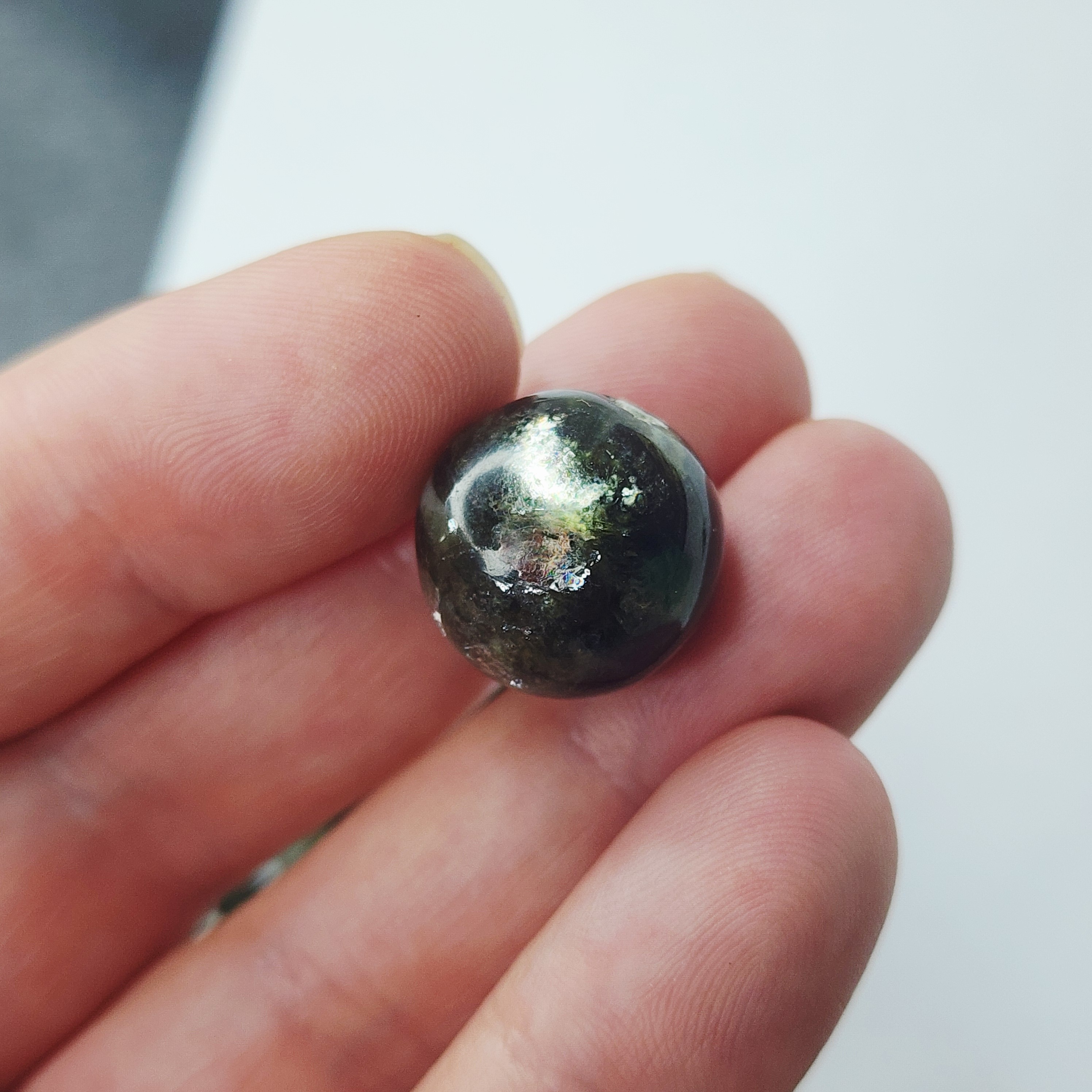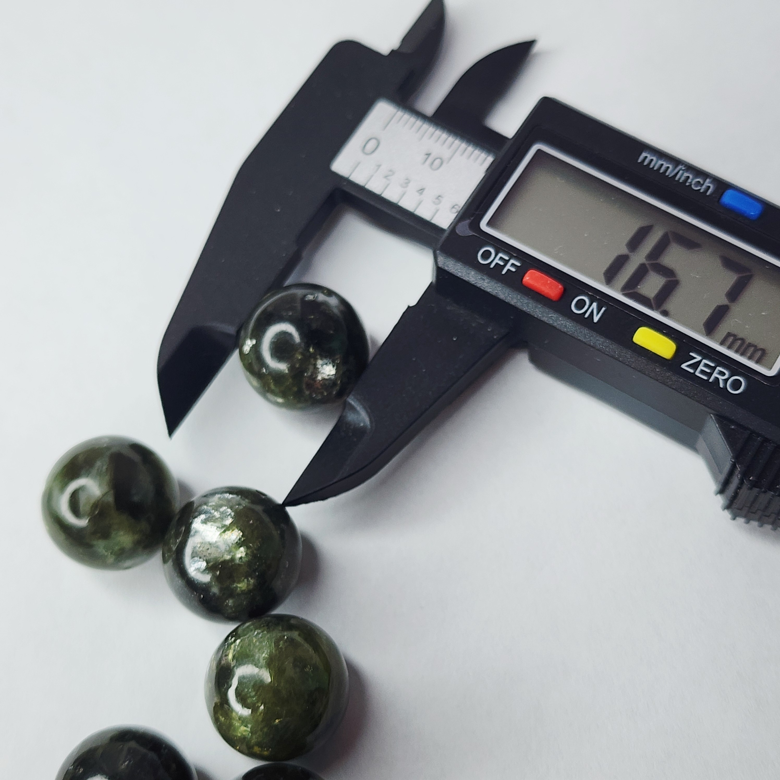Красивейший природный мусковит, крупная бусина, очень красиво переливается, средний размер 16.6 - 16.7мм