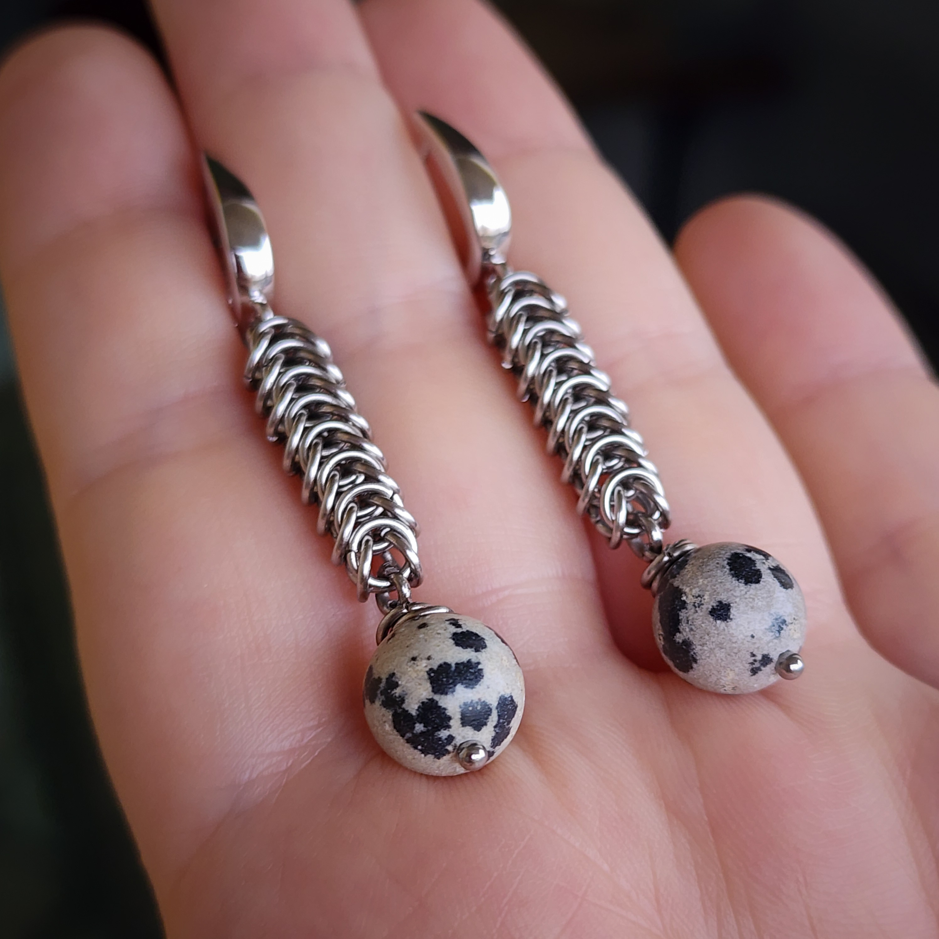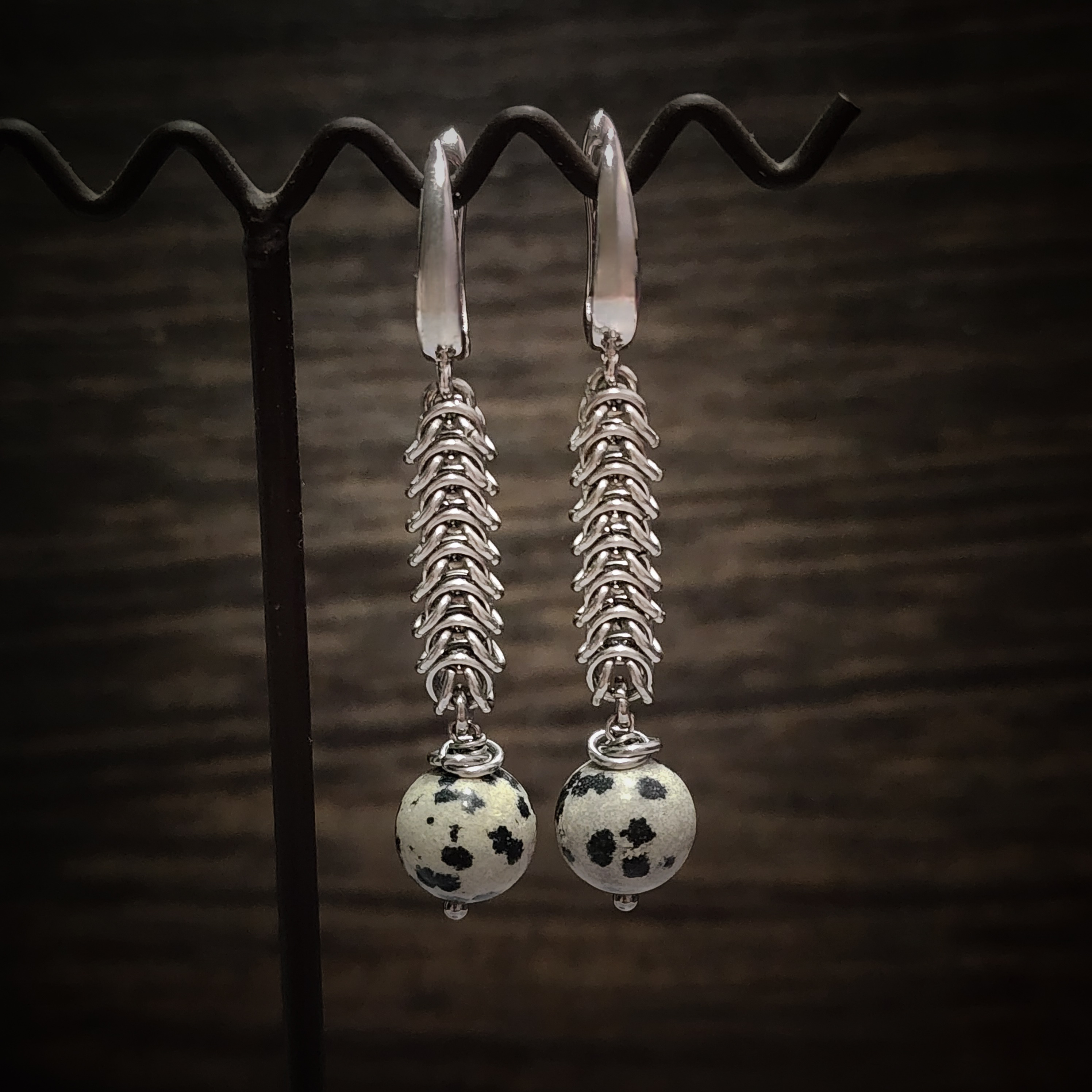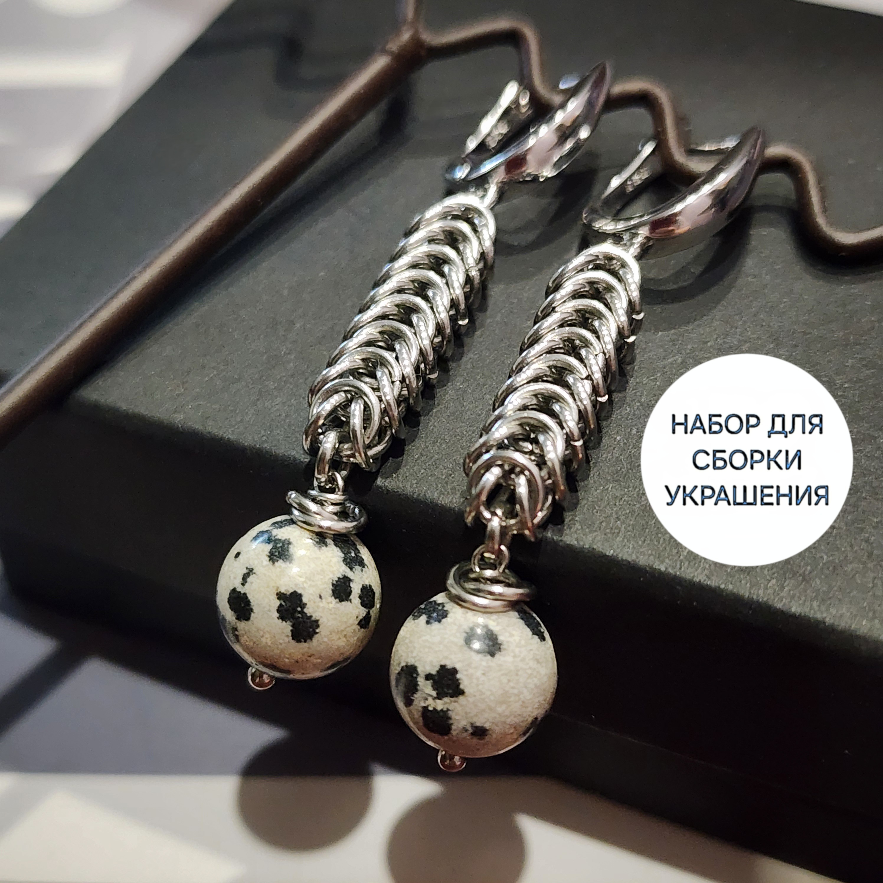 Набор с "далматиновой яшмой" к серьгам "ЯРКАЯ", фурнитура премиум класса.