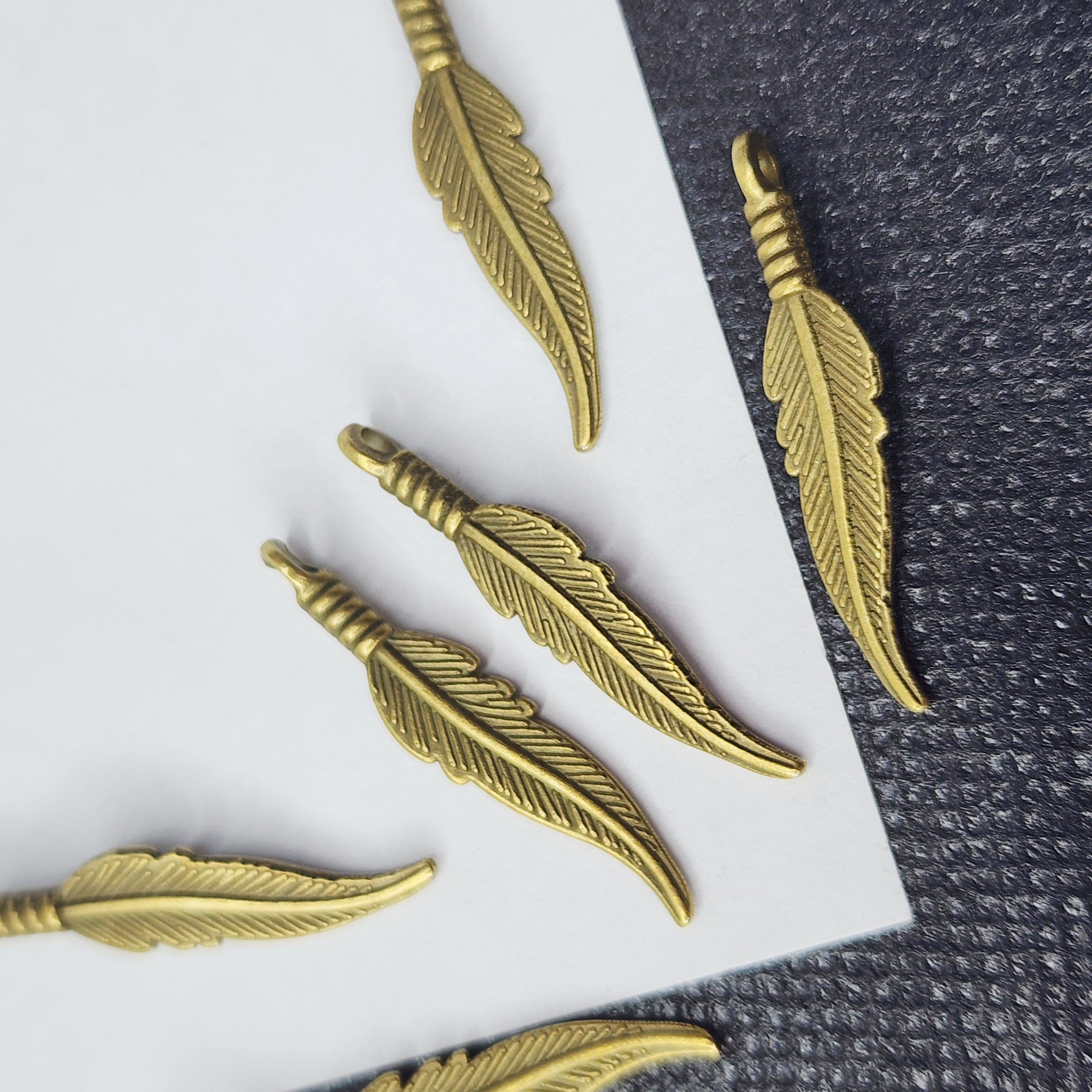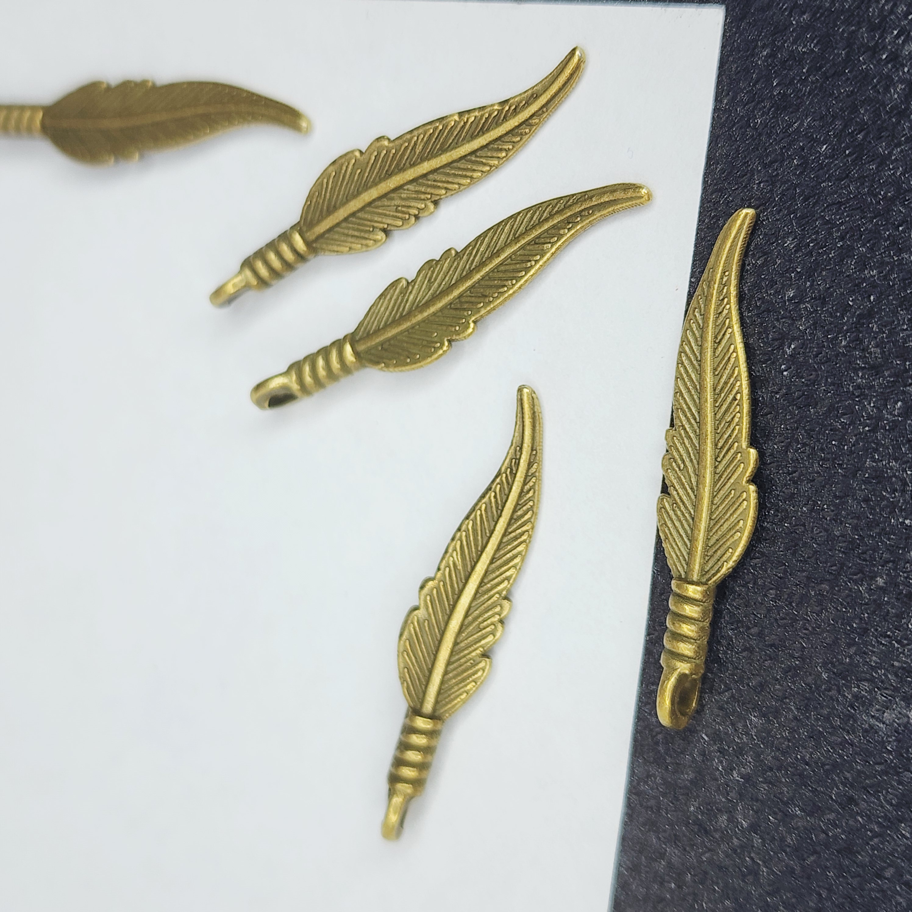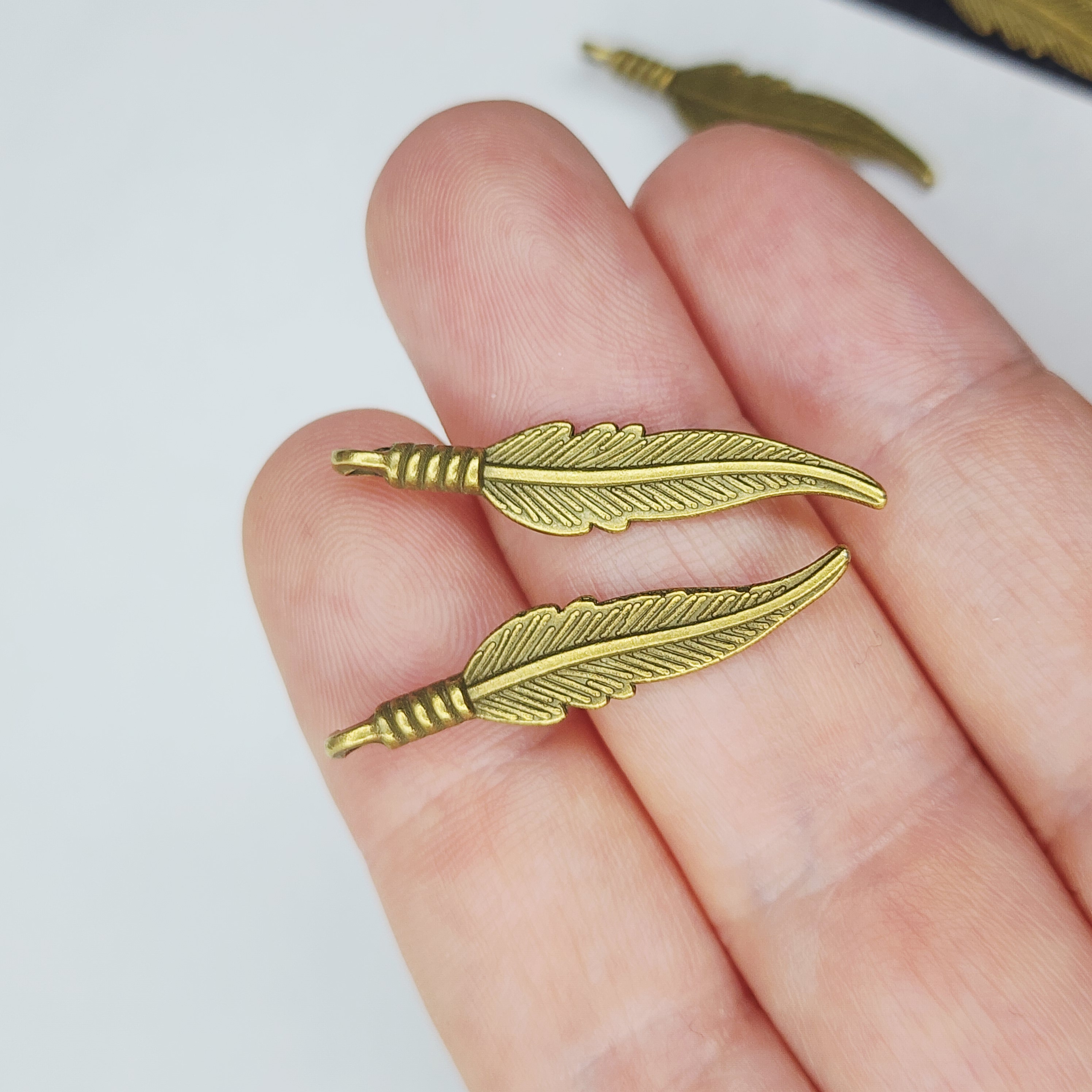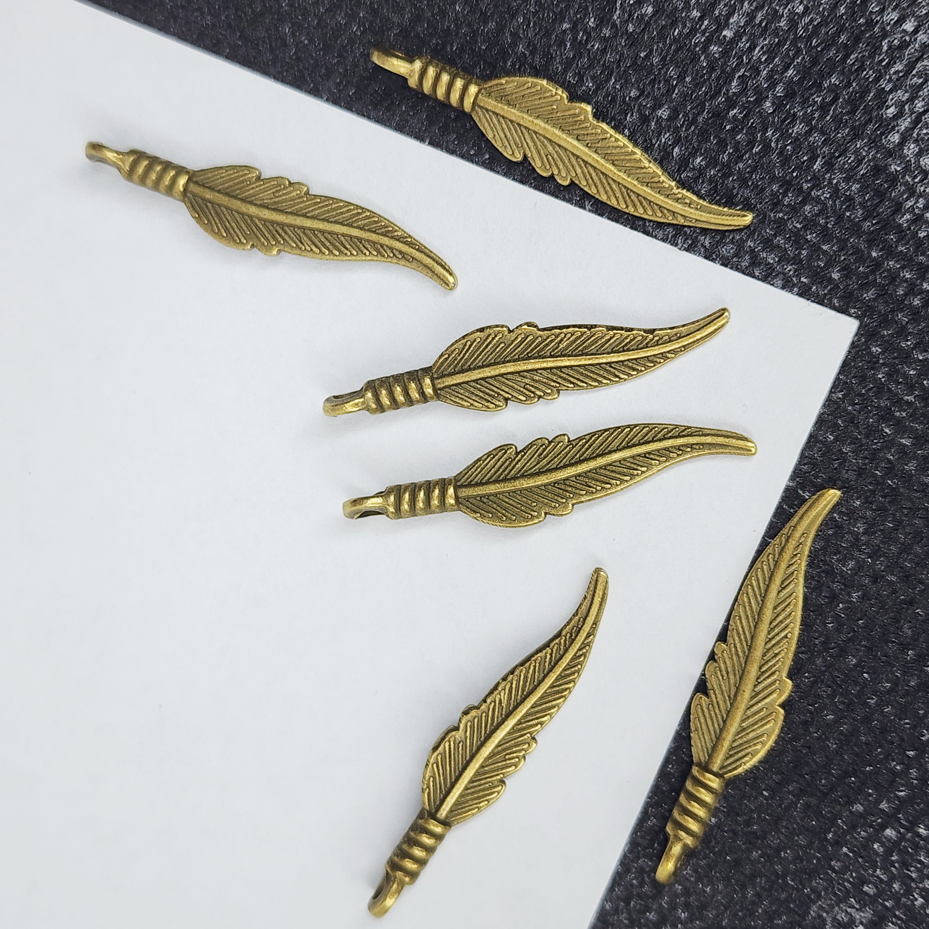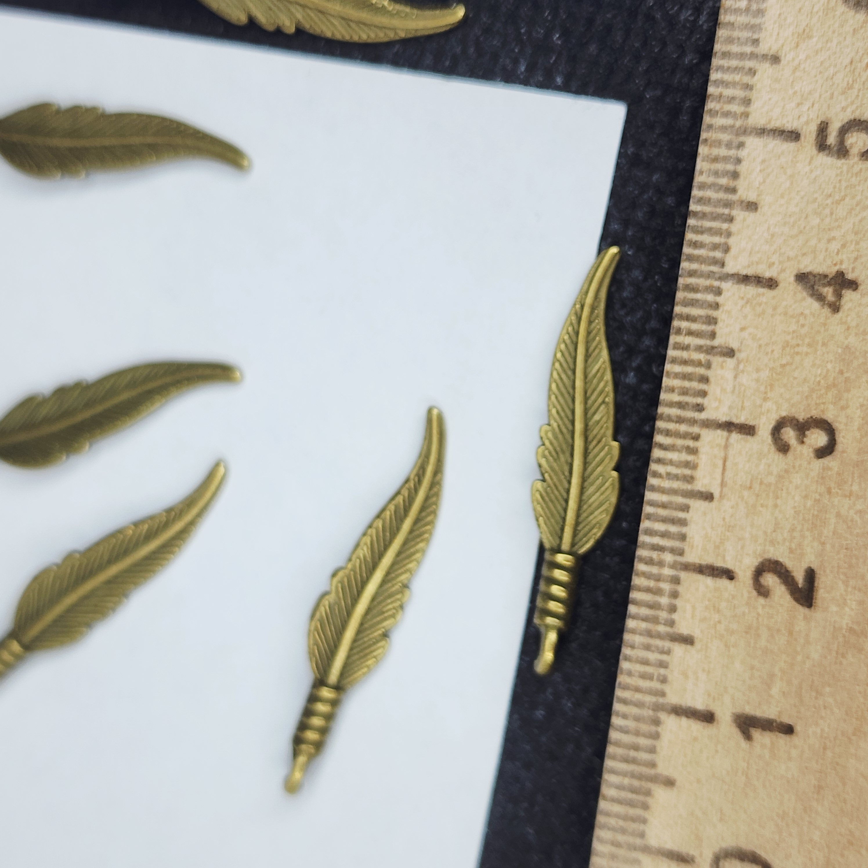 Подвеска пёрышко, отличная детализация, цвет бронза, размер 31.5×6.5мм
