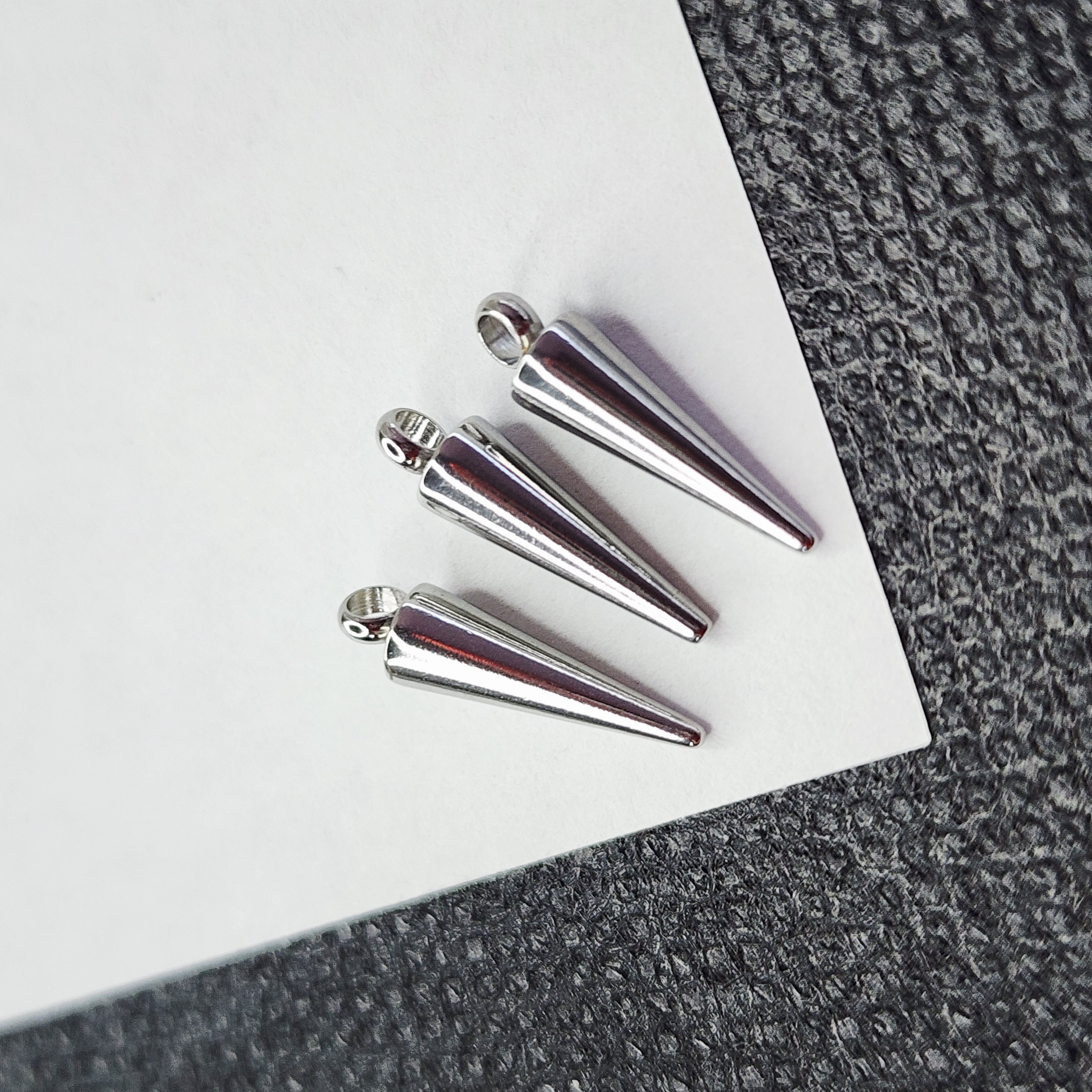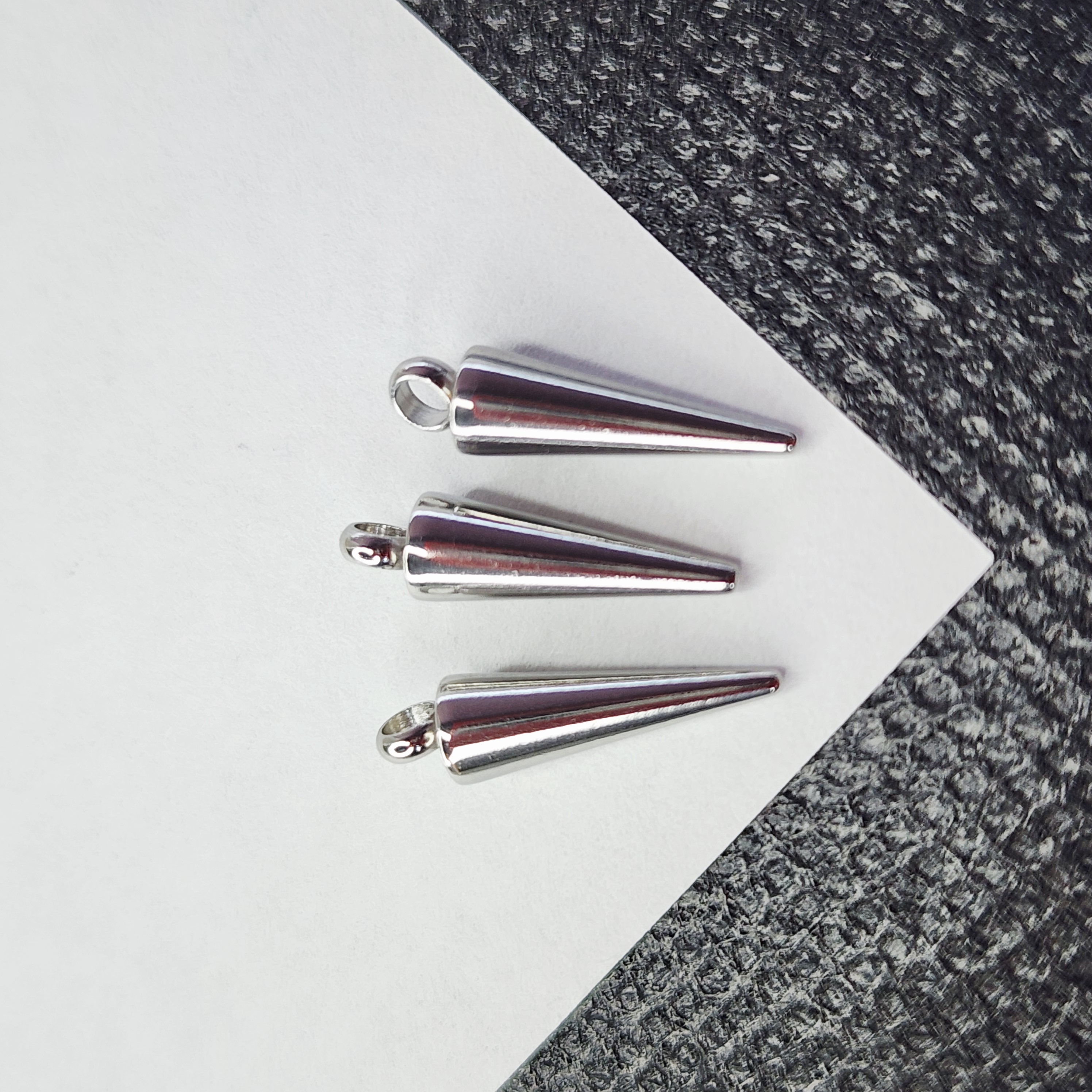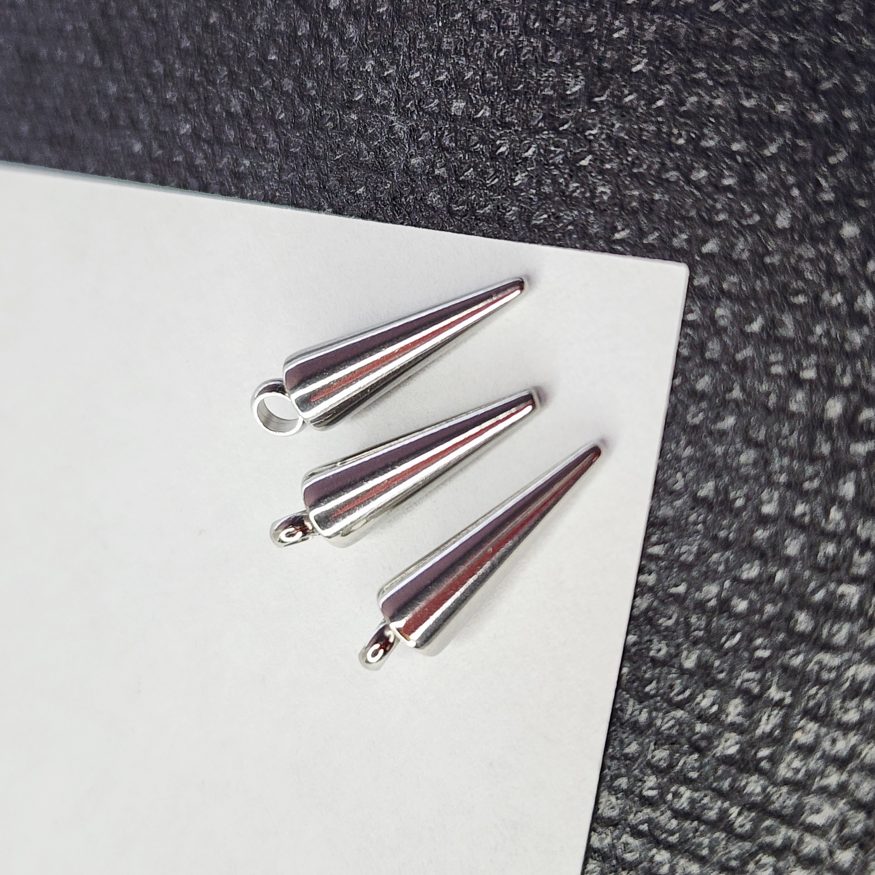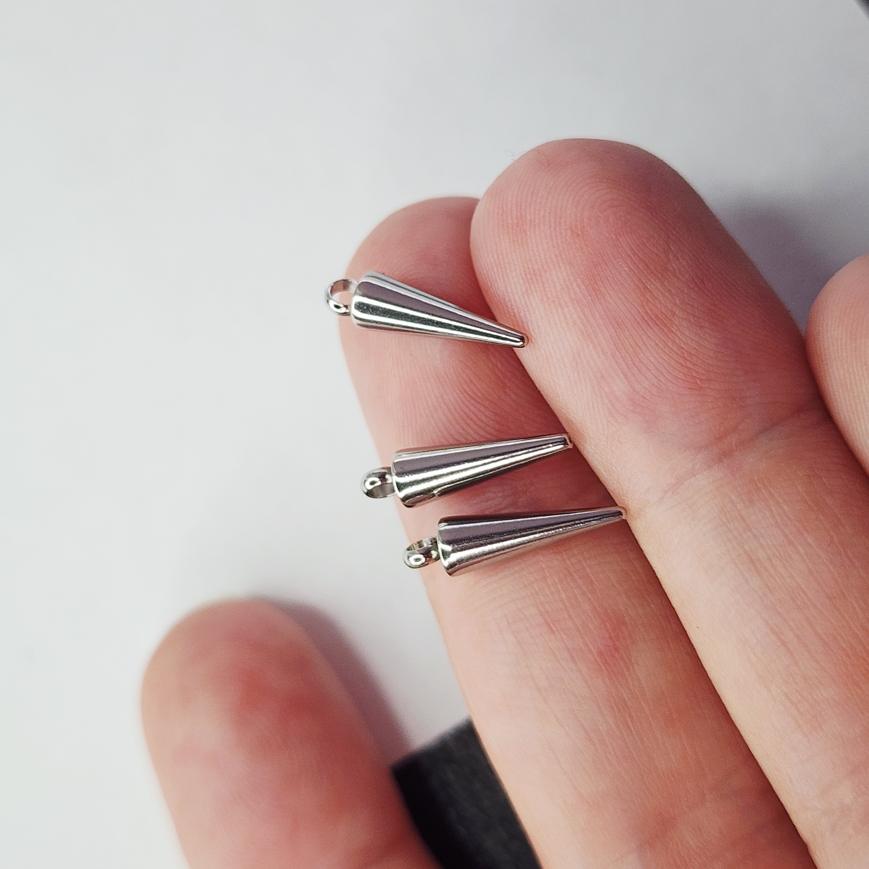 Стальные шипы для создания украшений. Крепкое паяное кольцо, очень аккуратная модель, идеально подходят для сережек и подвесок, нетяжелые. Размер 14×4мм