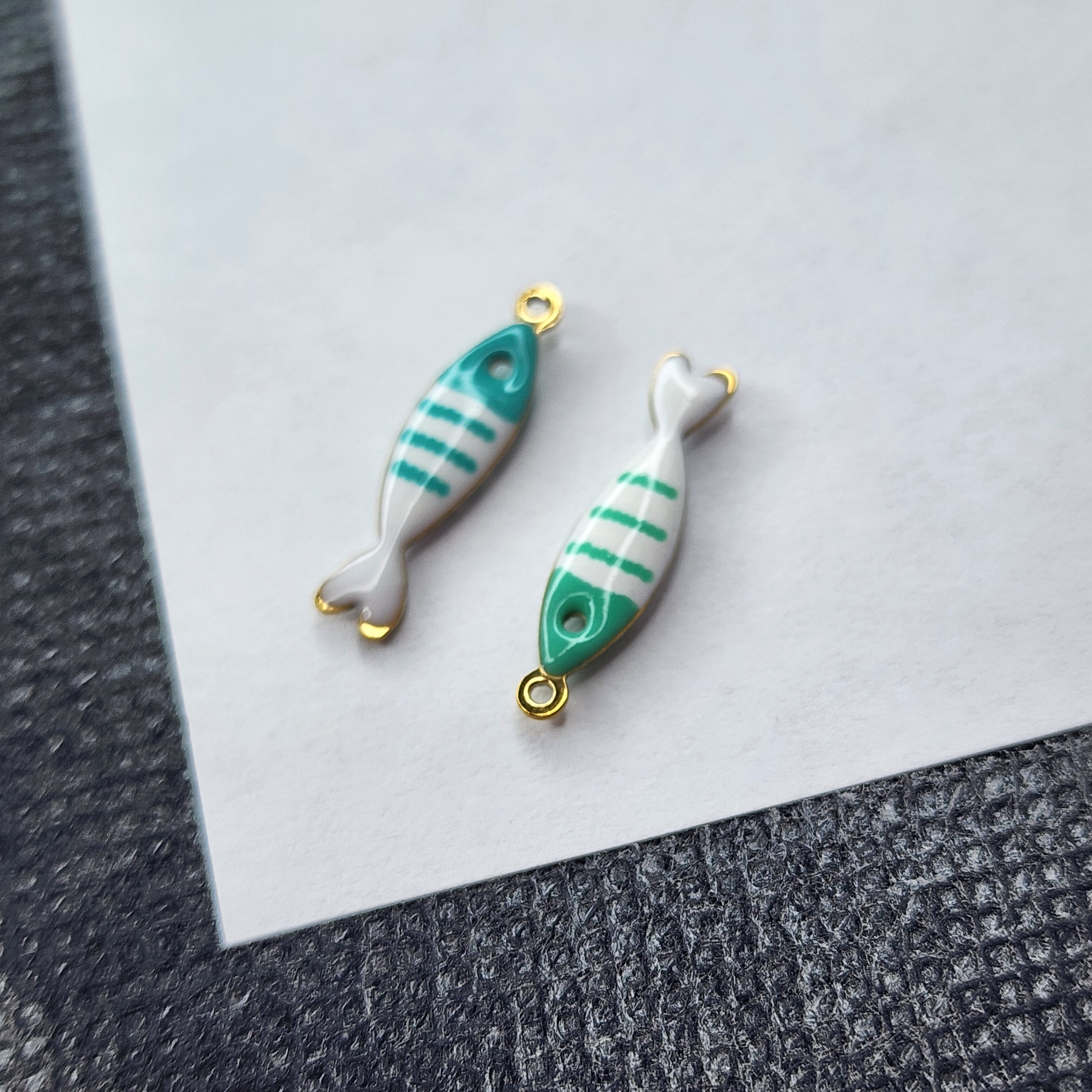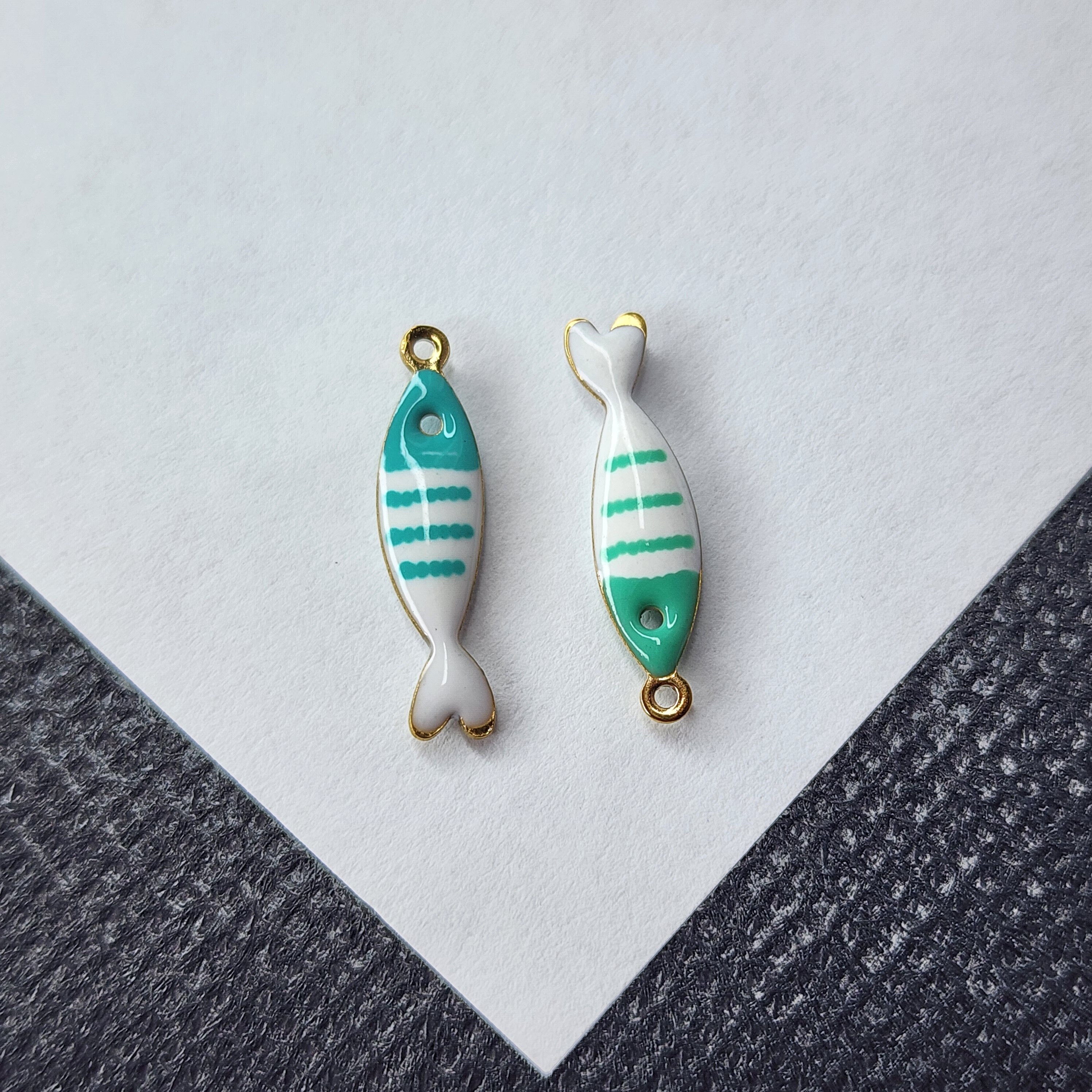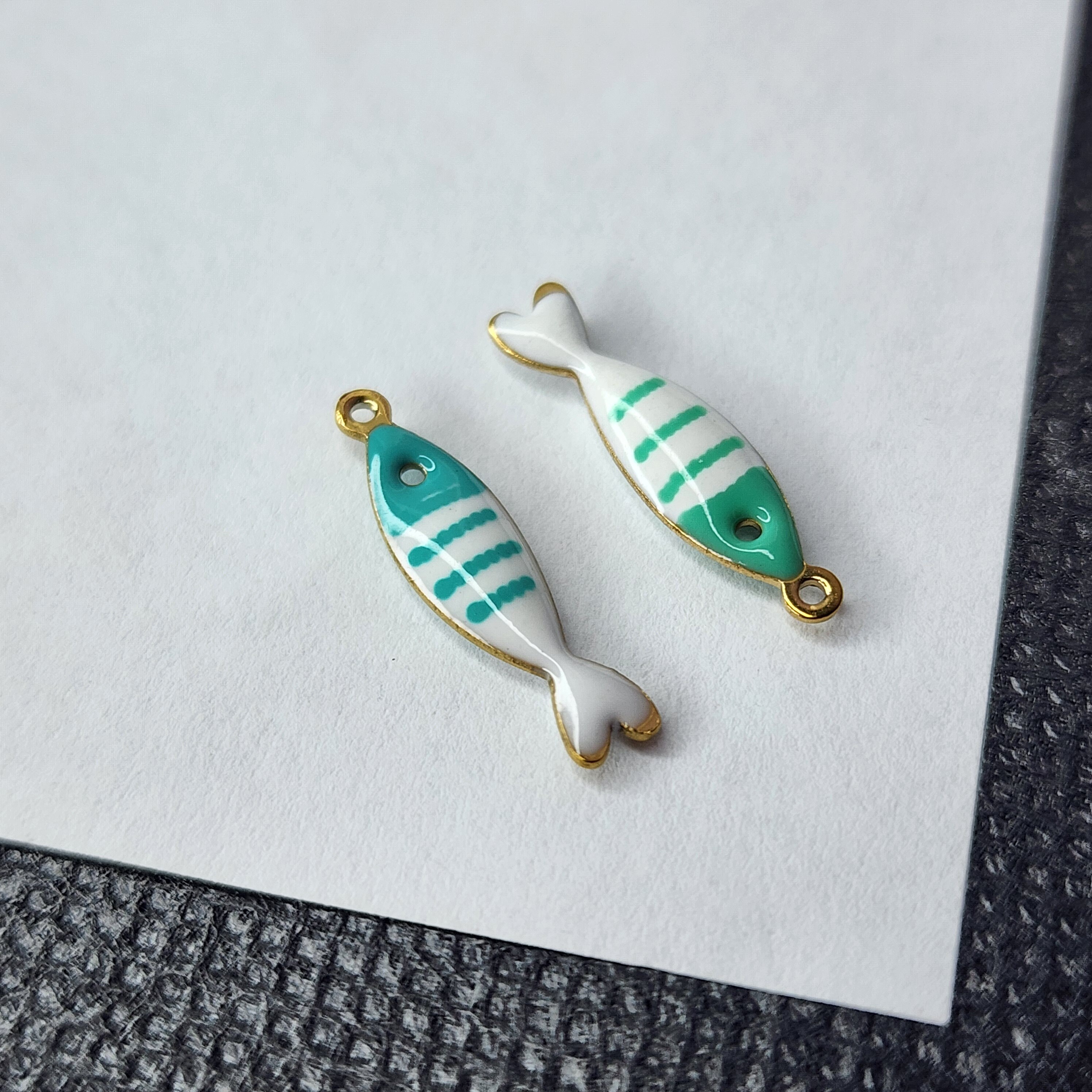 Рыбка бирюзово - белая, красивая жизненная и стильная яркая подвеска, премиальное покрытие по стали, размер 18.5×4.5мм
