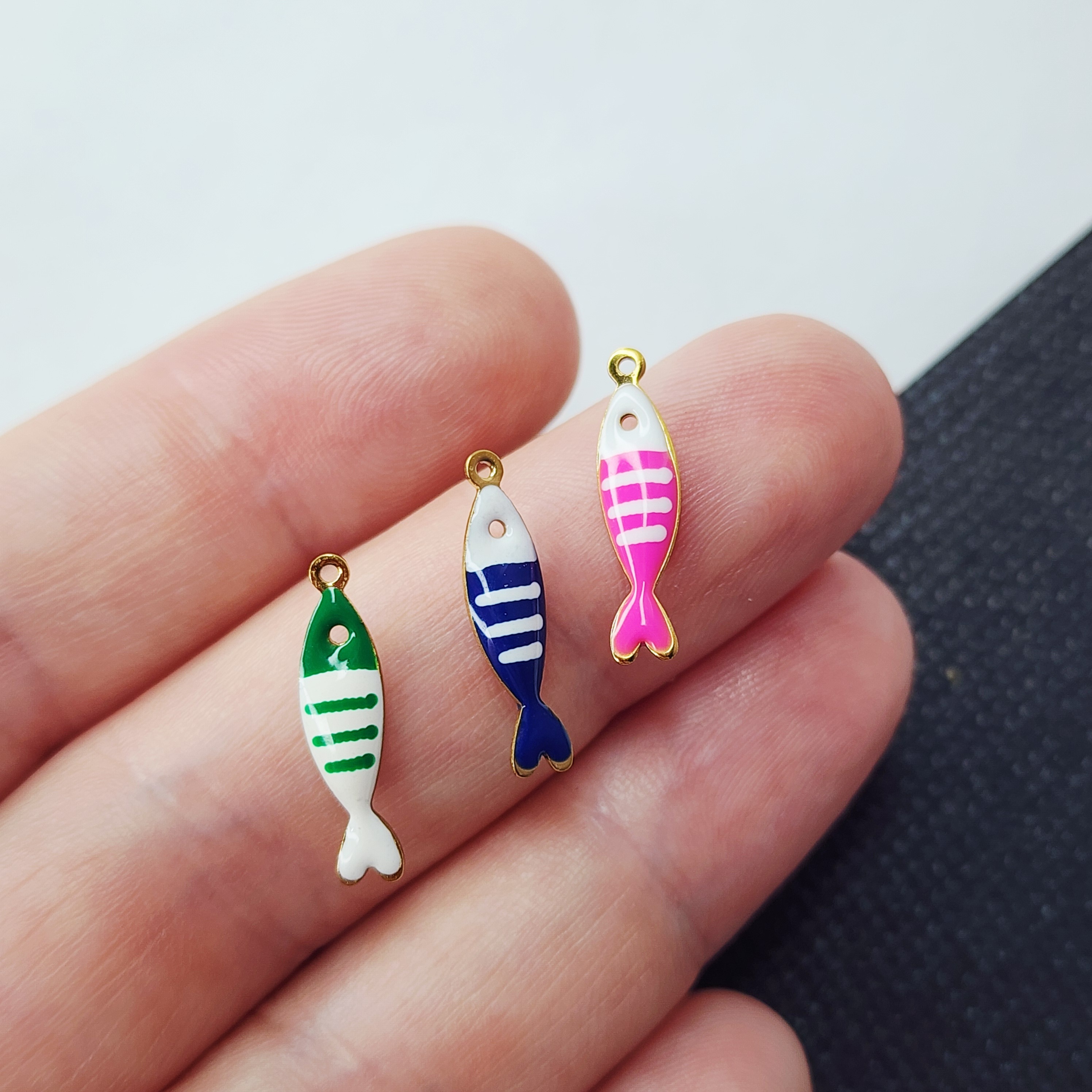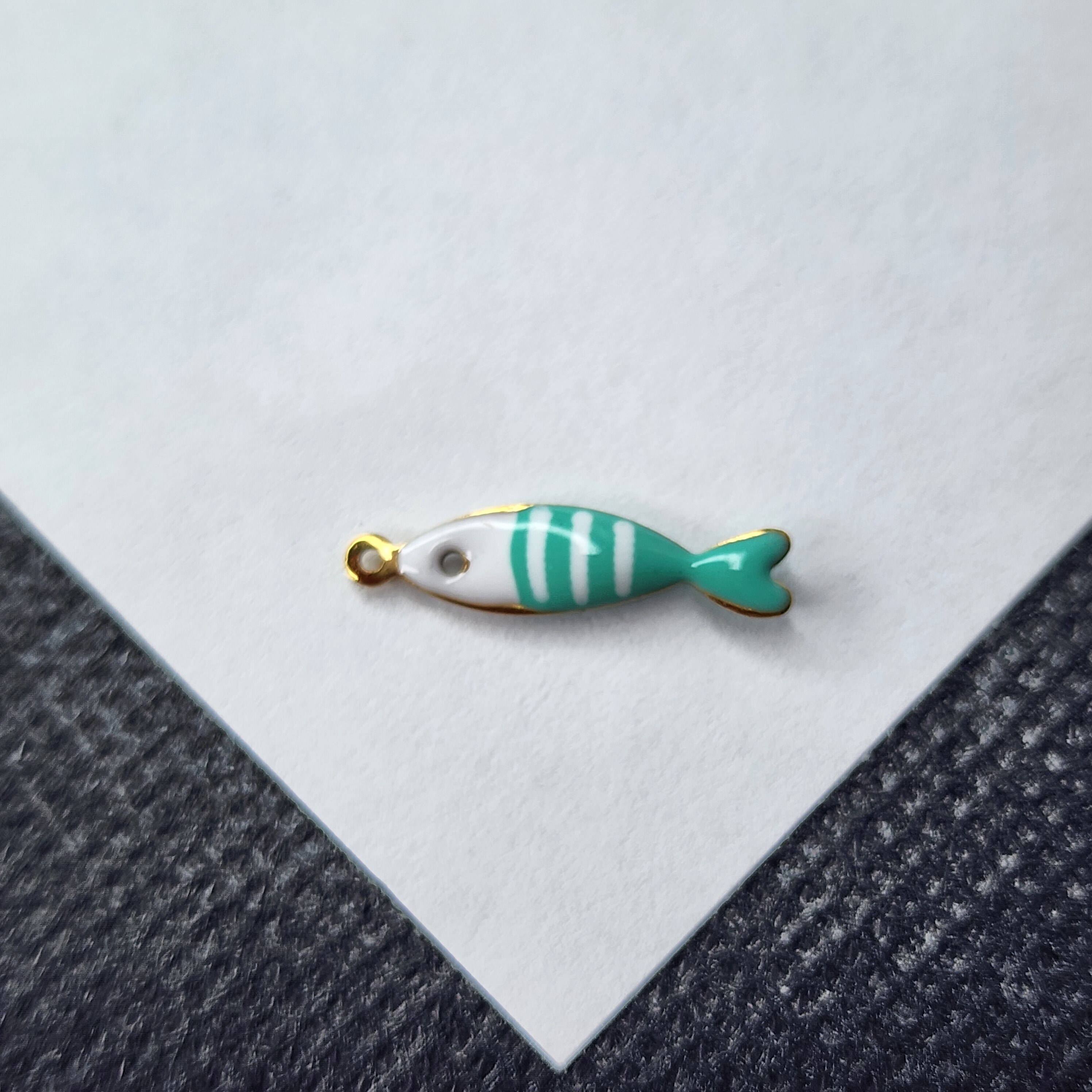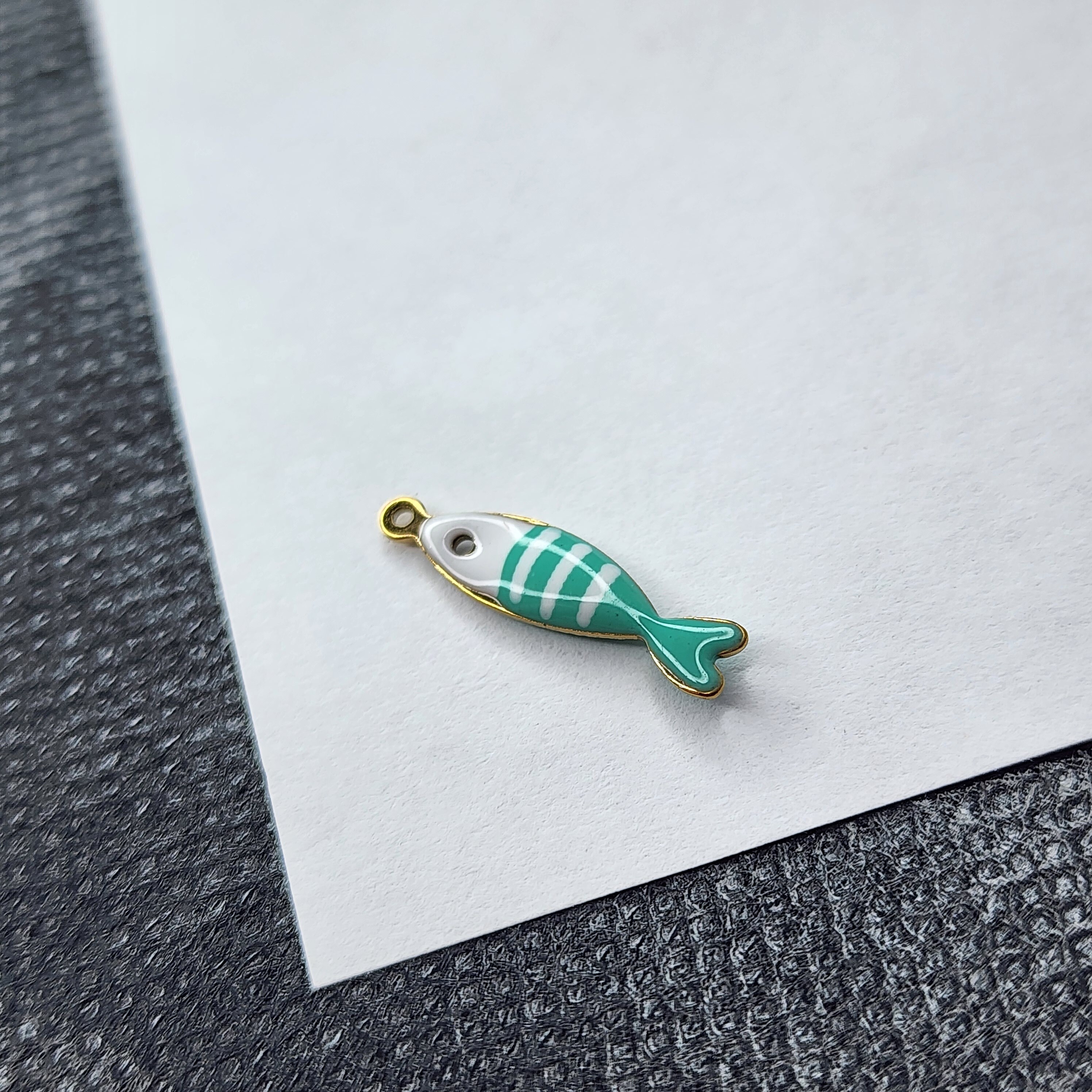 Рыбка бирюзово - белая, красивая жизненная и стильная яркая подвеска, премиальное покрытие по стали, размер 18.5×4.5мм