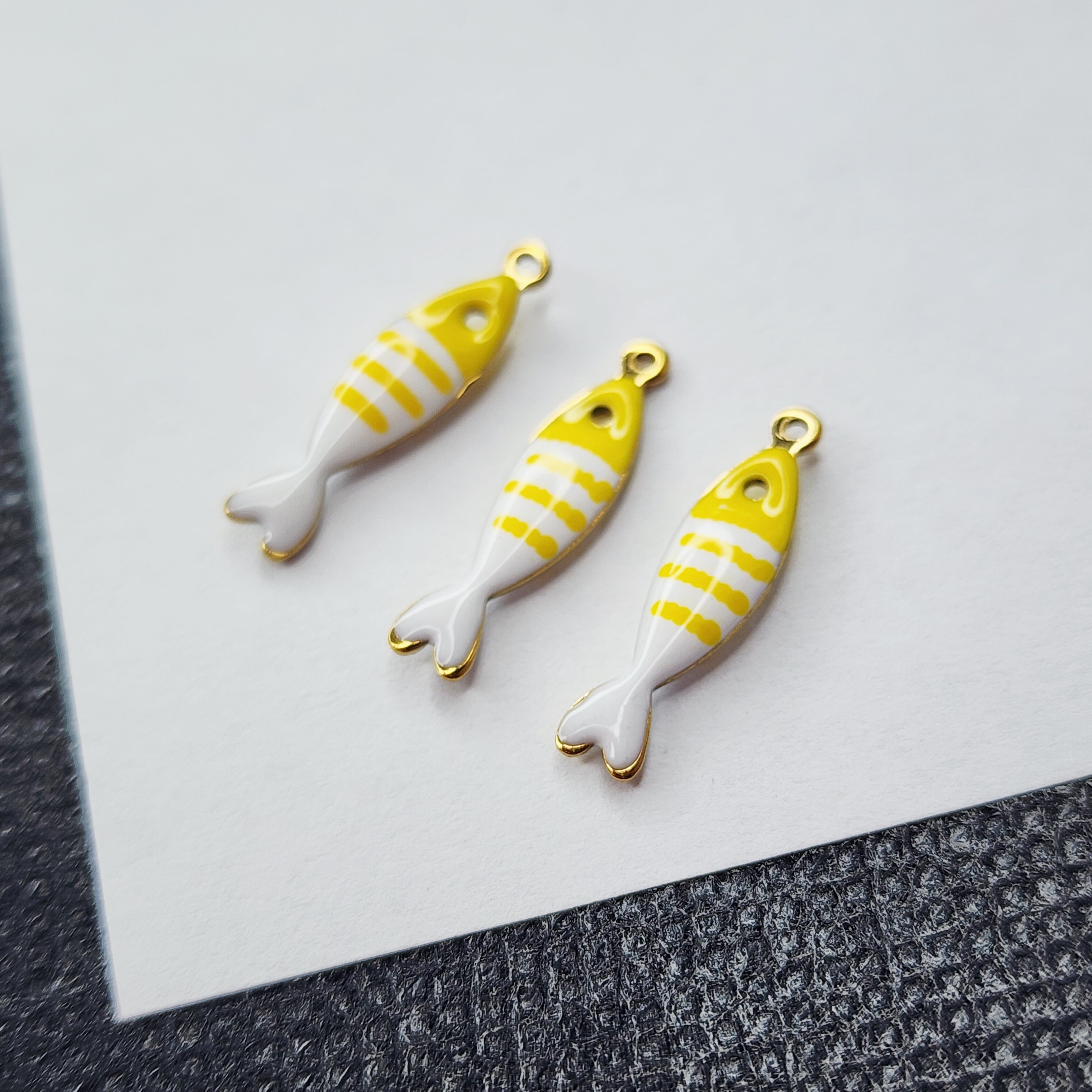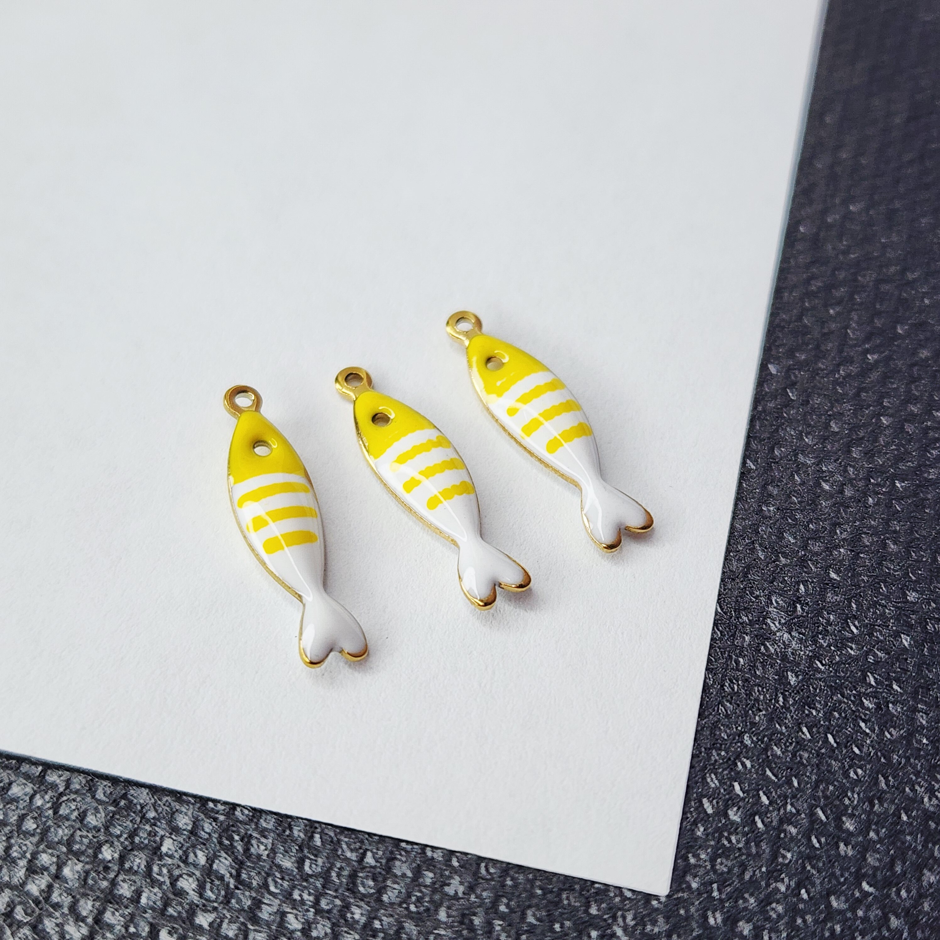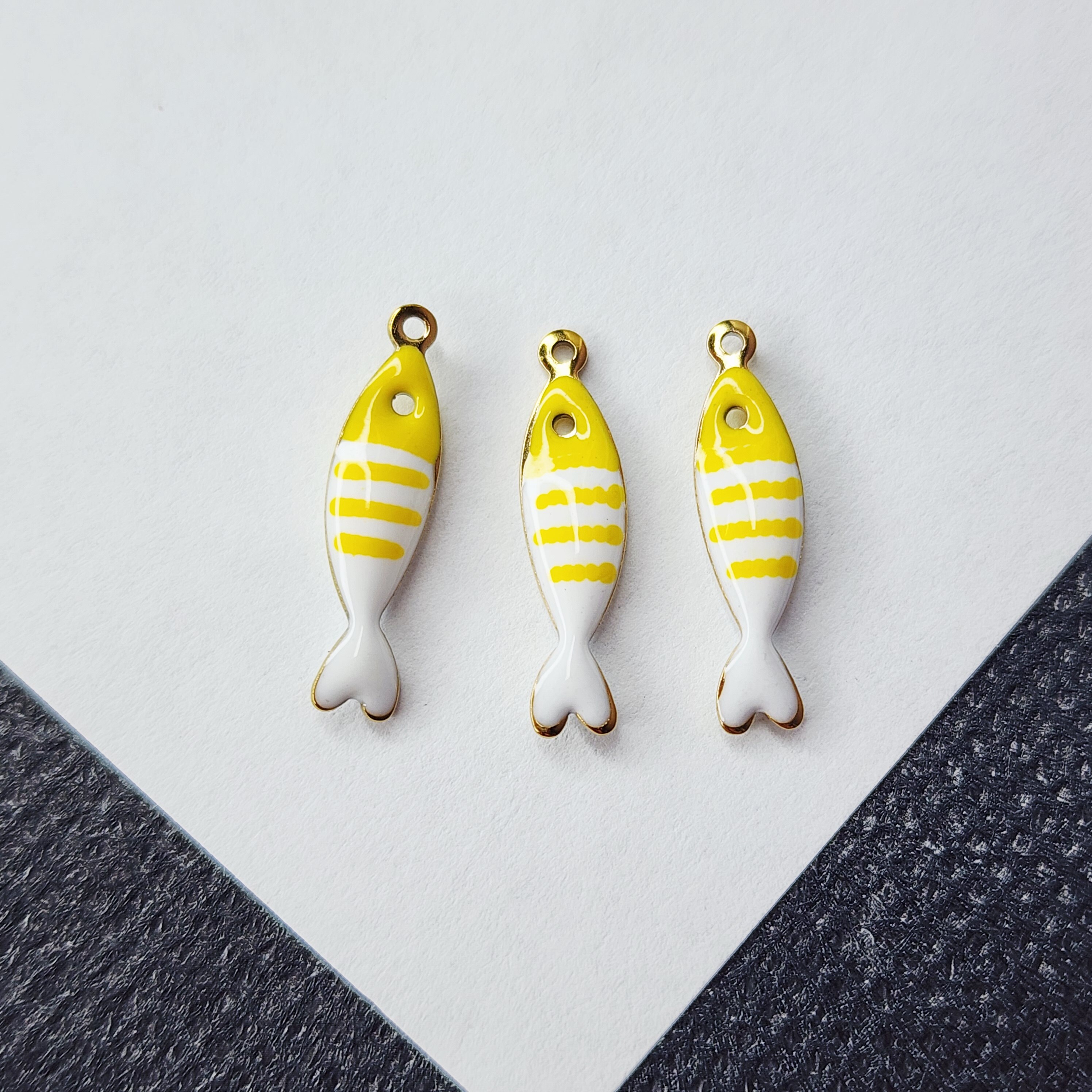 Рыбка желто - белая, красивая жизненная и стильная яркая подвеска, премиальное покрытие по стали, размер 18.5×4.5мм