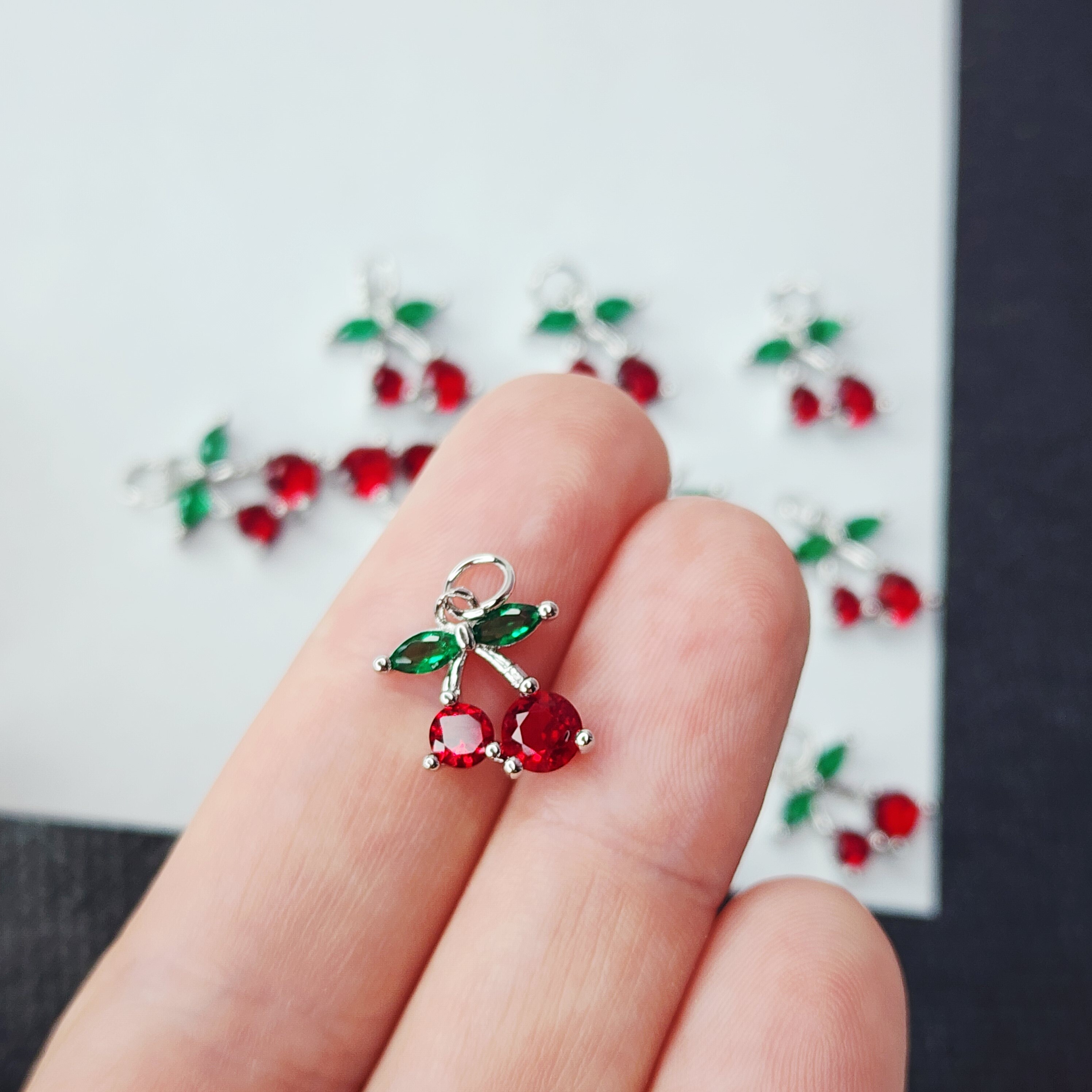 Подвеска вишенка, с яркими сверкающими фианитами, с разьемным колечком для подвешивания, размер 16мм