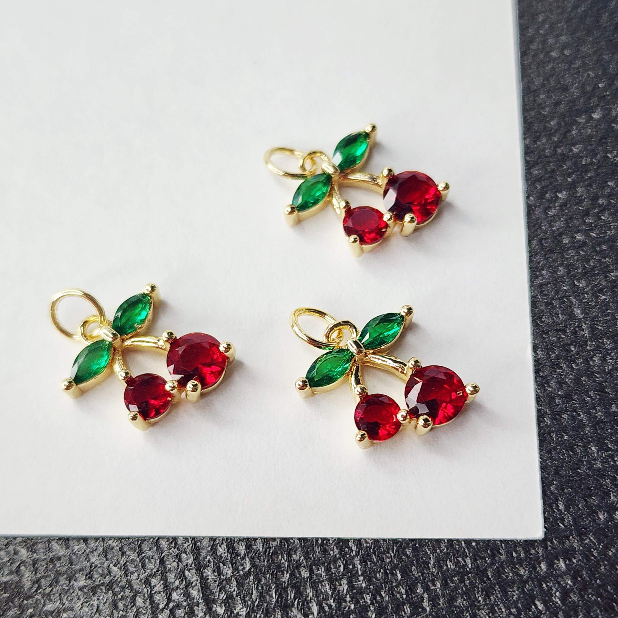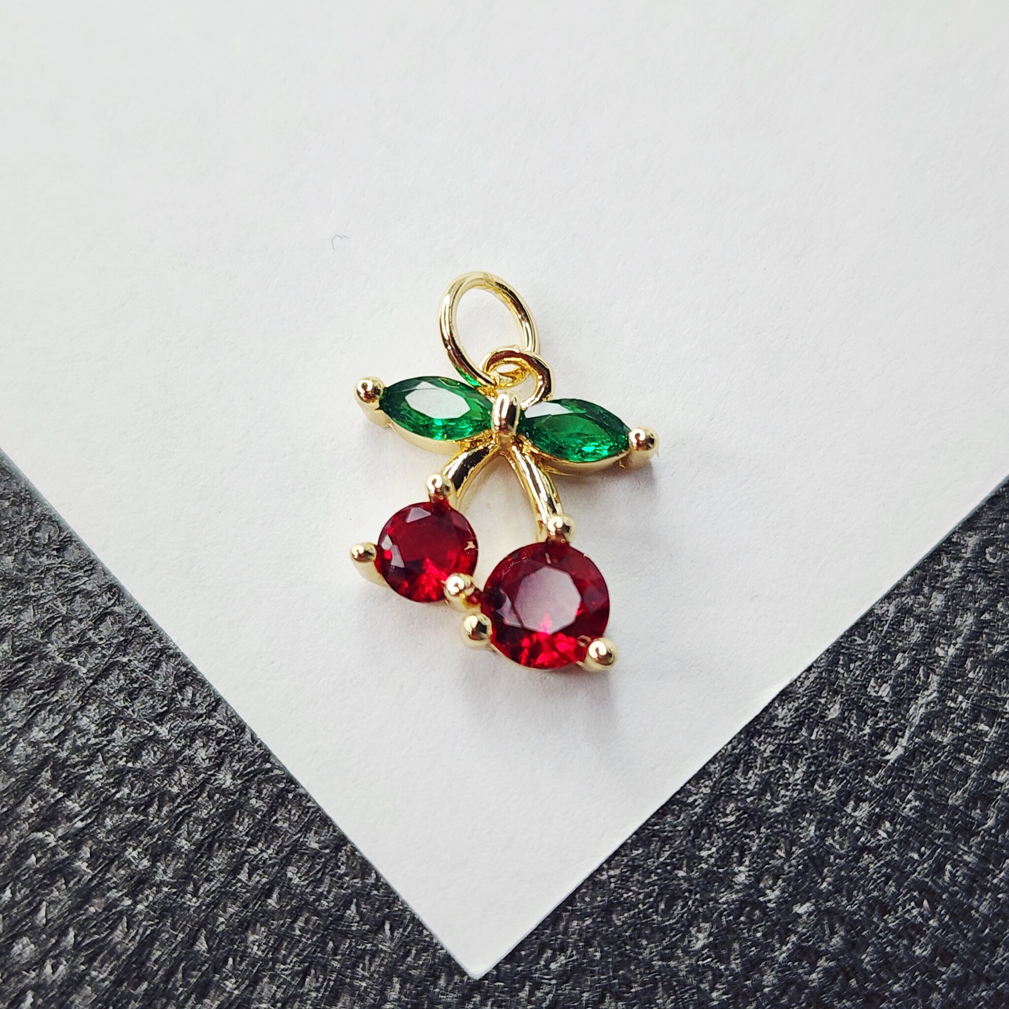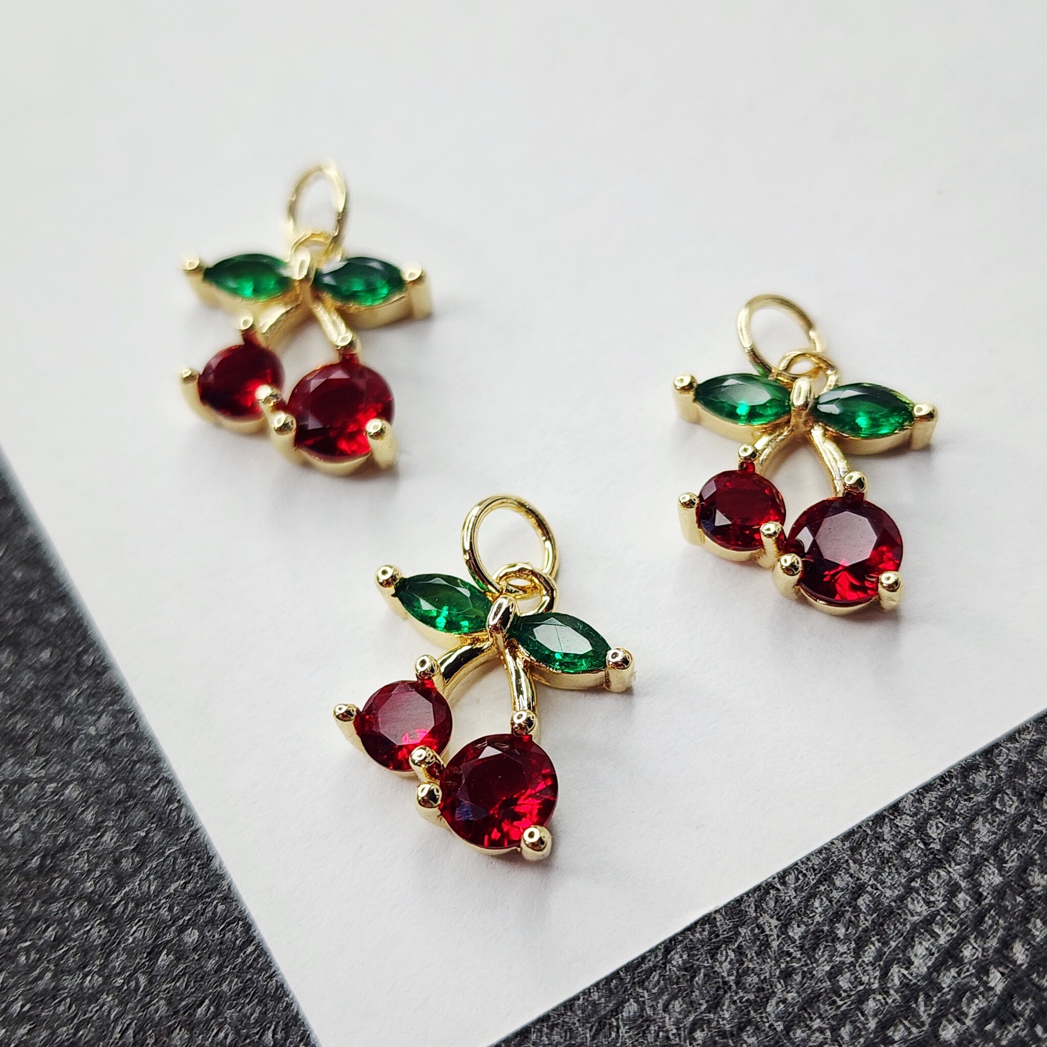 Подвеска Вишенка, размер 13×10мм(без колечка), цветные фианиты