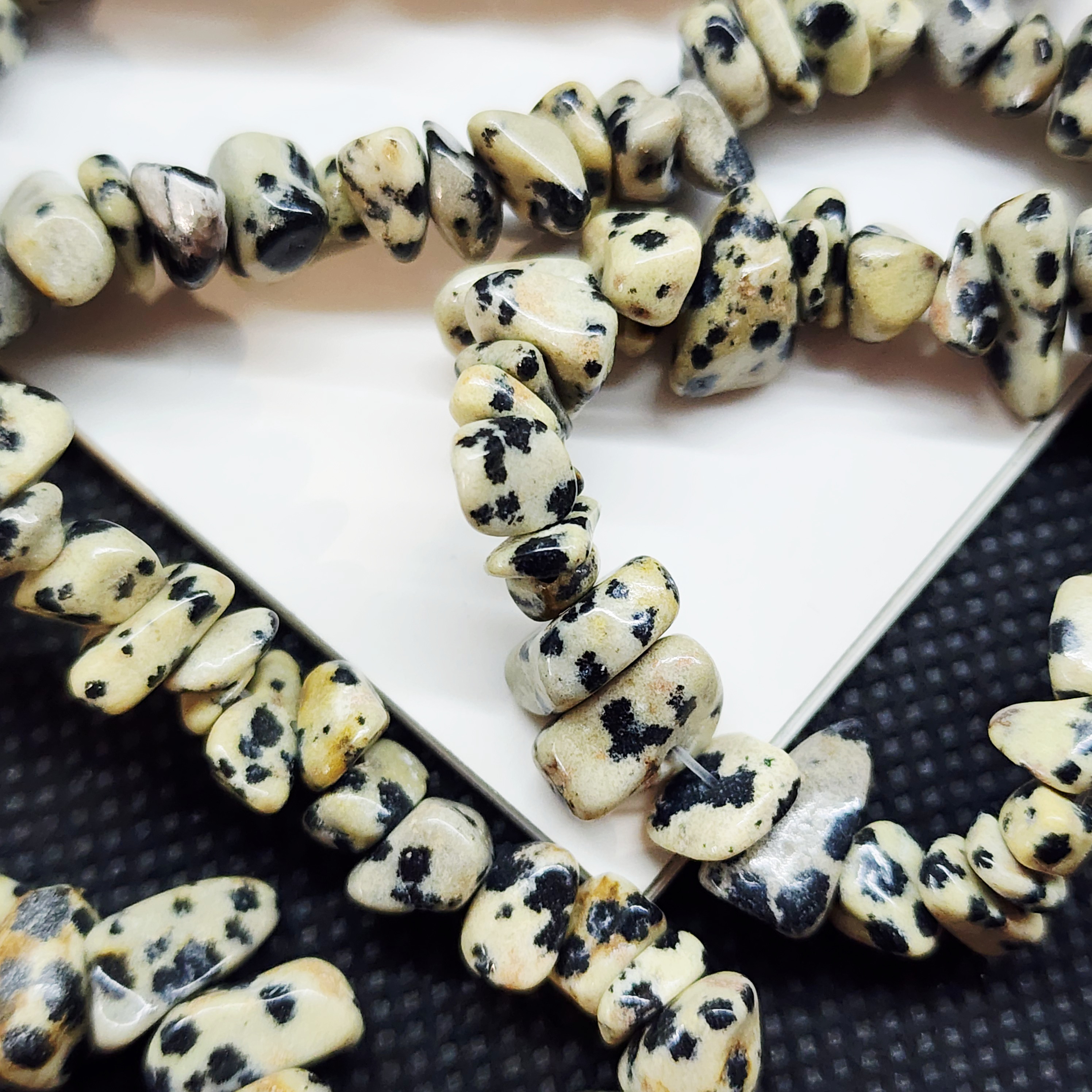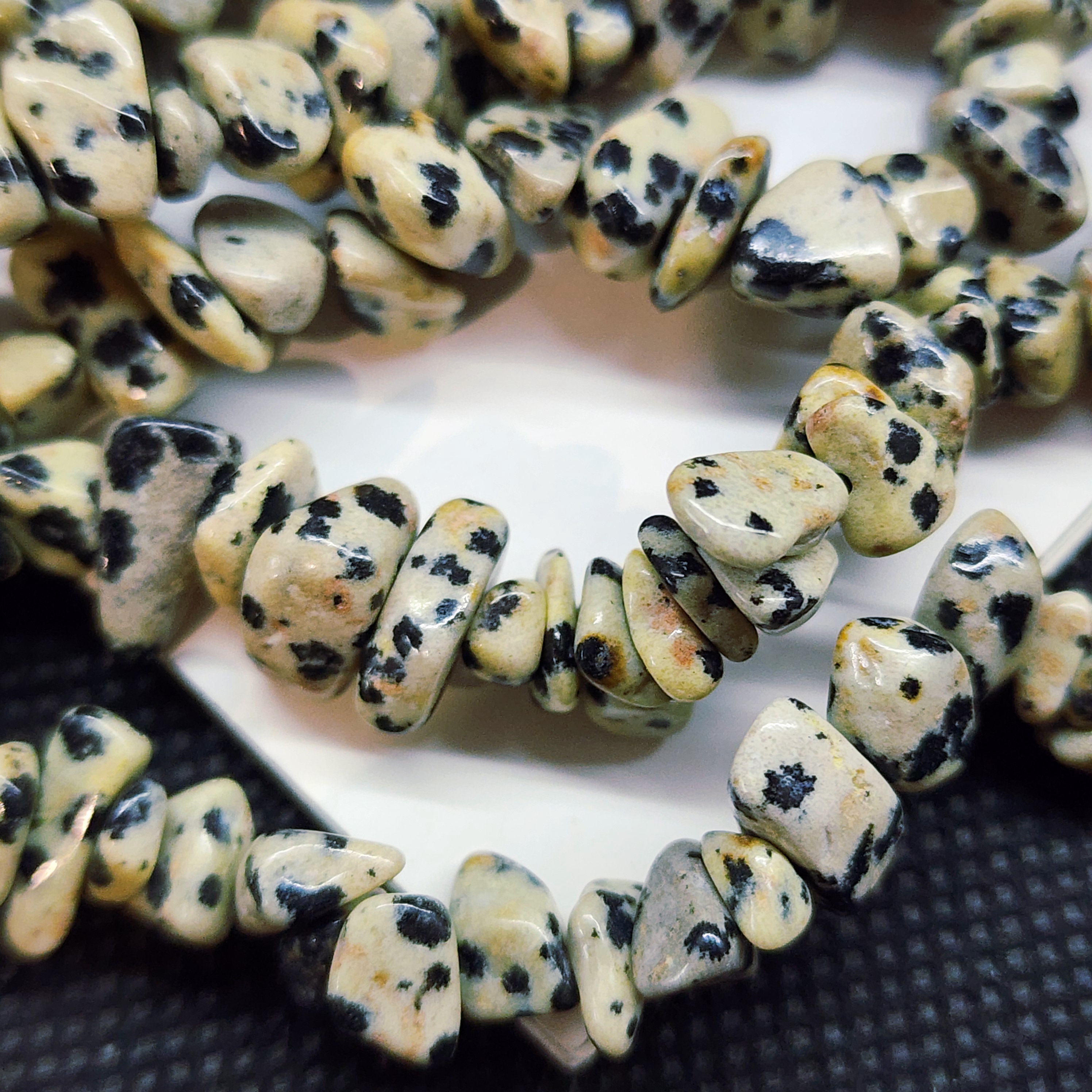 Порфир трахириодацитовый, природные бусины, вулканическая горная порода (торговое название далматиновая яшма, яшма пятнистая), красивые бусинки выступят потрясающим акцентом в колье, браслете или серьгах, очень популярный природный камень за счет своего красивого и заметного внешнего вида).