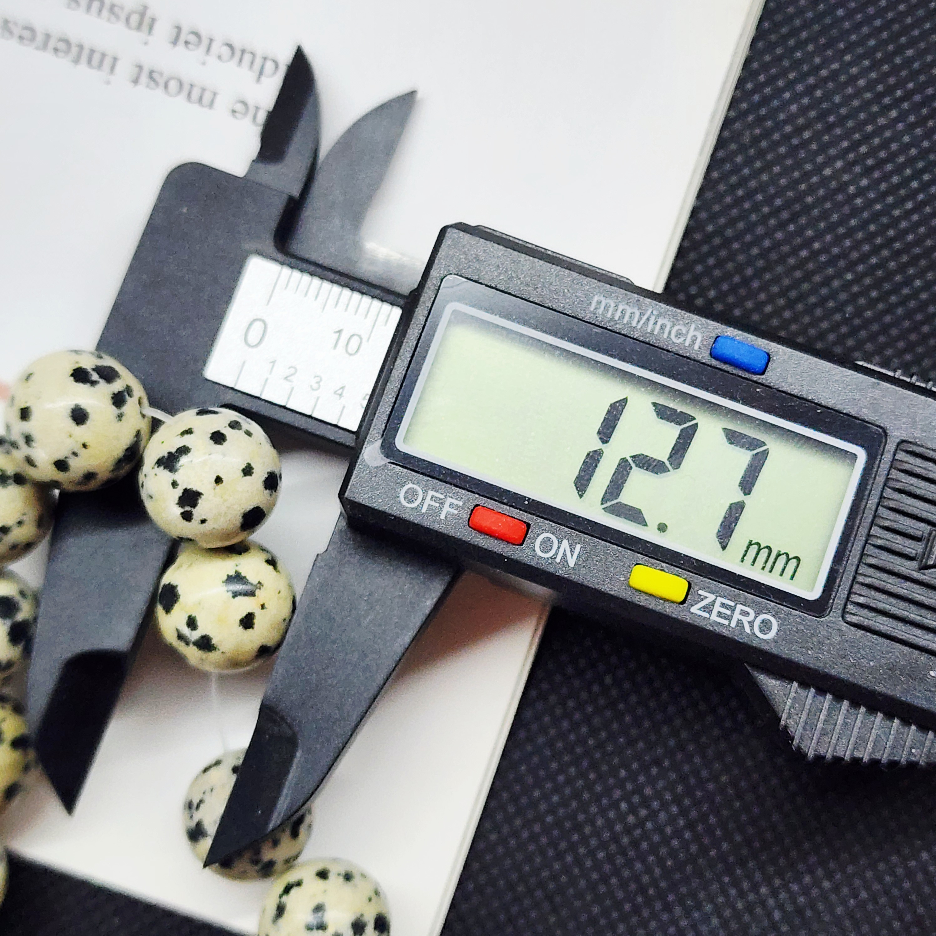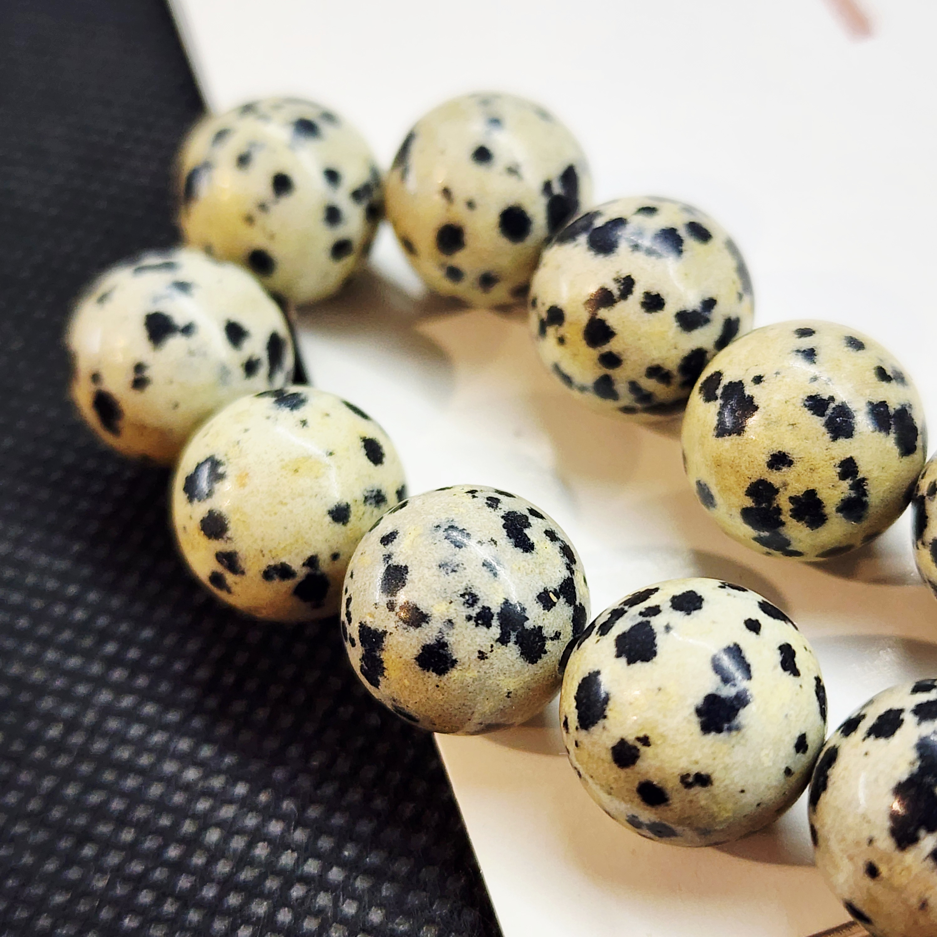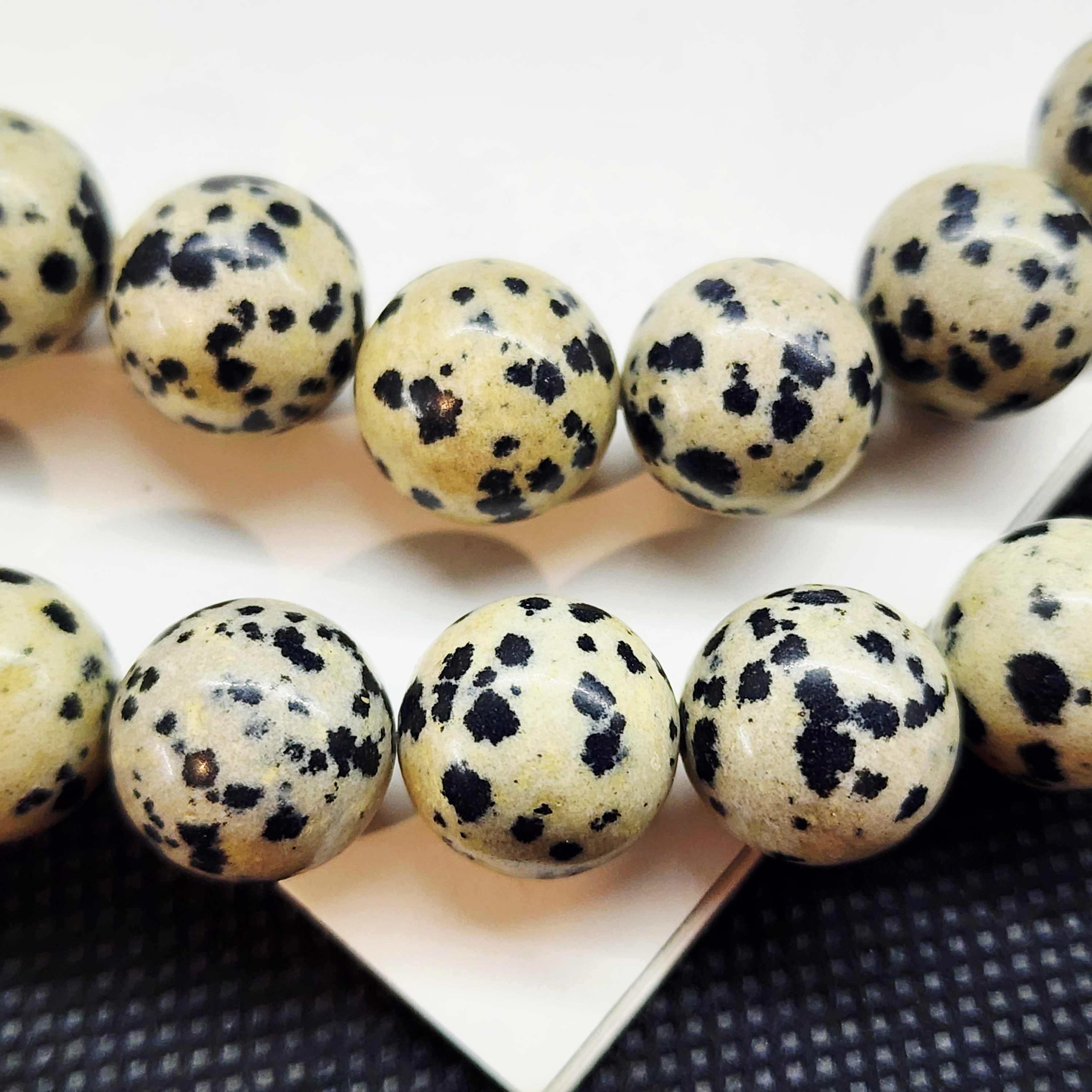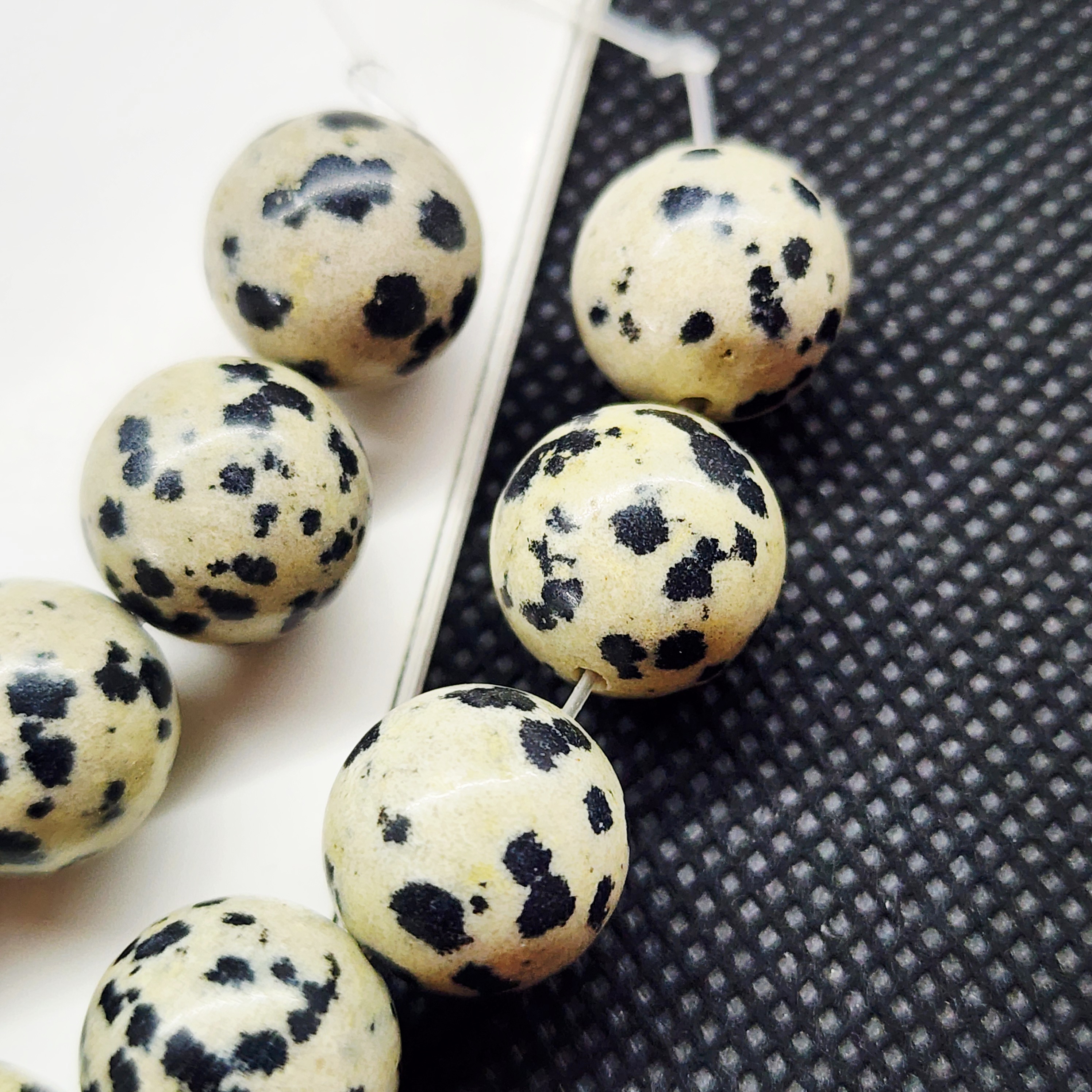 Порфир трахириодацитовый, природные бусины, вулканическая горная порода (торговое название далматиновая яшма, яшма пятнистая), красивые бусинки выступят потрясающим акцентом в колье, браслете или серьгах, очень популярный природный камень за счет своего красивого и заметного внешнего вида).