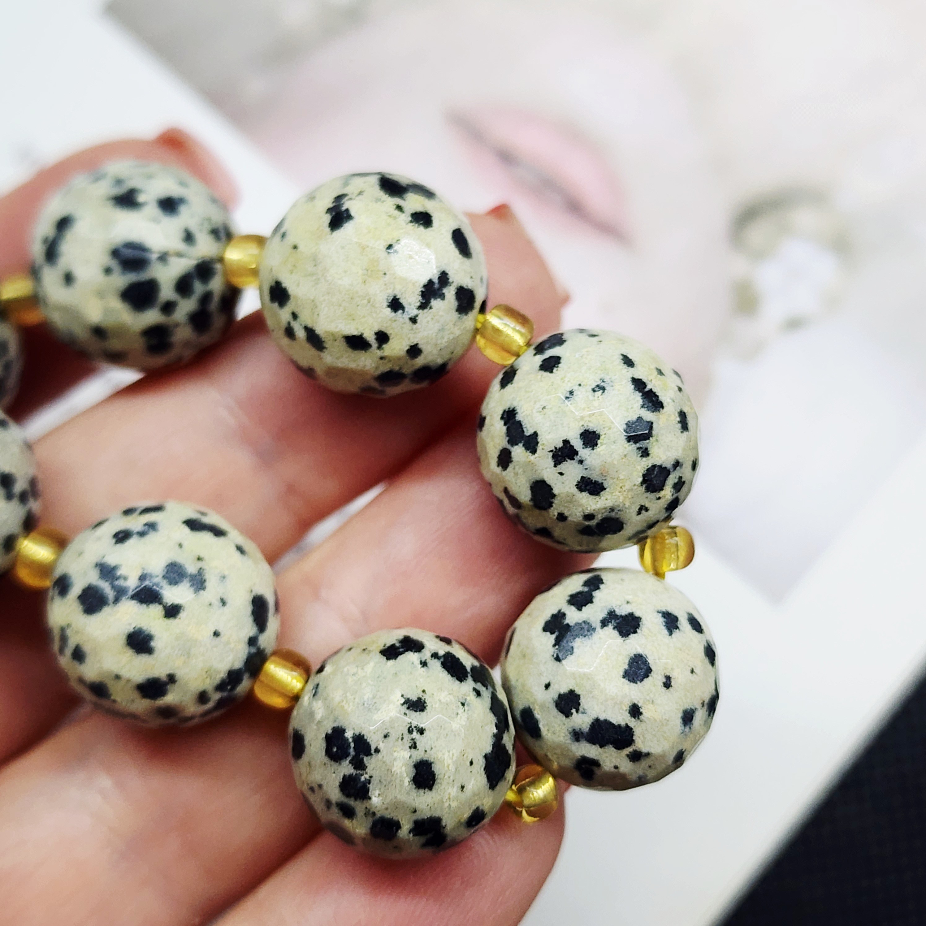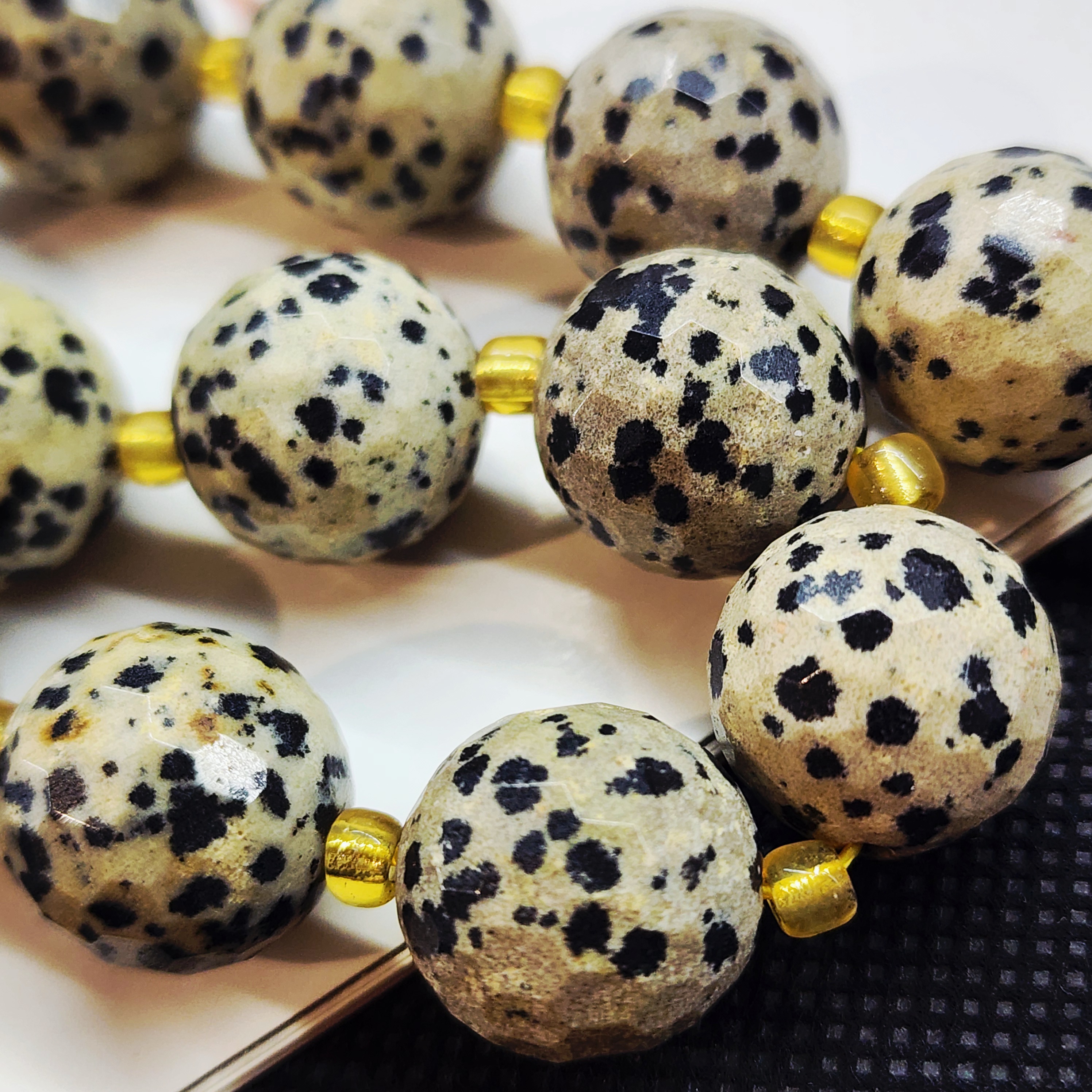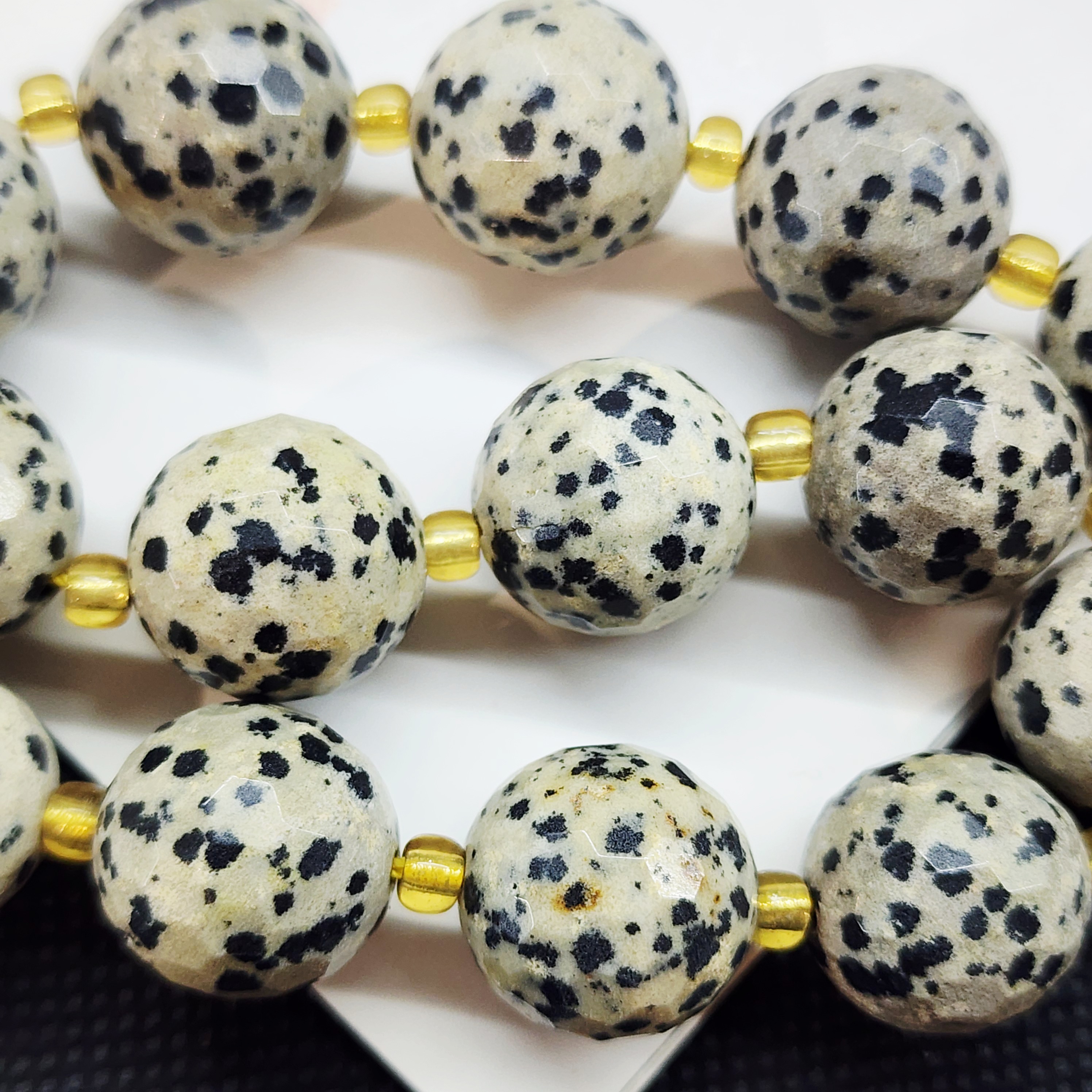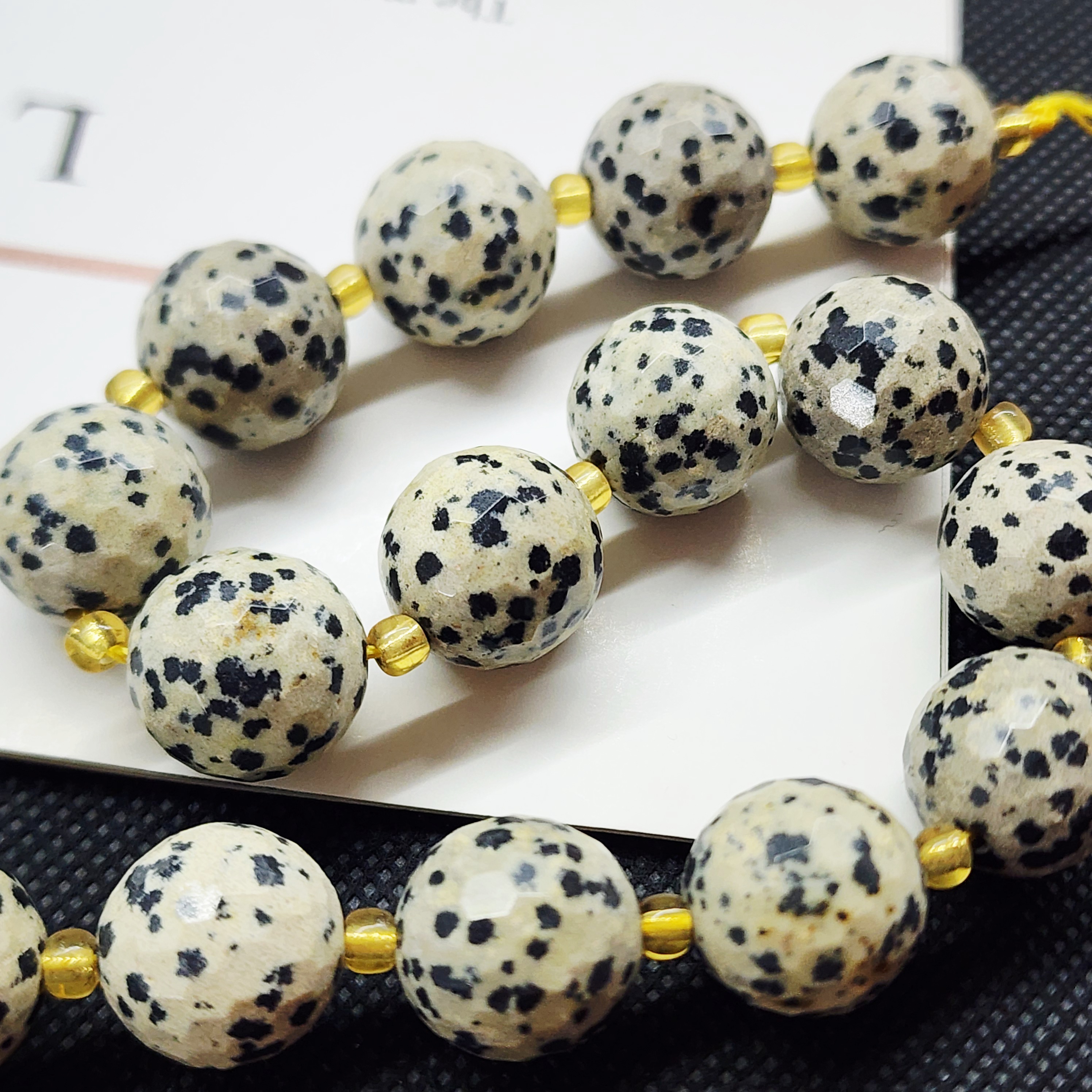 Порфир трахириодацитовый, природные бусины, вулканическая горная порода (торговое название далматиновая яшма, яшма пятнистая), красивые бусинки выступят потрясающим акцентом в колье, браслете или серьгах, очень популярный природный камень за счет своего красивого и заметного внешнего вида).