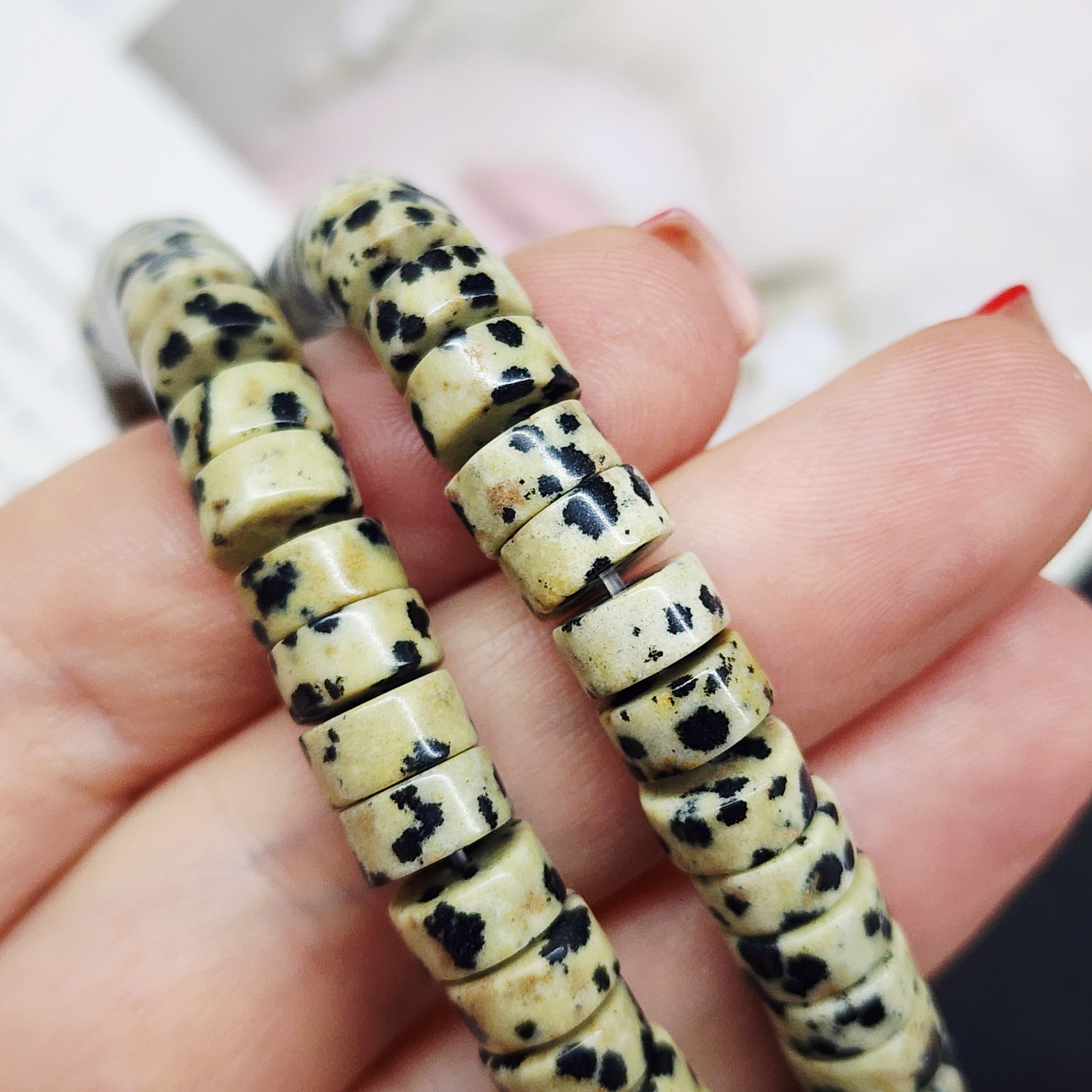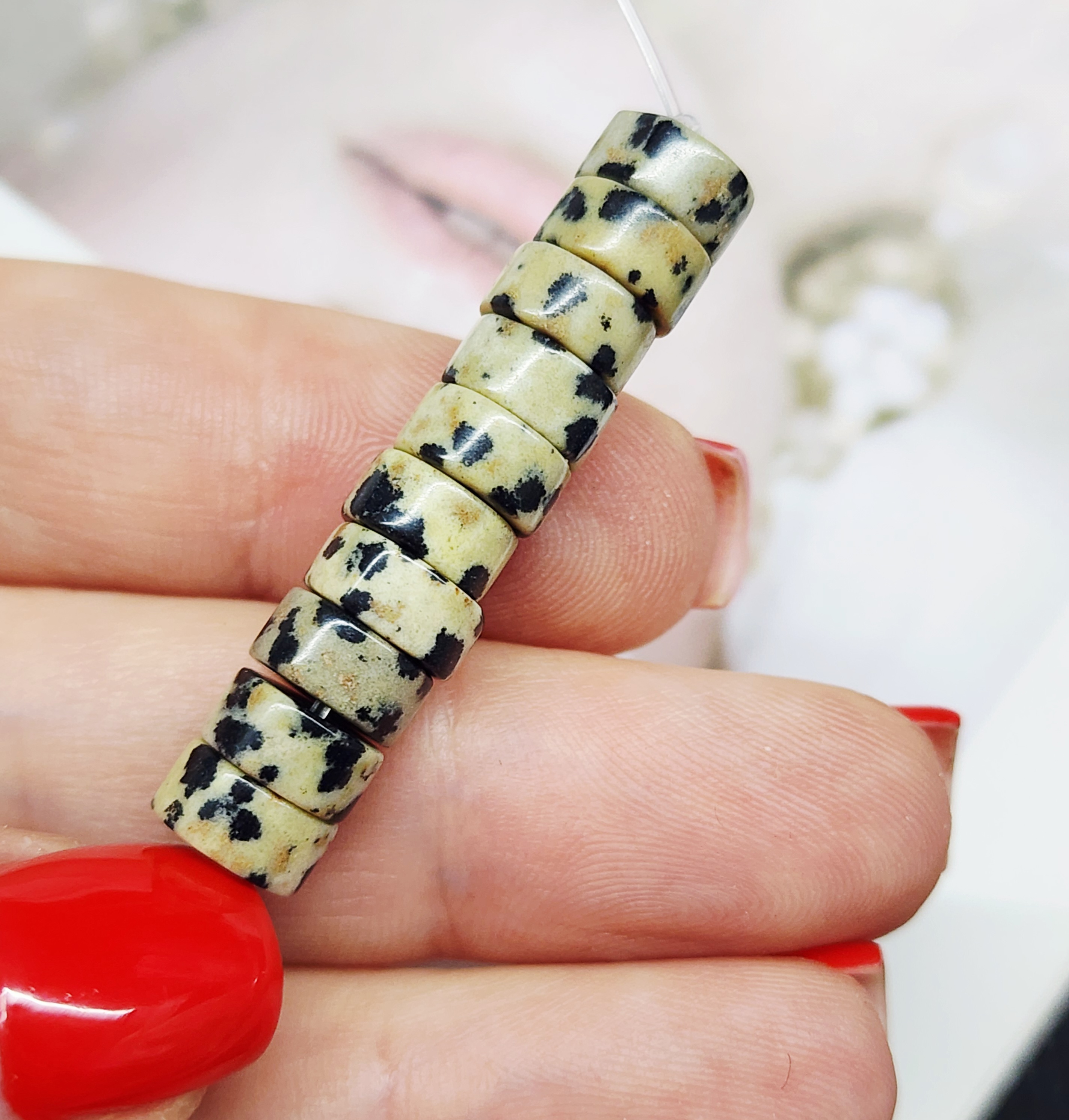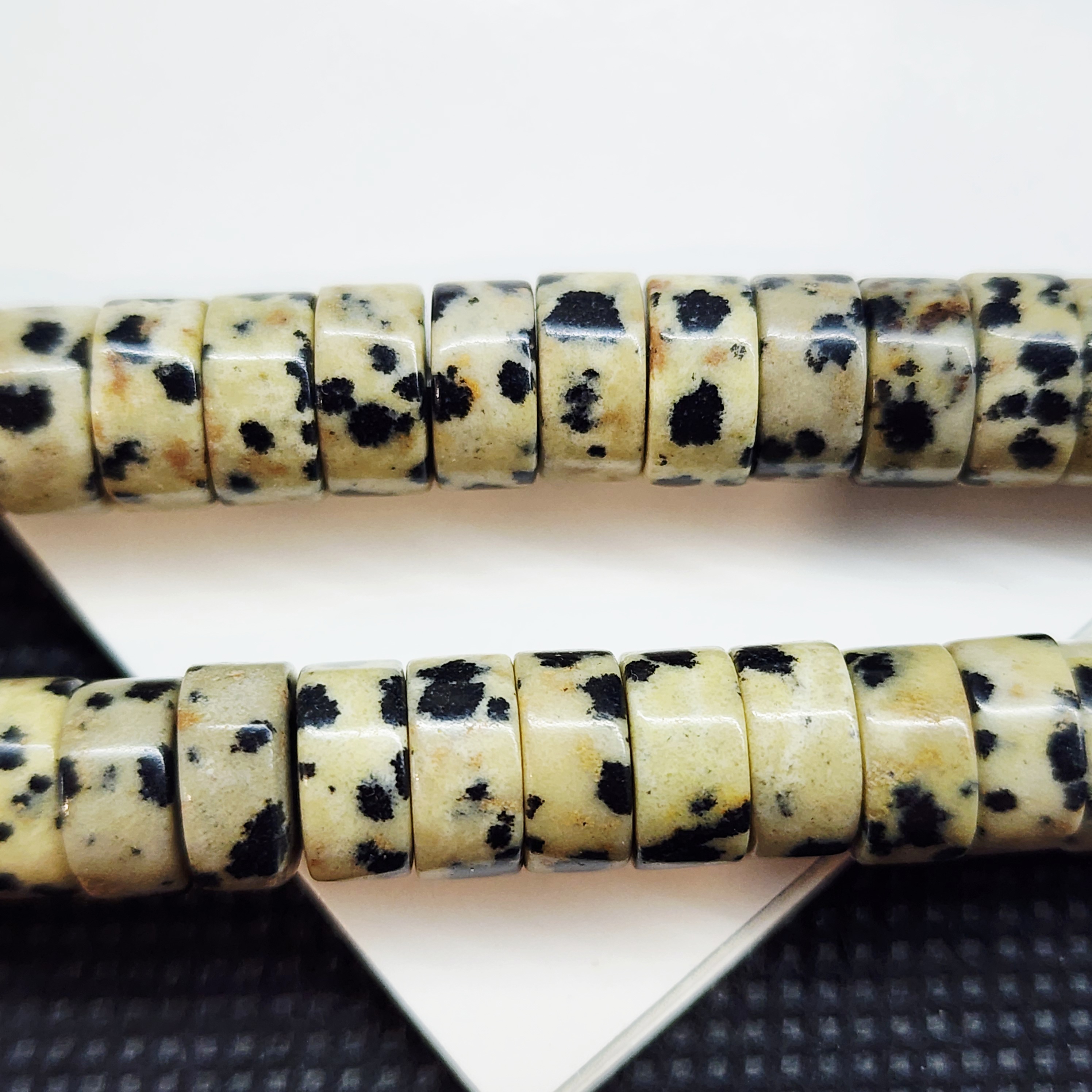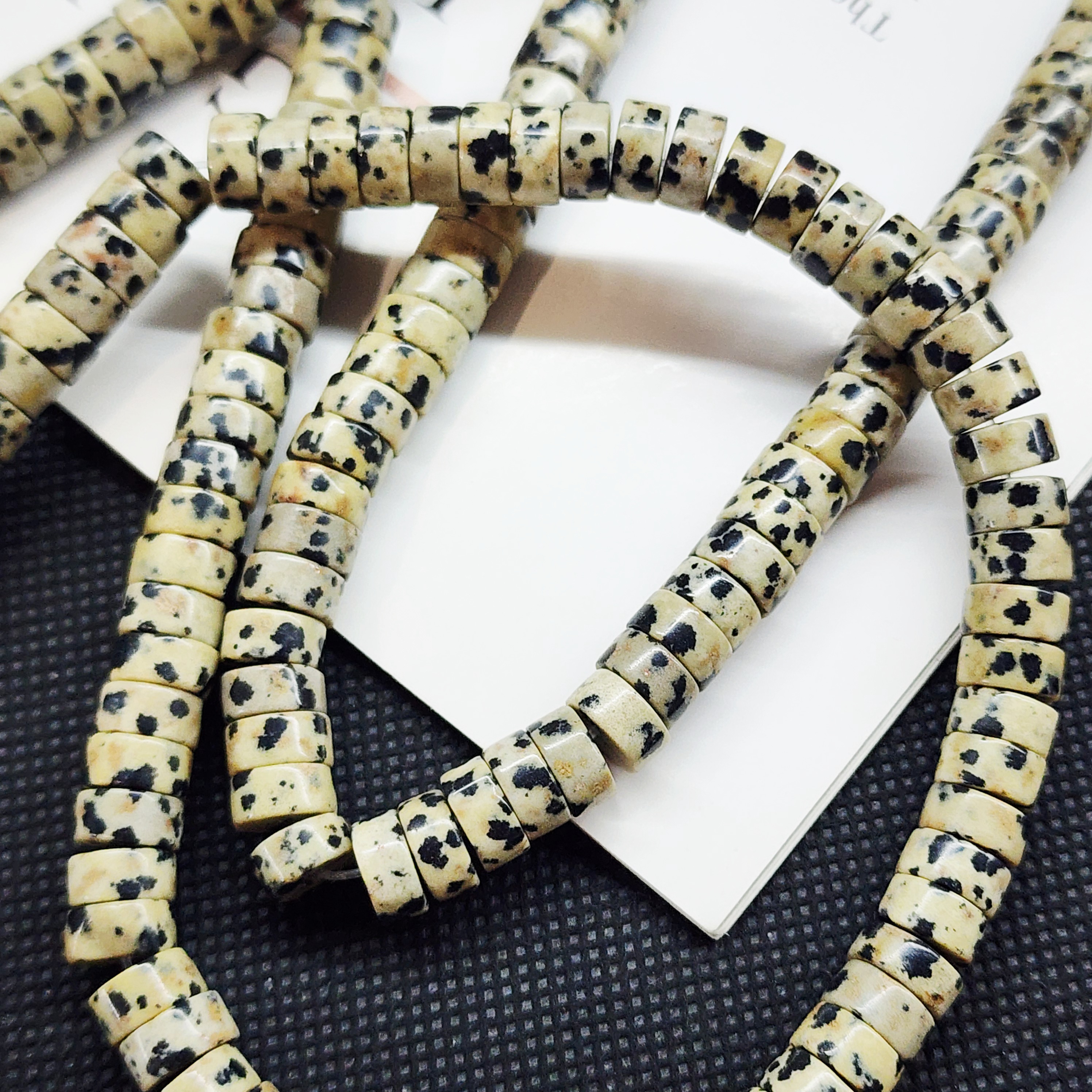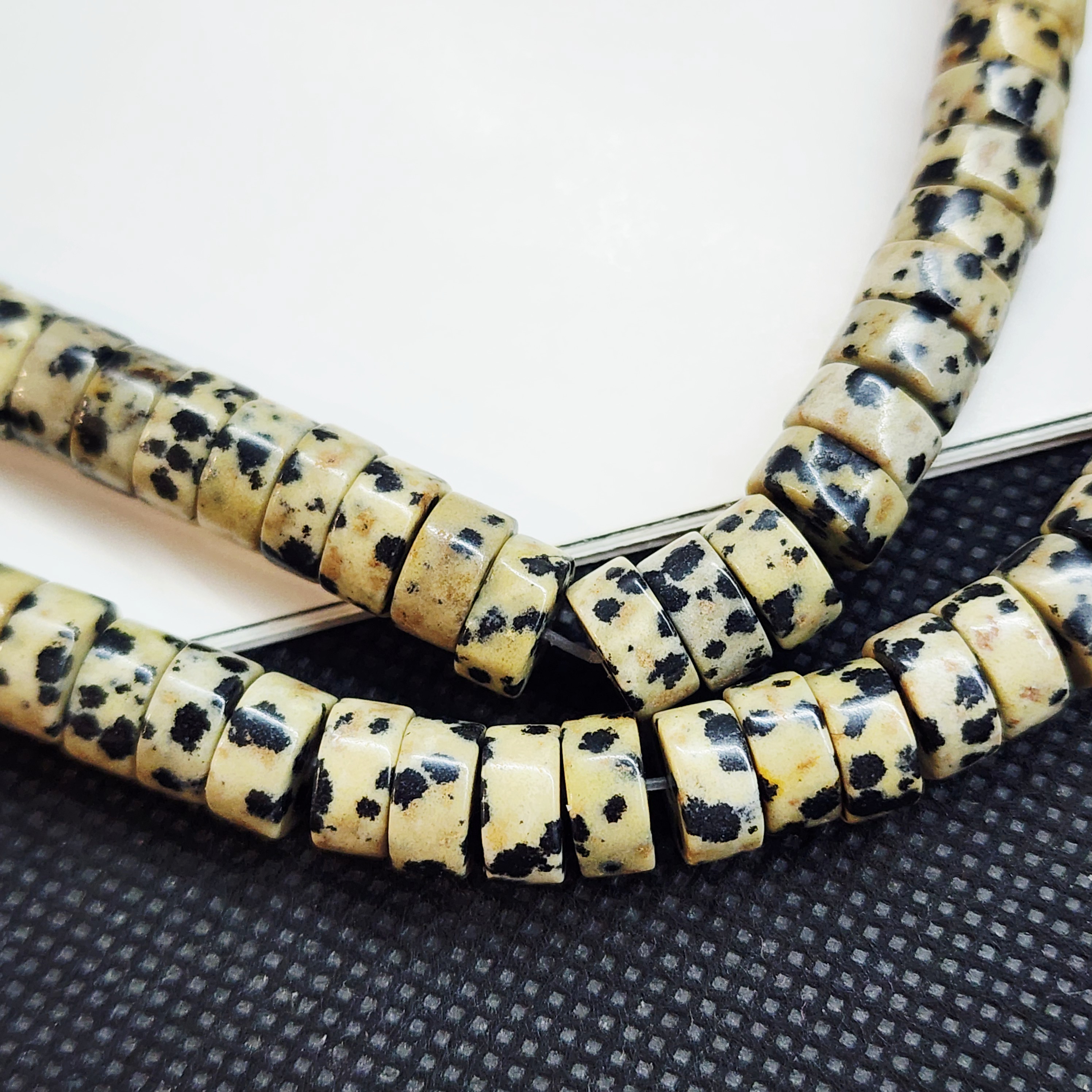 Порфир трахириодацитовый, природные бусины, вулканическая горная порода (торговое название далматиновая яшма, яшма пятнистая), красивые бусинки выступят потрясающим акцентом в колье, браслете или серьгах, очень популярный природный камень за счет своего красивого и заметного внешнего вида).