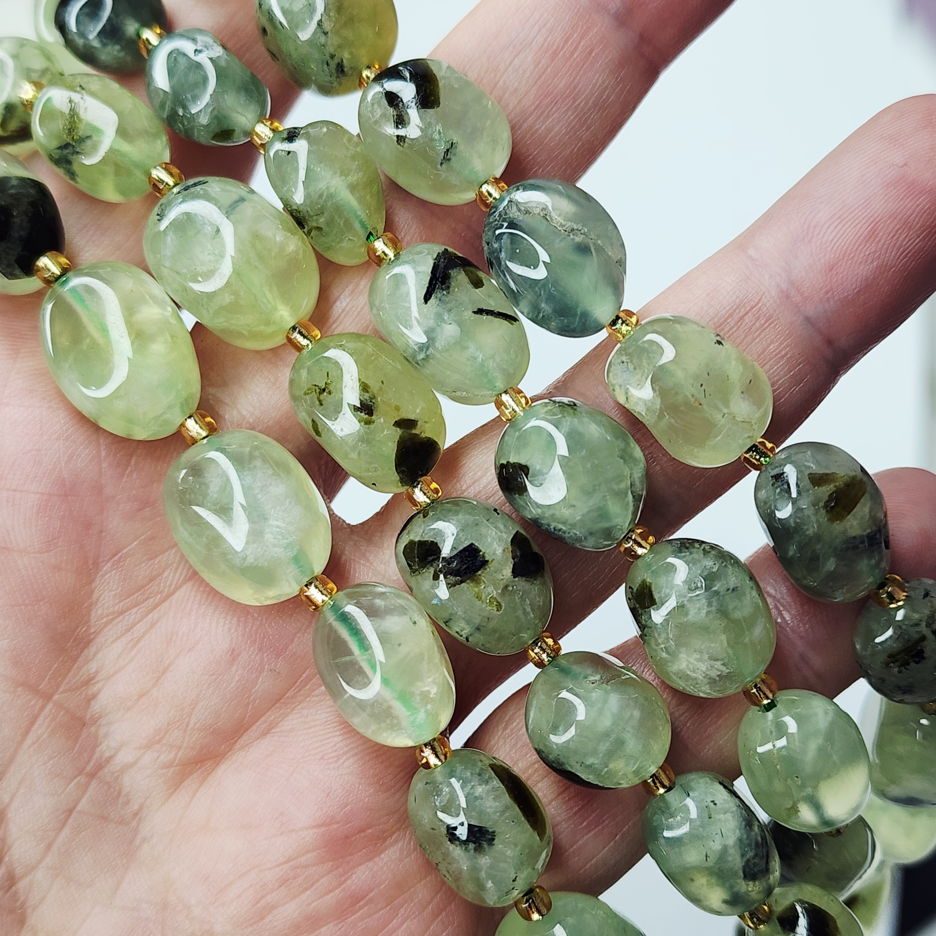 Пренит природный, средний размер галтовки: 12 - 15 мм × 10 - 12 мм
