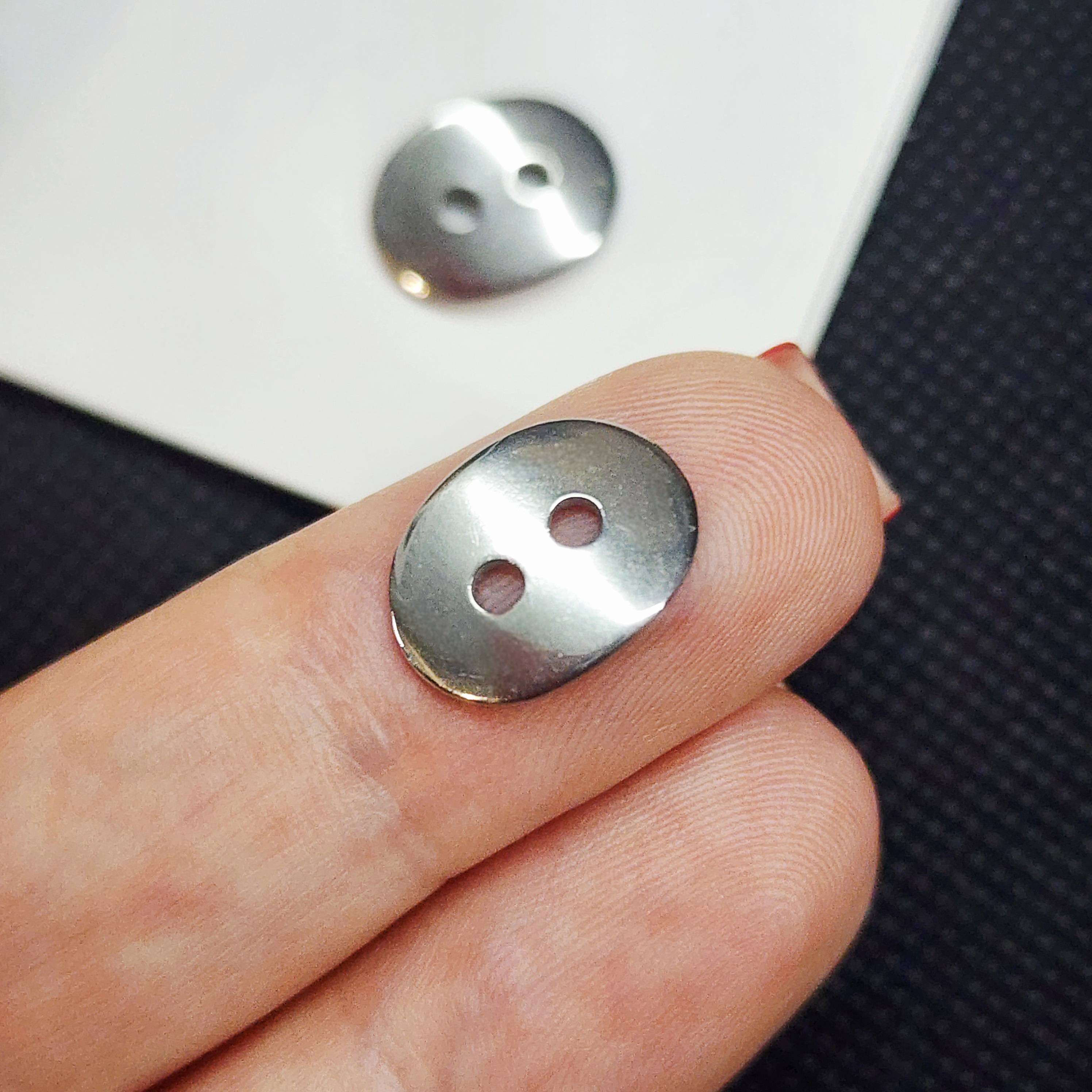Пуговицы с 2мя отверстиями, отлично для одежды, а так же можно использовать для браслетов (пример в галерее), смотрятся красиво, блестящие, прочные и лёгкие, размер 14×10.5×1мм