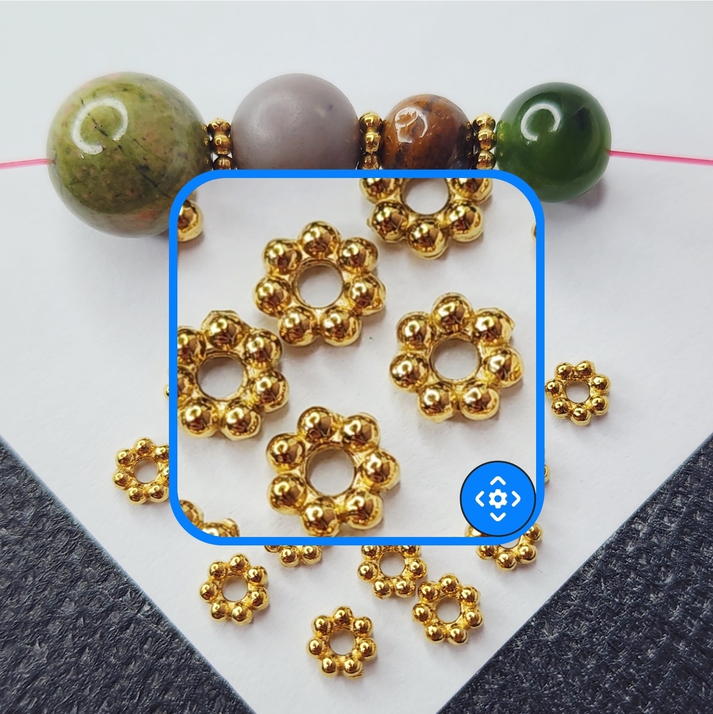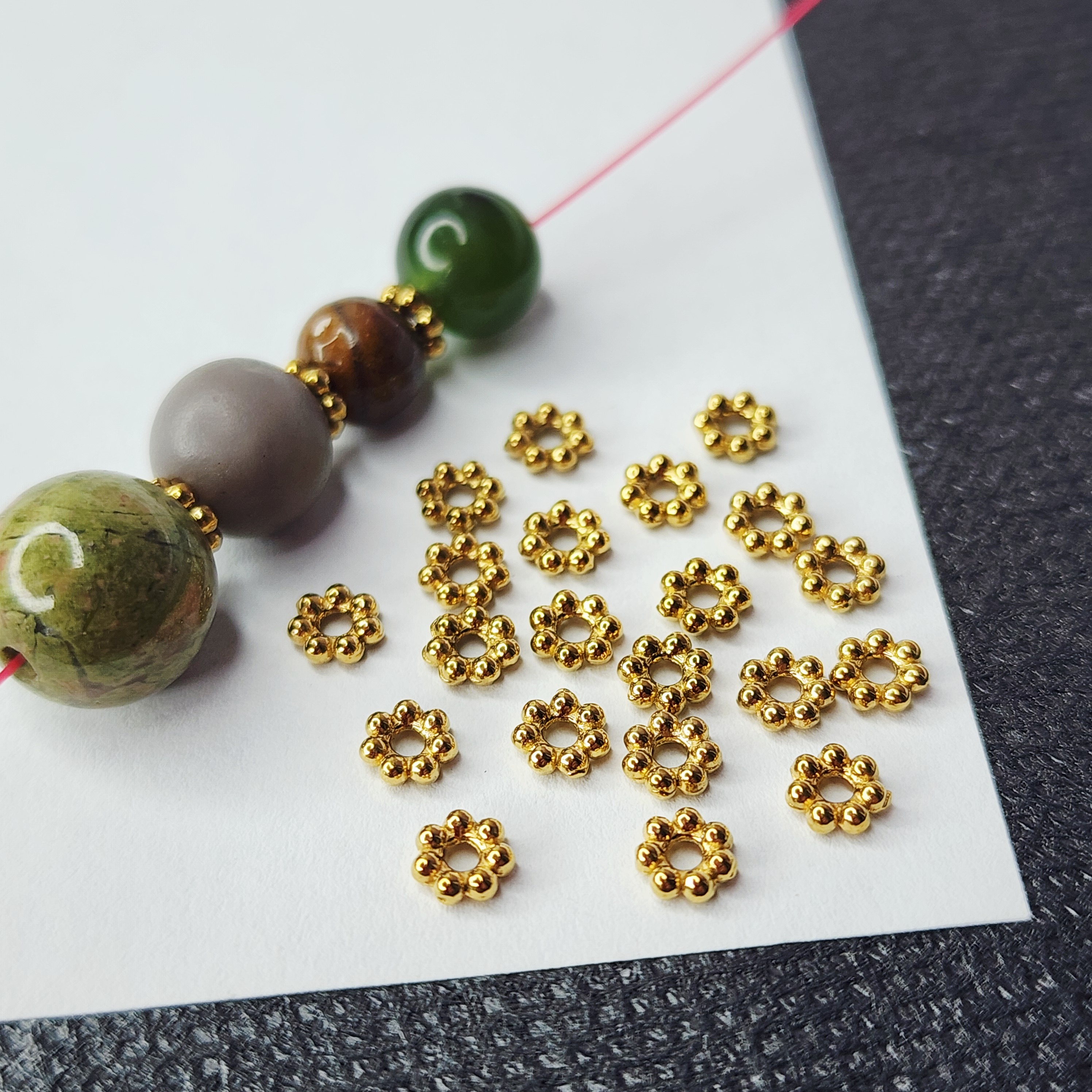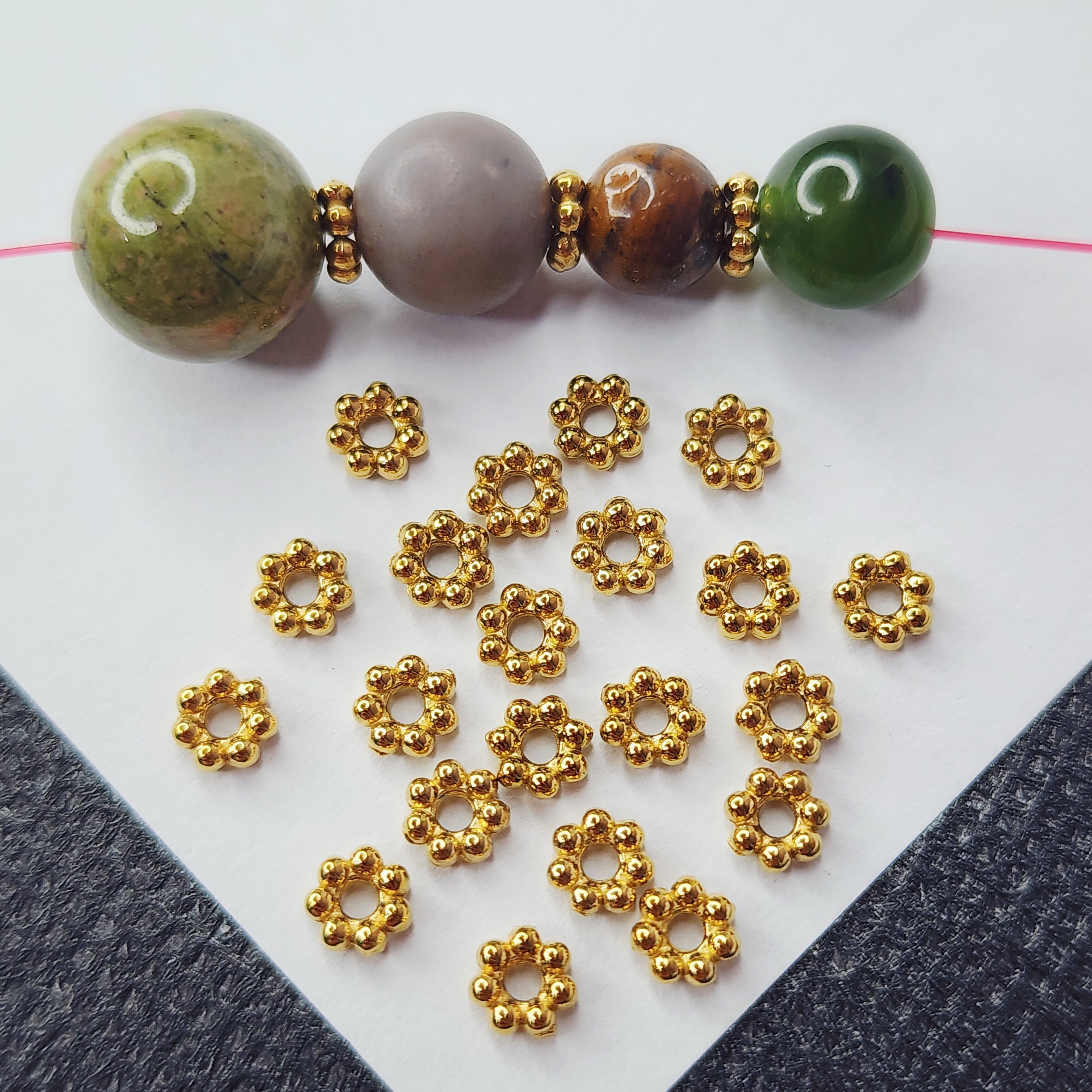 Проставка между бусинами, рондель в виде цветочка, очень красиво смотрится в украшениях, хорошо закрывает отверстие, качественное покрытие позолотой обеспечивает долгую носку
