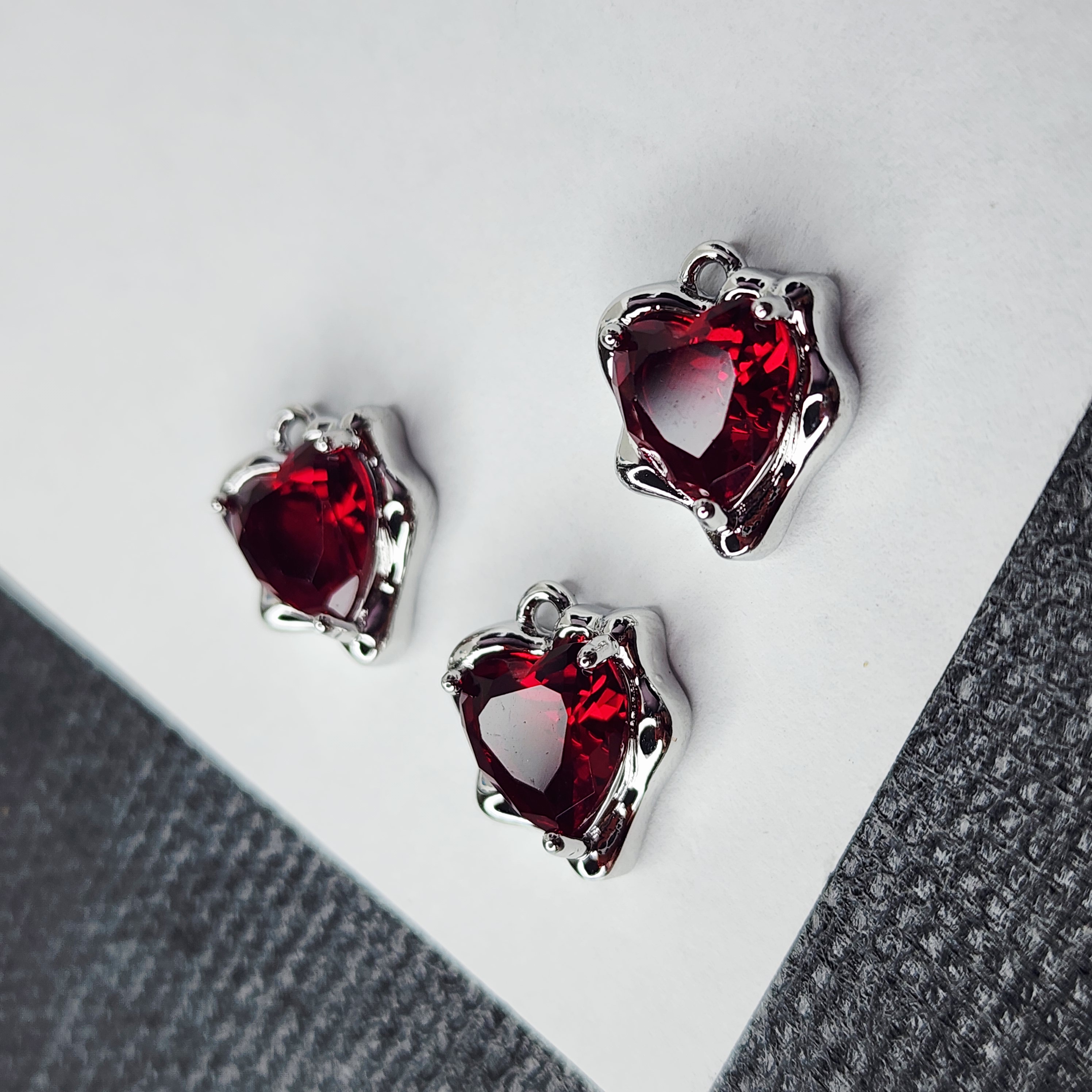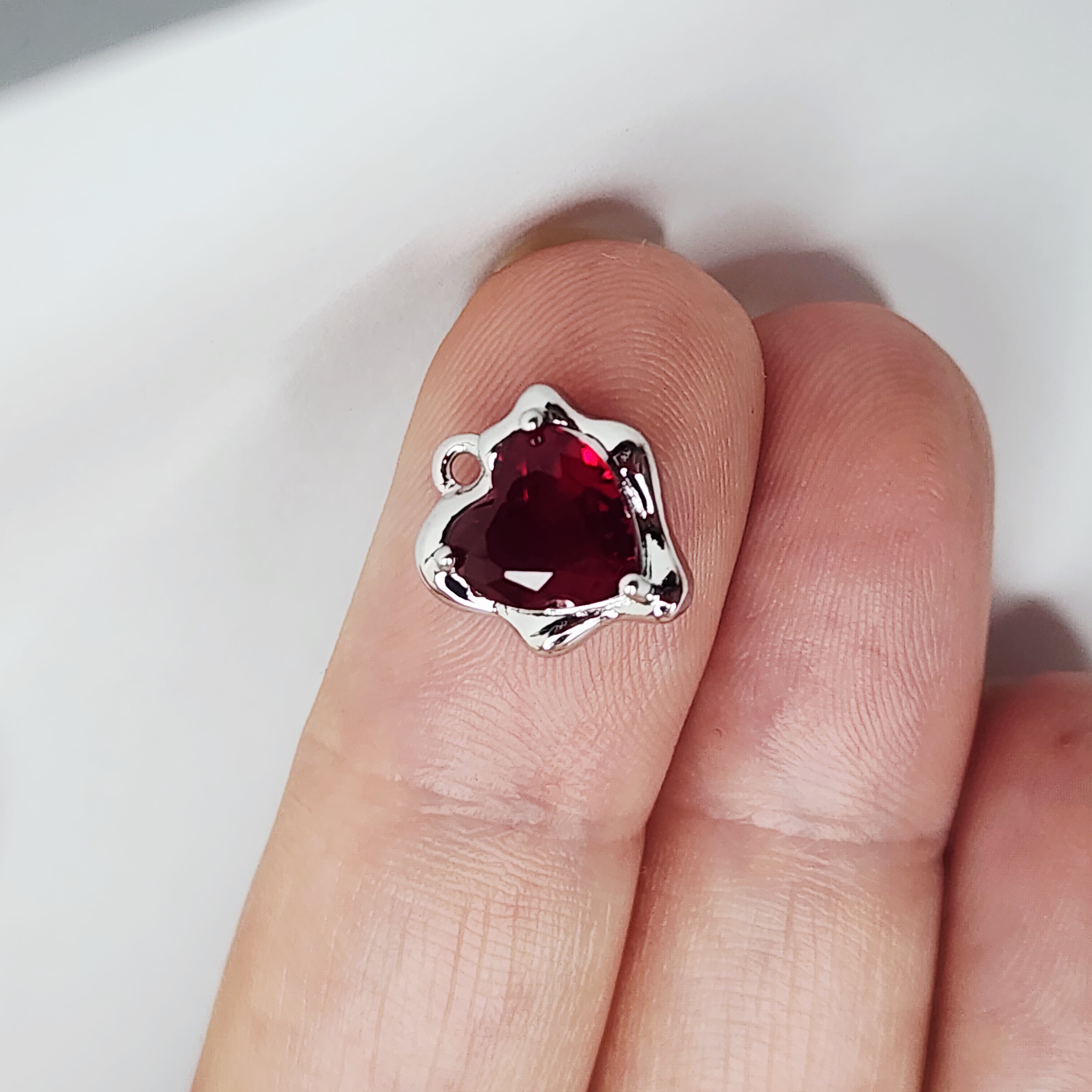 Подвеска сердечко, модная форма, красный фианит, размер 12.5×10.8мм