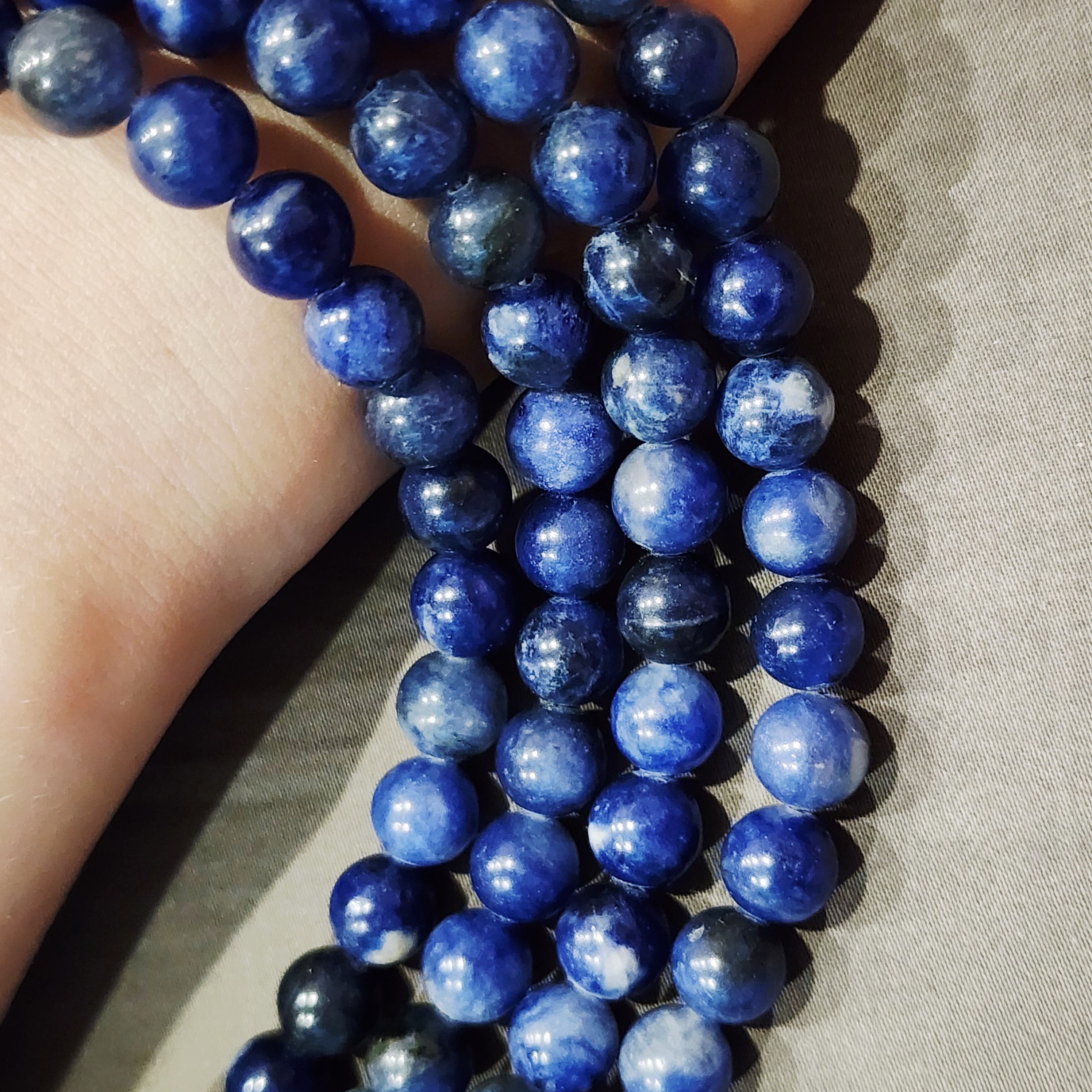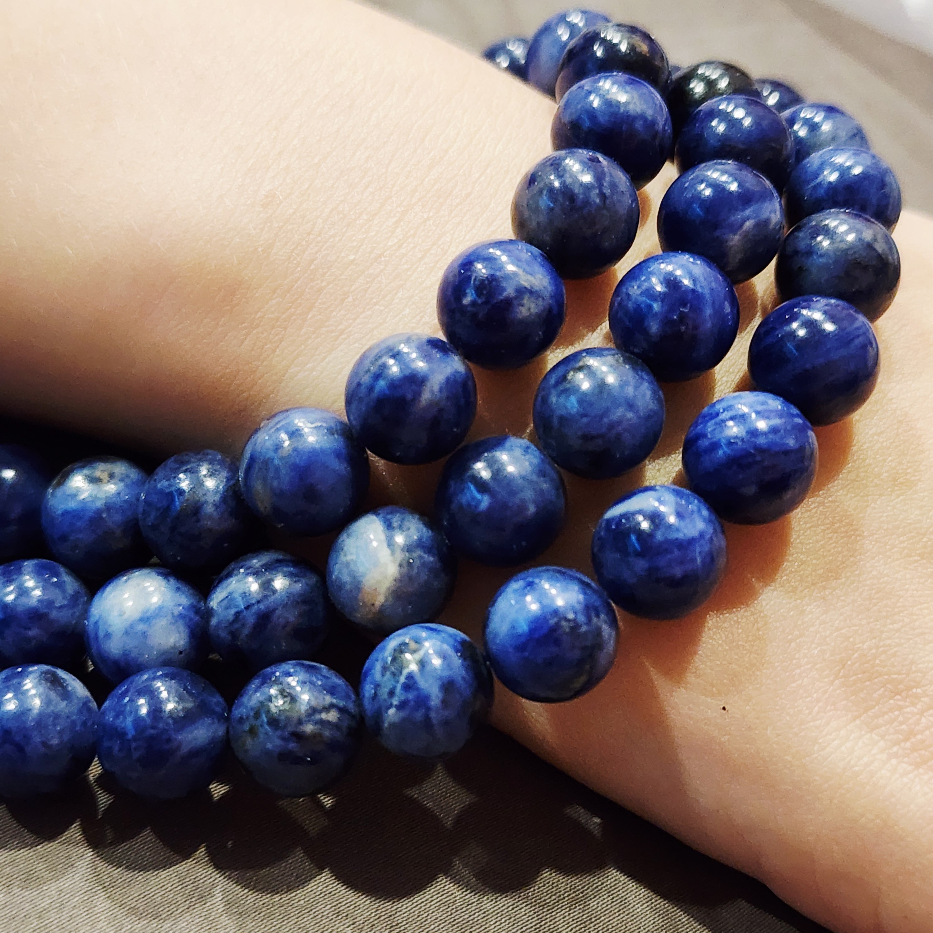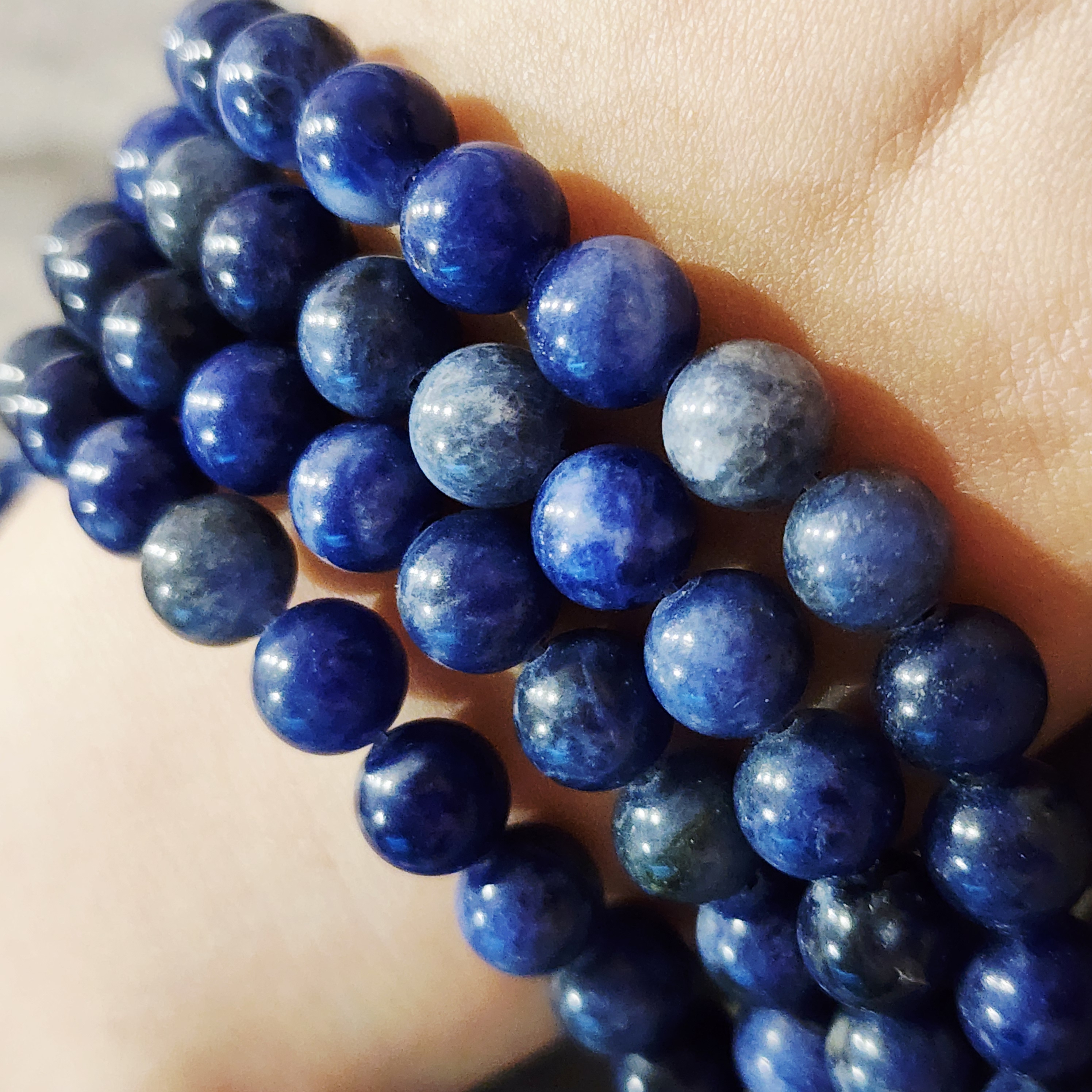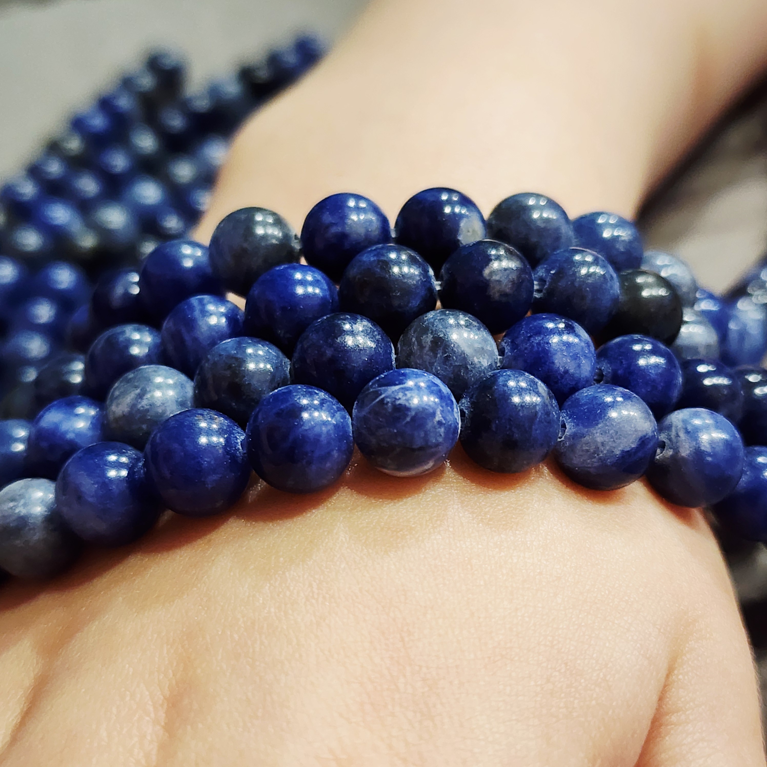 Содалит природный, насыщенный цвет, красочный натуральный камень, форма гладкий шар, средний размер 8мм