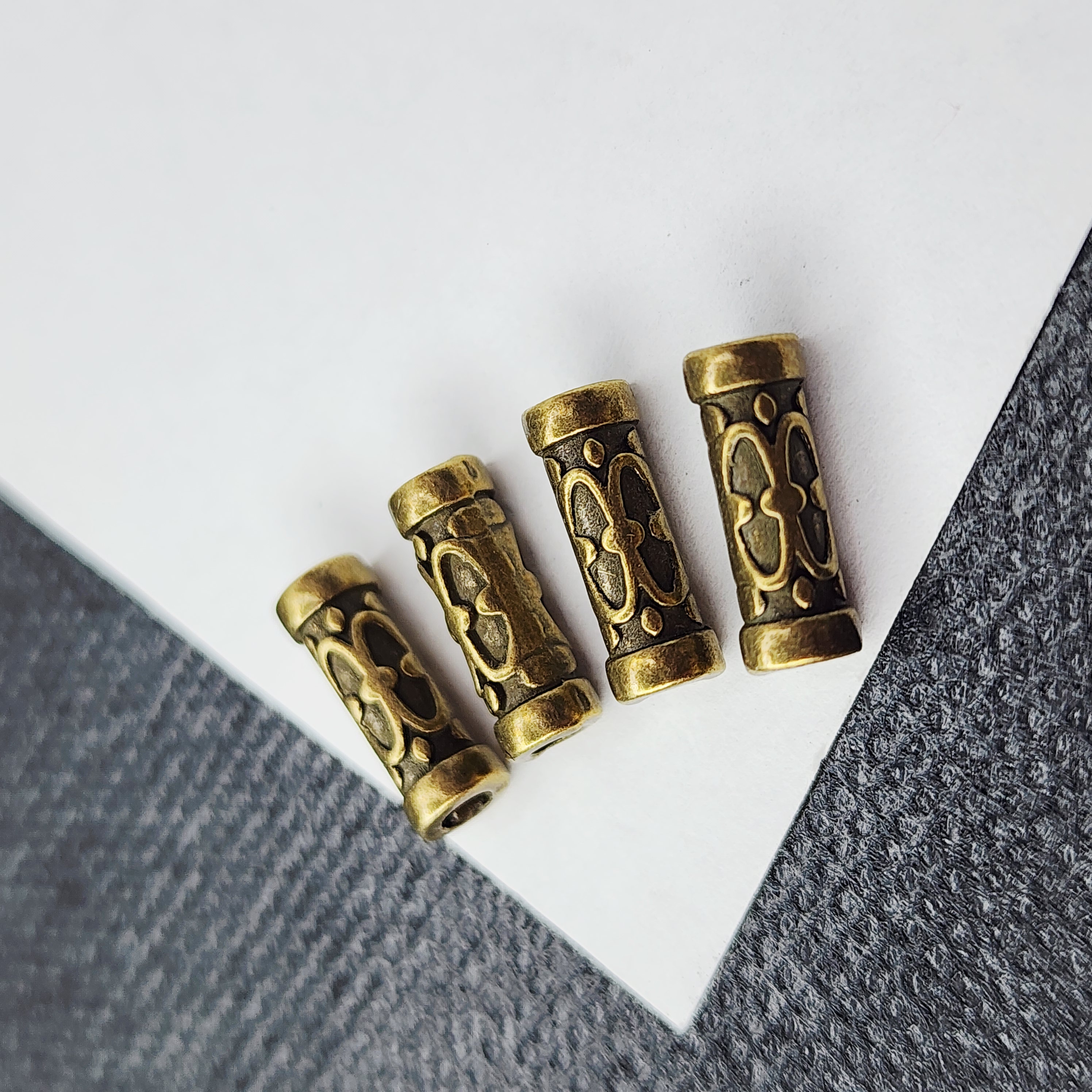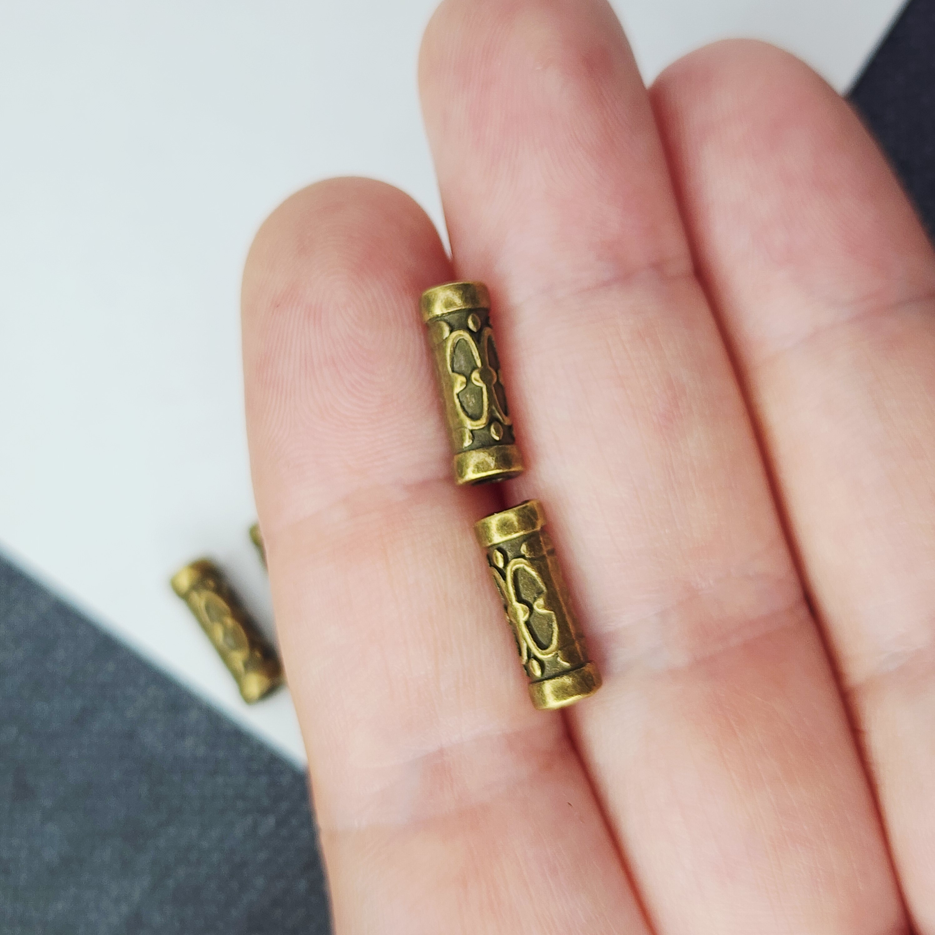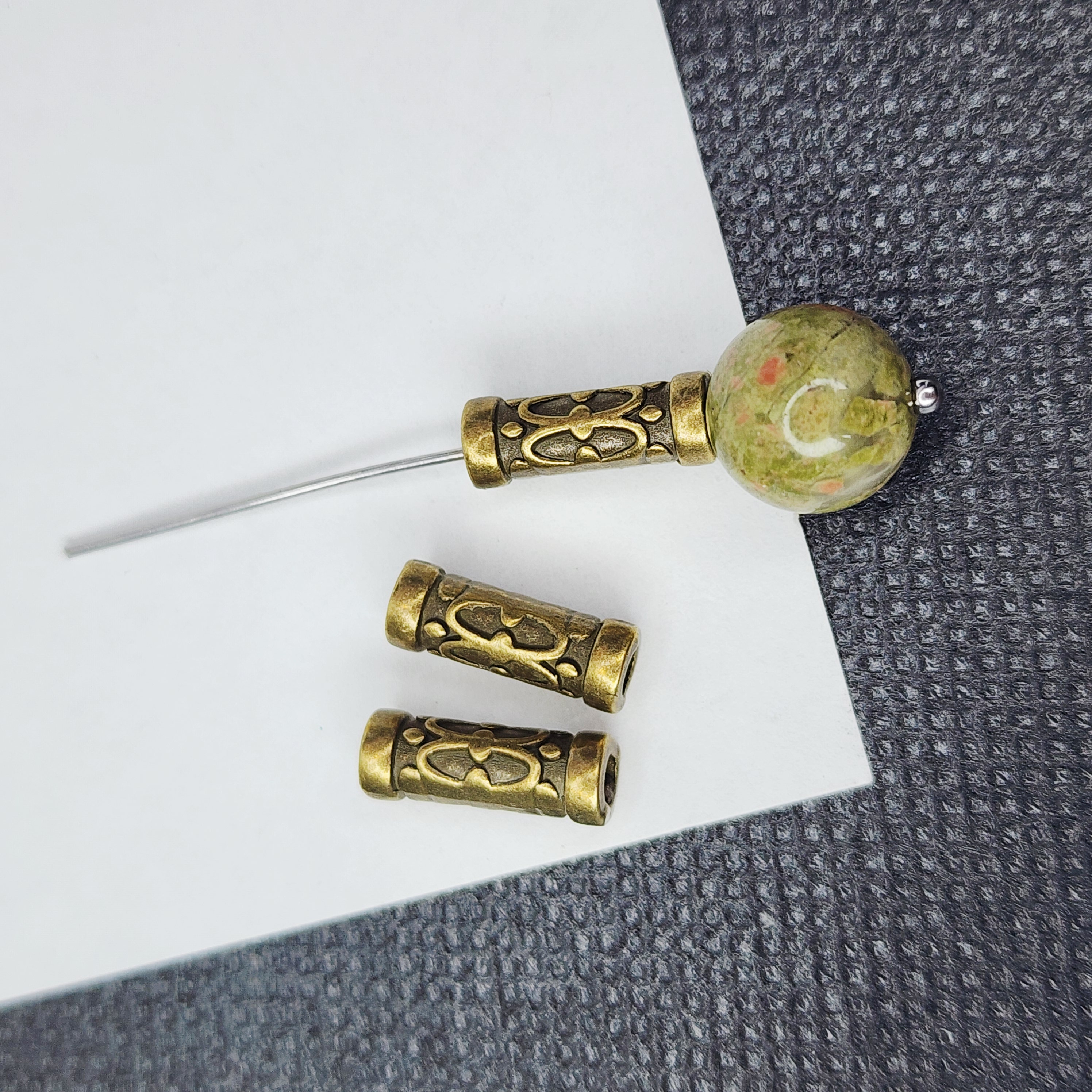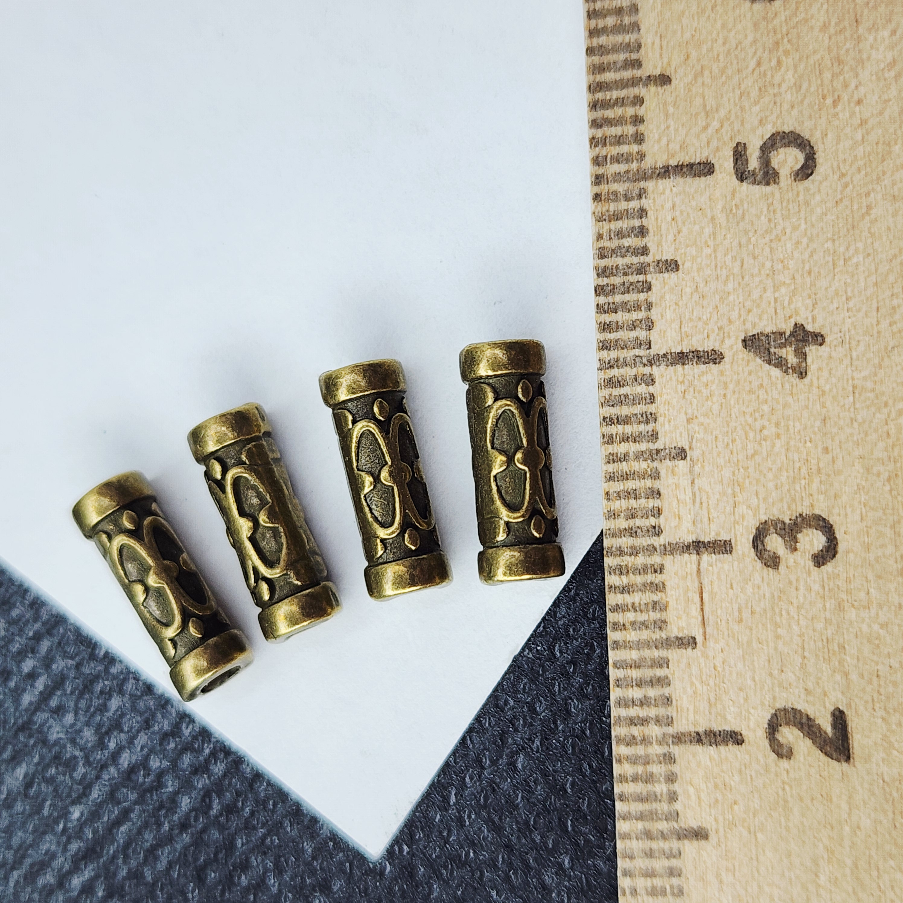 Разделитель для бусин, трубочка с рисунком, размер 12х4.5 мм, цвет античная бронза