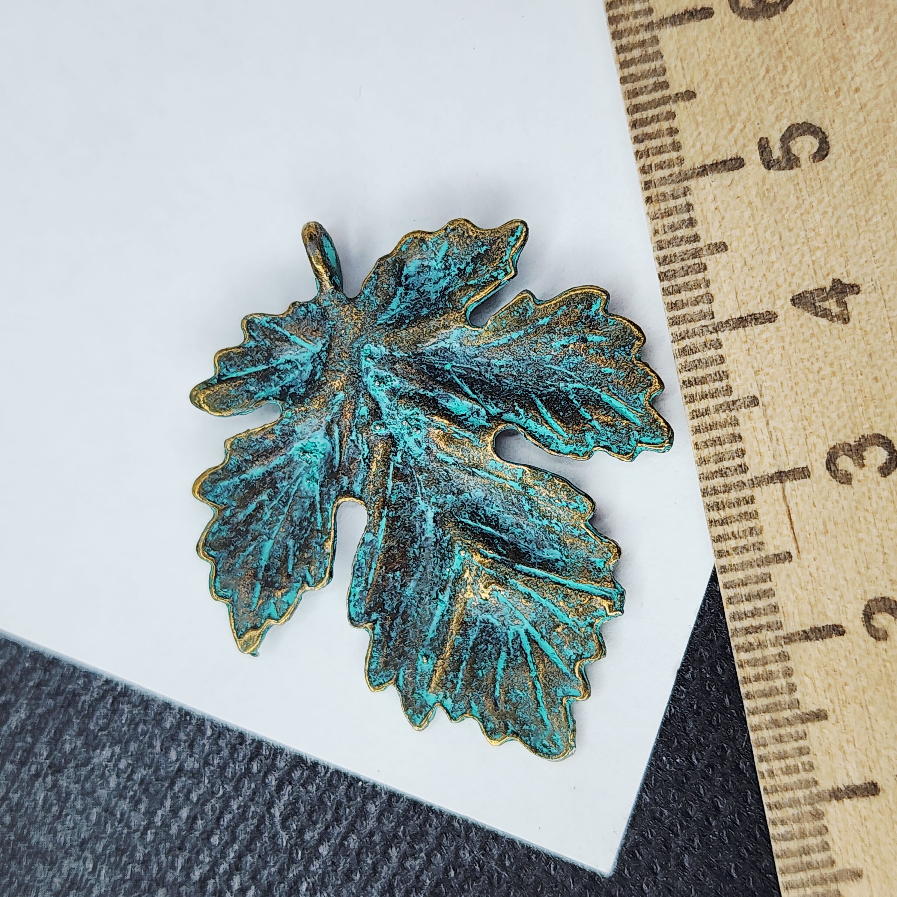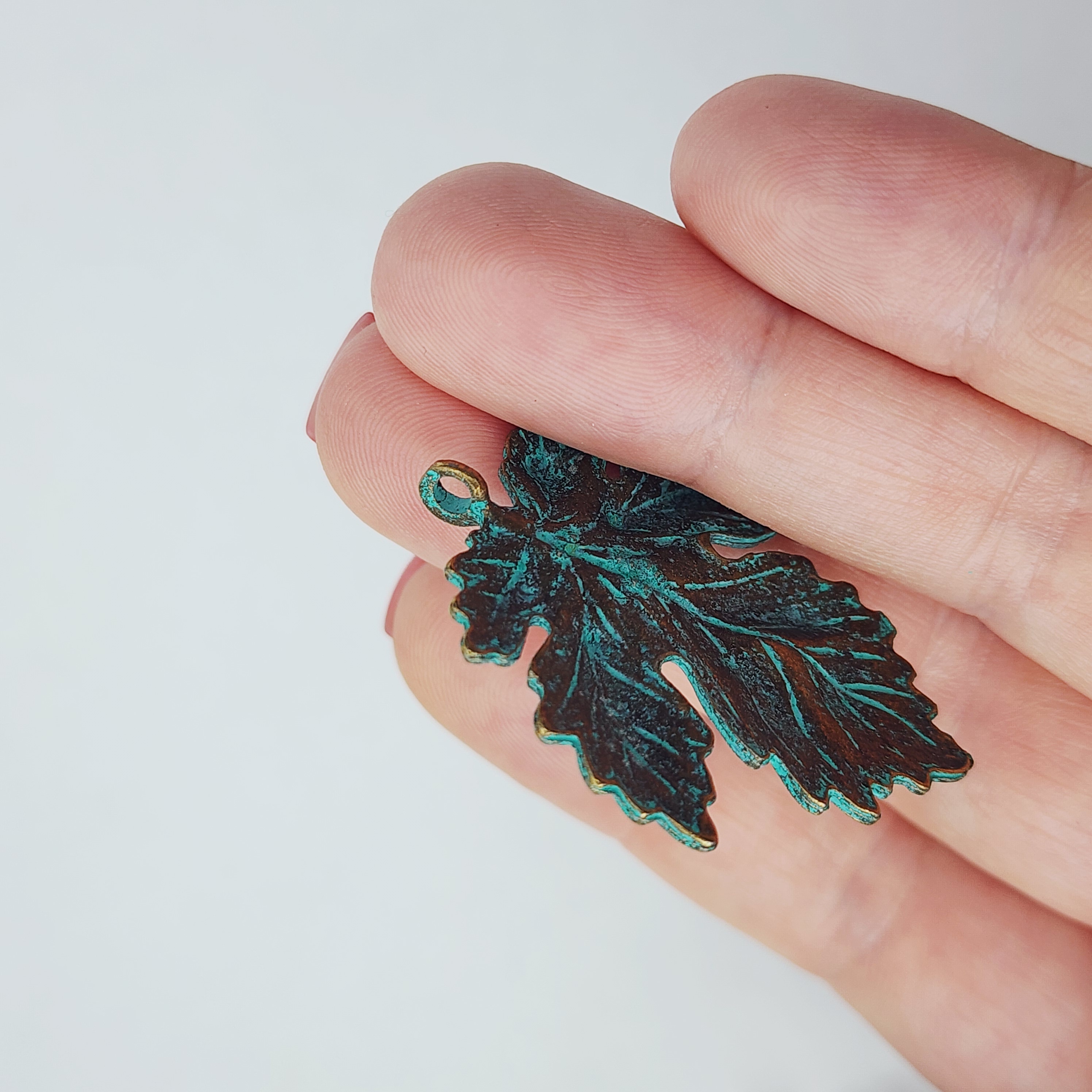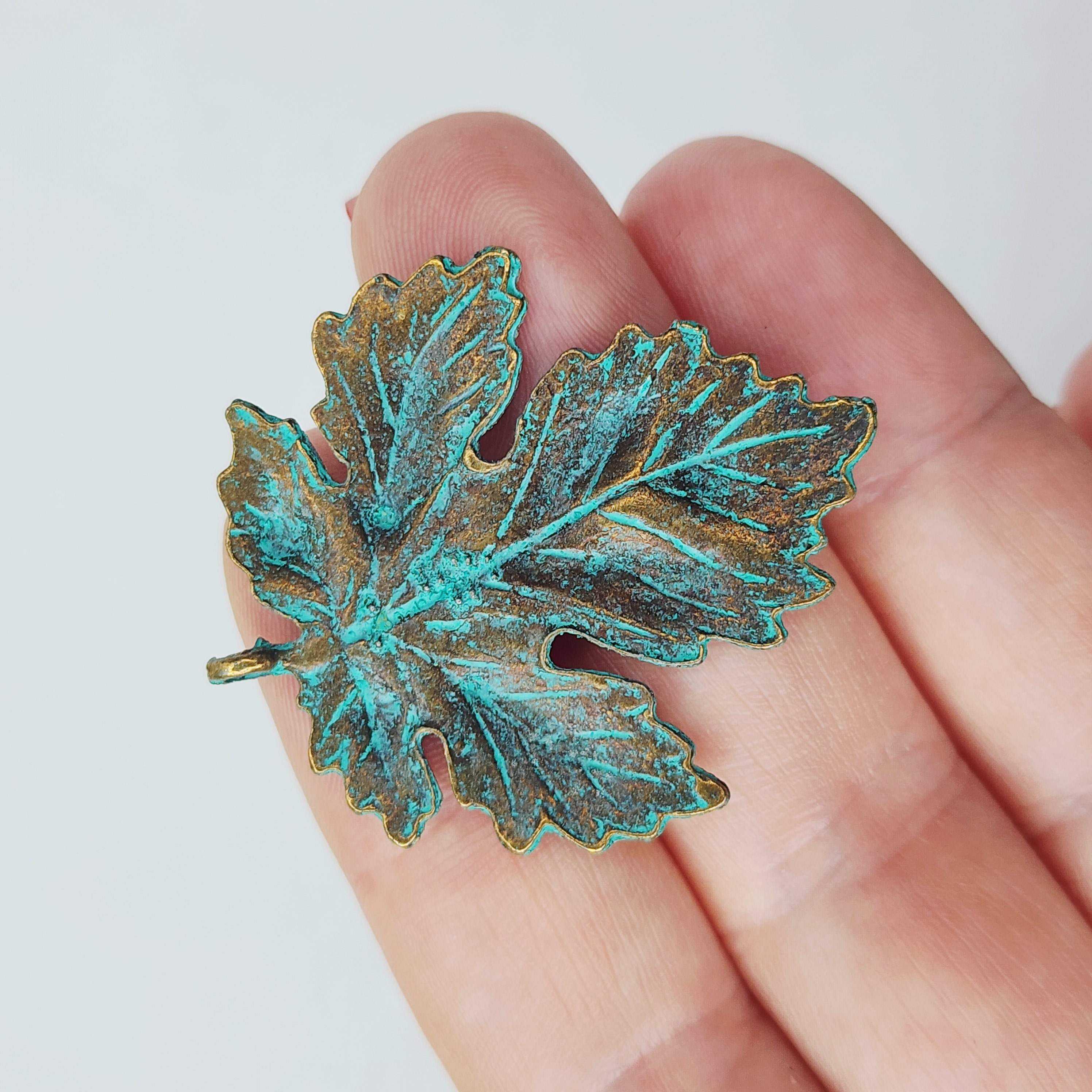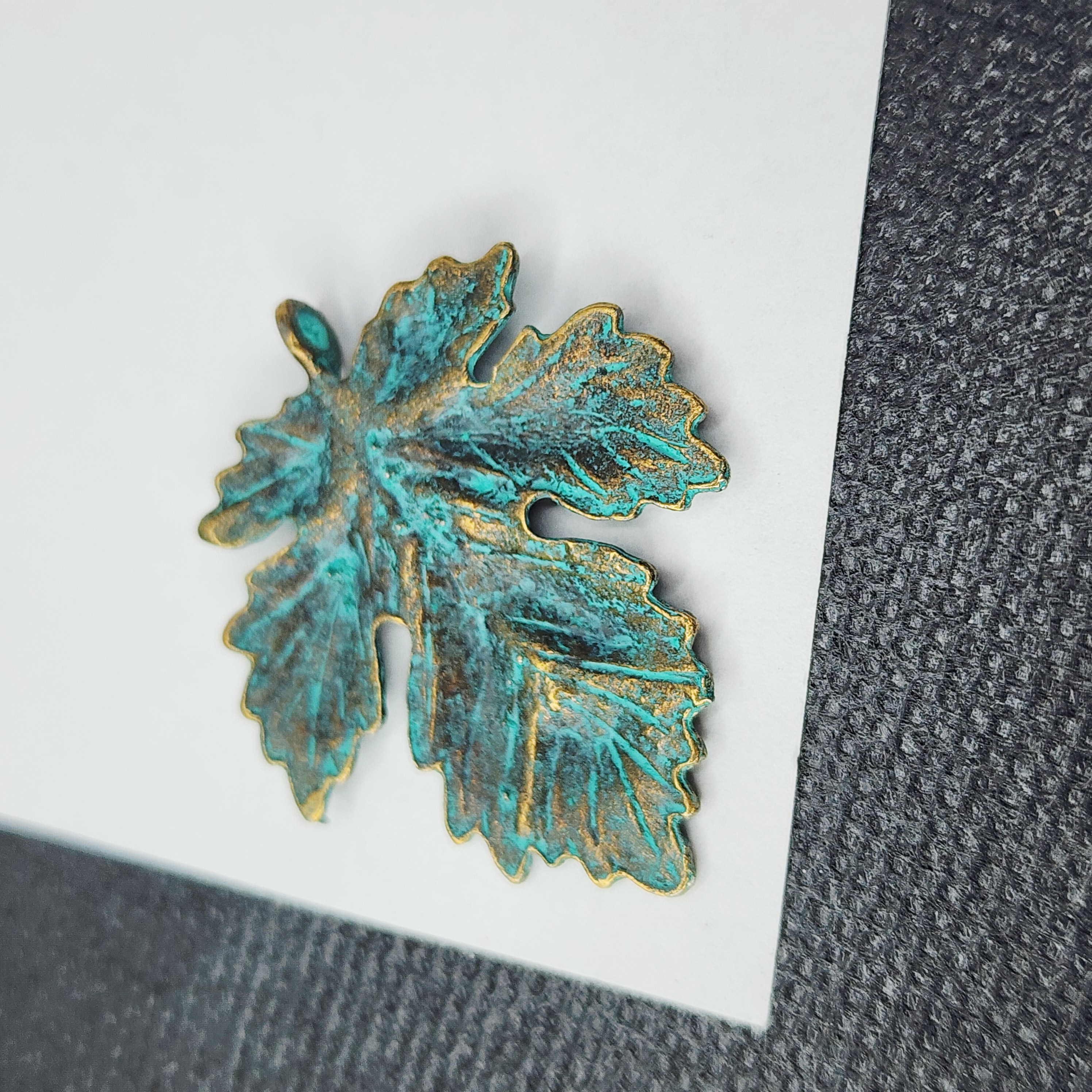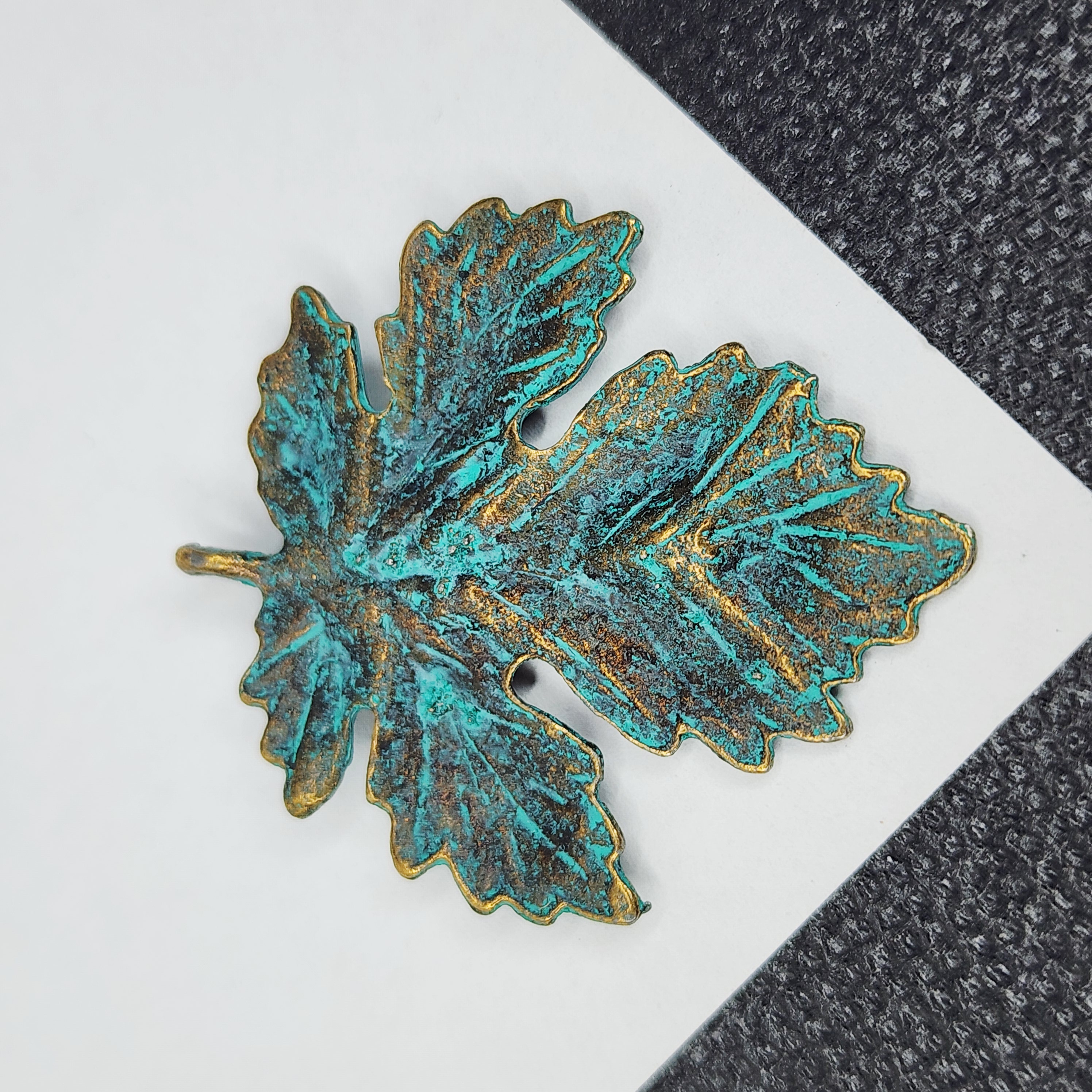 Подвеска, лист голубая патина, размер 35×40 мм, цвет античная бронза