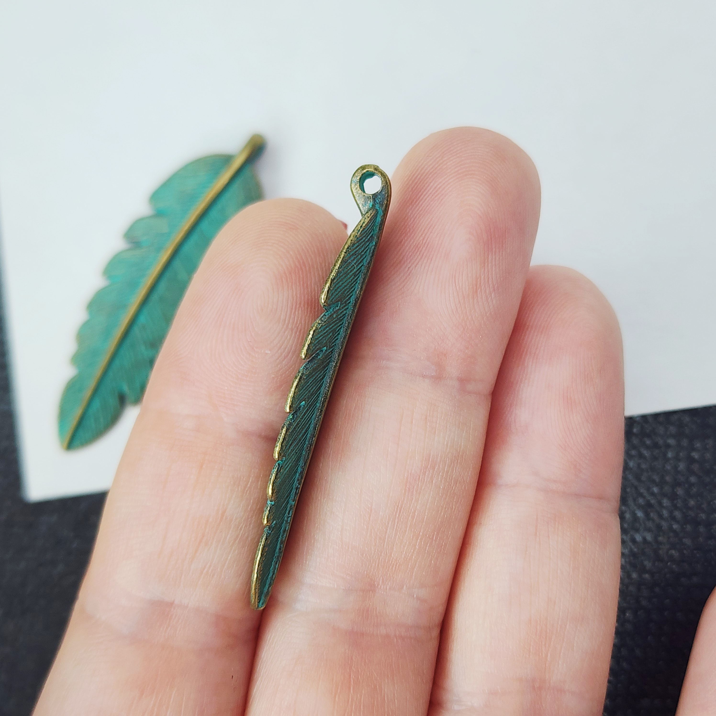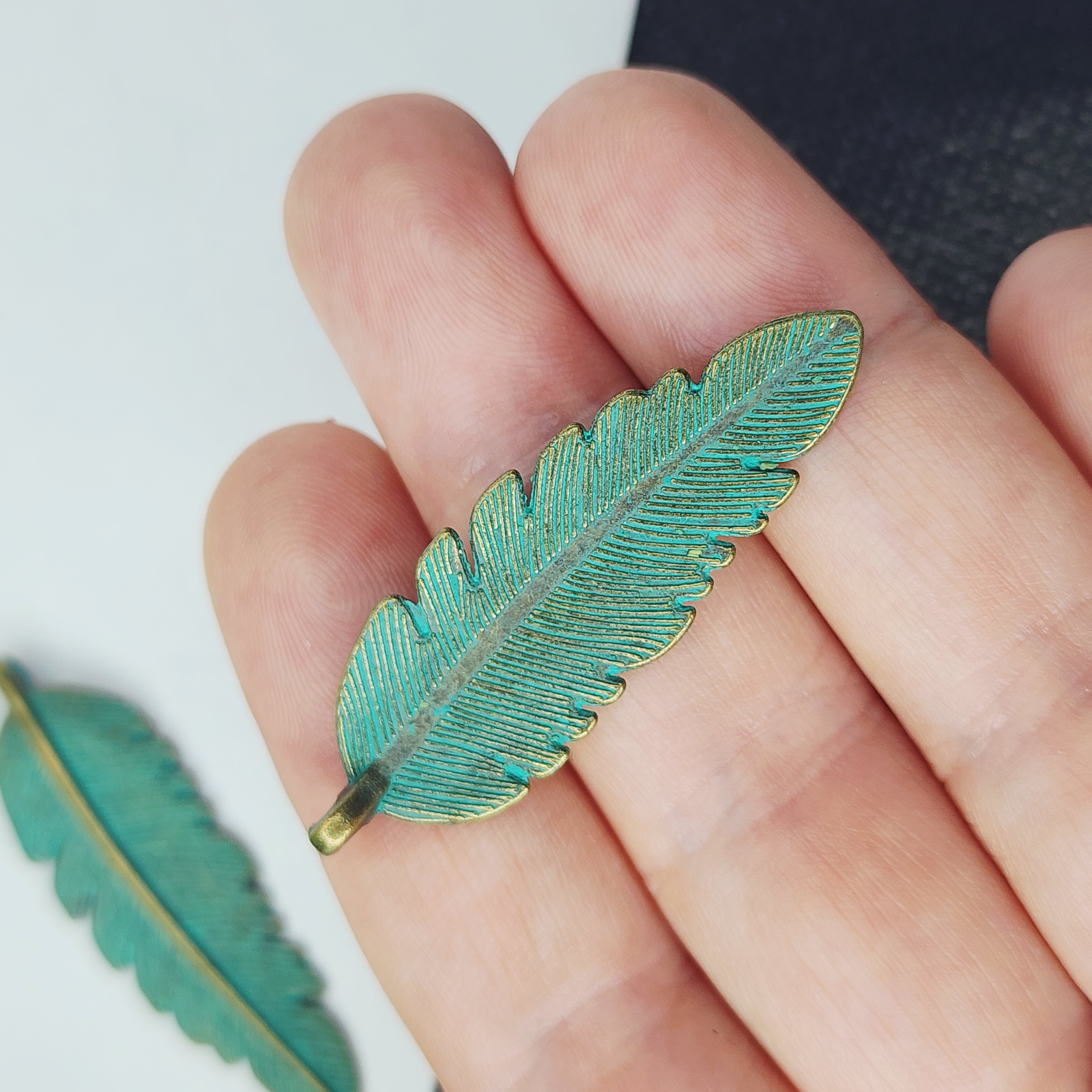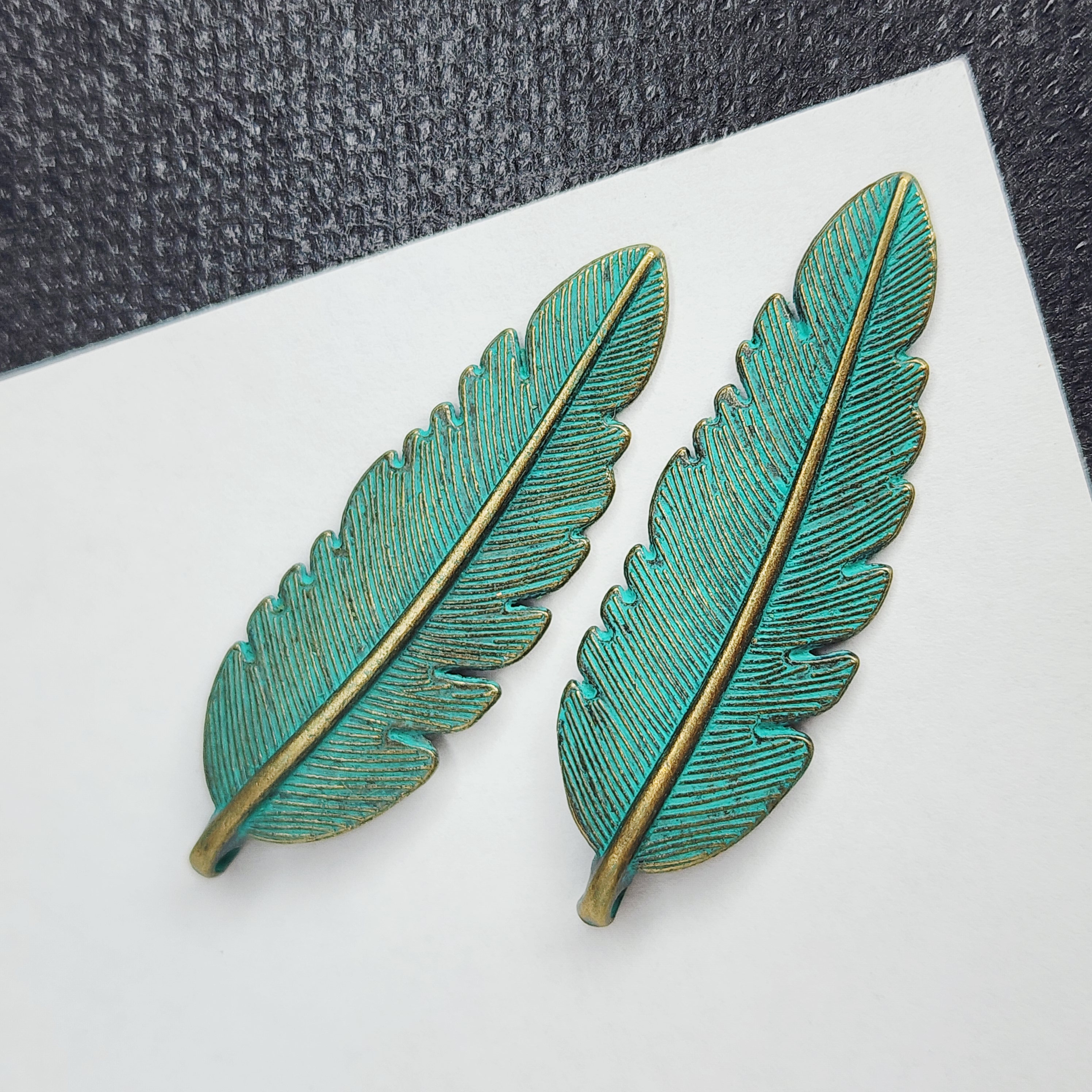 Подвеска лист, бирюзовая патина, размер 45×19 мм